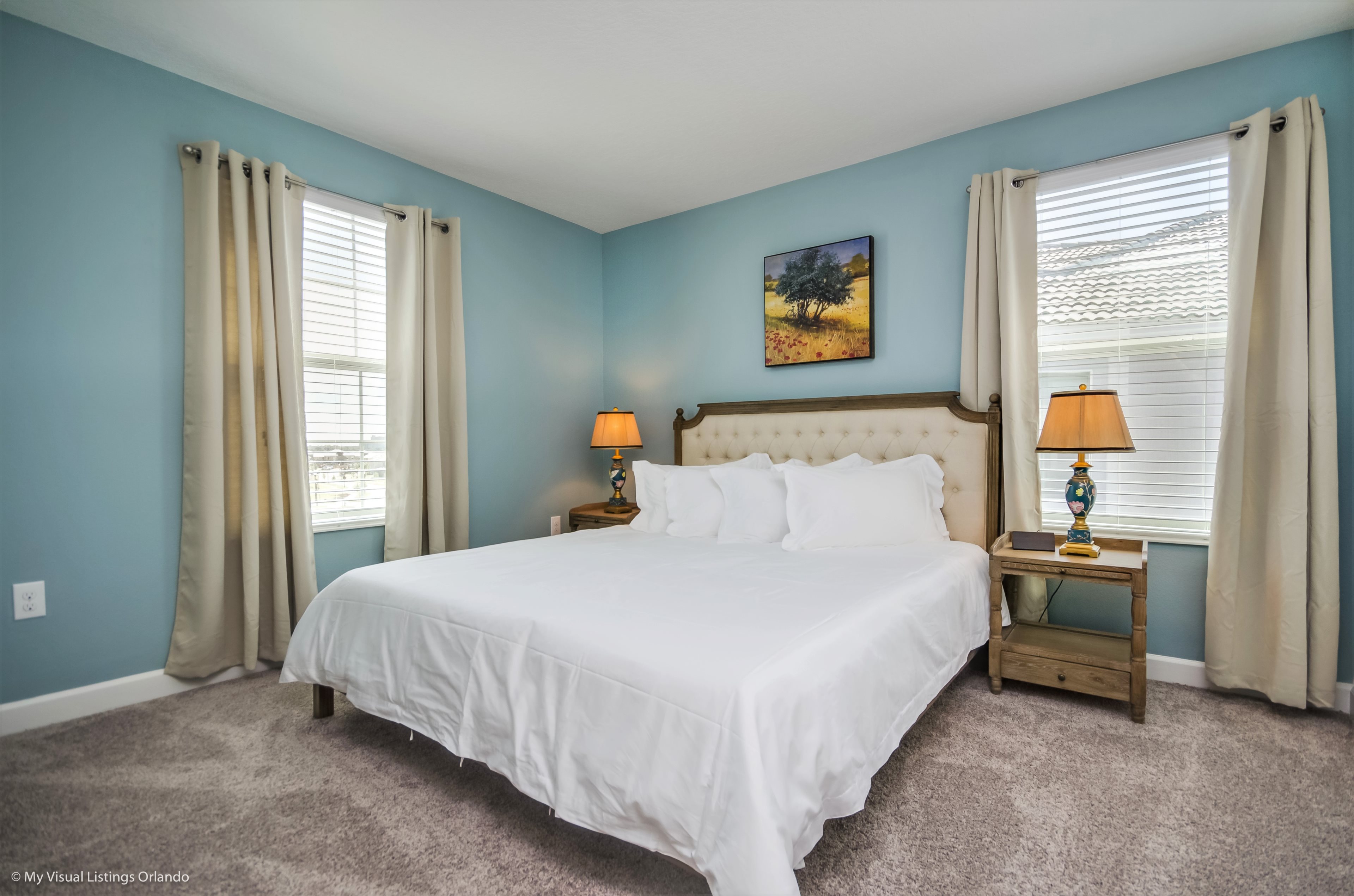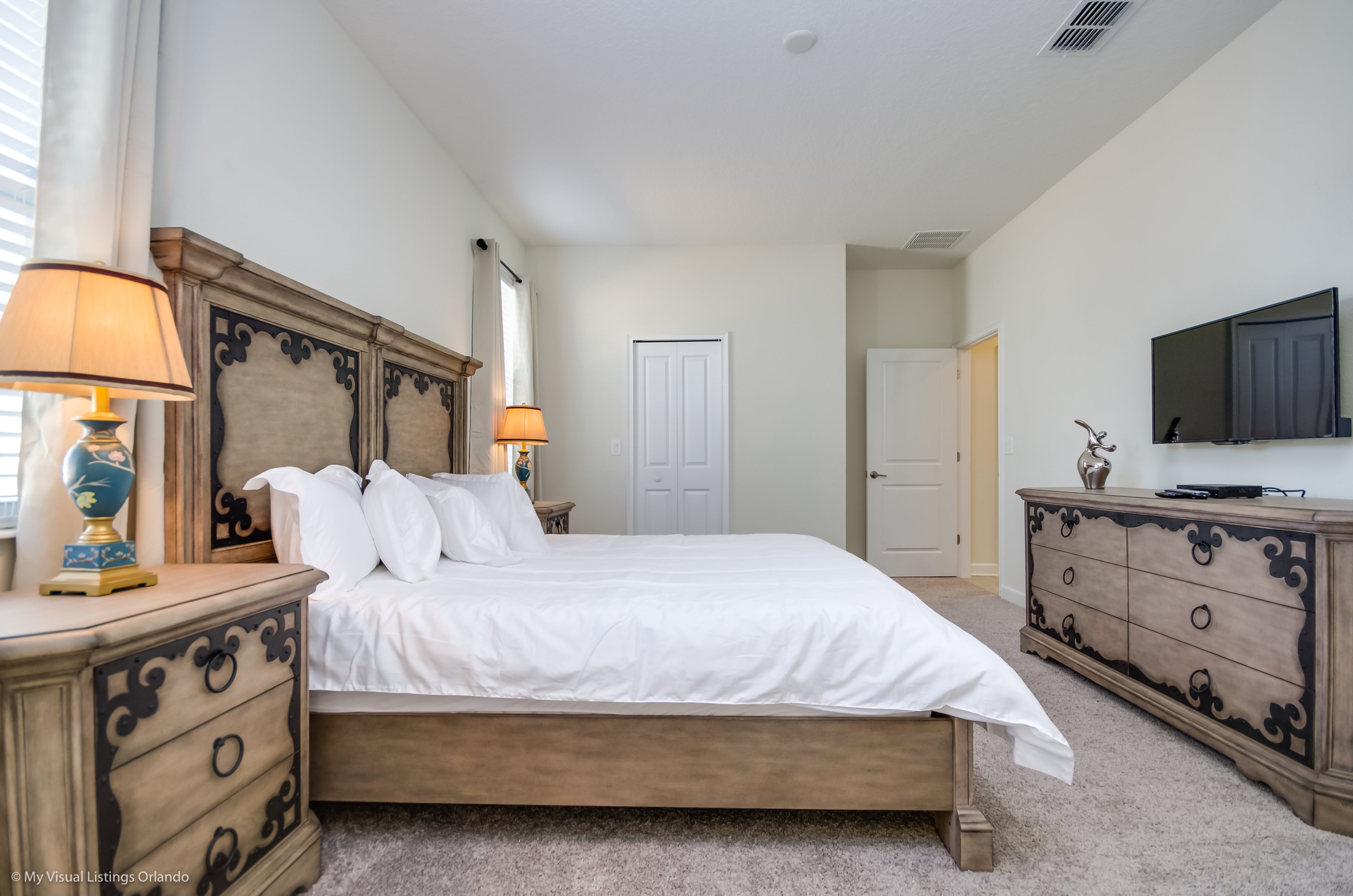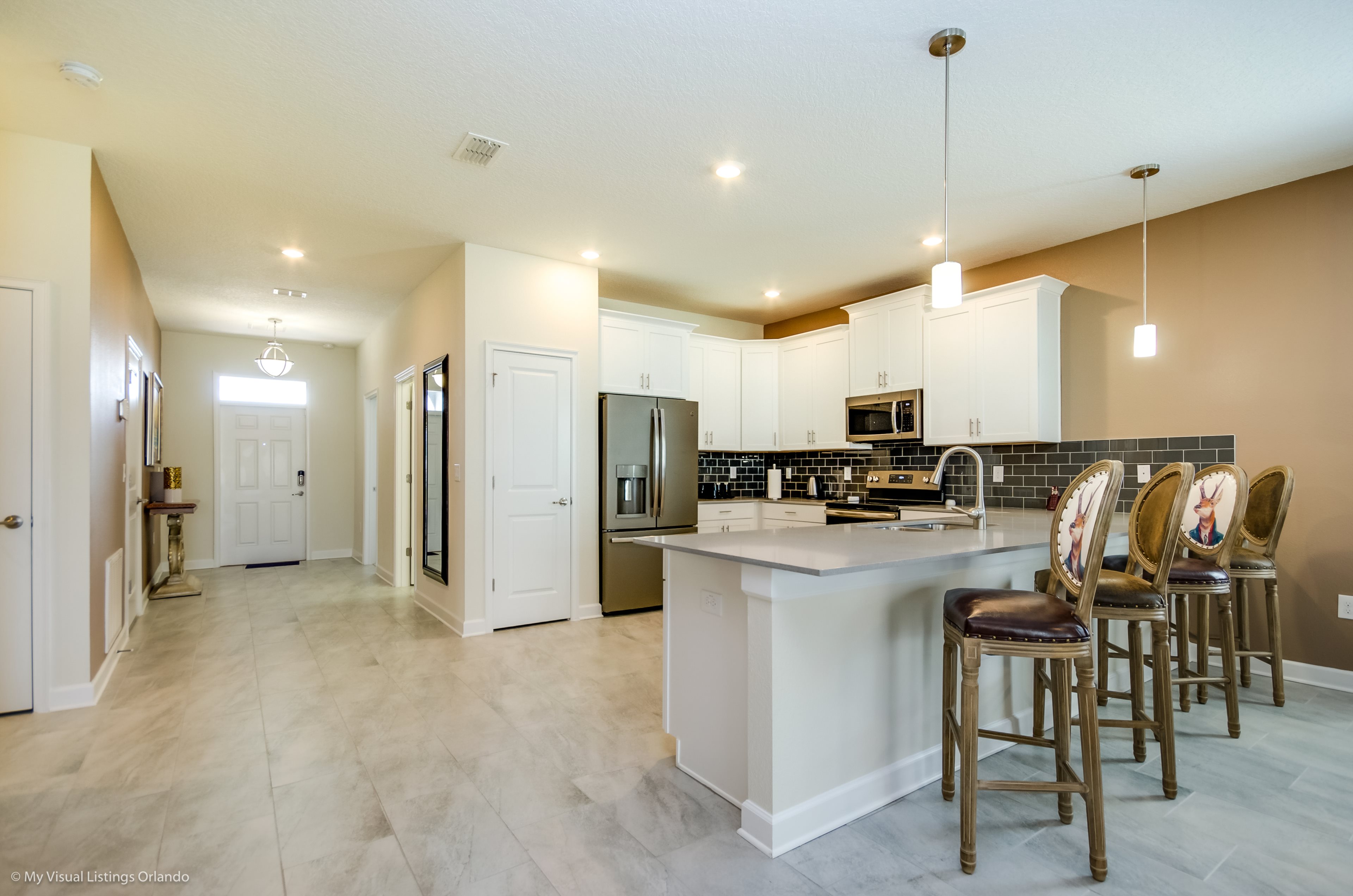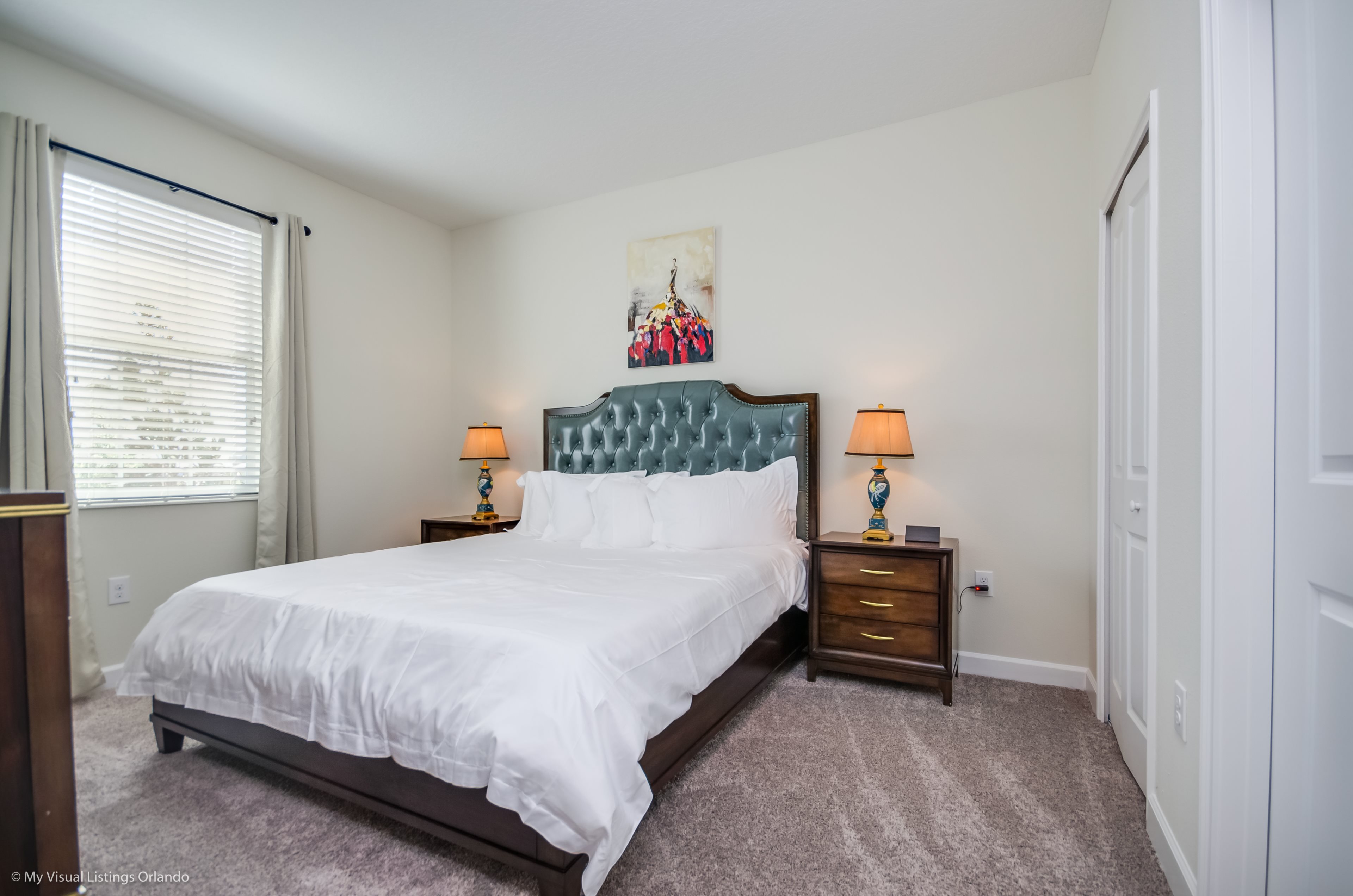 You will feel immediately relaxed as you enter our 8 bedroom, 5 bathroom executive home which sleeps up to 16 in style. We have paid great attention to every detail when we furnished this home and we hope you will enjoy it as much as we do with our own family. With 4 king bedrooms, 2 Queen and 2 Bedrooms with 2 twins beds , there is plenty of room for everyone to spread out and relax after a day out or just to stay in and take it easy. Each room has a different feel so all guests should be equally happy with their room, and all have wall mounted flat screen LED Tv’s. The dining room and living area offers plenty of space to congregate and enjoy meals together, and the bright and airy kitchen has all the appliances that you would expect in your own home. (There is also a full-size washer and dryer). You can also enjoy a game of pool in the game room, or watch a movie in the huge loft area, or leave the kids to play on the PlayStation. Or why not take a dip in the large pool or relax in the spa, even in the evening as the pool area is south facing? This home will bring all the excitement of Orlando to you, and have the entire group talking about your trip for months to come.