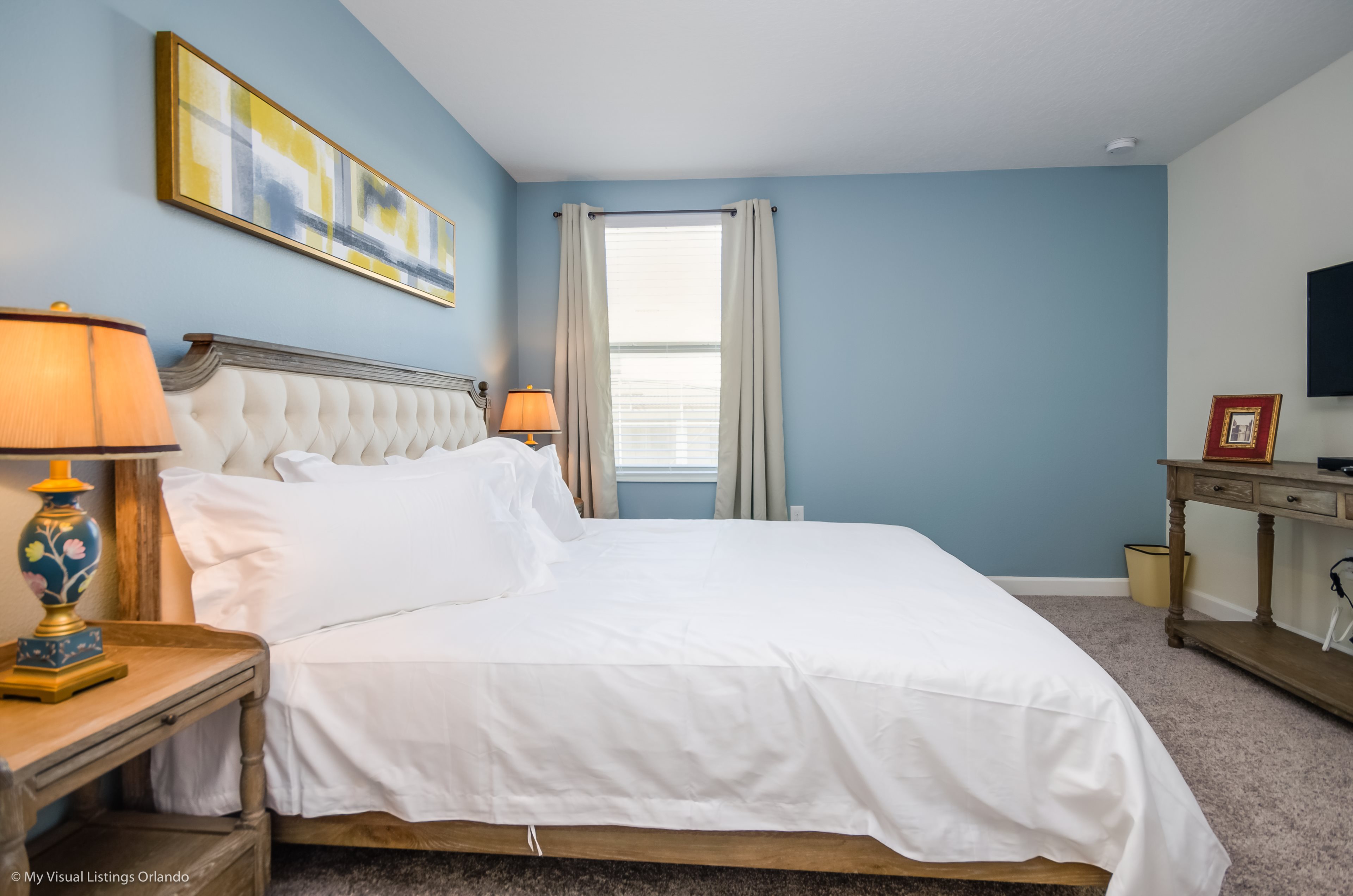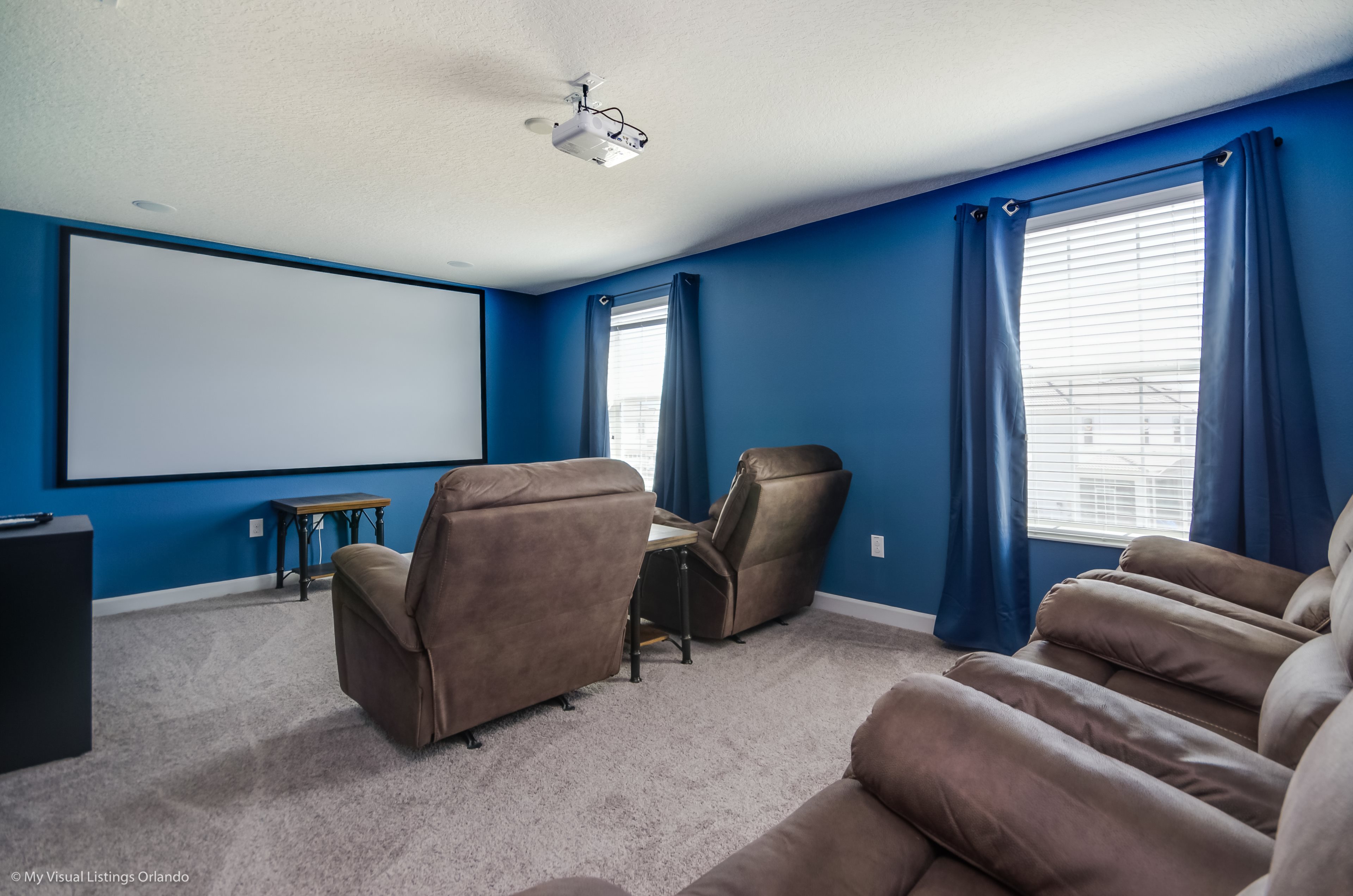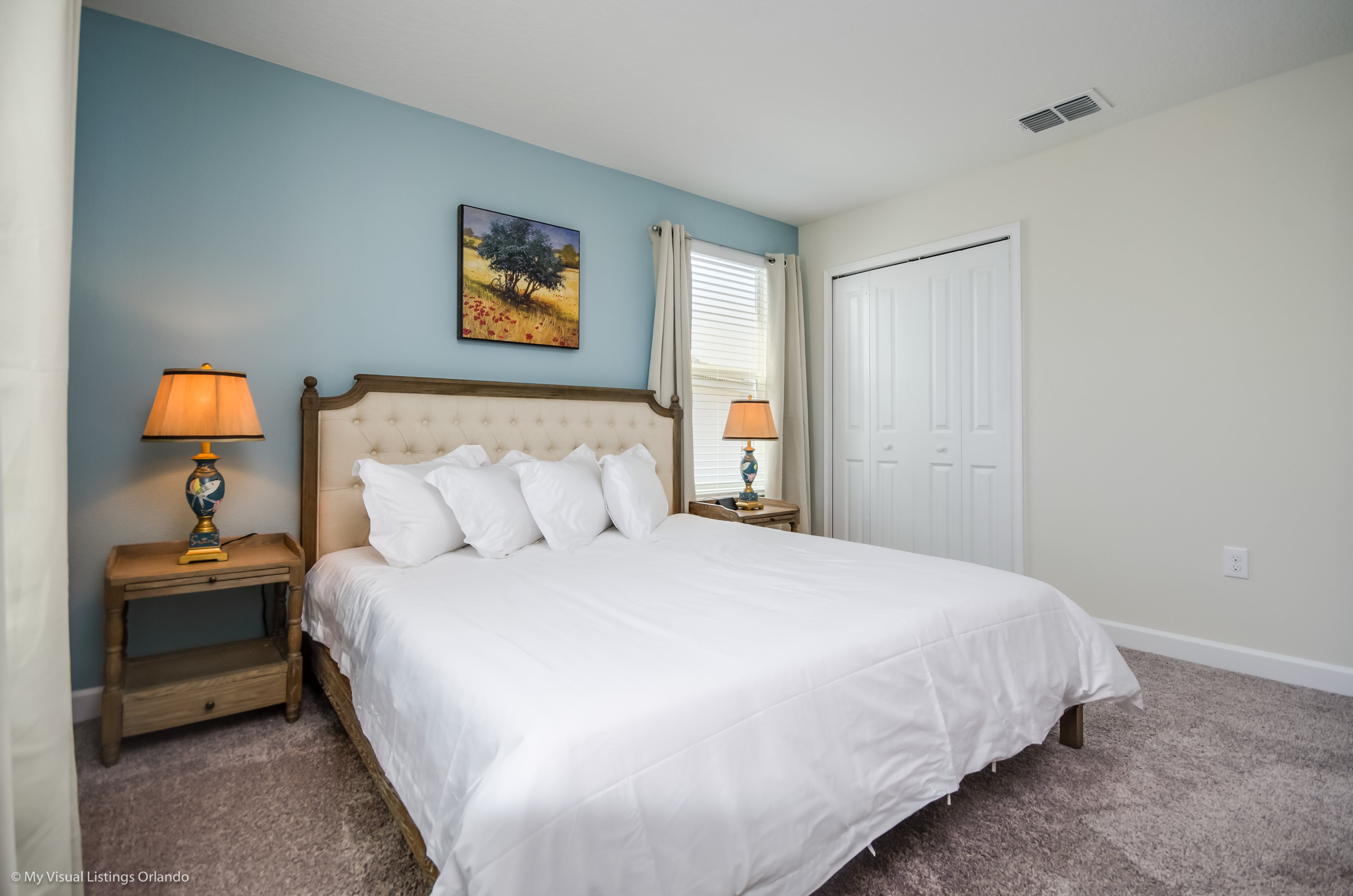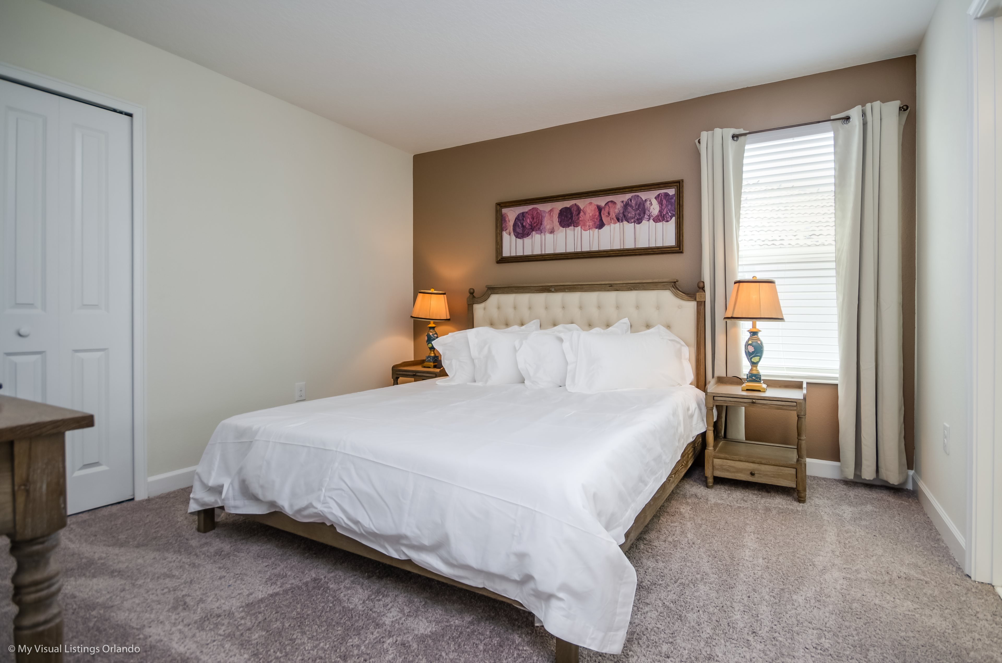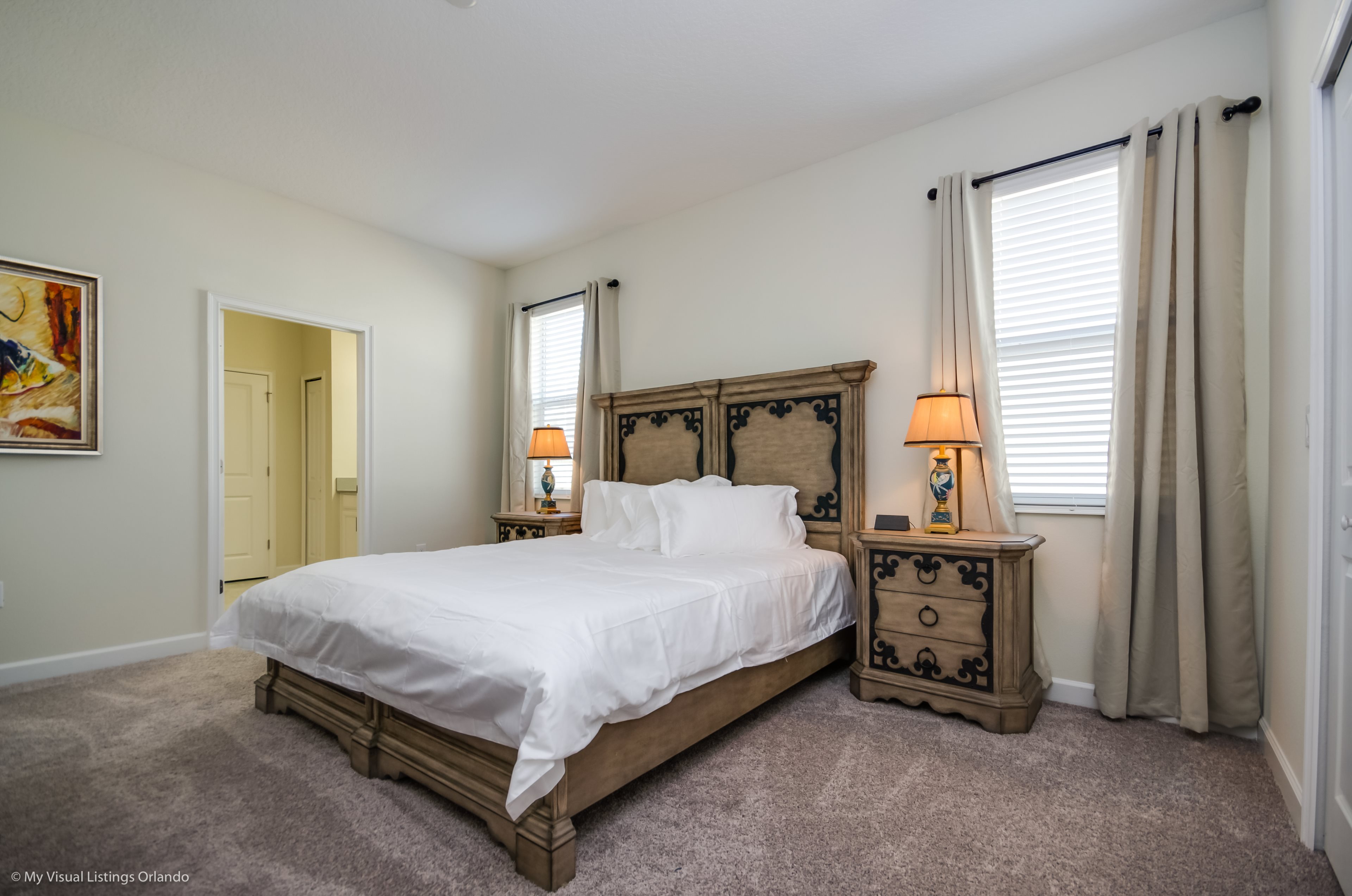 You will feel immediately relaxed as you enter our 8 bedroom, 5 bathroom executive home which sleeps up to 16 in style. We have paid great attention to every detail when we furnished this home and we hope you will enjoy it as much as we do with our own family. With 4 king bedrooms, 2 Queen and 2 Bedrooms with 2 twins beds , there is plenty of room for everyone to spread out and relax after a day out or just to stay in and take it easy. Each room has a different feel so all guests should be equally happy with their room, and all have wall mounted flat screen LED Tv’s. The dining room and living area offers plenty of space to congregate and enjoy meals together, and the bright and airy kitchen has all the appliances that you would expect in your own home. (There is also a full-size washer and dryer). You can also enjoy a game of pool in the game room, or watch a movie in the huge loft area, or leave the kids to play on the PlayStation. Or why not take a dip in the large pool or relax in the spa, even in the evening as the pool area is south facing? This home will bring all the excitement of Orlando to you, and have the entire group talking about your trip for months to come.