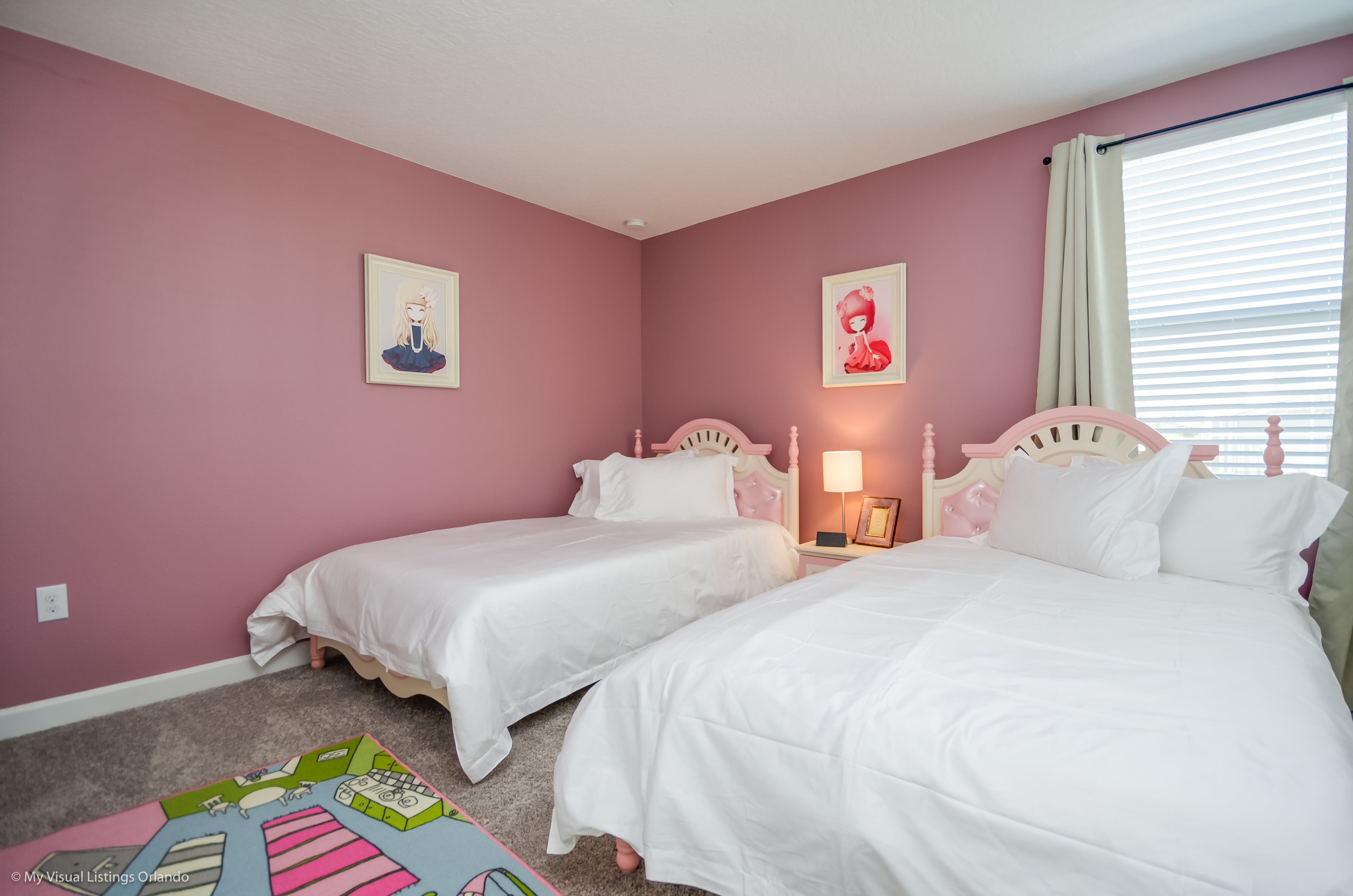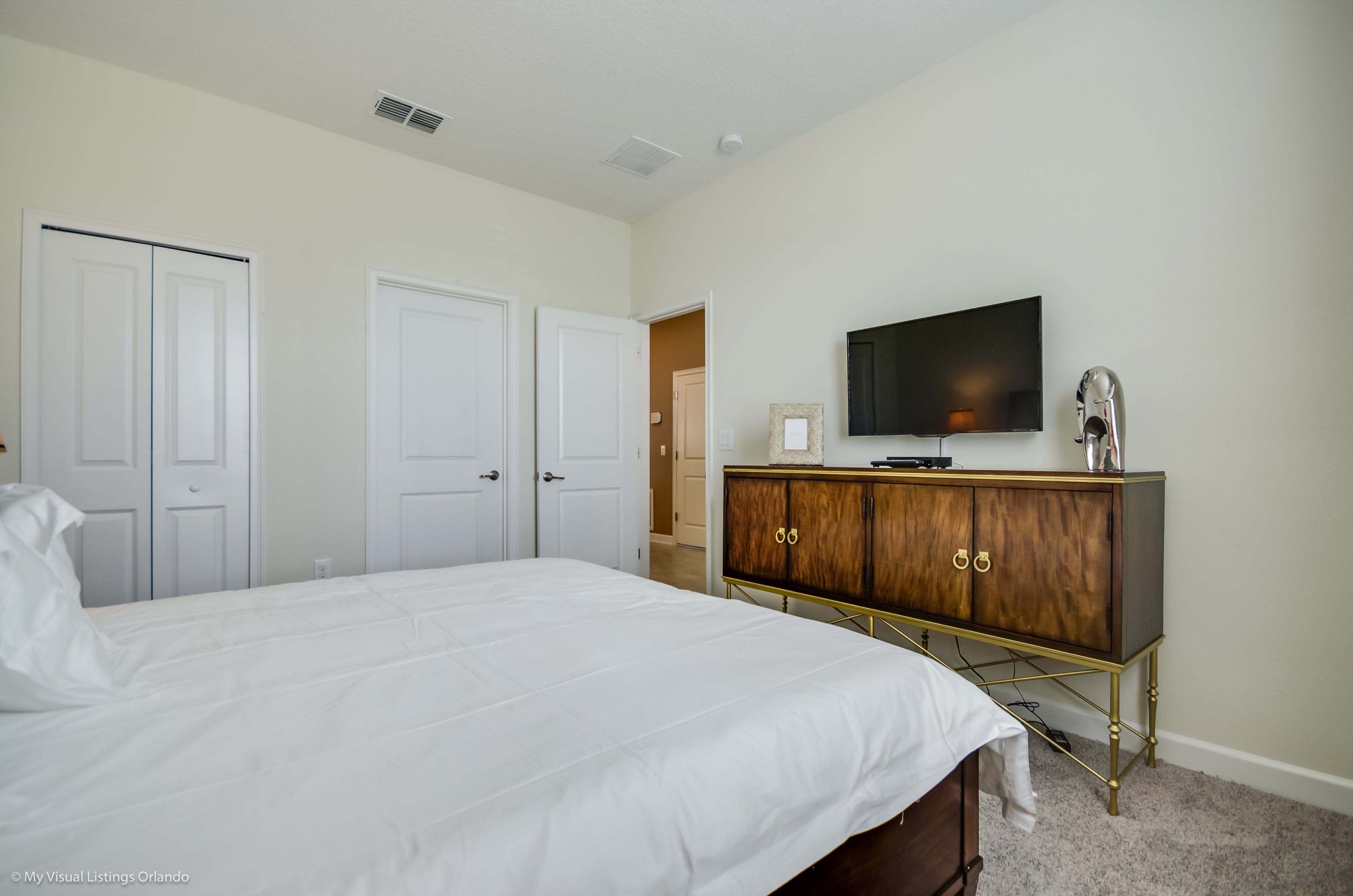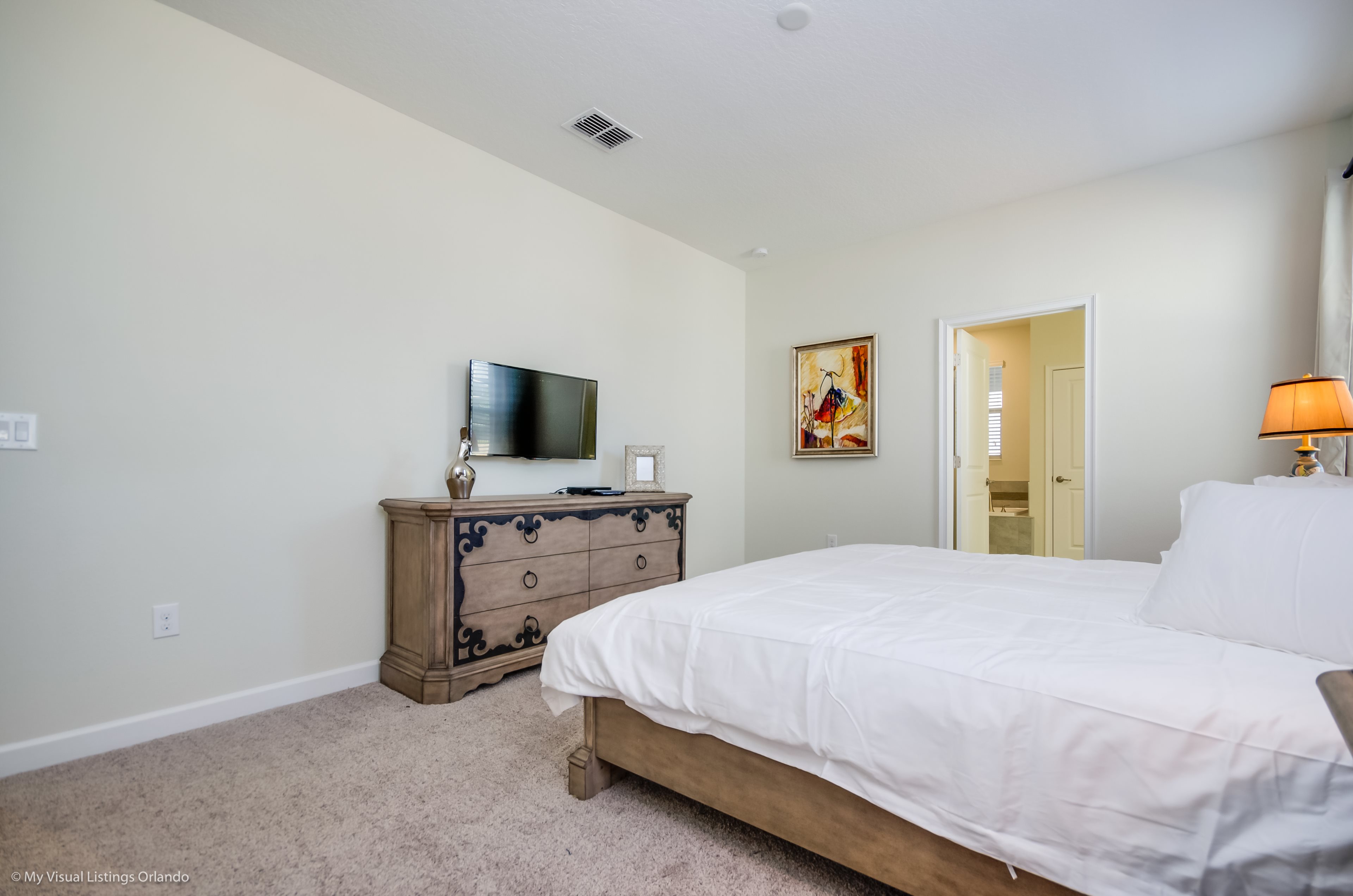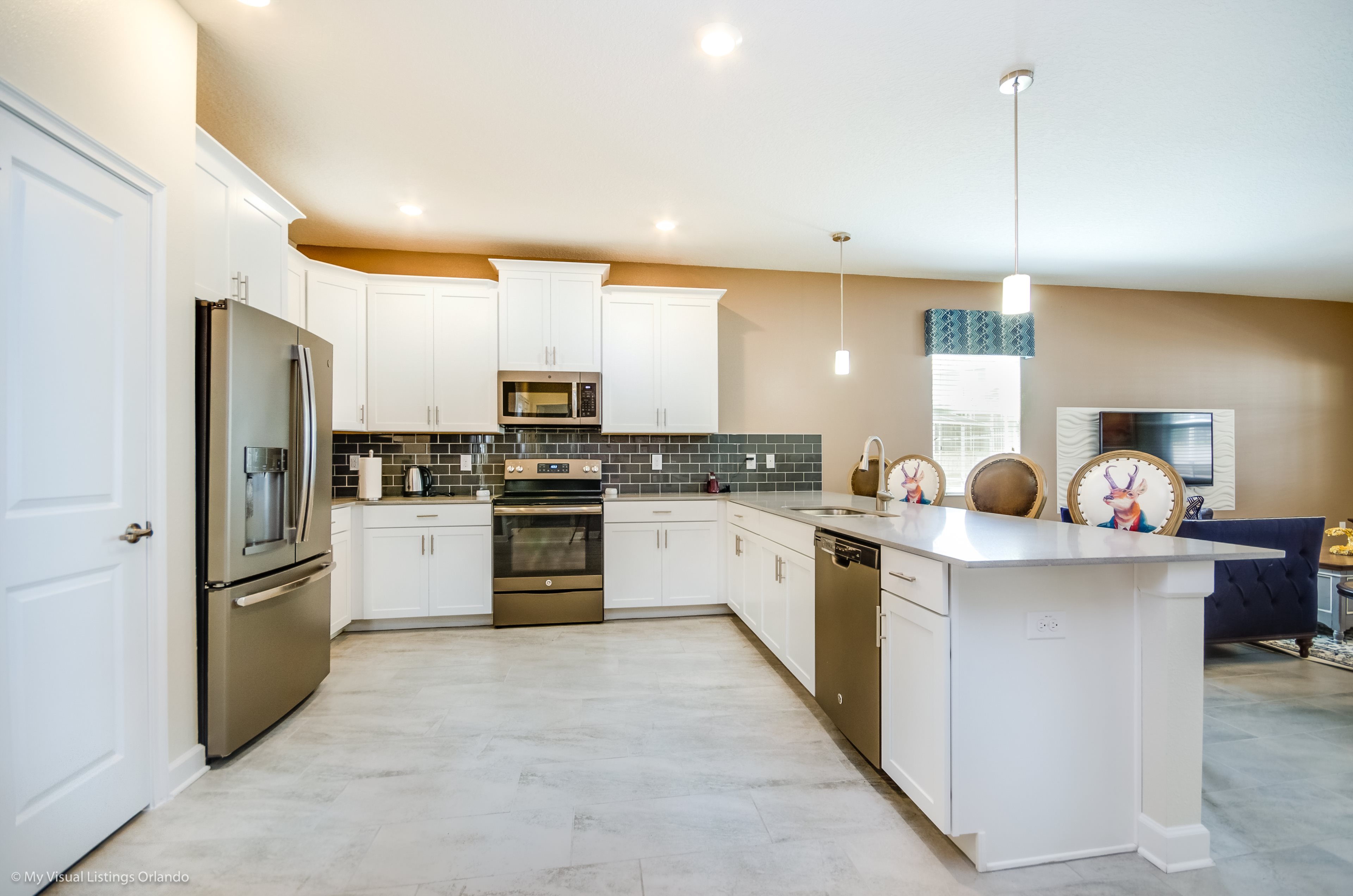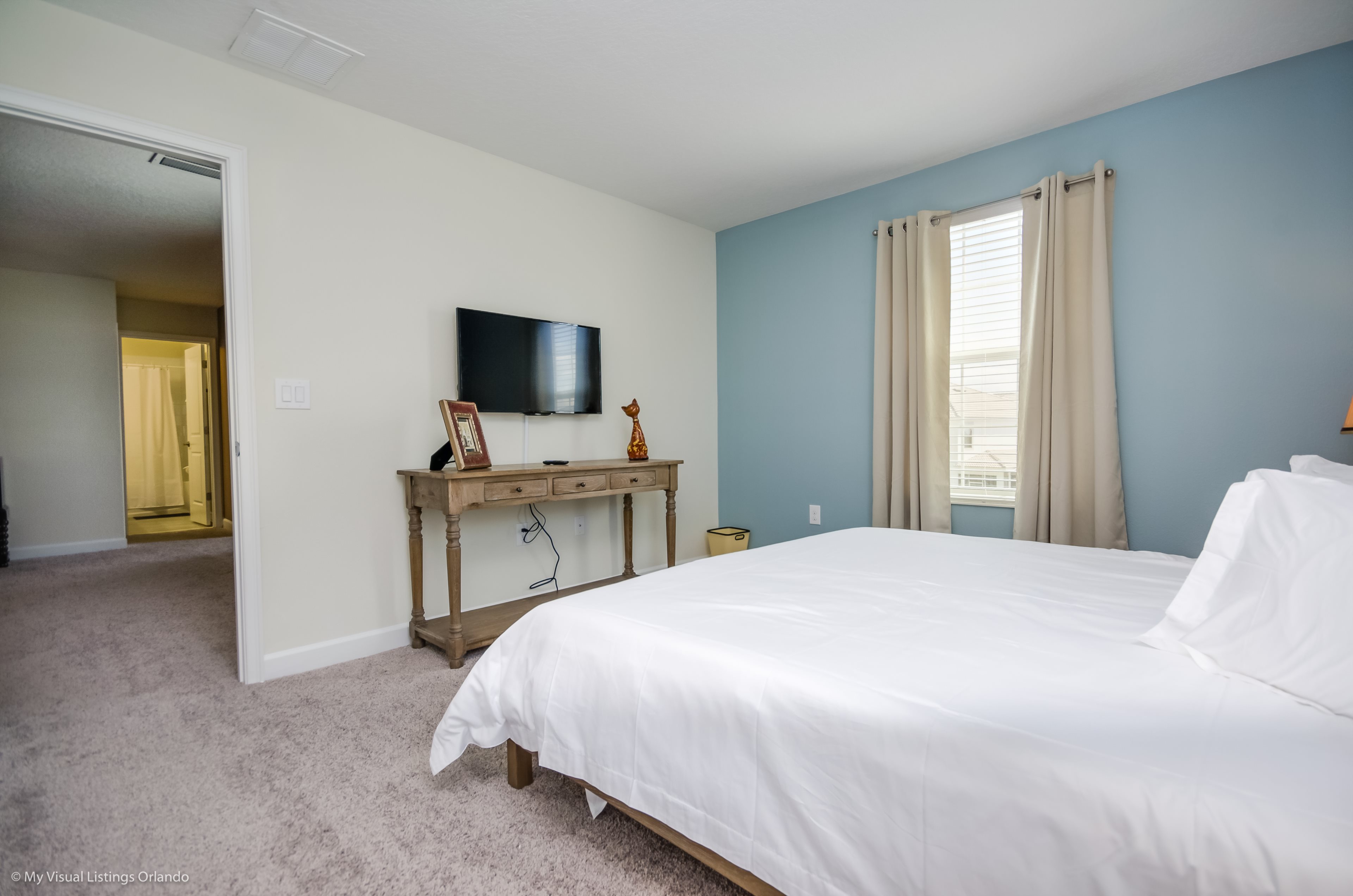 You will feel immediately relaxed as you enter our 8 bedroom, 5 bathroom executive home which sleeps up to 16 in style. We have paid great attention to every detail when we furnished this home and we hope you will enjoy it as much as we do with our own family. With 4 king bedrooms, 2 Queen and 2 Bedrooms with 2 twins beds , there is plenty of room for everyone to spread out and relax after a day out or just to stay in and take it easy. Each room has a different feel so all guests should be equally happy with their room, and all have wall mounted flat screen LED Tv’s. The dining room and living area offers plenty of space to congregate and enjoy meals together, and the bright and airy kitchen has all the appliances that you would expect in your own home. (There is also a full-size washer and dryer). You can also enjoy a game of pool in the game room, or watch a movie in the huge loft area, or leave the kids to play on the PlayStation. Or why not take a dip in the large pool or relax in the spa, even in the evening as the pool area is south facing? This home will bring all the excitement of Orlando to you, and have the entire group talking about your trip for months to come.