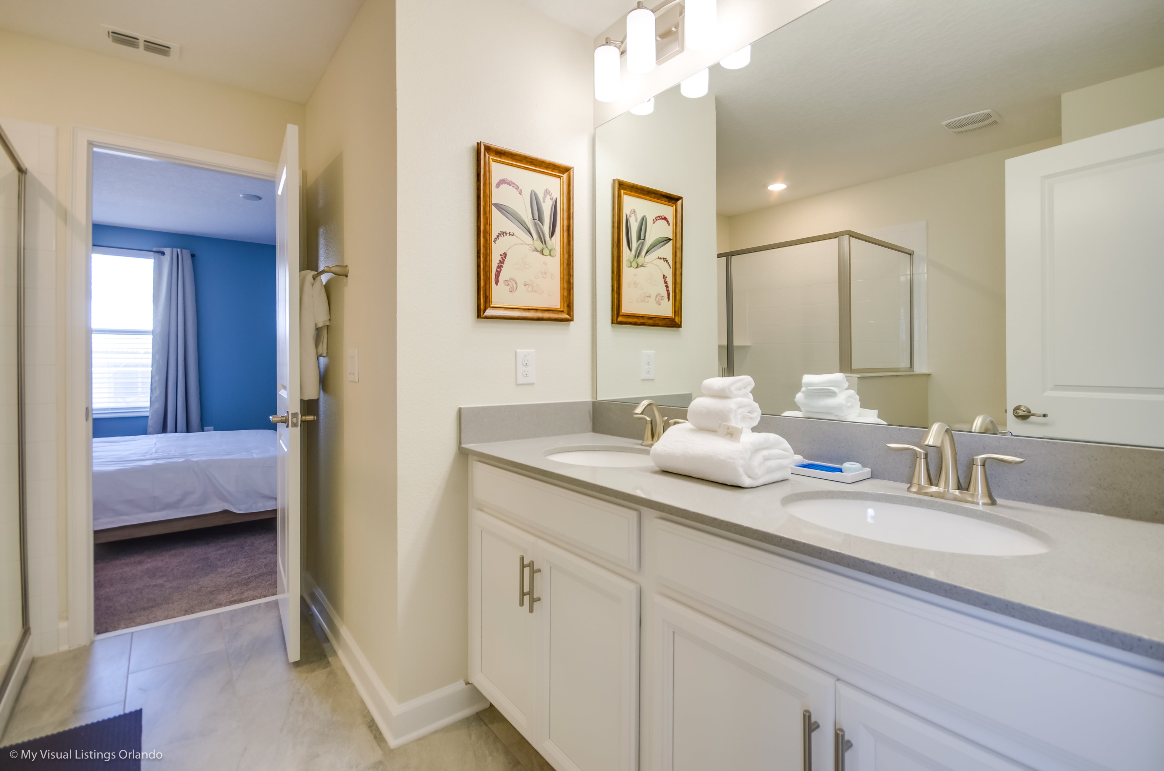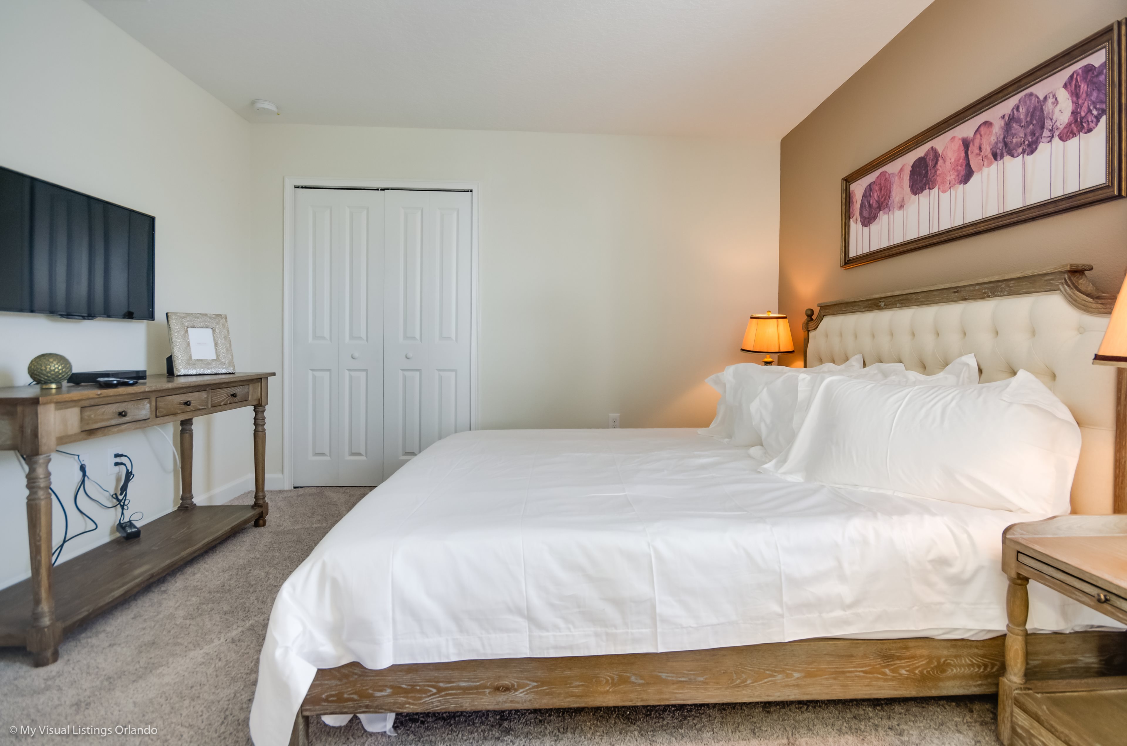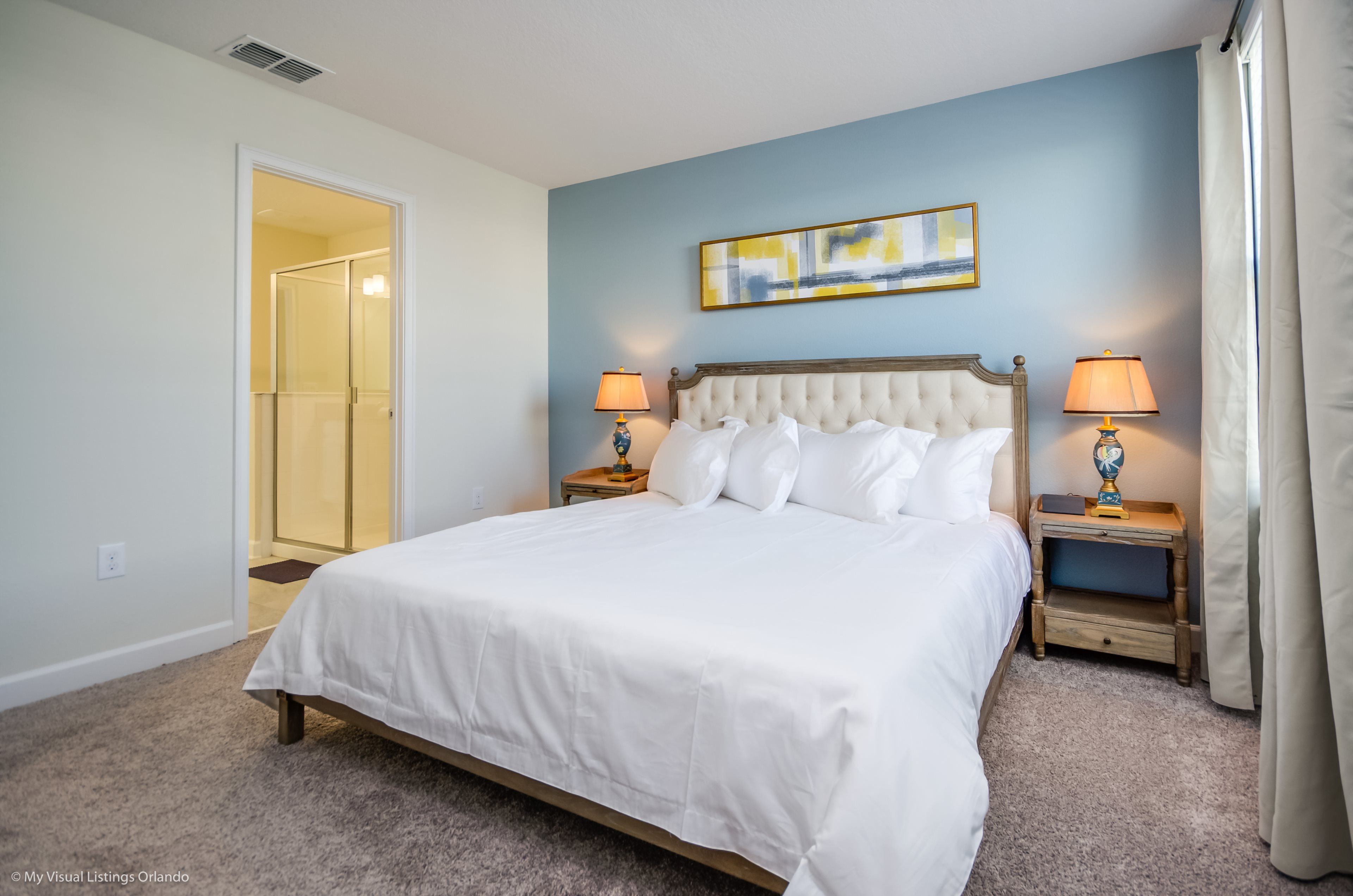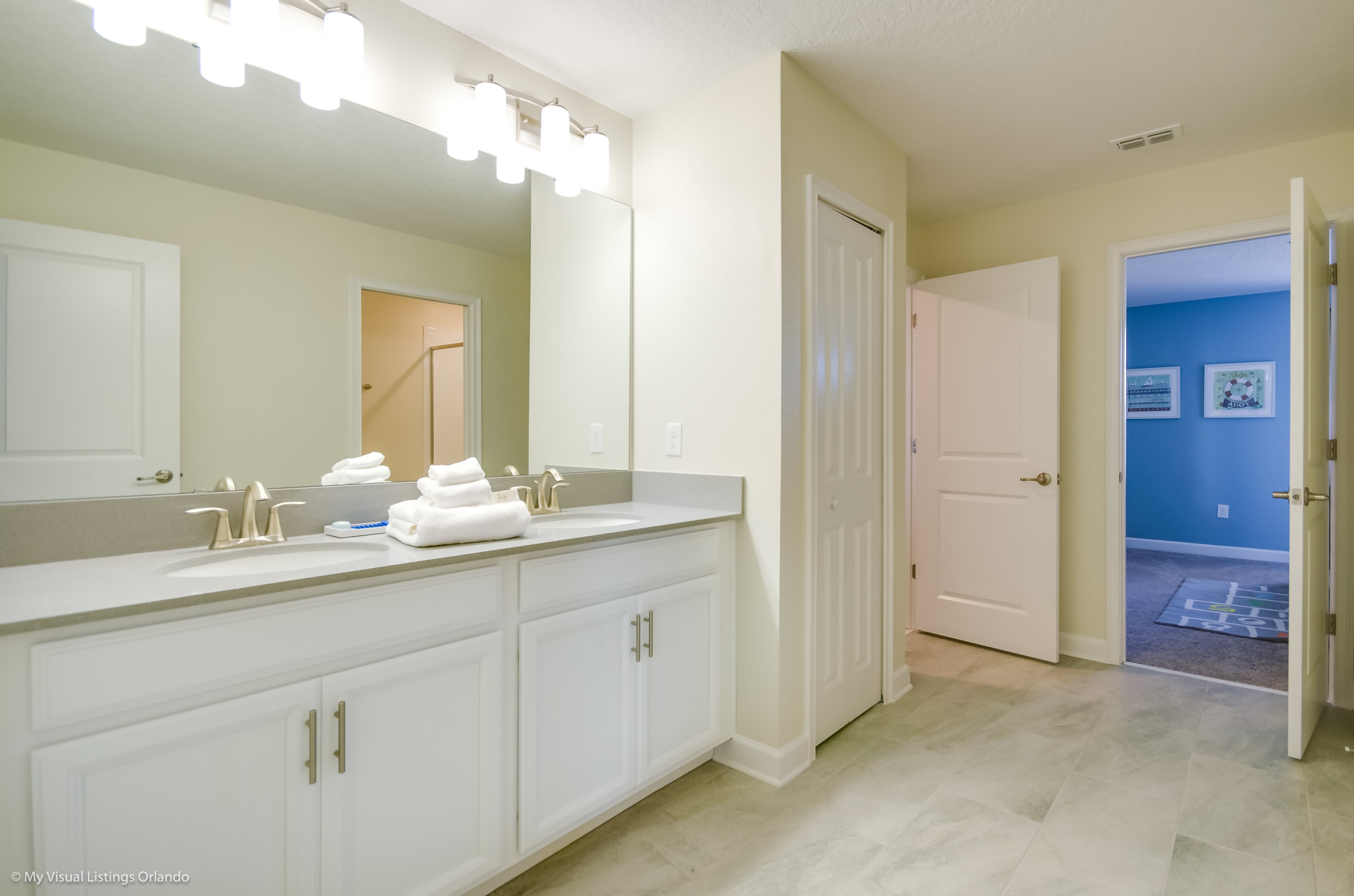 You will feel immediately relaxed as you enter our 8 bedroom, 5 bathroom executive home which sleeps up to 16 in style. We have paid great attention to every detail when we furnished this home and we hope you will enjoy it as much as we do with our own family. With 4 king bedrooms, 2 Queen and 2 Bedrooms with 2 twins beds , there is plenty of room for everyone to spread out and relax after a day out or just to stay in and take it easy. Each room has a different feel so all guests should be equally happy with their room, and all have wall mounted flat screen LED Tv’s. The dining room and living area offers plenty of space to congregate and enjoy meals together, and the bright and airy kitchen has all the appliances that you would expect in your own home. (There is also a full-size washer and dryer). You can also enjoy a game of pool in the game room, or watch a movie in the huge loft area, or leave the kids to play on the PlayStation. Or why not take a dip in the large pool or relax in the spa, even in the evening as the pool area is south facing? This home will bring all the excitement of Orlando to you, and have the entire group talking about your trip for months to come.