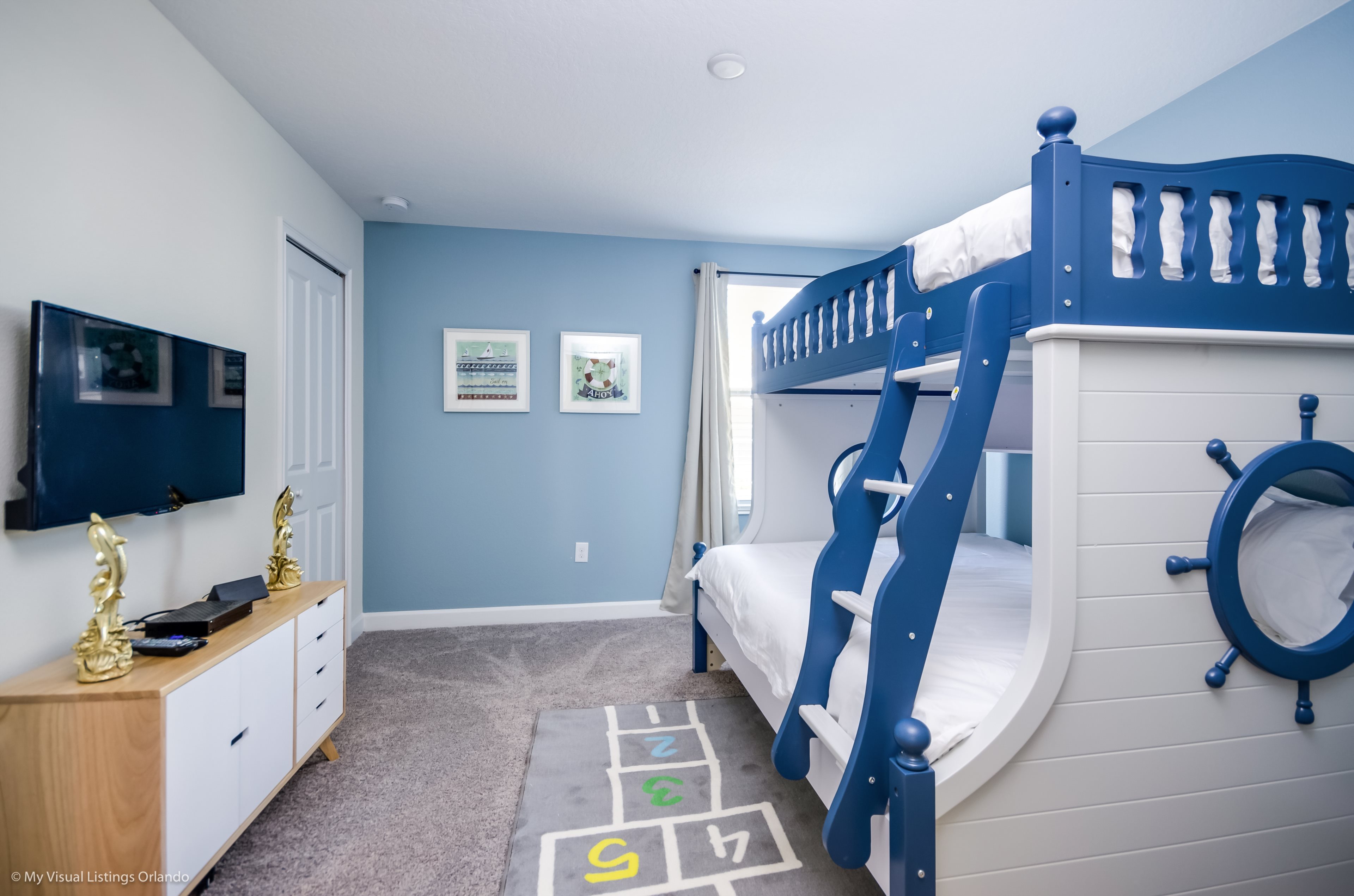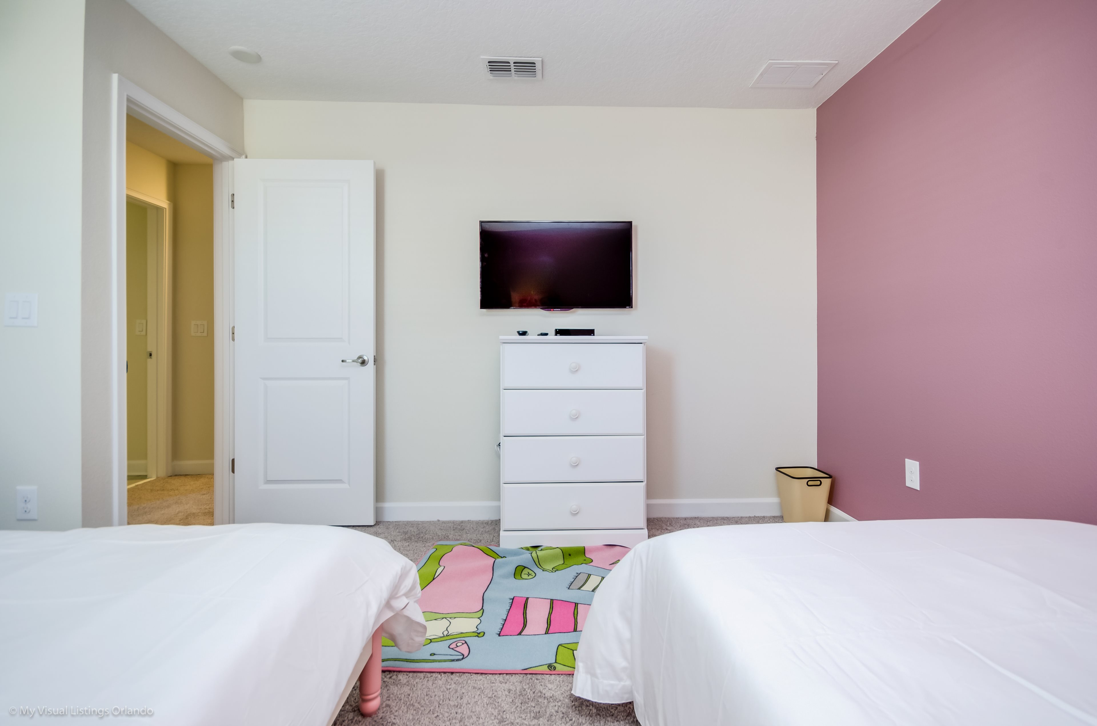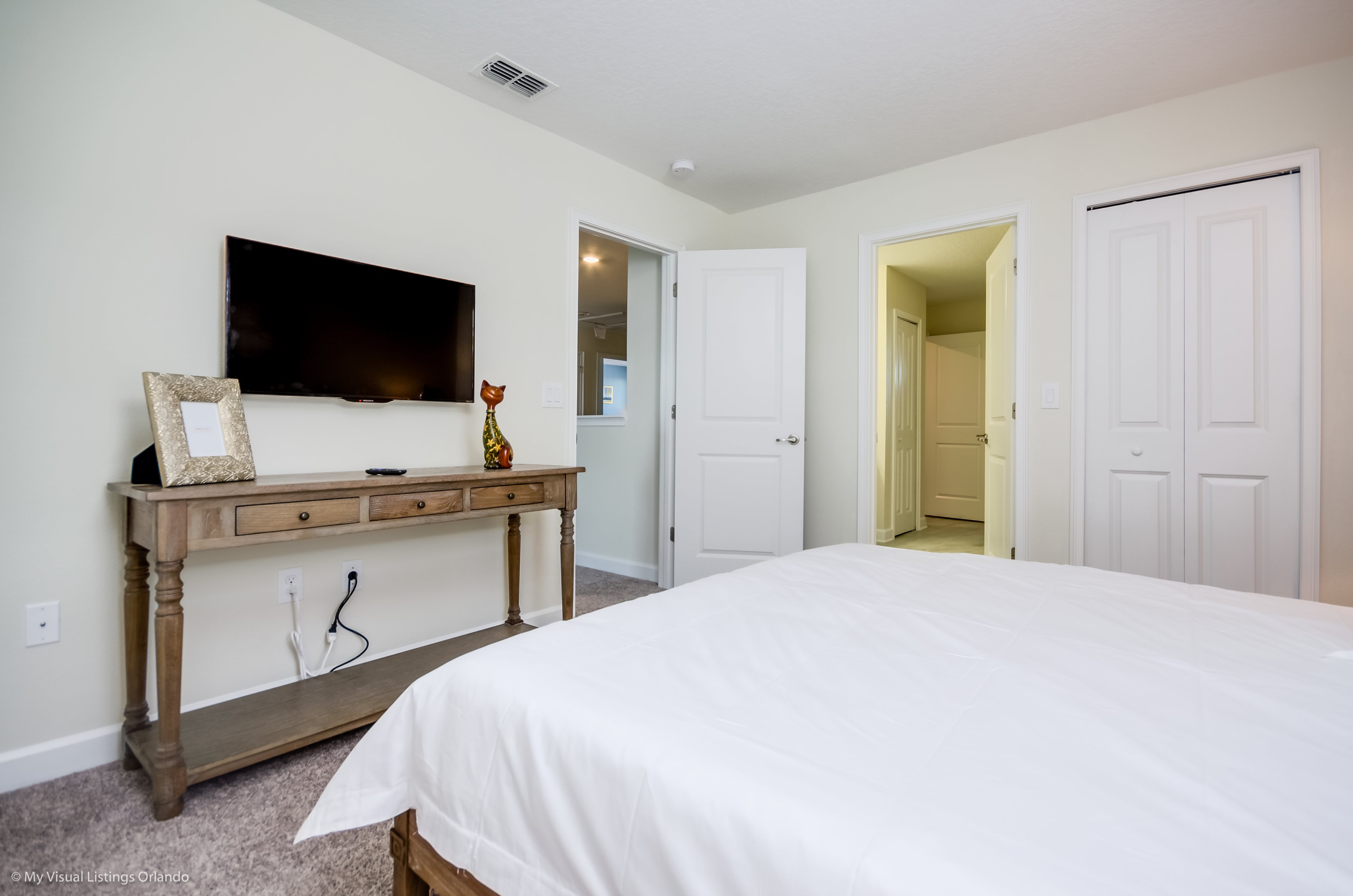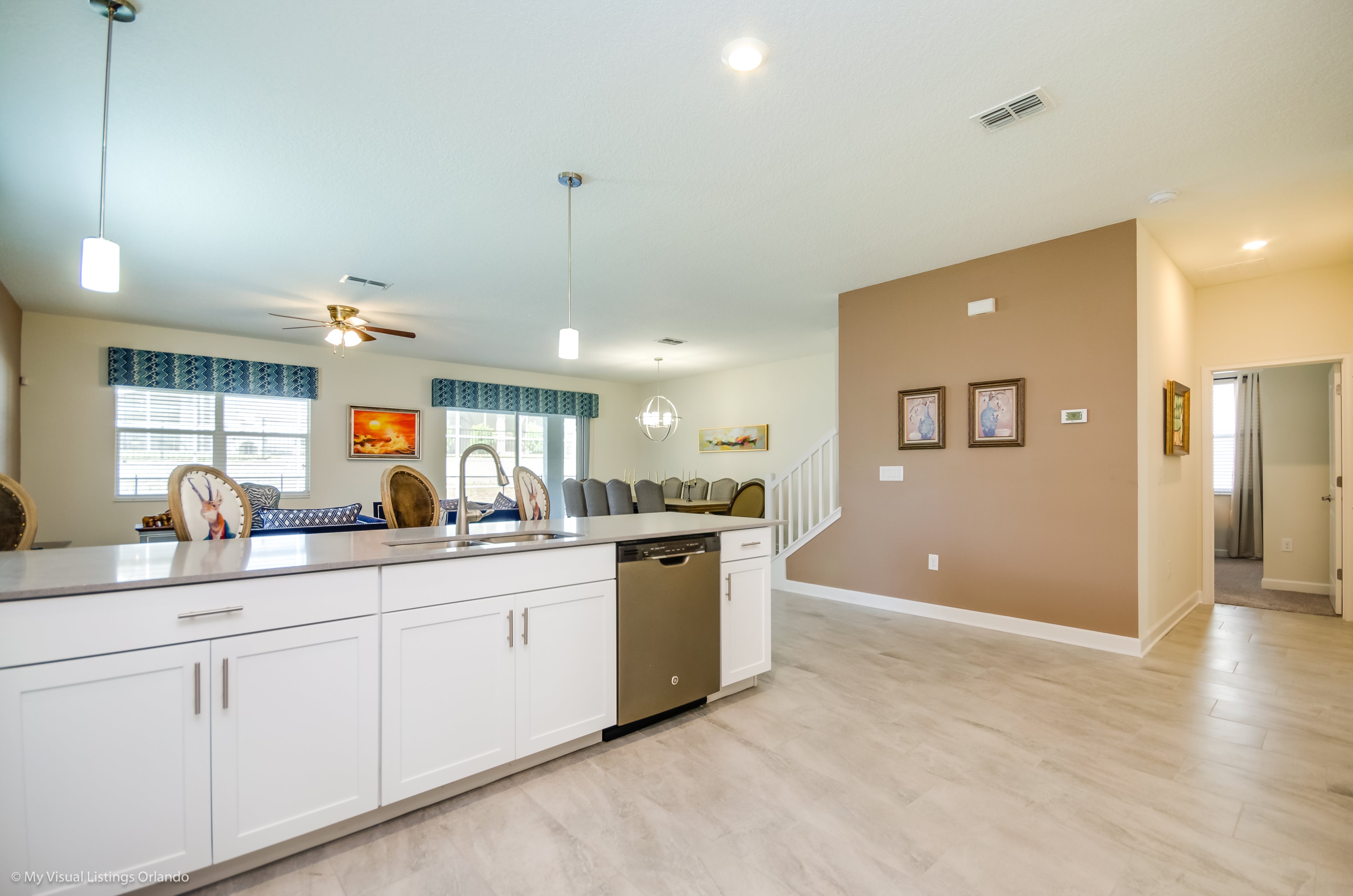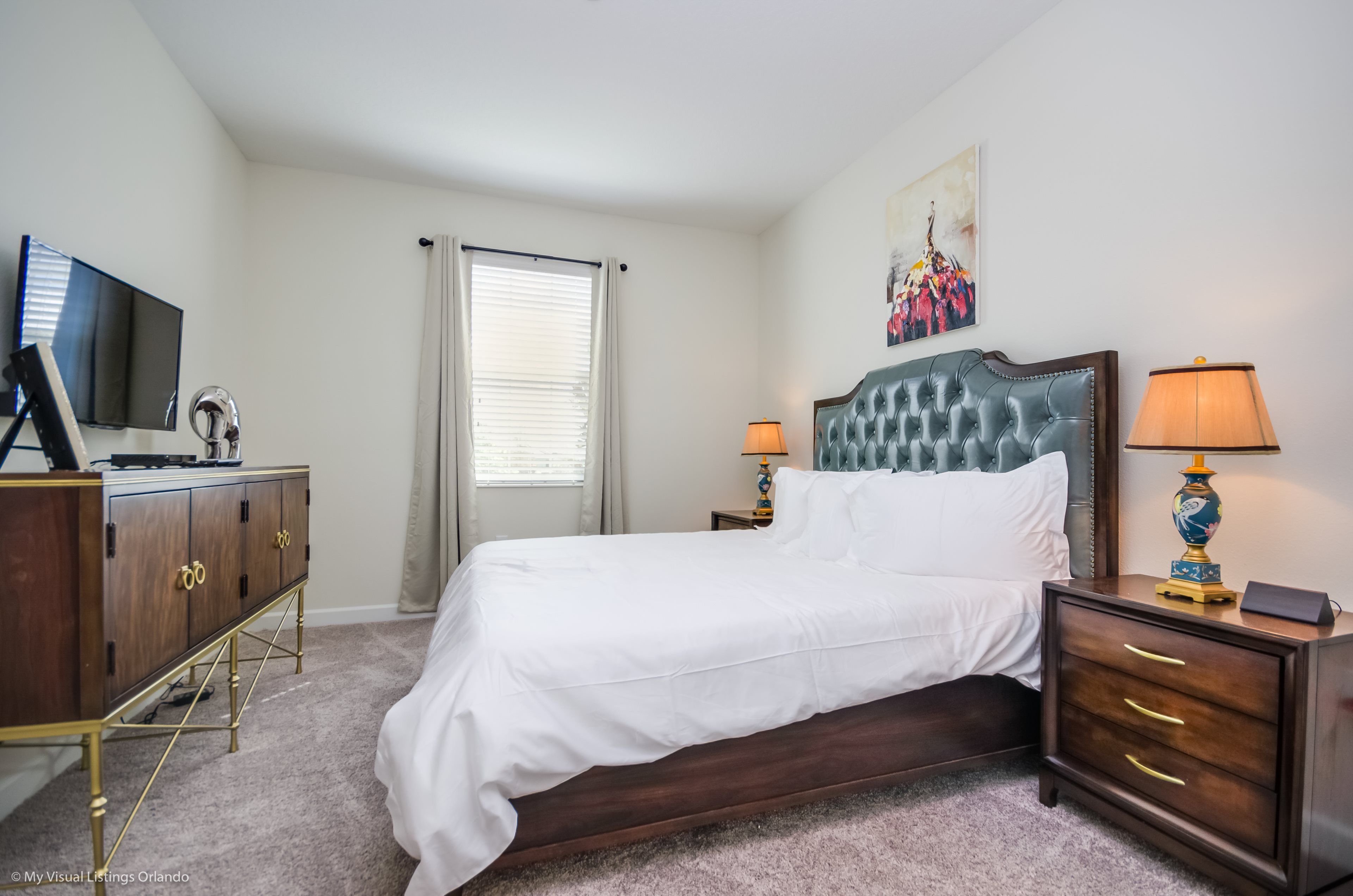 You will feel immediately relaxed as you enter our 8 bedroom, 5 bathroom executive home which sleeps up to 16 in style. We have paid great attention to every detail when we furnished this home and we hope you will enjoy it as much as we do with our own family. With 4 king bedrooms, 2 Queen and 2 Bedrooms with 2 twins beds , there is plenty of room for everyone to spread out and relax after a day out or just to stay in and take it easy. Each room has a different feel so all guests should be equally happy with their room, and all have wall mounted flat screen LED Tv’s. The dining room and living area offers plenty of space to congregate and enjoy meals together, and the bright and airy kitchen has all the appliances that you would expect in your own home. (There is also a full-size washer and dryer). You can also enjoy a game of pool in the game room, or watch a movie in the huge loft area, or leave the kids to play on the PlayStation. Or why not take a dip in the large pool or relax in the spa, even in the evening as the pool area is south facing? This home will bring all the excitement of Orlando to you, and have the entire group talking about your trip for months to come.