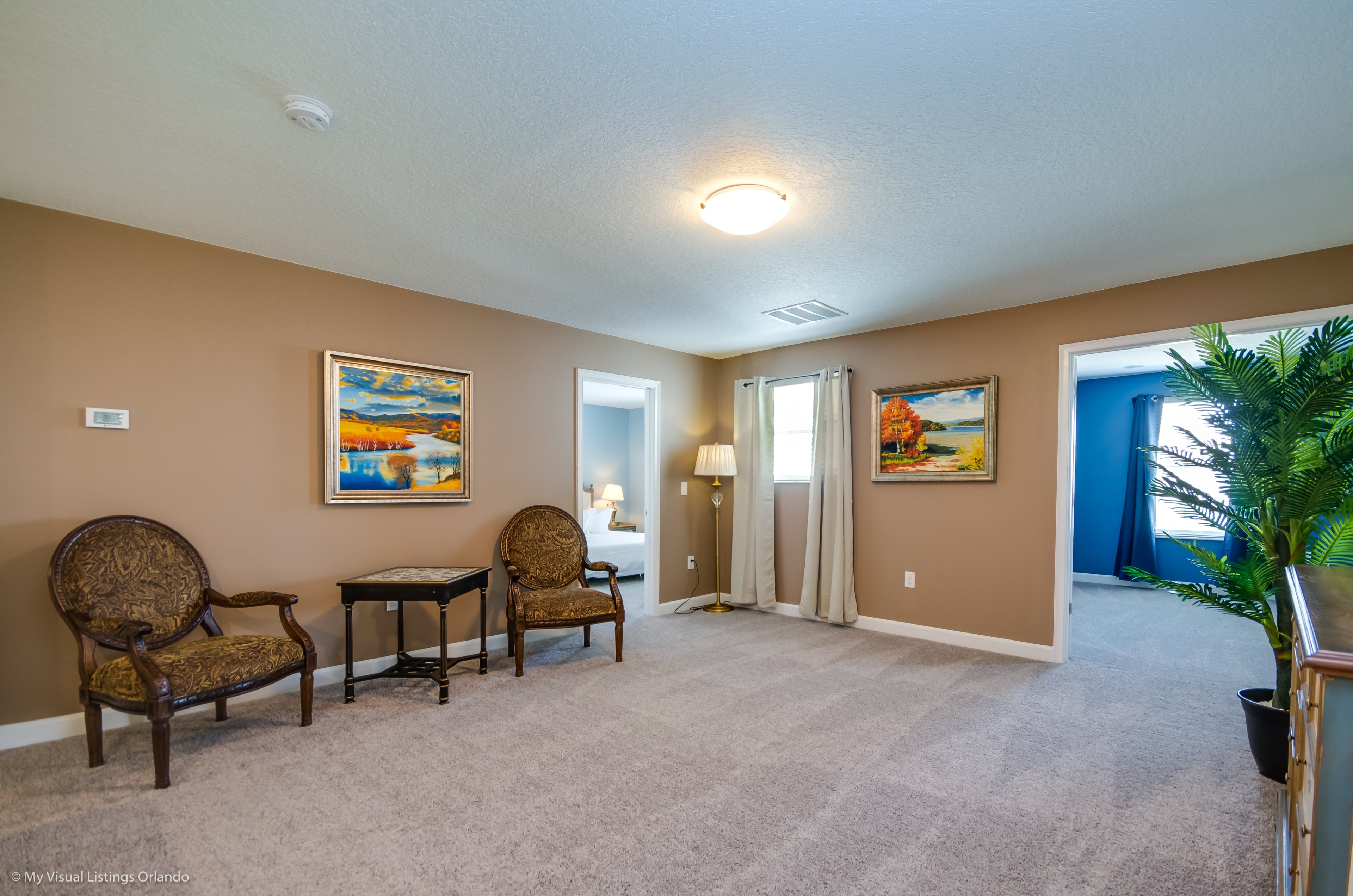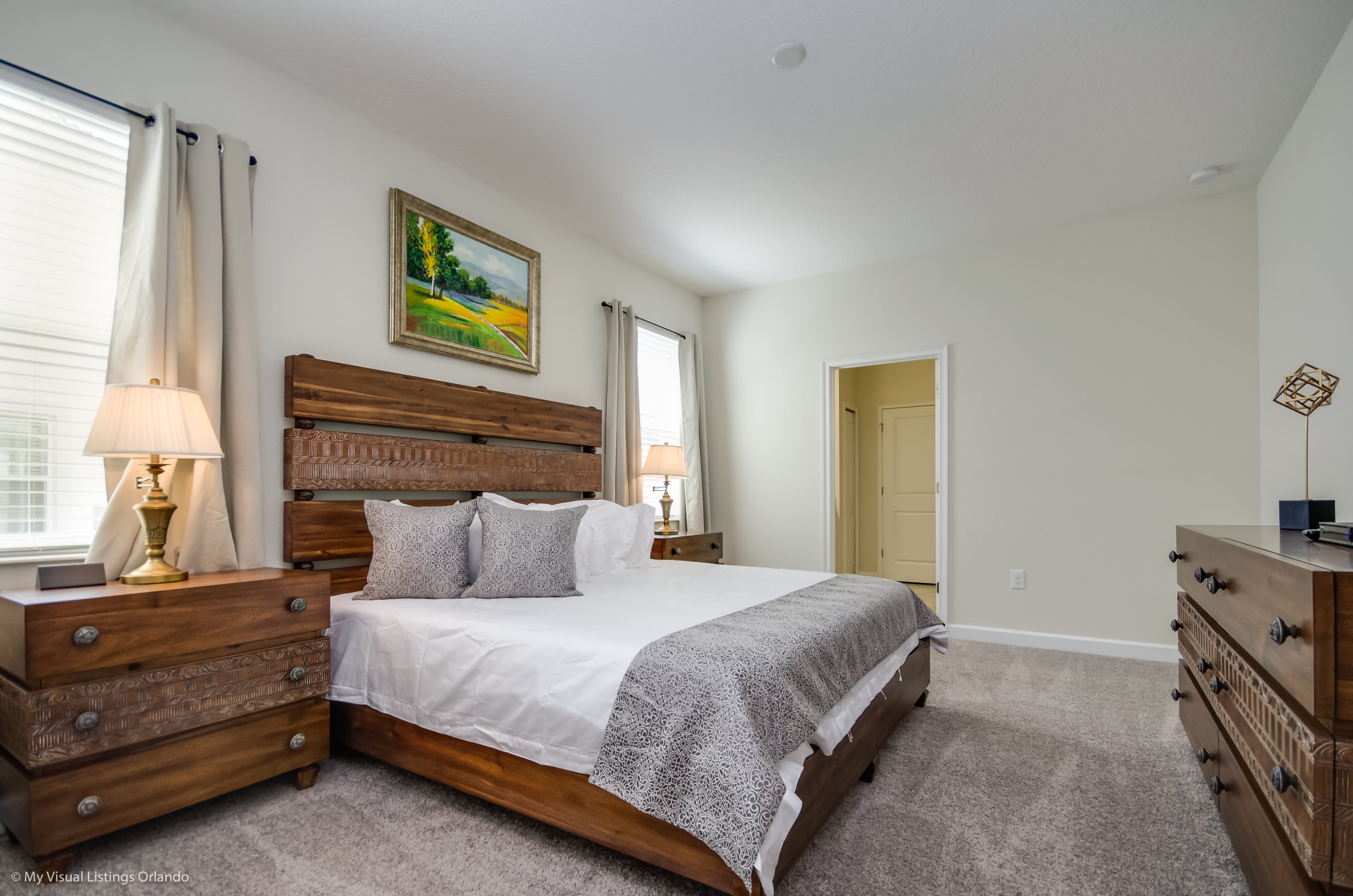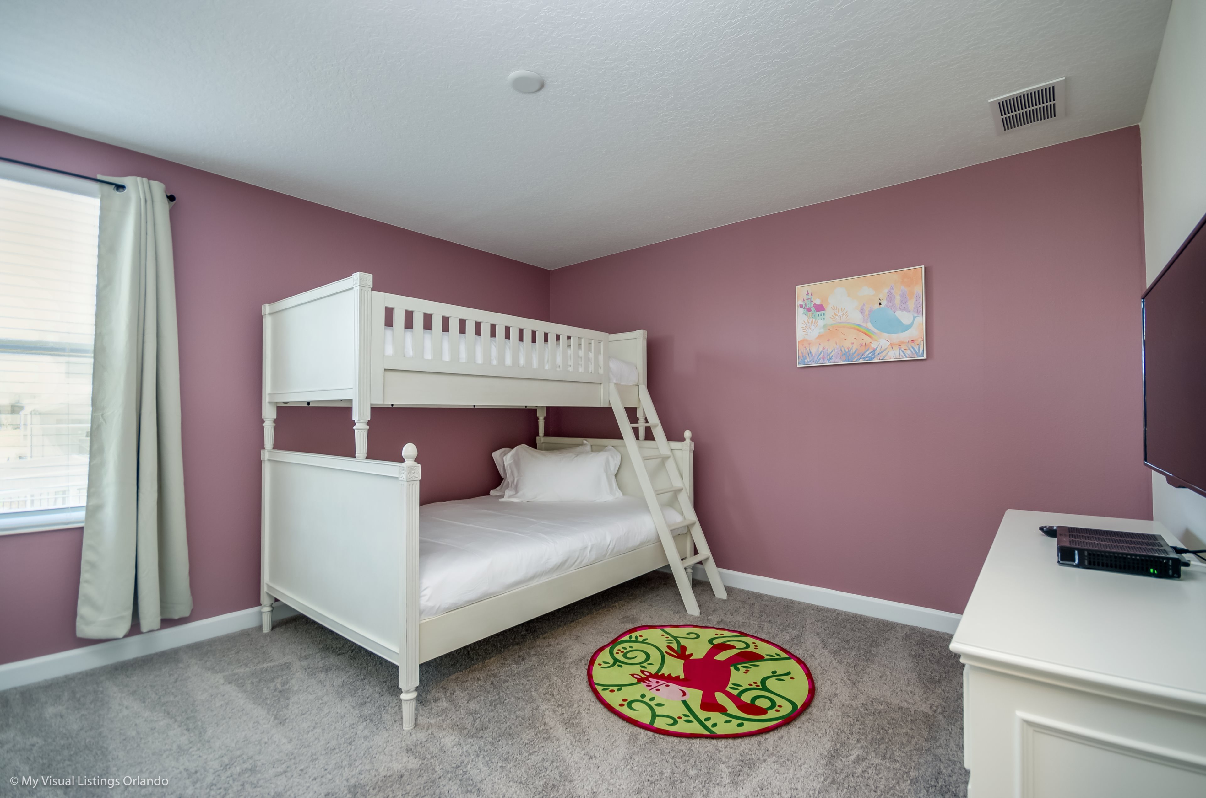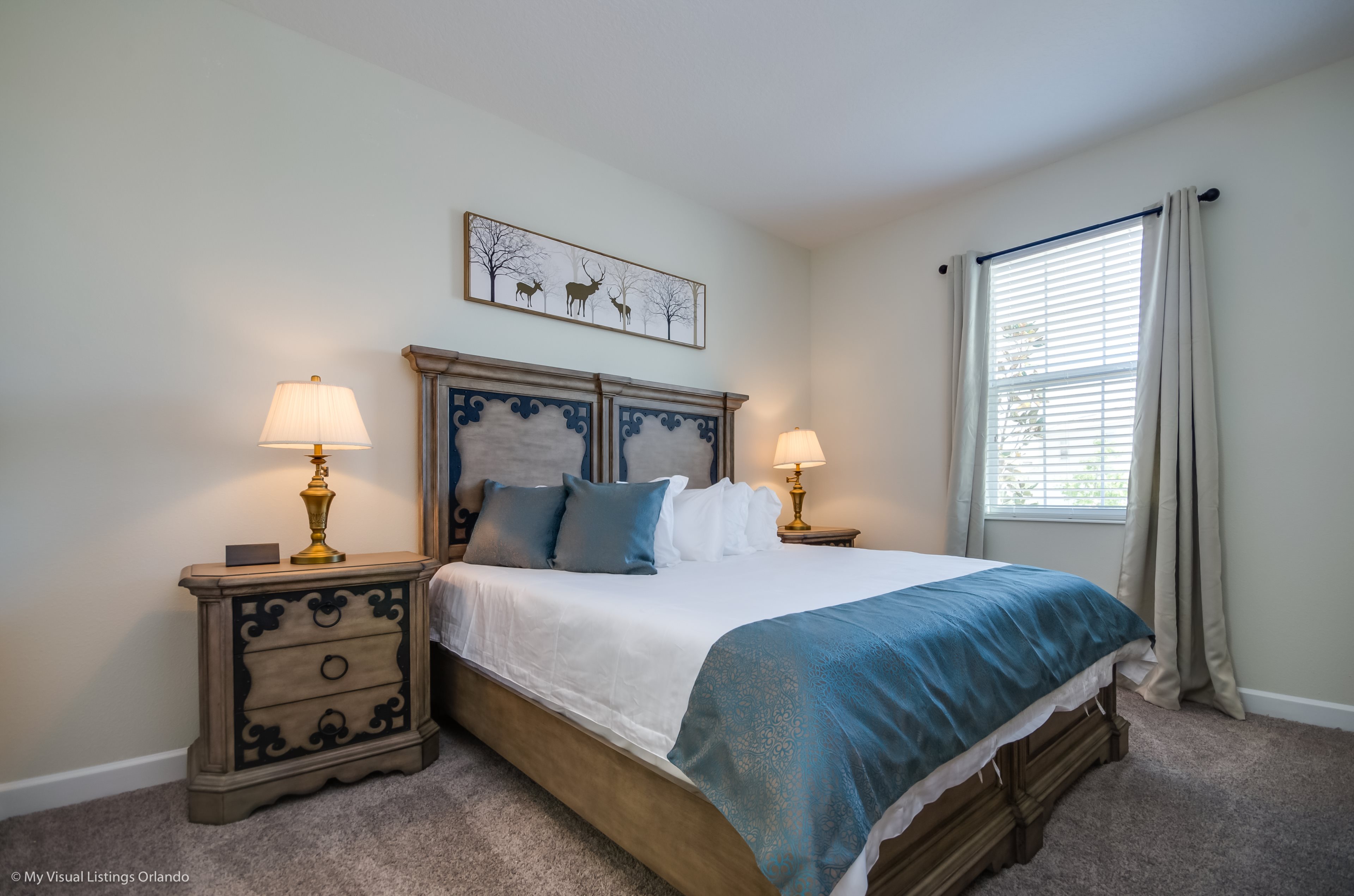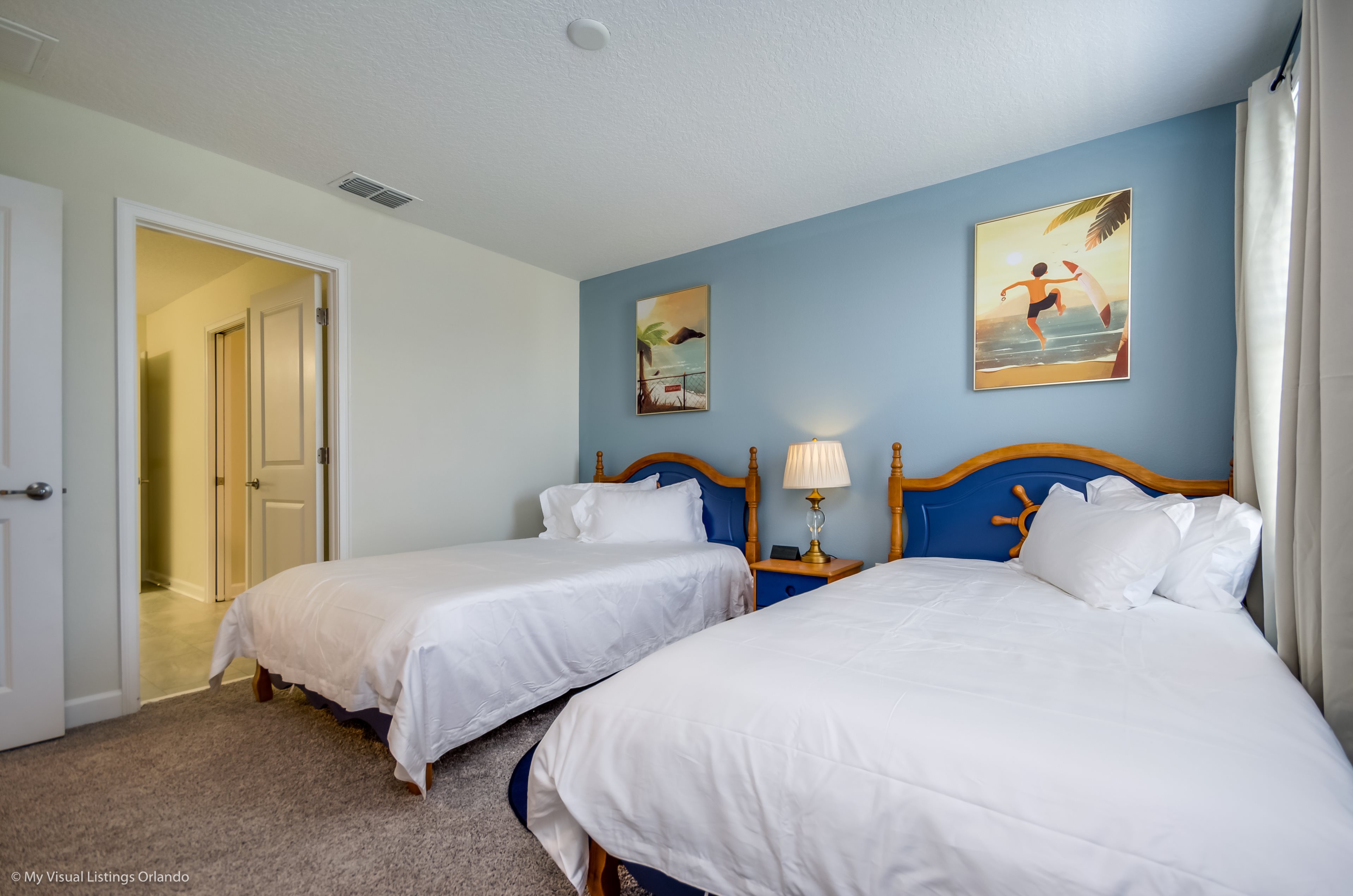 You will feel immediately relaxed as you enter our 8 bedroom, 5 bathroom executive home which sleeps up to 16 in style. We have paid great attention to every detail when we furnished this home and we hope you will enjoy it as much as we do with our own family. With 4 king bedrooms, 2 Queen and 2 Bedrooms with 2 twins beds , there is plenty of room for everyone to spread out and relax after a day out or just to stay in and take it easy. Each room has a different feel so all guests should be equally happy with their room, and all have wall mounted flat screen LED Tv’s. The dining room and living area offers plenty of space to congregate and enjoy meals together, and the bright and airy kitchen has all the appliances that you would expect in your own home. (There is also a full-size washer and dryer). You can also enjoy a game of pool in the game room, or watch a movie in the huge loft area, or leave the kids to play on the PlayStation. Or why not take a dip in the large pool or relax in the spa, even in the evening as the pool area is south facing? This home will bring all the excitement of Orlando to you, and have the entire group talking about your trip for months to come.