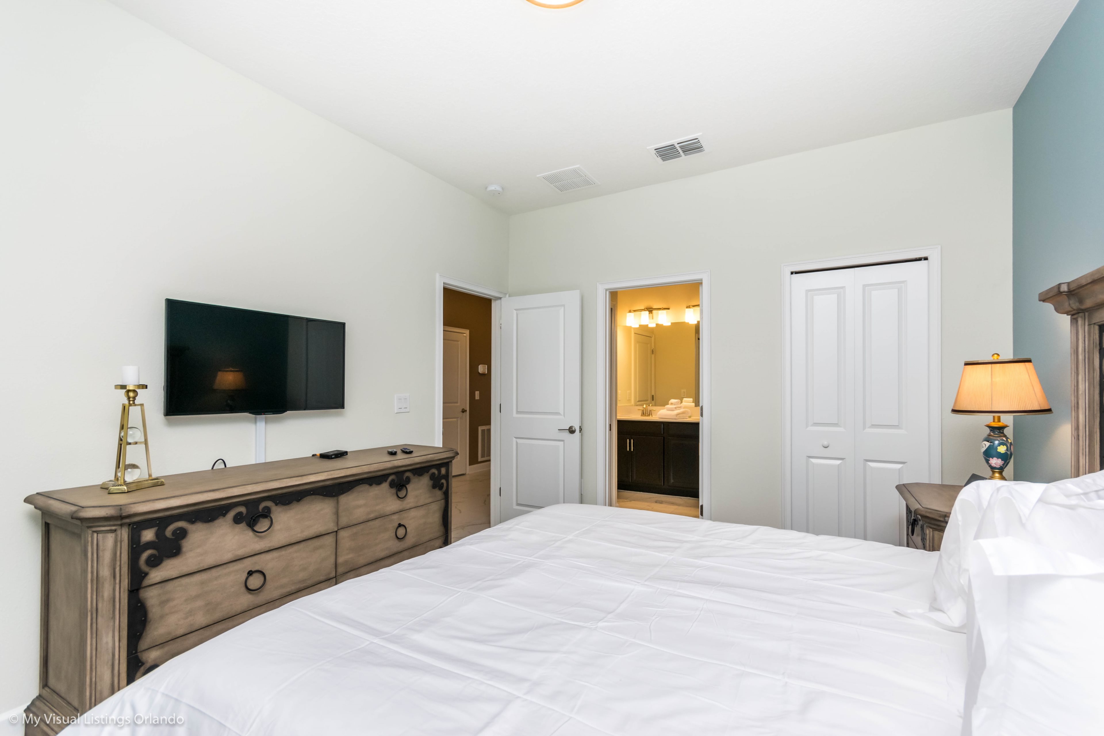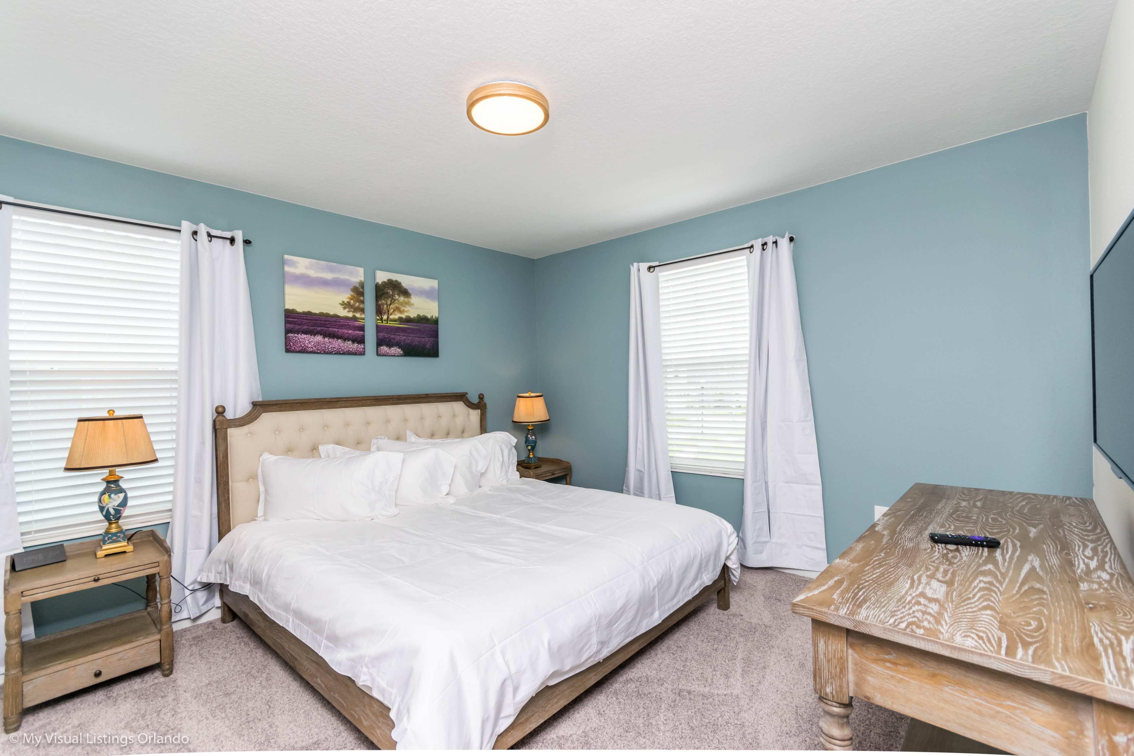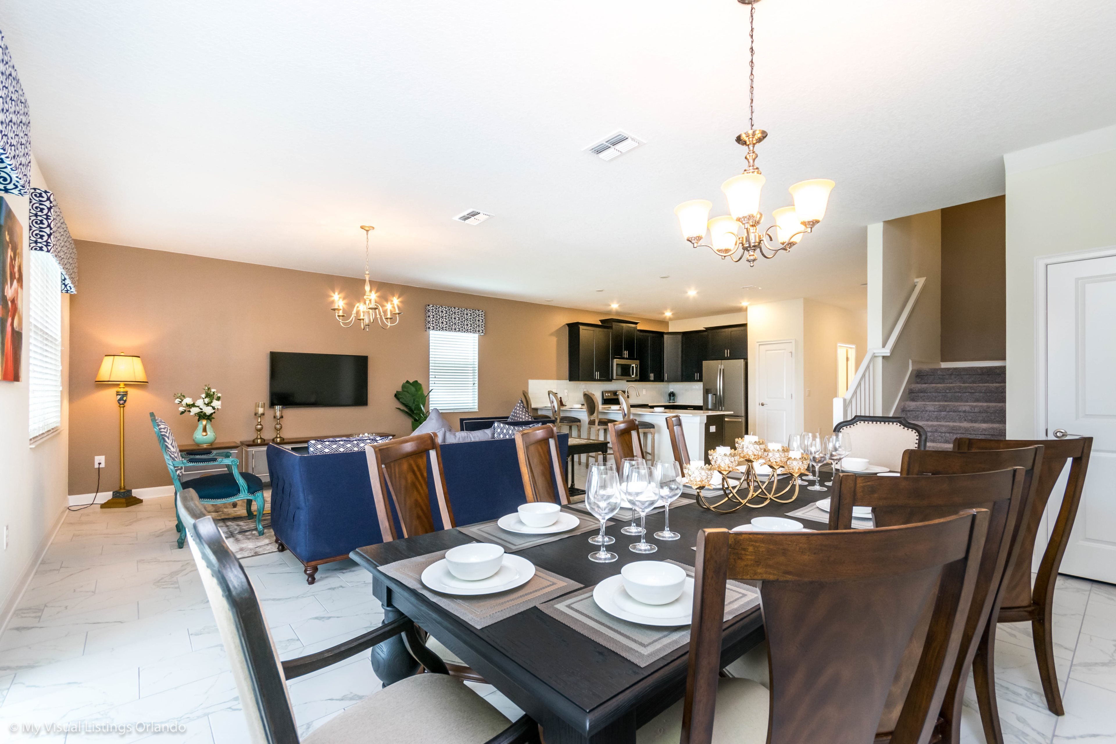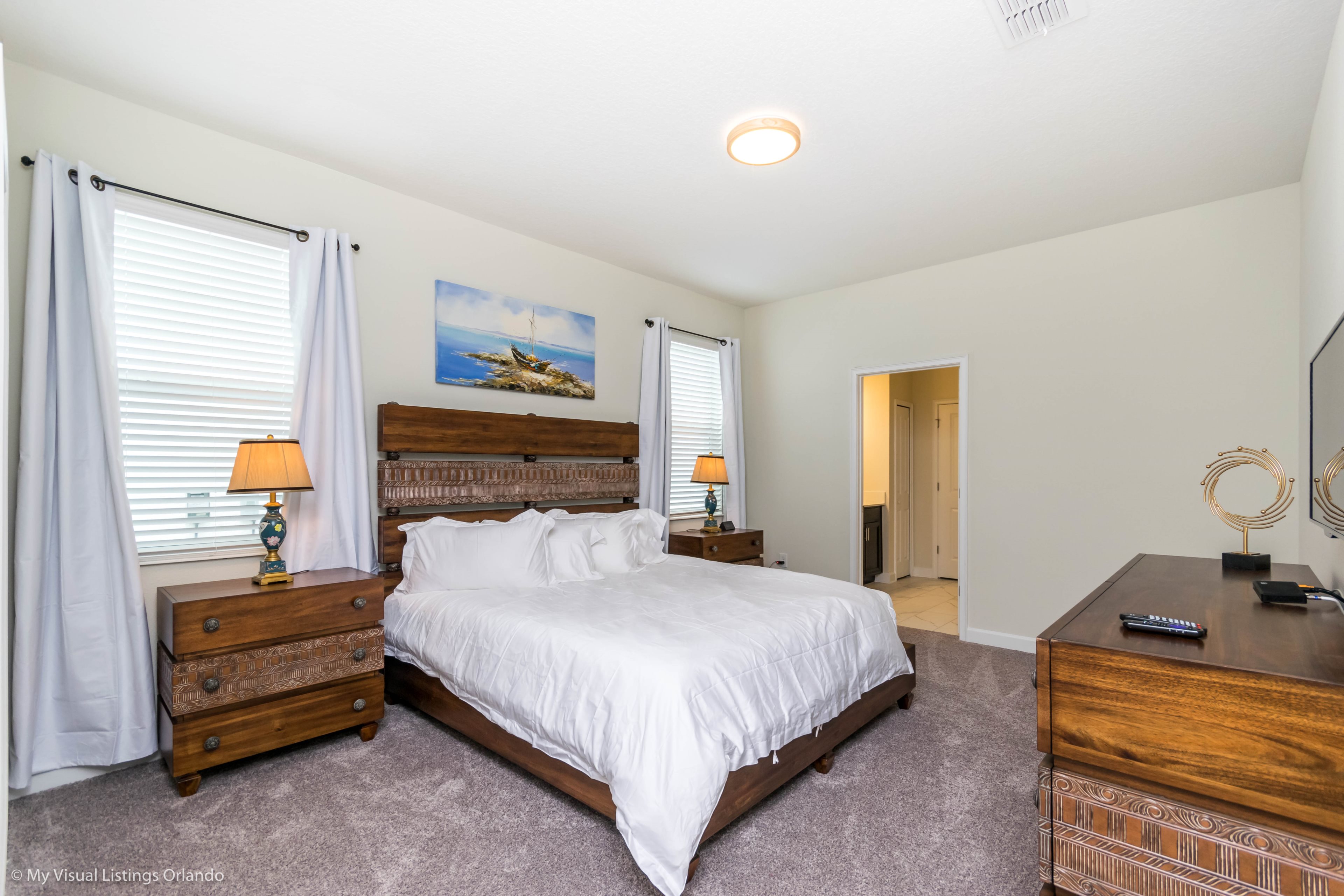You will feel immediately relaxed as you enter our 8 bedroom, 5 bathroom executive home which sleeps up to 16 in style. We have paid great attention to every detail when we furnished this home and we hope you will enjoy it as much as we do with our own family. With 4 king bedrooms, 2 Queen and 2 Bedrooms with 2 twins beds , there is plenty of room for everyone to spread out and relax after a day out or just to stay in and take it easy. Each room has a different feel so all guests should be equally happy with their room, and all have wall mounted flat screen LED Tv’s. The dining room and living area offers plenty of space to congregate and enjoy meals together, and the bright and airy kitchen has all the appliances that you would expect in your own home. (There is also a full-size washer and dryer). You can also enjoy a game of pool in the game room, or watch a movie in the huge loft area, or leave the kids to play on the PlayStation. Or why not take a dip in the large pool or relax in the spa, even in the evening as the pool area is south facing? This home will bring all the excitement of Orlando to you, and have the entire group talking about your trip for months to come.