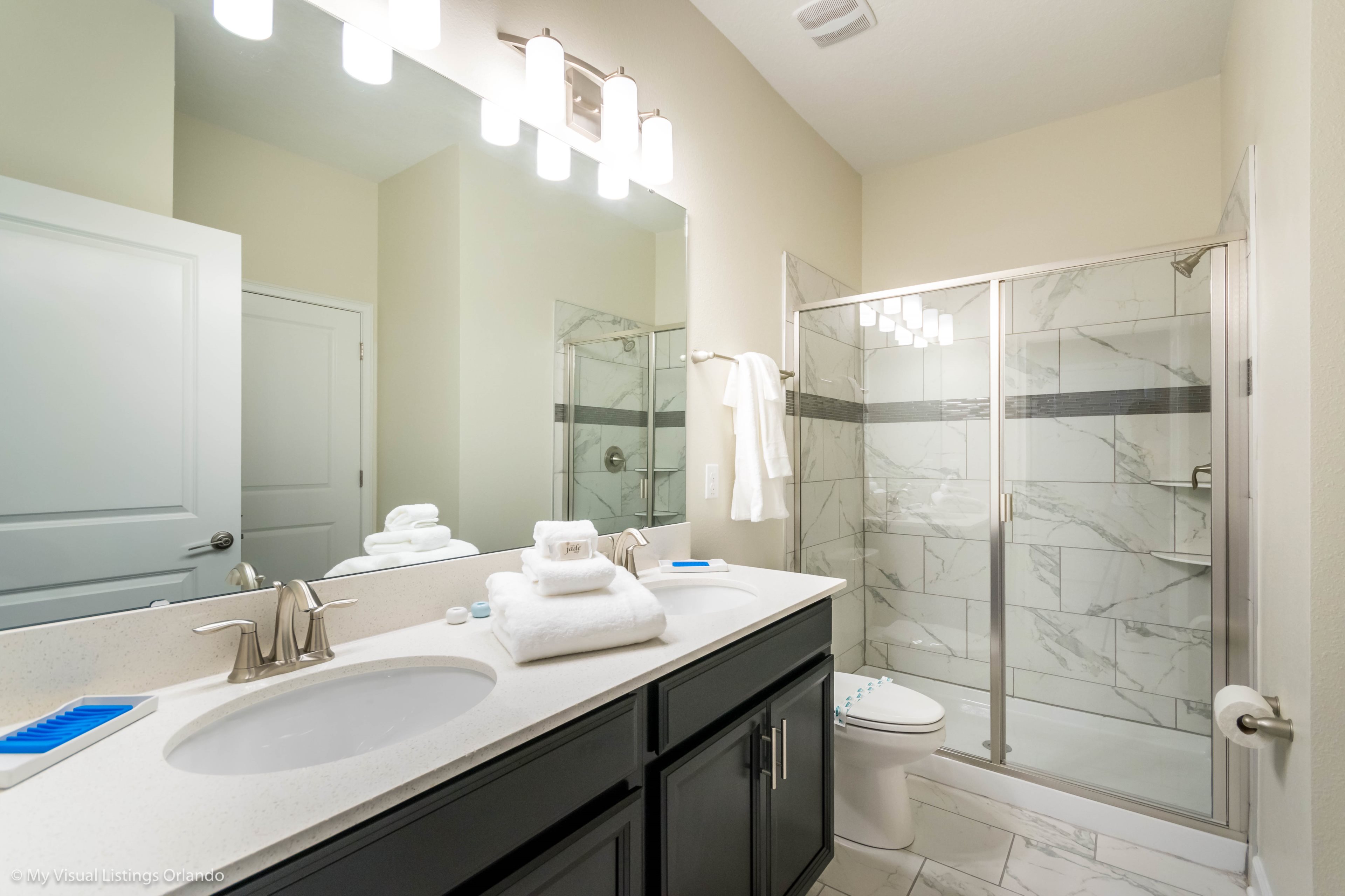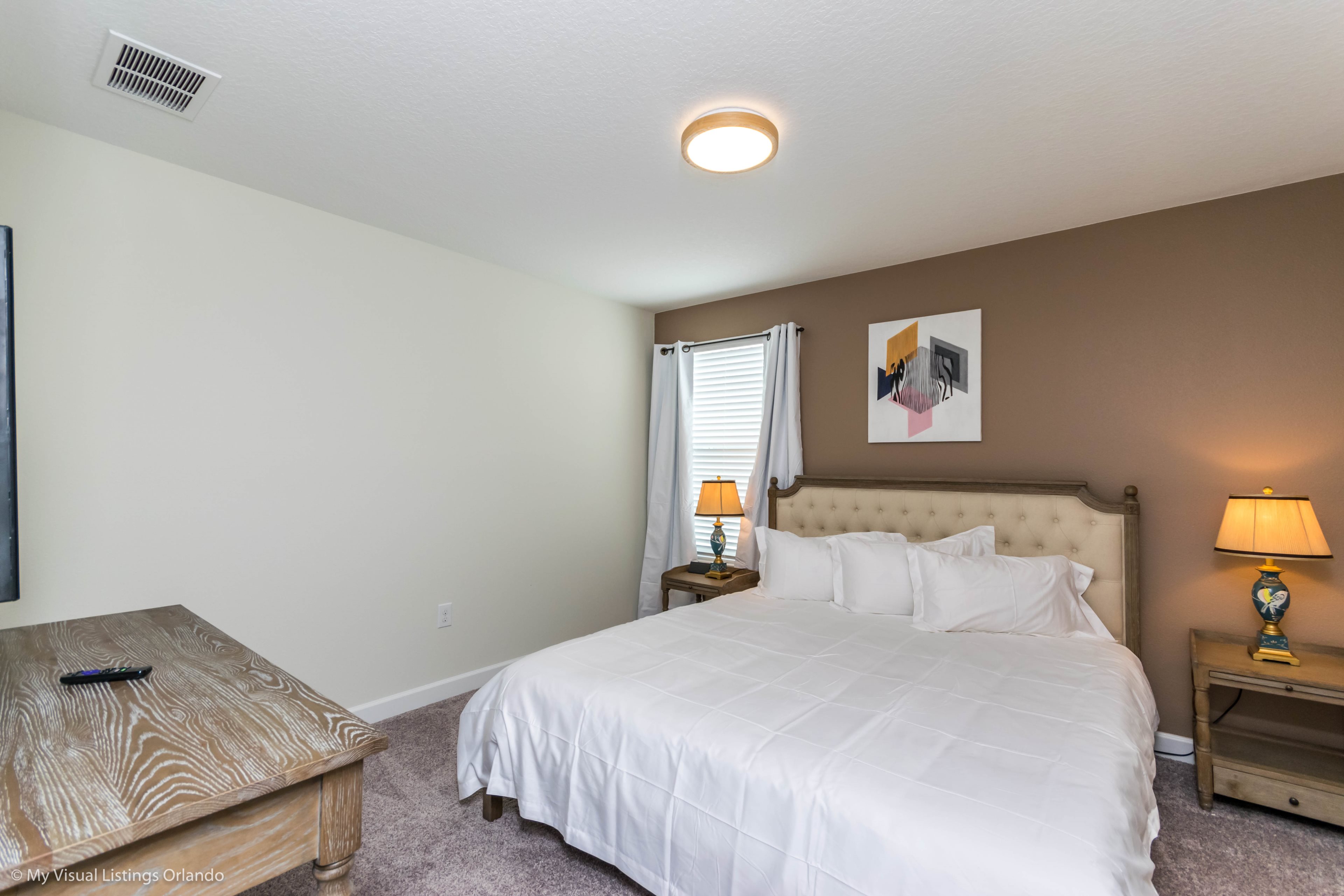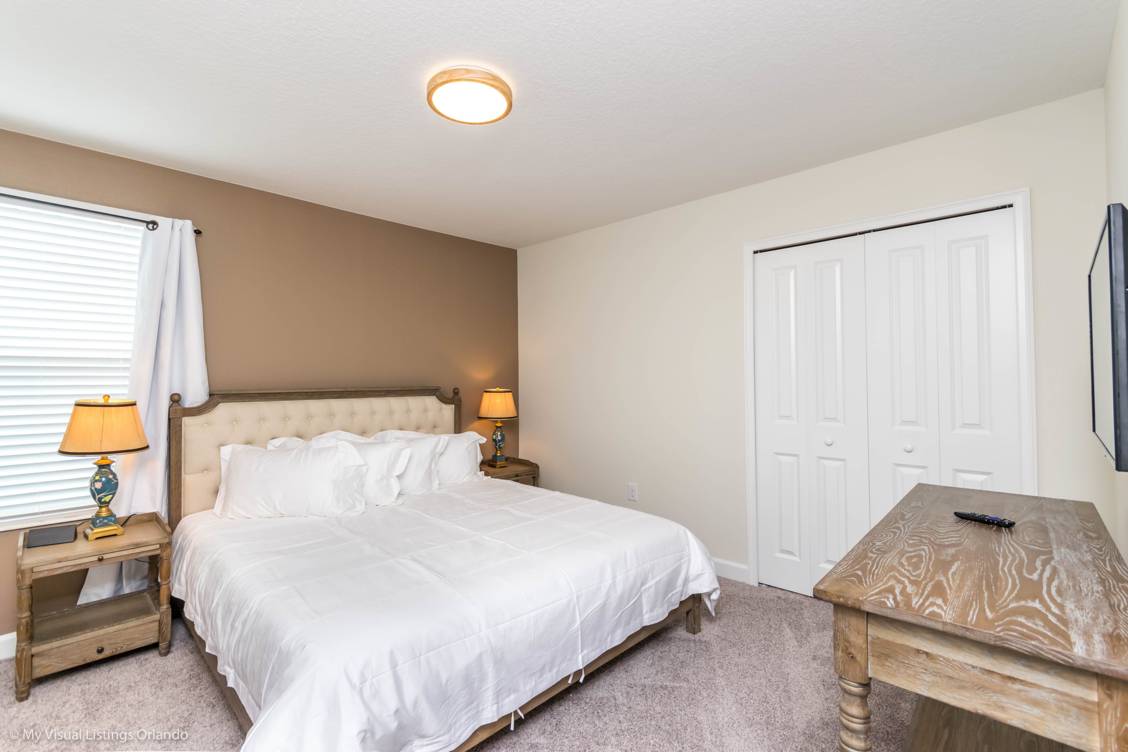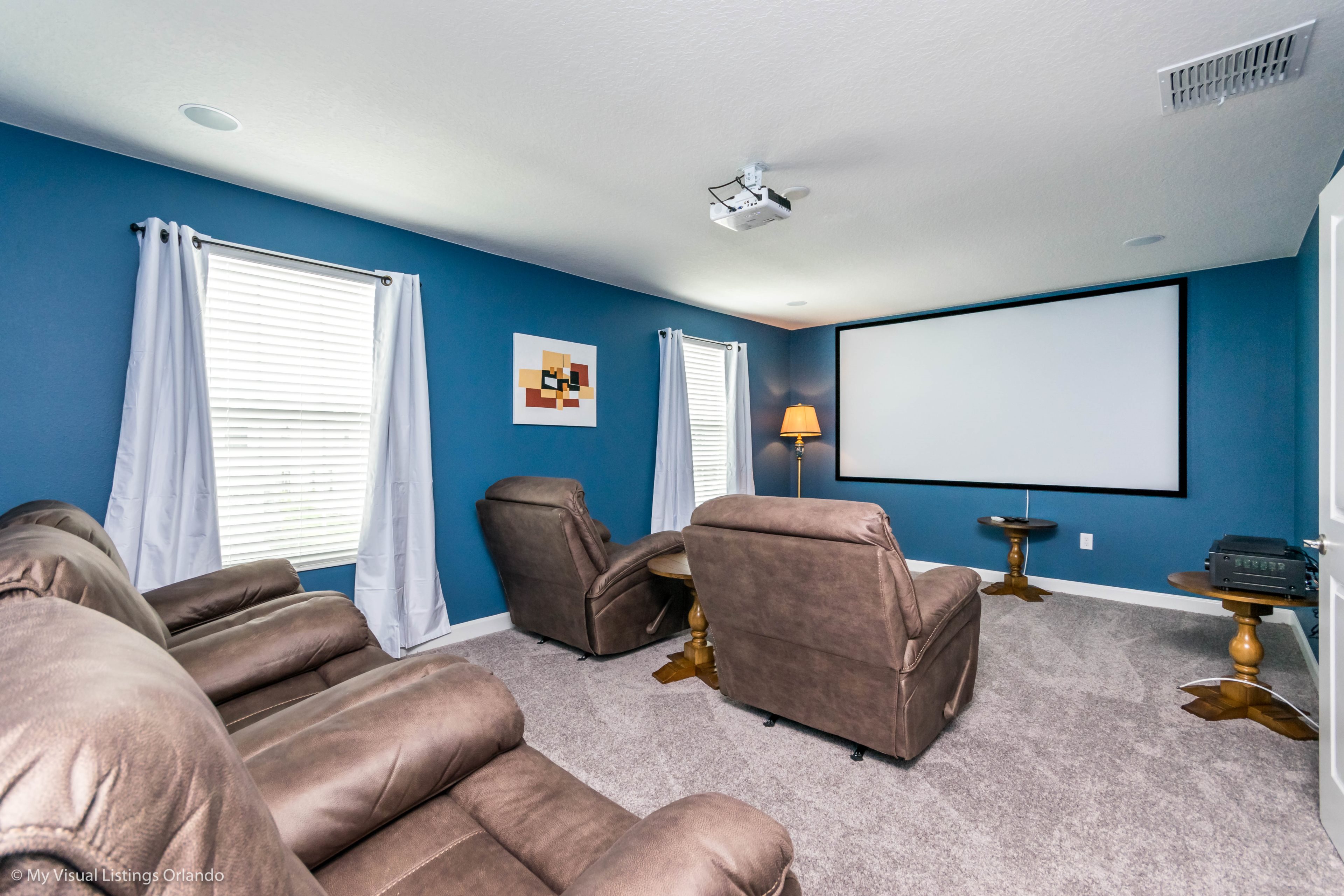 You will feel immediately relaxed as you enter our 8 bedroom, 5 bathroom executive home which sleeps up to 16 in style. We have paid great attention to every detail when we furnished this home and we hope you will enjoy it as much as we do with our own family. With 4 king bedrooms, 2 Queen and 2 Bedrooms with 2 twins beds , there is plenty of room for everyone to spread out and relax after a day out or just to stay in and take it easy. Each room has a different feel so all guests should be equally happy with their room, and all have wall mounted flat screen LED Tv’s. The dining room and living area offers plenty of space to congregate and enjoy meals together, and the bright and airy kitchen has all the appliances that you would expect in your own home. (There is also a full-size washer and dryer). You can also enjoy a game of pool in the game room, or watch a movie in the huge loft area, or leave the kids to play on the PlayStation. Or why not take a dip in the large pool or relax in the spa, even in the evening as the pool area is south facing? This home will bring all the excitement of Orlando to you, and have the entire group talking about your trip for months to come.