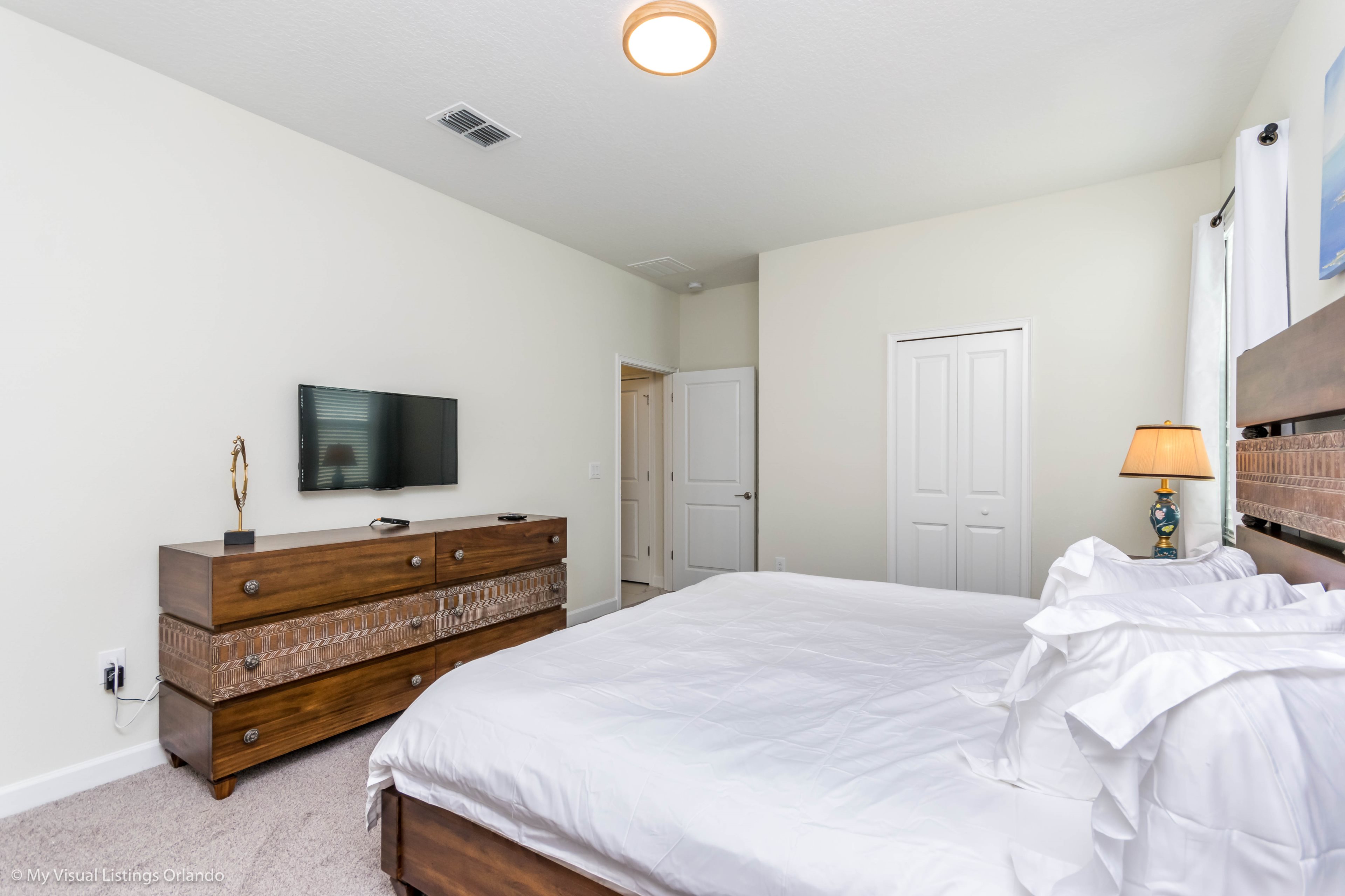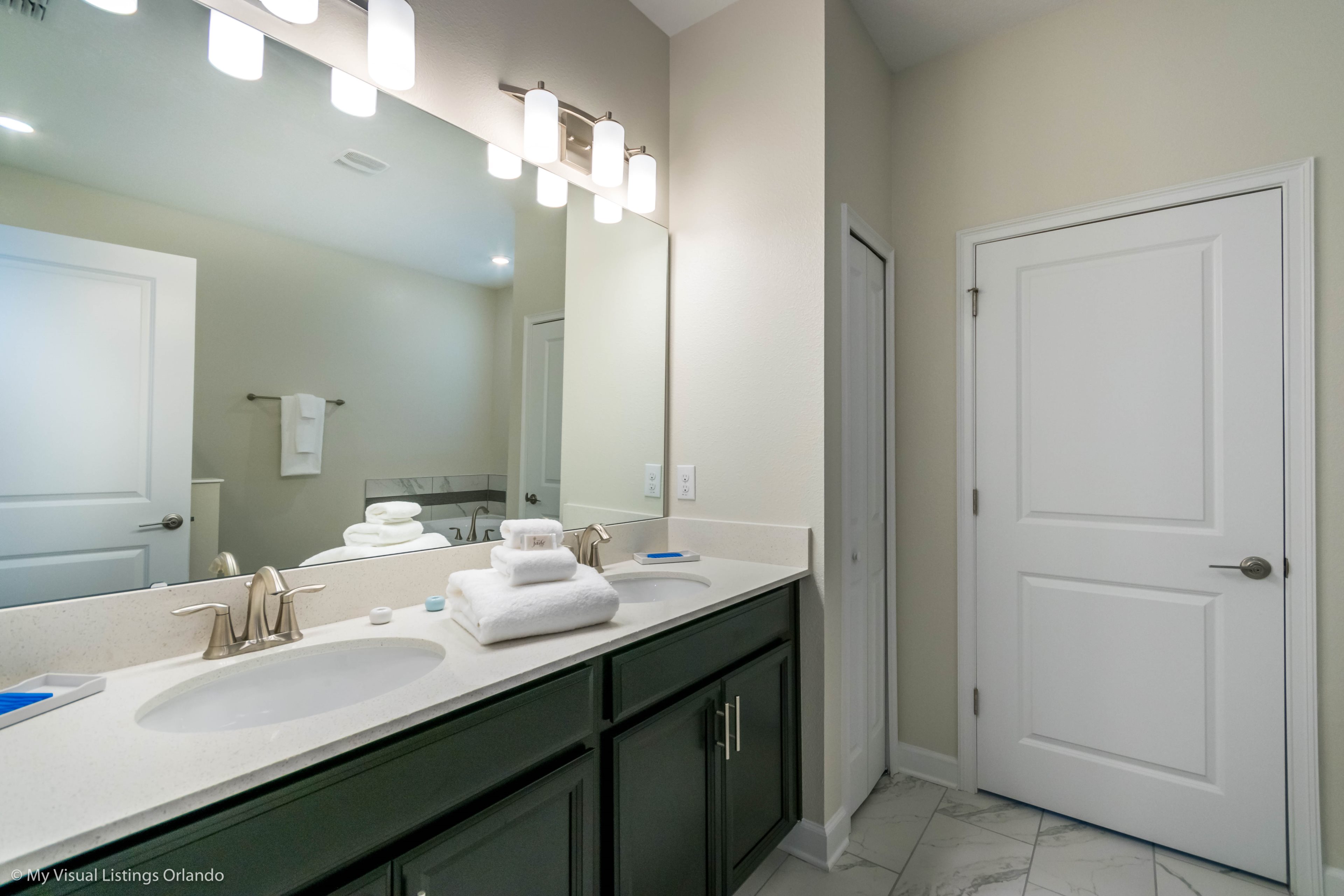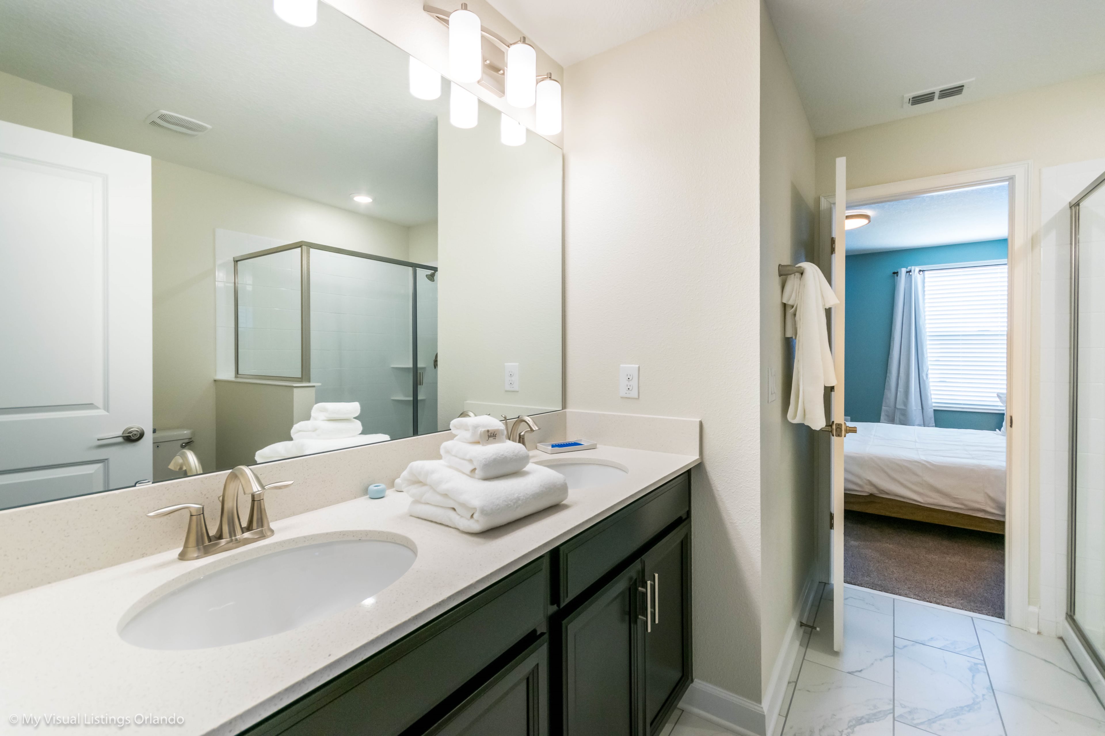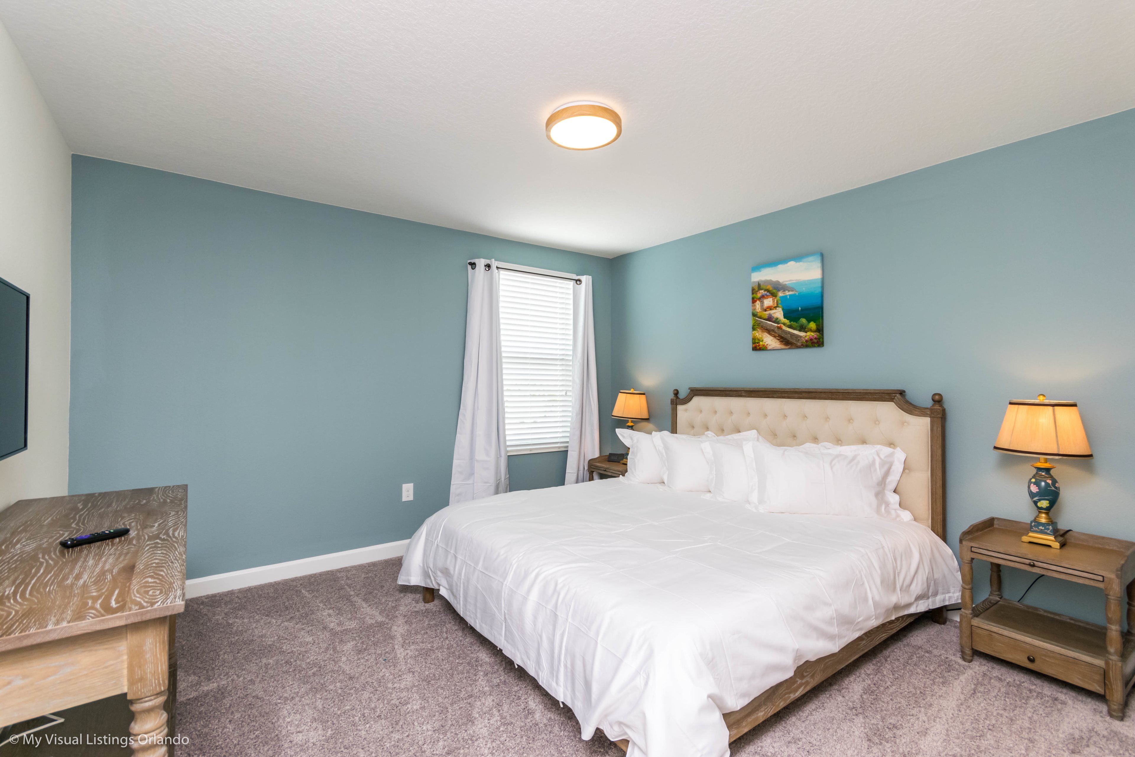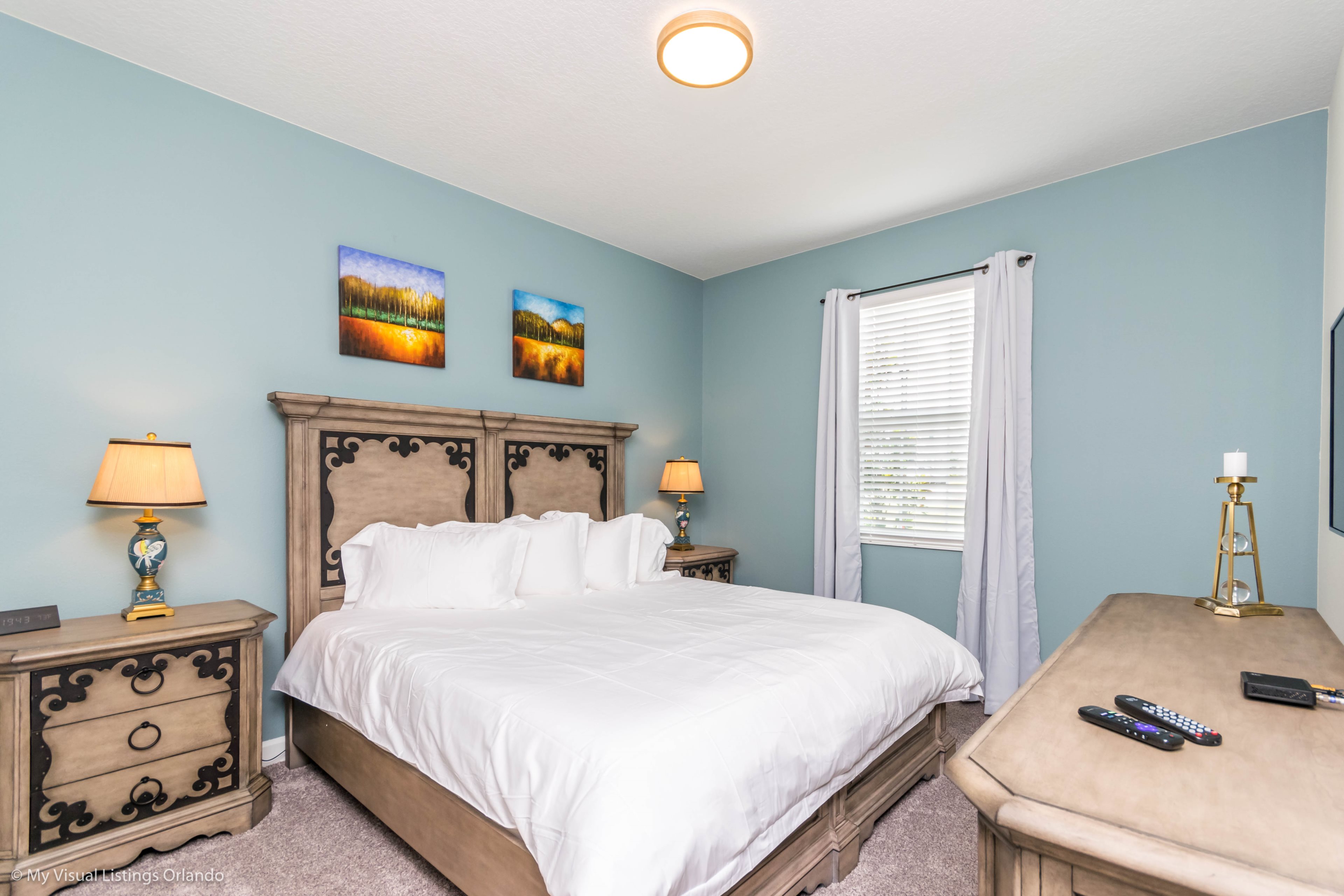 You will feel immediately relaxed as you enter our 8 bedroom, 5 bathroom executive home which sleeps up to 16 in style. We have paid great attention to every detail when we furnished this home and we hope you will enjoy it as much as we do with our own family. With 4 king bedrooms, 2 Queen and 2 Bedrooms with 2 twins beds , there is plenty of room for everyone to spread out and relax after a day out or just to stay in and take it easy. Each room has a different feel so all guests should be equally happy with their room, and all have wall mounted flat screen LED Tv’s. The dining room and living area offers plenty of space to congregate and enjoy meals together, and the bright and airy kitchen has all the appliances that you would expect in your own home. (There is also a full-size washer and dryer). You can also enjoy a game of pool in the game room, or watch a movie in the huge loft area, or leave the kids to play on the PlayStation. Or why not take a dip in the large pool or relax in the spa, even in the evening as the pool area is south facing? This home will bring all the excitement of Orlando to you, and have the entire group talking about your trip for months to come.