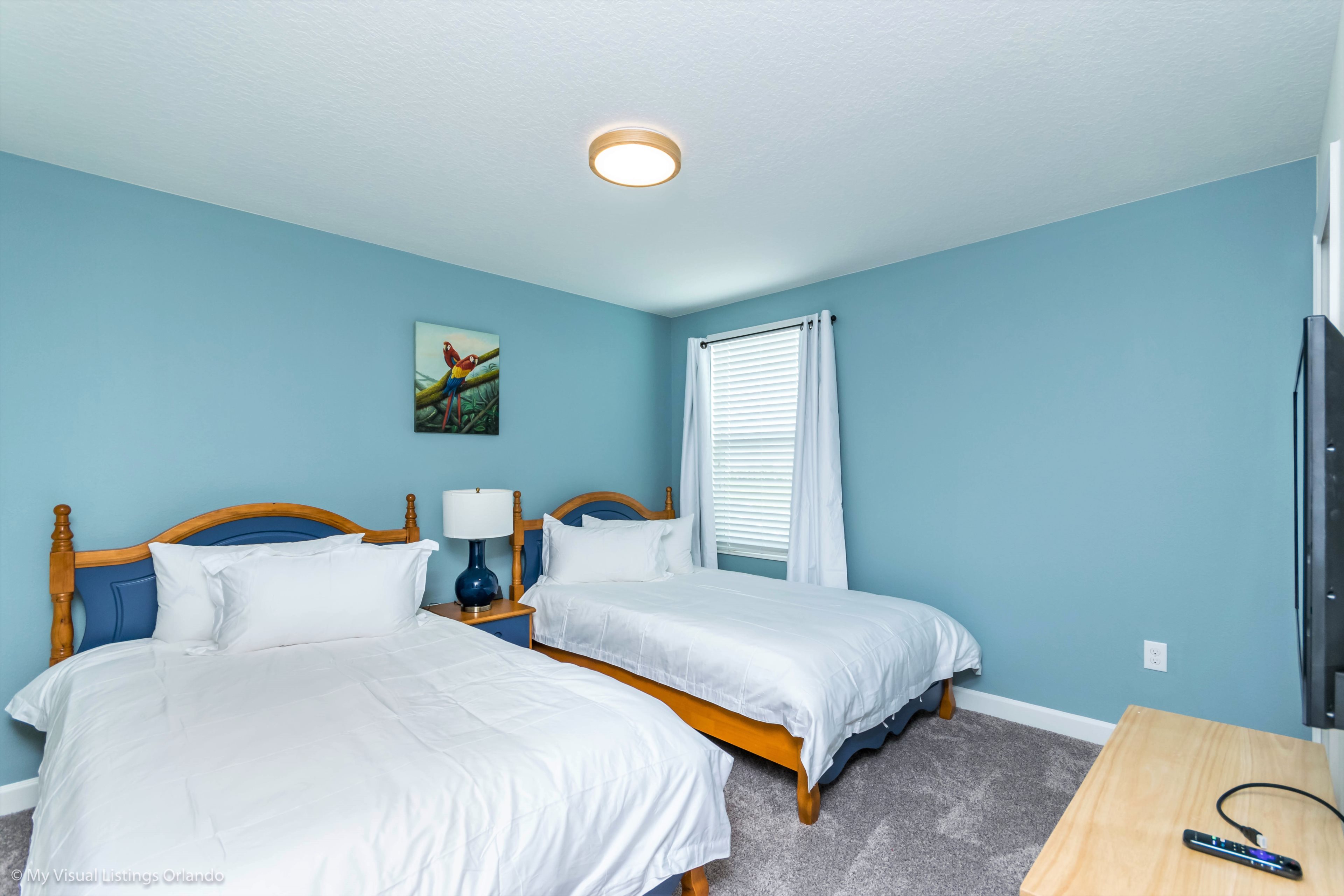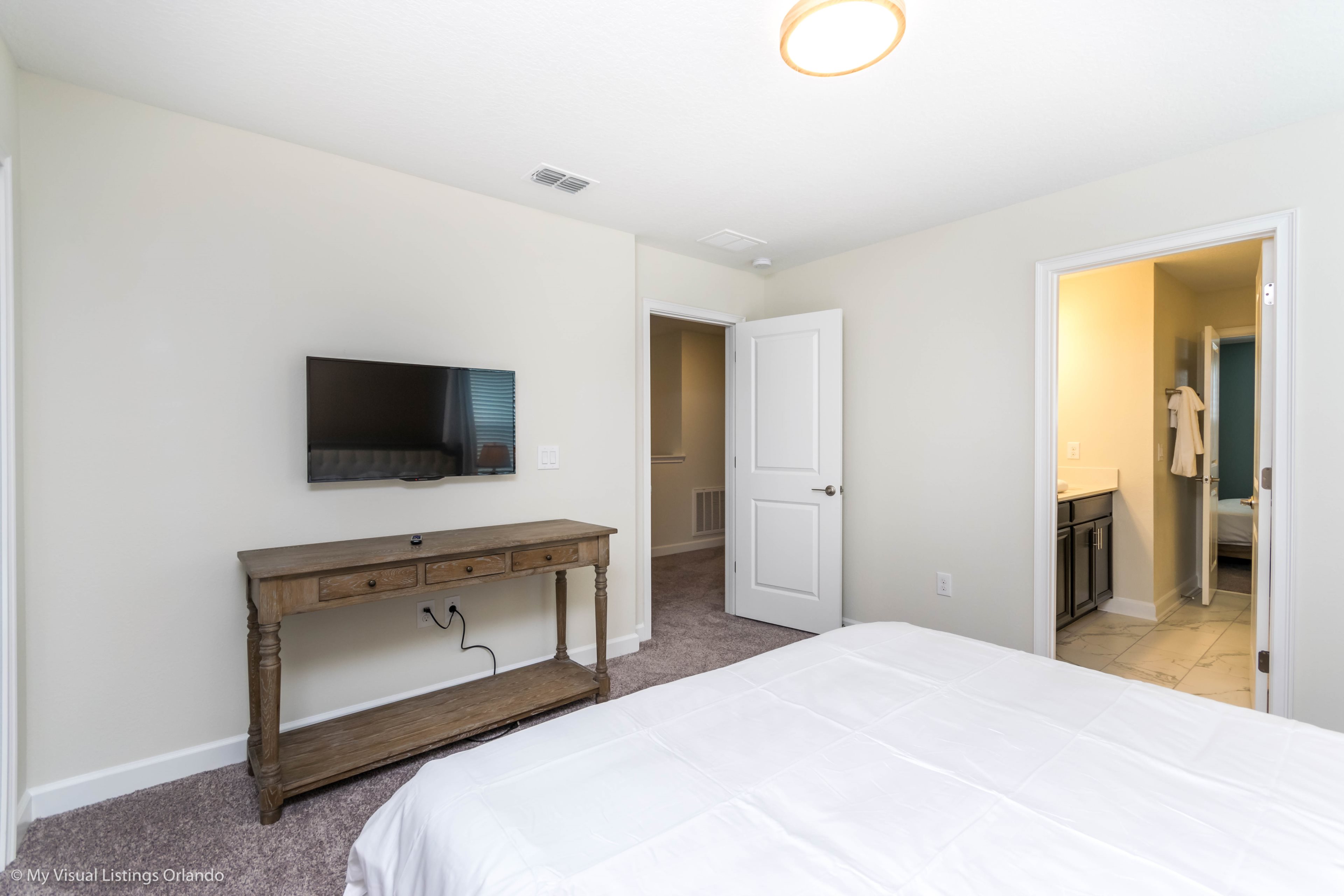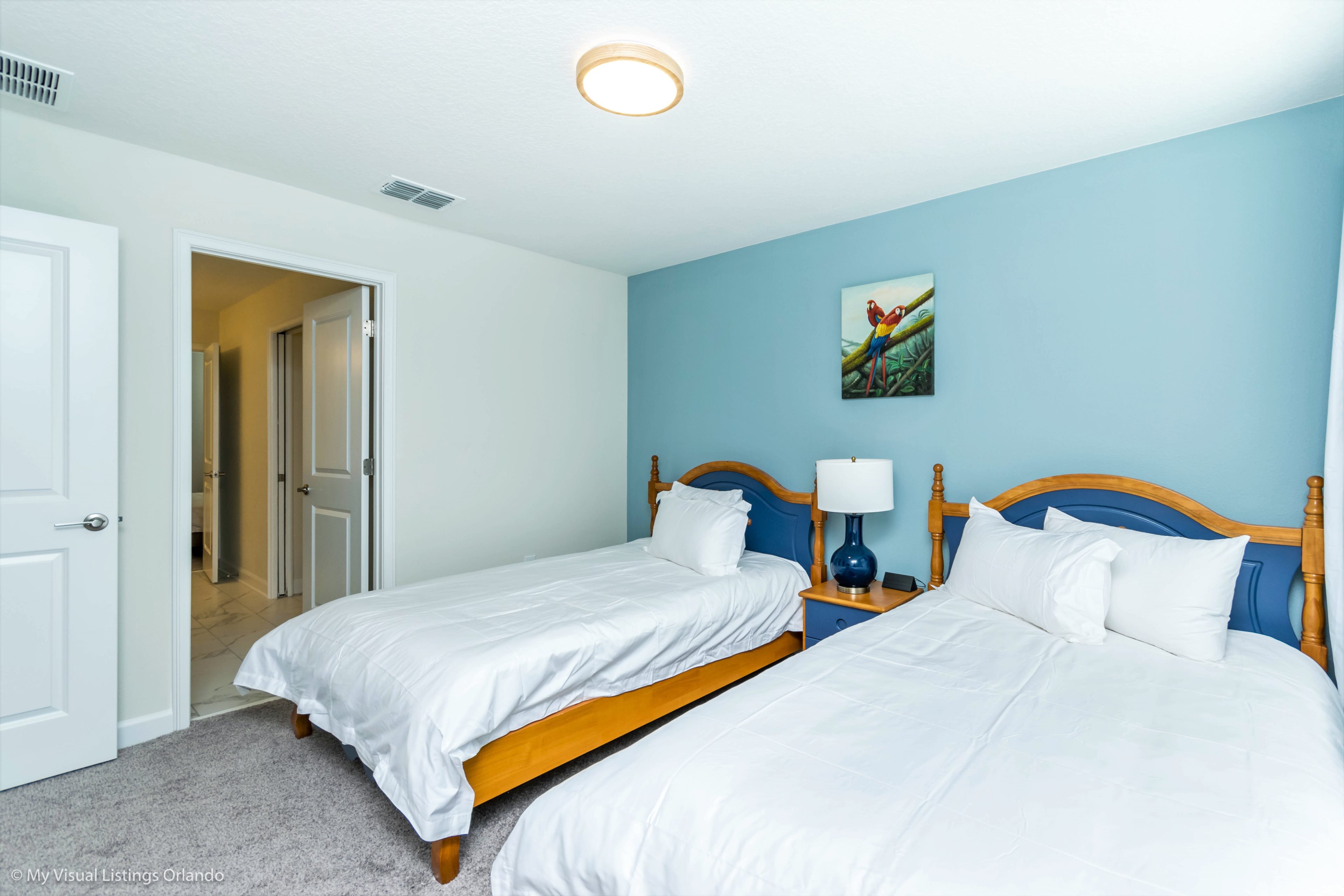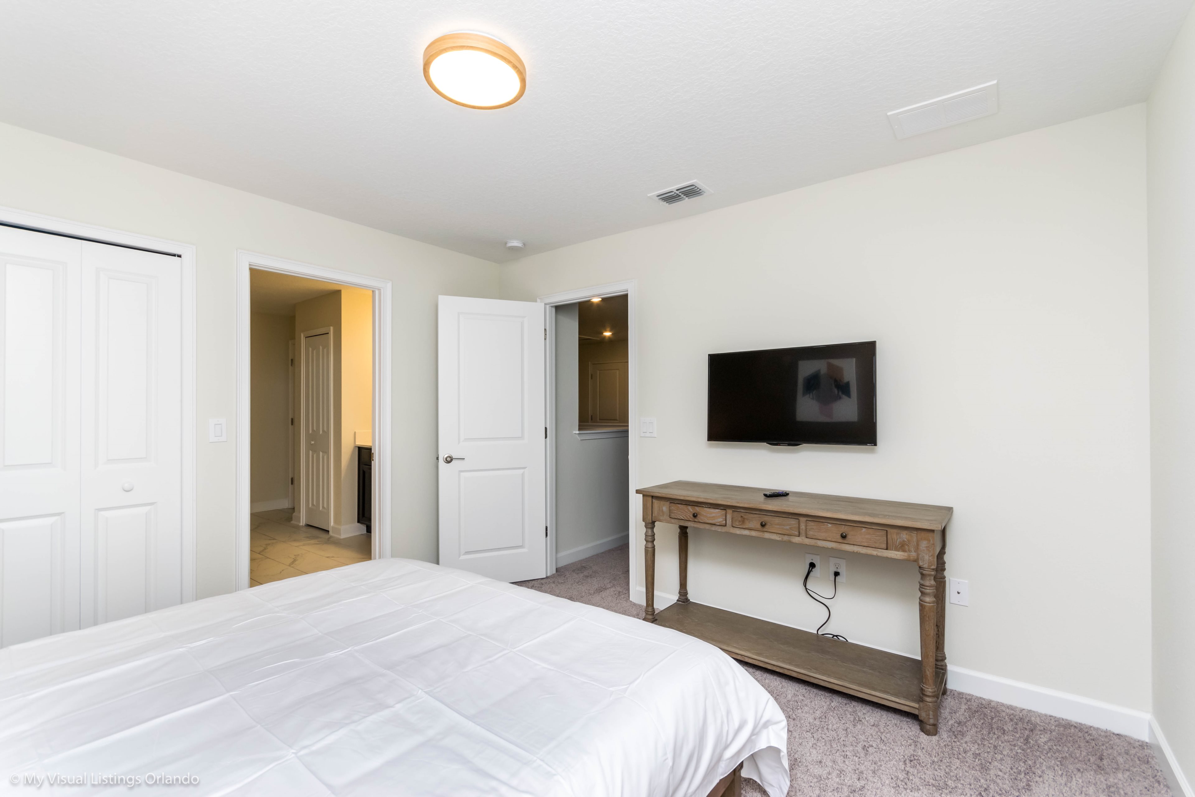You will feel immediately relaxed as you enter our 8 bedroom, 5 bathroom executive home which sleeps up to 16 in style. We have paid great attention to every detail when we furnished this home and we hope you will enjoy it as much as we do with our own family. With 4 king bedrooms, 2 Queen and 2 Bedrooms with 2 twins beds , there is plenty of room for everyone to spread out and relax after a day out or just to stay in and take it easy. Each room has a different feel so all guests should be equally happy with their room, and all have wall mounted flat screen LED Tv’s. The dining room and living area offers plenty of space to congregate and enjoy meals together, and the bright and airy kitchen has all the appliances that you would expect in your own home. (There is also a full-size washer and dryer). You can also enjoy a game of pool in the game room, or watch a movie in the huge loft area, or leave the kids to play on the PlayStation. Or why not take a dip in the large pool or relax in the spa, even in the evening as the pool area is south facing? This home will bring all the excitement of Orlando to you, and have the entire group talking about your trip for months to come.