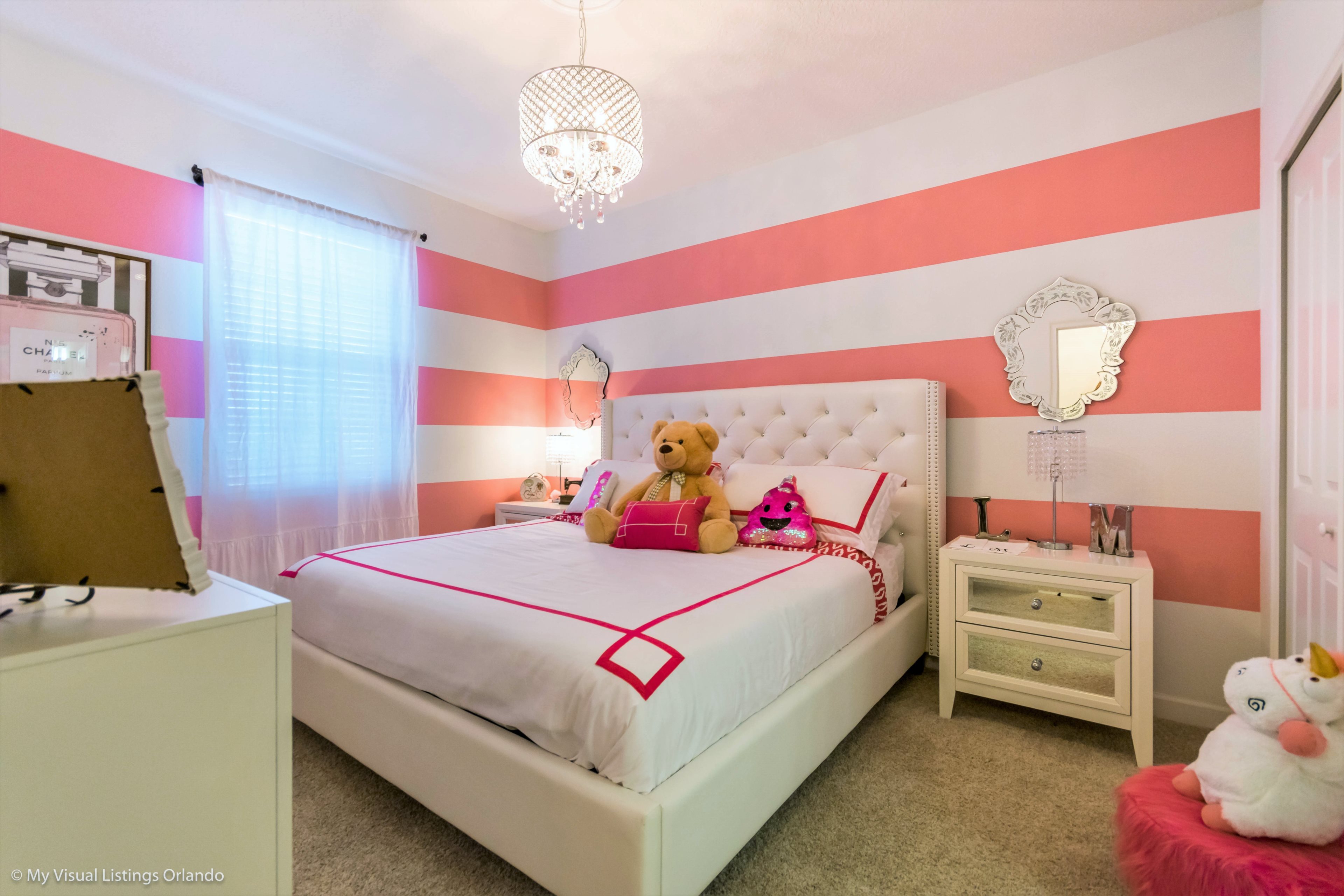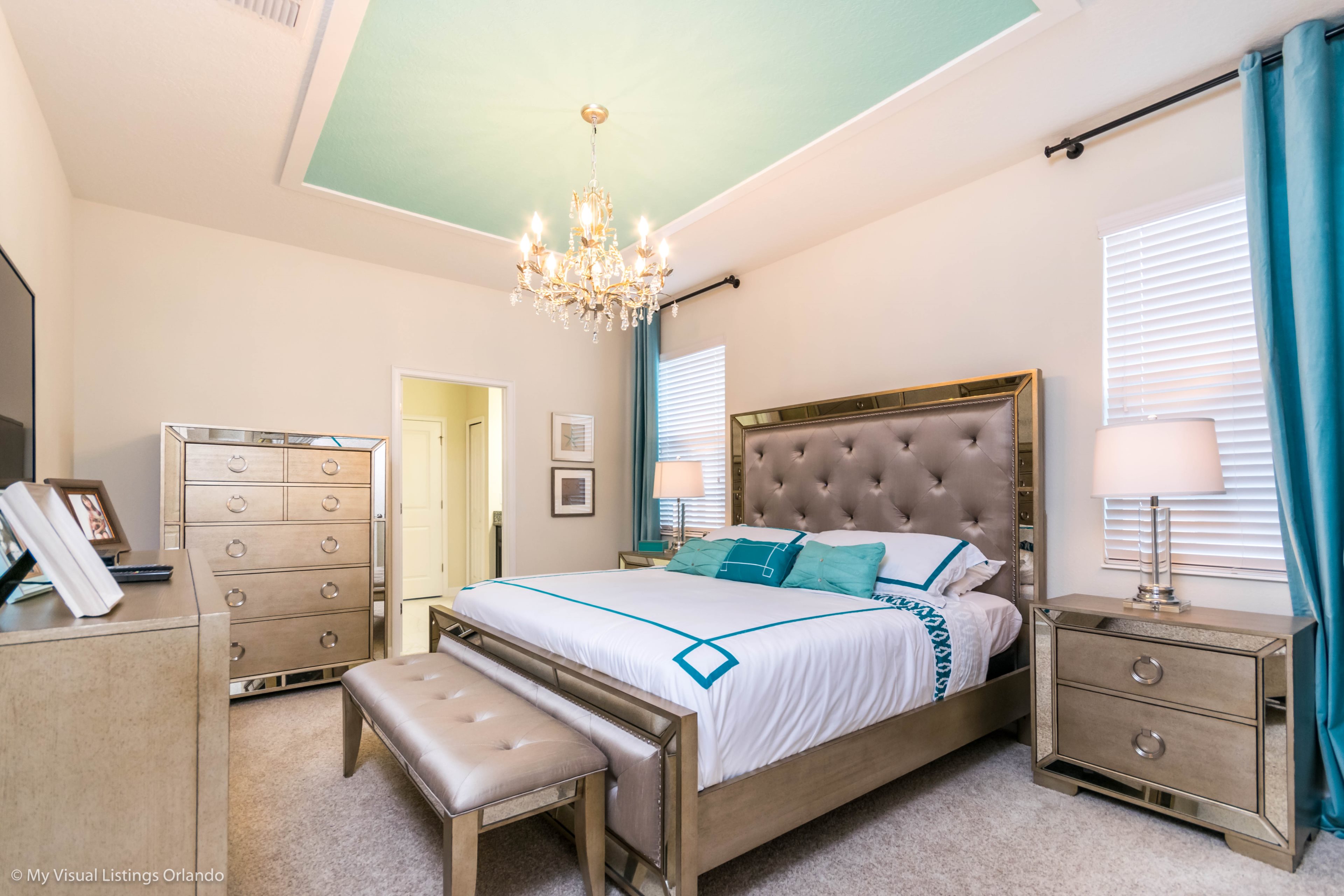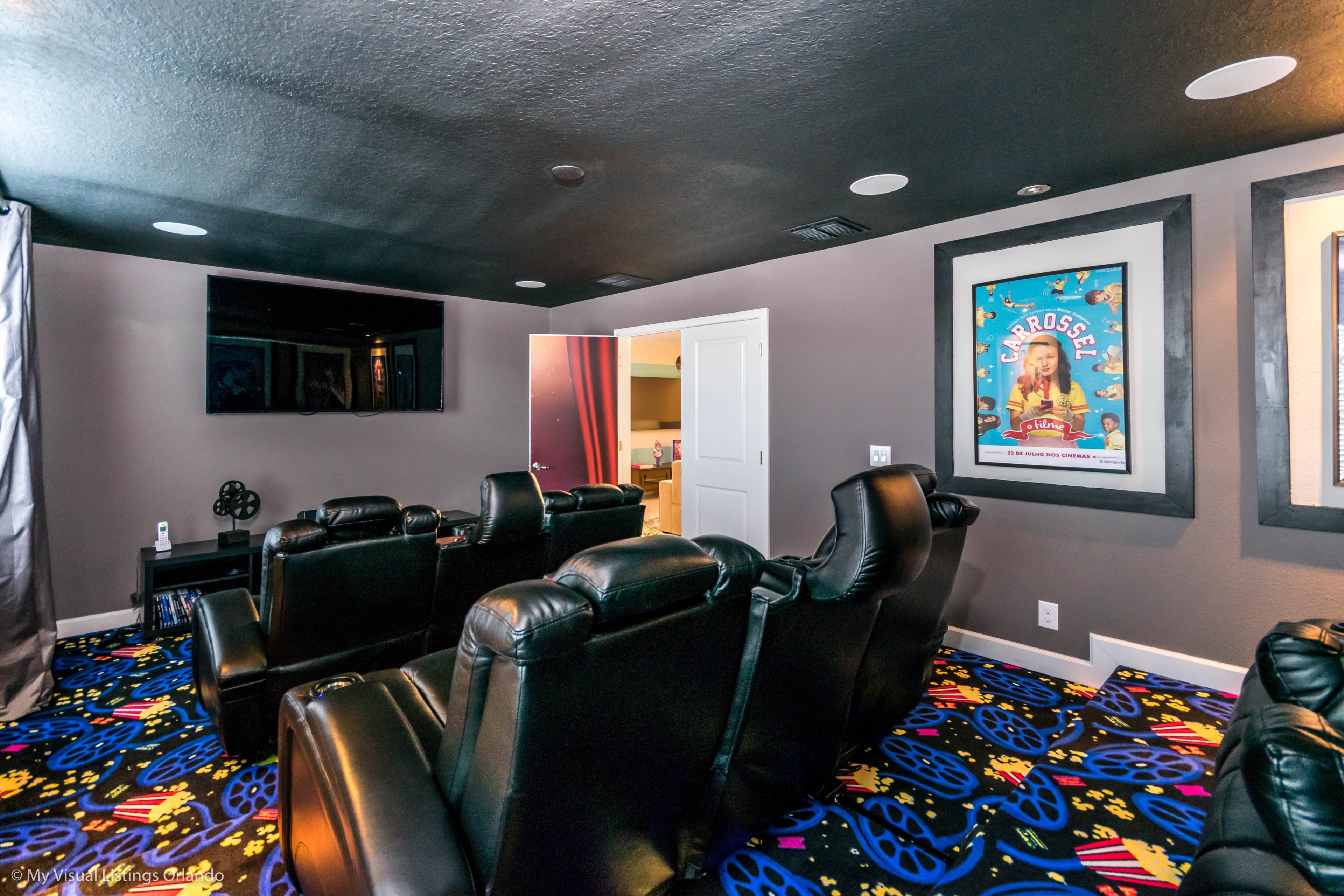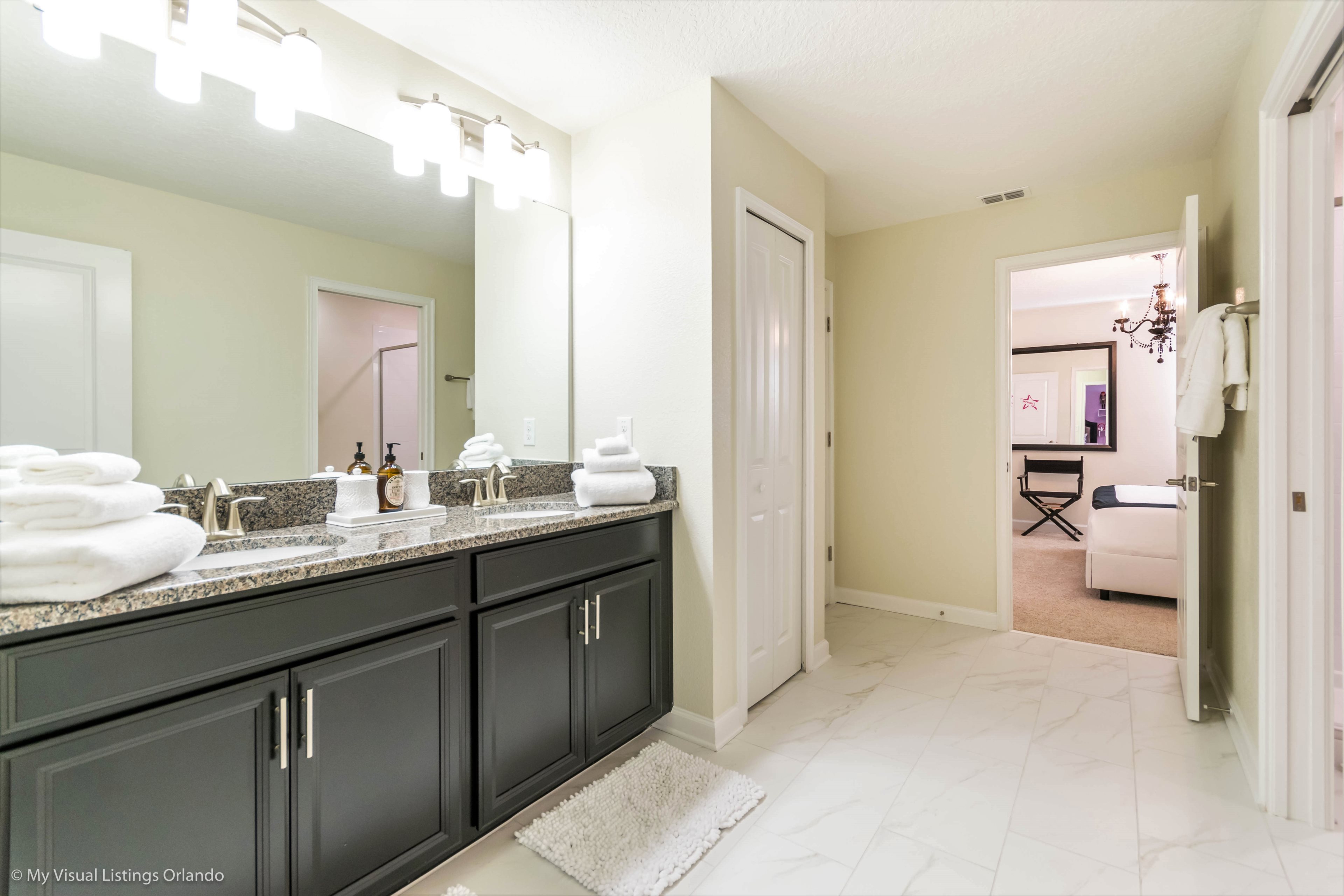 You will feel immediately relaxed as you enter our 8 bedroom, 5 bathroom executive home which sleeps up to 16 in style. We have paid great attention to every detail when we furnished this home and we hope you will enjoy it as much as we do with our own family. With 5 king bedrooms, 1 queen bedroom, 1 full bunk with twin below and 1 room with 2 twins , there is plenty of room for everyone to spread out and relax after a day out or just to stay in and take it easy. Each room has a different feel so all guests should be equally happy with their room, and all have wall mounted flat screen LED Tv’s. The dining room and living area offers plenty of space to congregate and enjoy meals together, and the bright and airy kitchen has all the appliances that you would expect in your own home. (There is also a full-size washer and dryer). You can also enjoy a game of pool in the game room, or watch a movie in the huge loft area, or leave the kids to play on the PlayStation. Or why not take a dip in the large pool or relax in the spa, even in the evening as the pool area is south facing? This home will bring all the excitement of Orlando to you, and have the entire group talking about your trip for months to come.