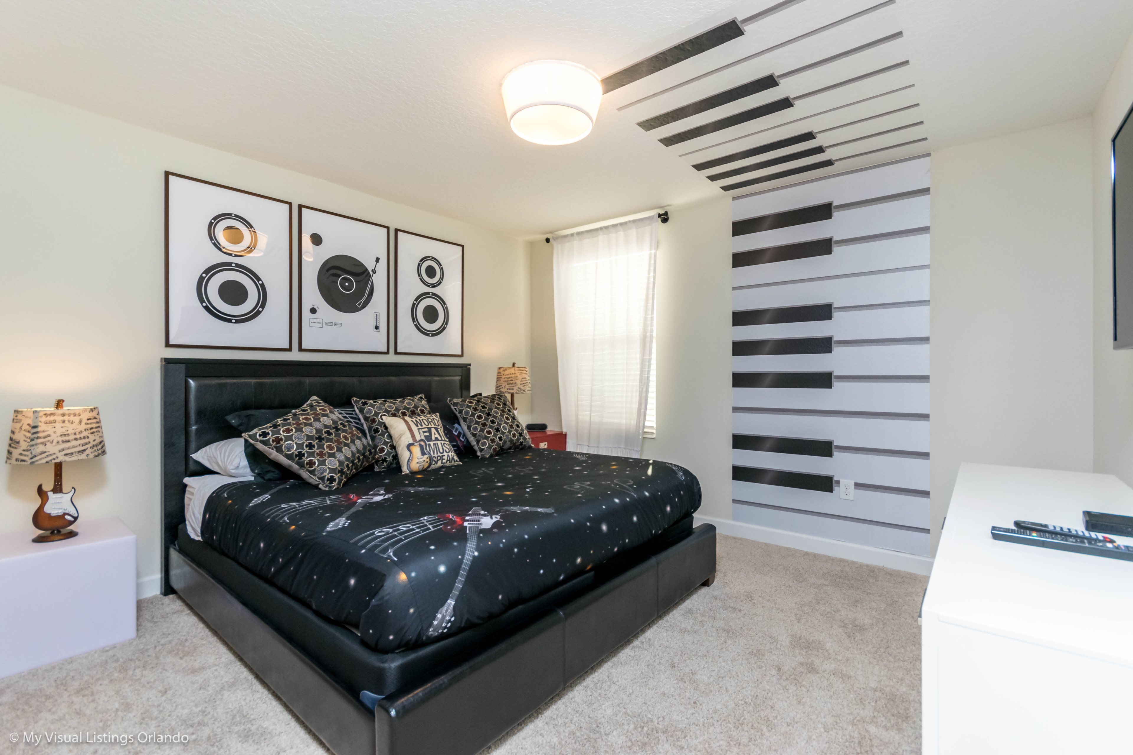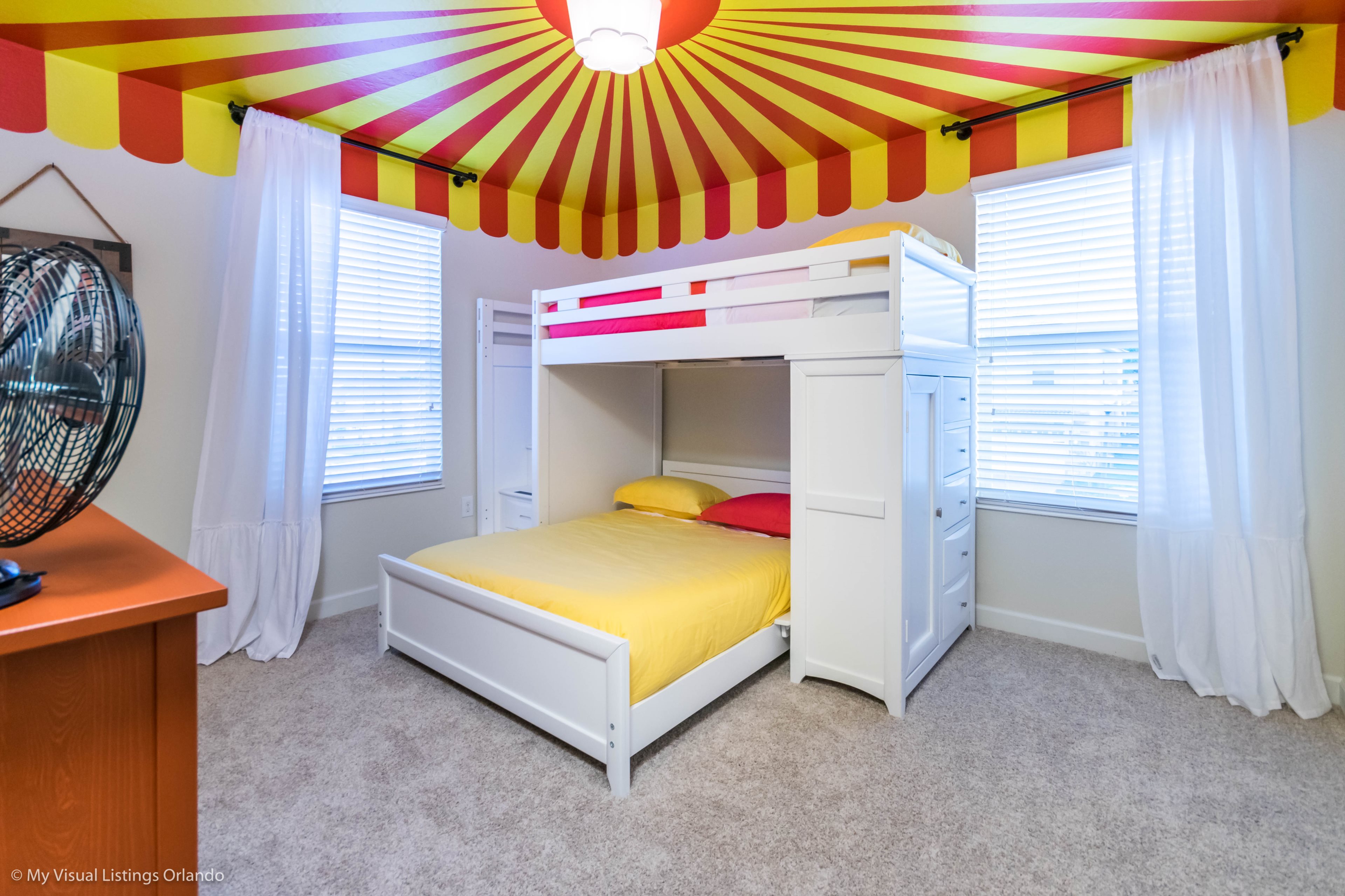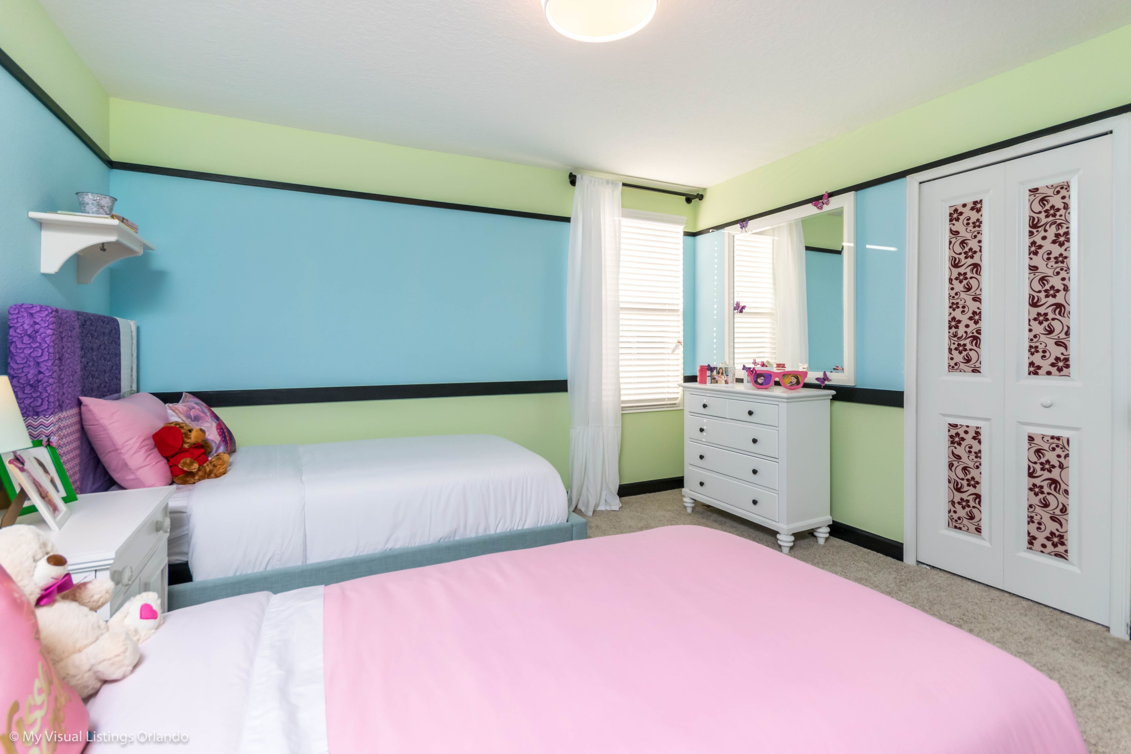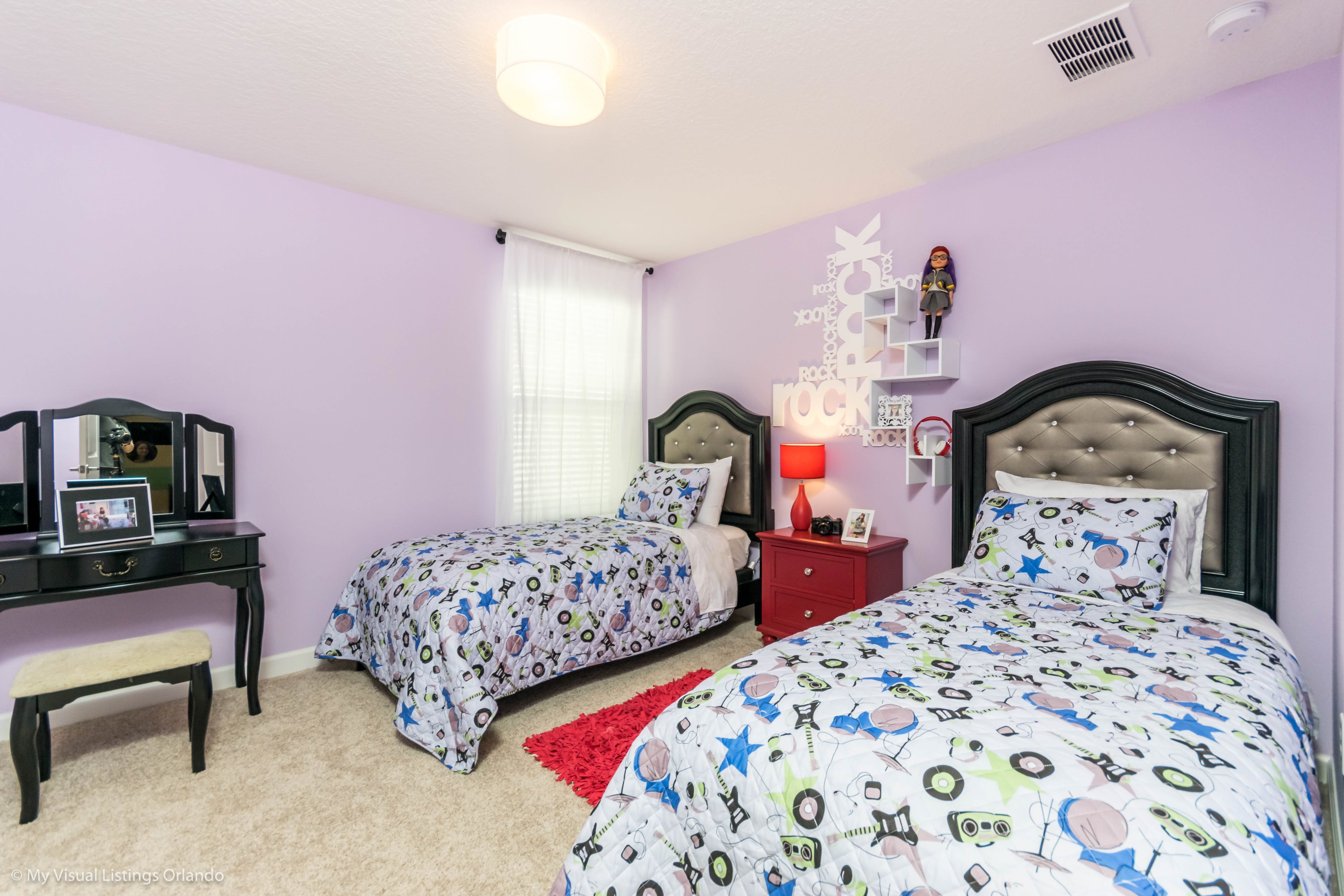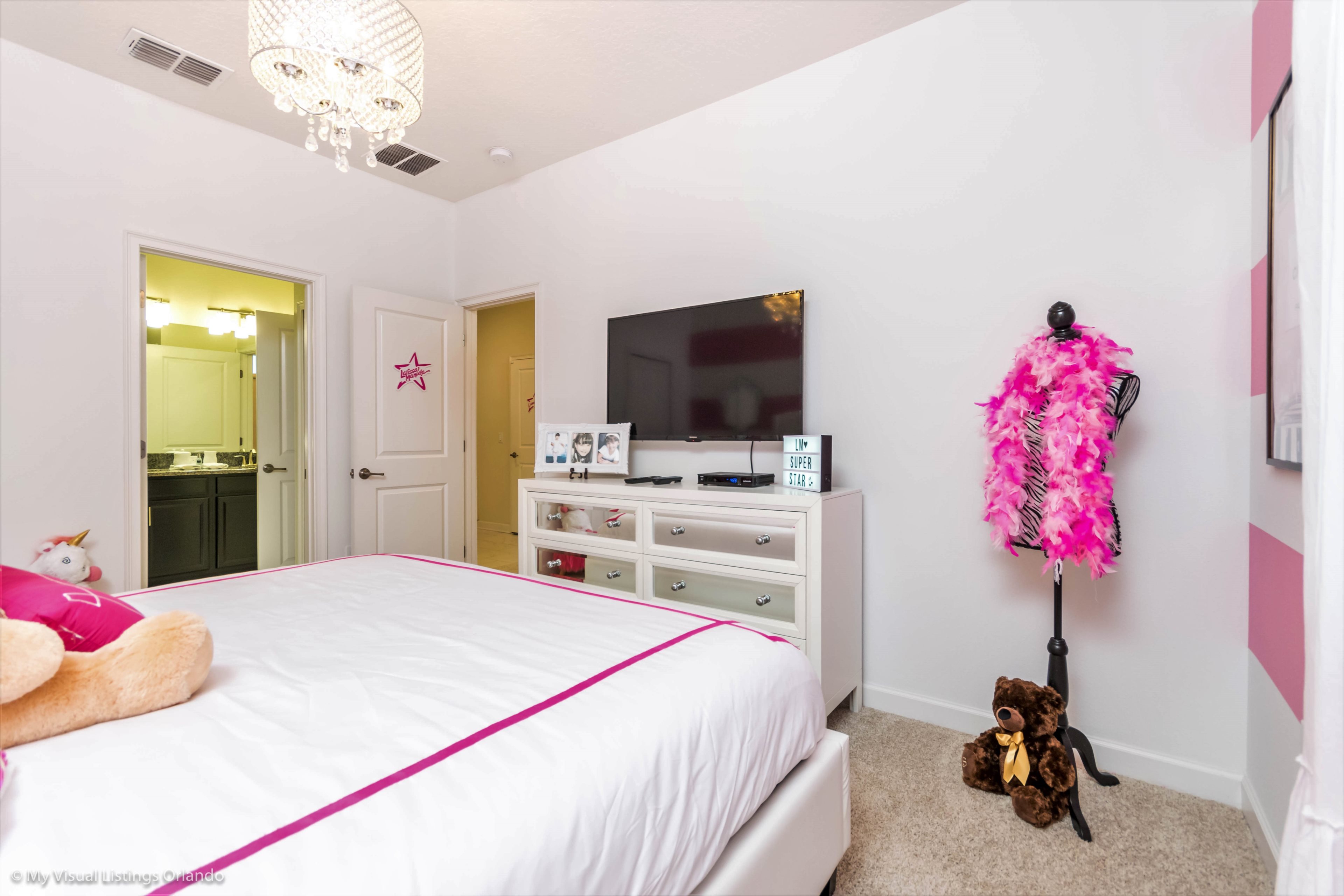 You will feel immediately relaxed as you enter our 8 bedroom, 5 bathroom executive home which sleeps up to 16 in style. We have paid great attention to every detail when we furnished this home and we hope you will enjoy it as much as we do with our own family. With 5 king bedrooms, 1 queen bedroom, 1 full bunk with twin below and 1 room with 2 twins , there is plenty of room for everyone to spread out and relax after a day out or just to stay in and take it easy. Each room has a different feel so all guests should be equally happy with their room, and all have wall mounted flat screen LED Tv’s. The dining room and living area offers plenty of space to congregate and enjoy meals together, and the bright and airy kitchen has all the appliances that you would expect in your own home. (There is also a full-size washer and dryer). You can also enjoy a game of pool in the game room, or watch a movie in the huge loft area, or leave the kids to play on the PlayStation. Or why not take a dip in the large pool or relax in the spa, even in the evening as the pool area is south facing? This home will bring all the excitement of Orlando to you, and have the entire group talking about your trip for months to come.