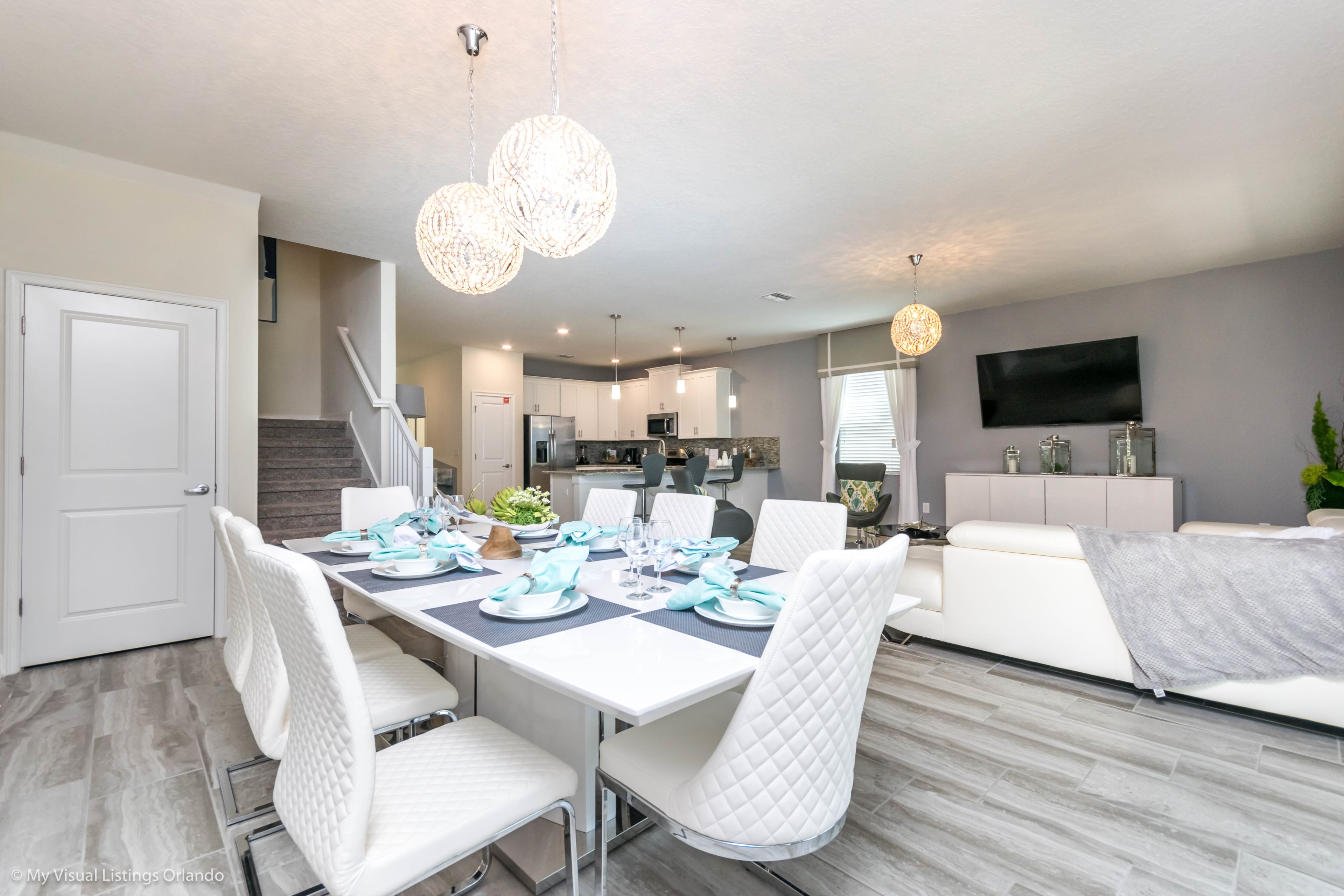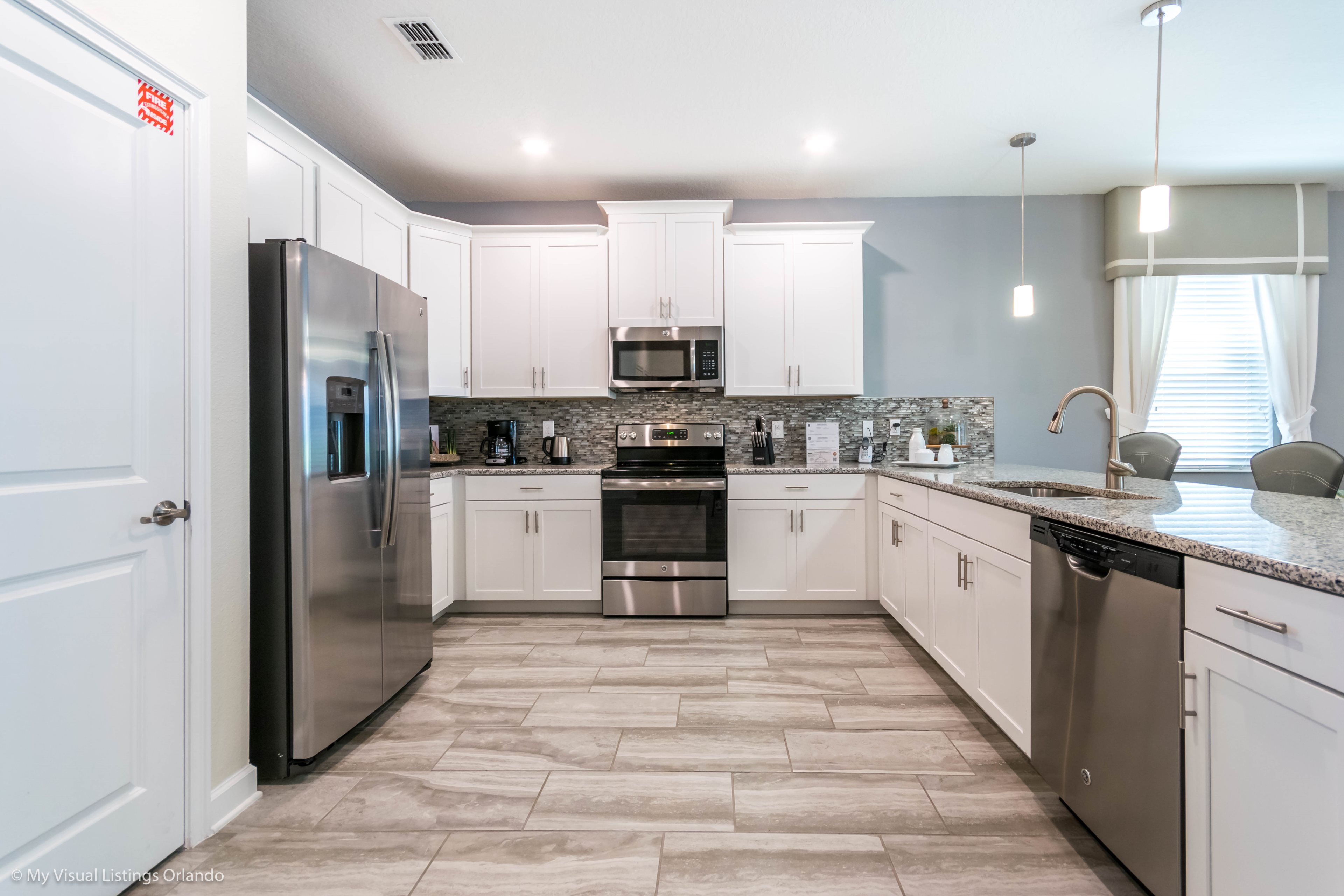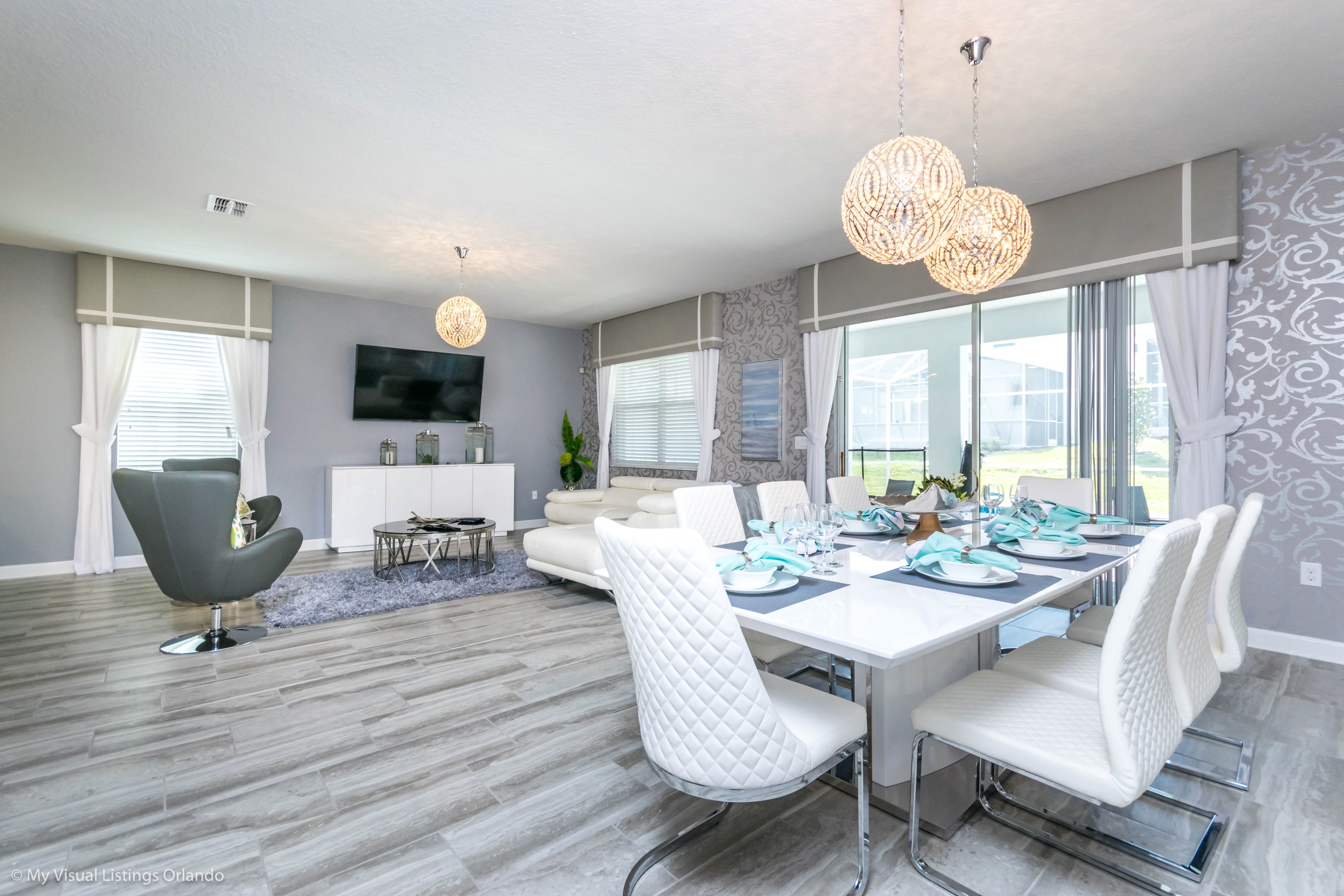 You will feel immediately relaxed as you enter our 8 bedroom, 5 bathroom executive home which sleeps up to 16 in style. We have paid great attention to every detail when we furnished this home and we hope you will enjoy it as much as we do with our own family. With 4 king bedrooms, 2 bedroom with 2 twin rooms , there is plenty of room for everyone to spread out and relax after a day out or just to stay in and take it easy. Each room has a different feel so all guests should be equally happy with their room, and all have wall mounted flat screen LED Tv’s. The dining room and living area offers plenty of space to congregate and enjoy meals together, and the bright and airy kitchen has all the appliances that you would expect in your own home. (There is also a full-size washer and dryer). This home will bring all the excitement of Orlando to you, and have the entire group talking about your trip for months to come.