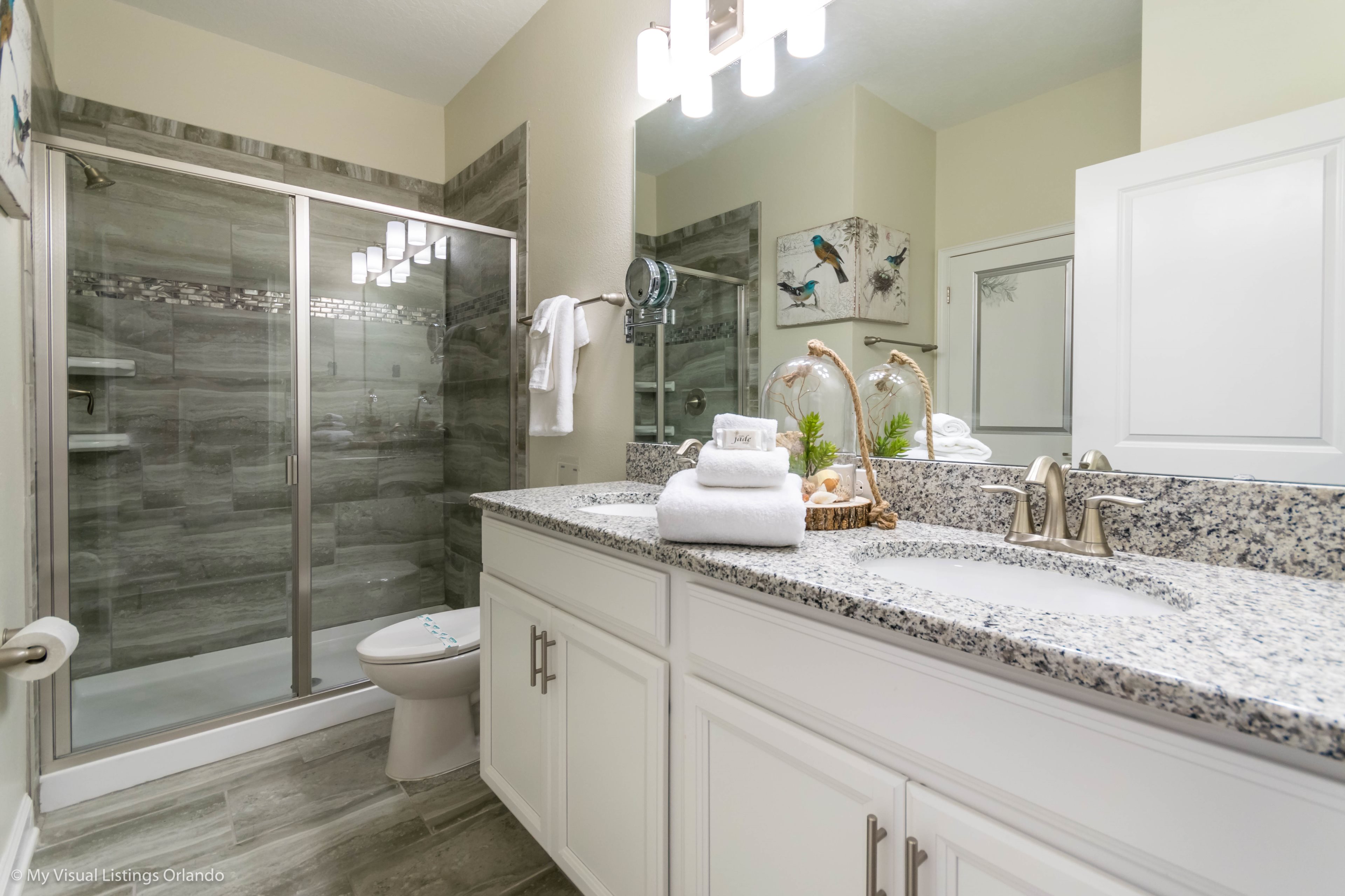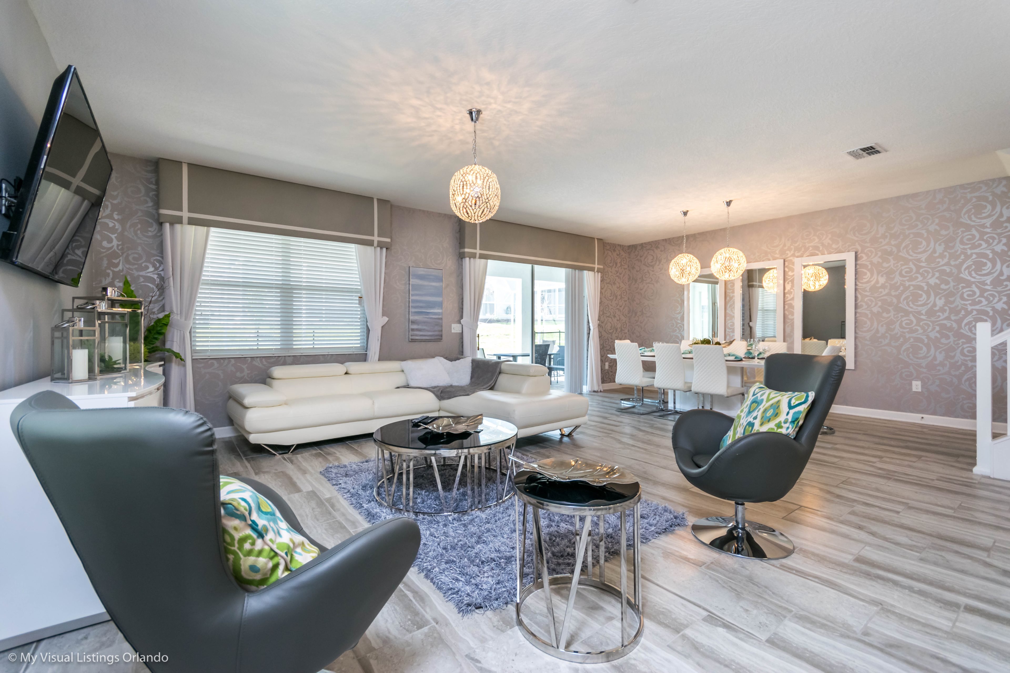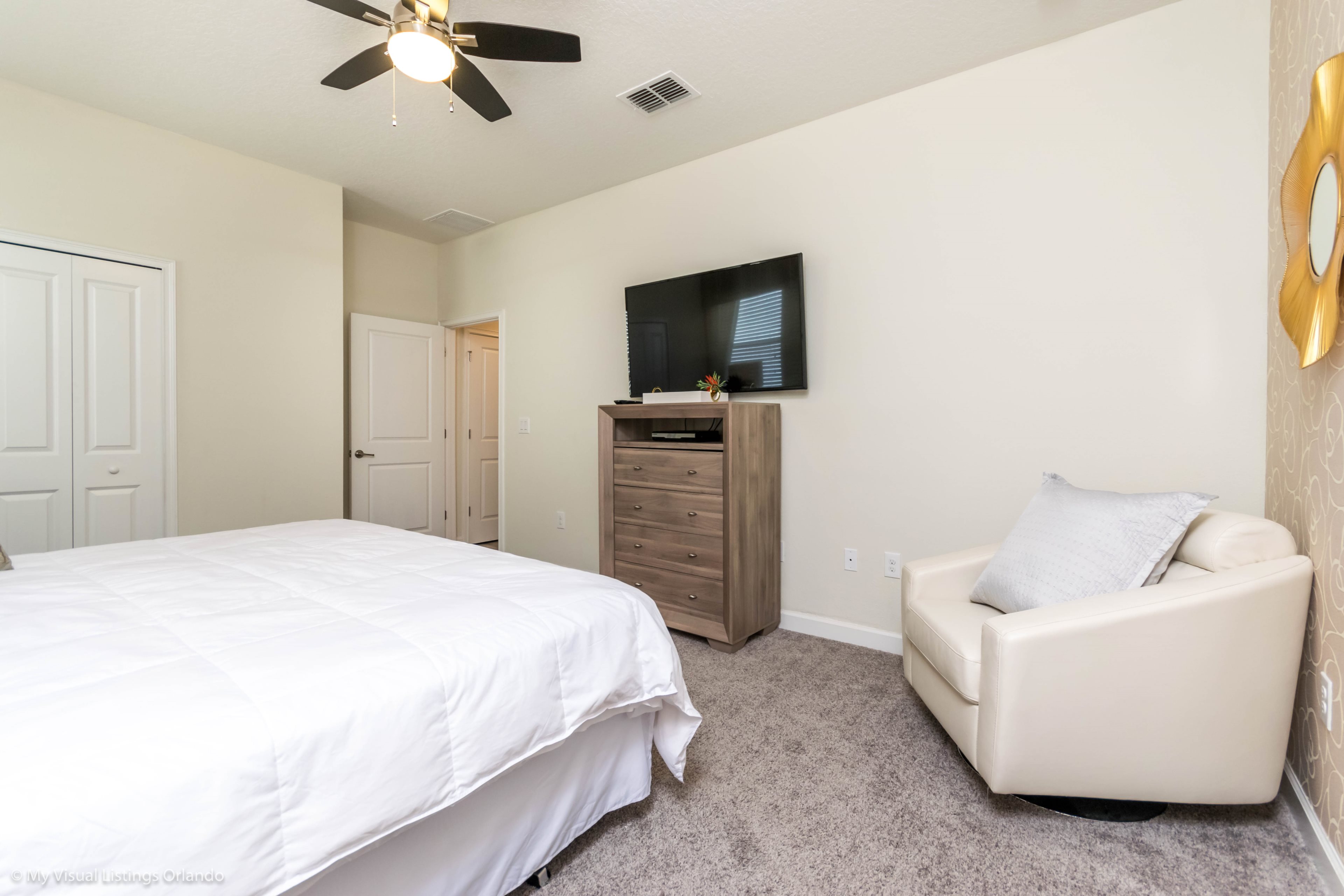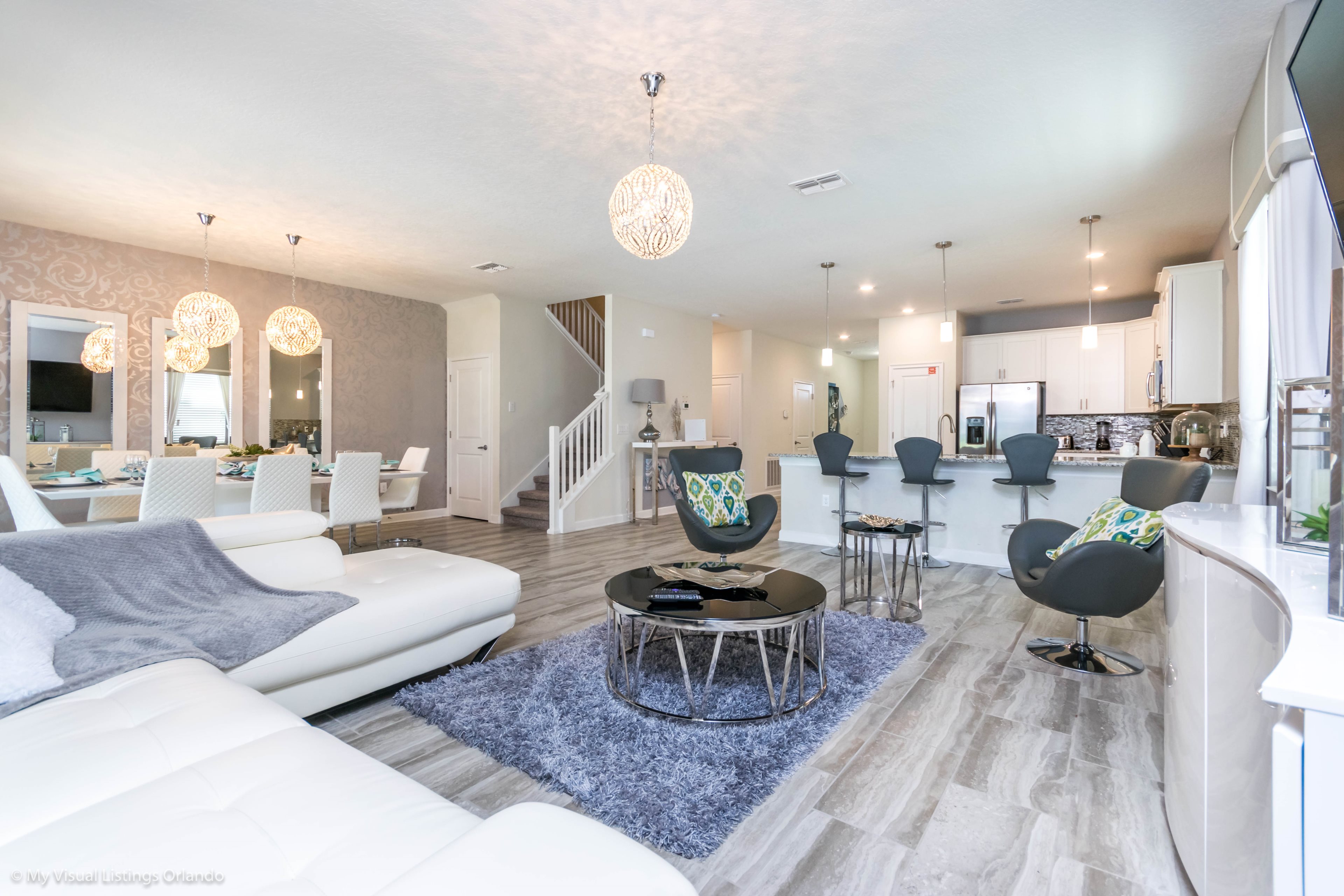 You will feel immediately relaxed as you enter our 8 bedroom, 5 bathroom executive home which sleeps up to 16 in style. We have paid great attention to every detail when we furnished this home and we hope you will enjoy it as much as we do with our own family. With 4 king bedrooms, 2 bedroom with 2 twin rooms , there is plenty of room for everyone to spread out and relax after a day out or just to stay in and take it easy. Each room has a different feel so all guests should be equally happy with their room, and all have wall mounted flat screen LED Tv’s. The dining room and living area offers plenty of space to congregate and enjoy meals together, and the bright and airy kitchen has all the appliances that you would expect in your own home. (There is also a full-size washer and dryer). This home will bring all the excitement of Orlando to you, and have the entire group talking about your trip for months to come.