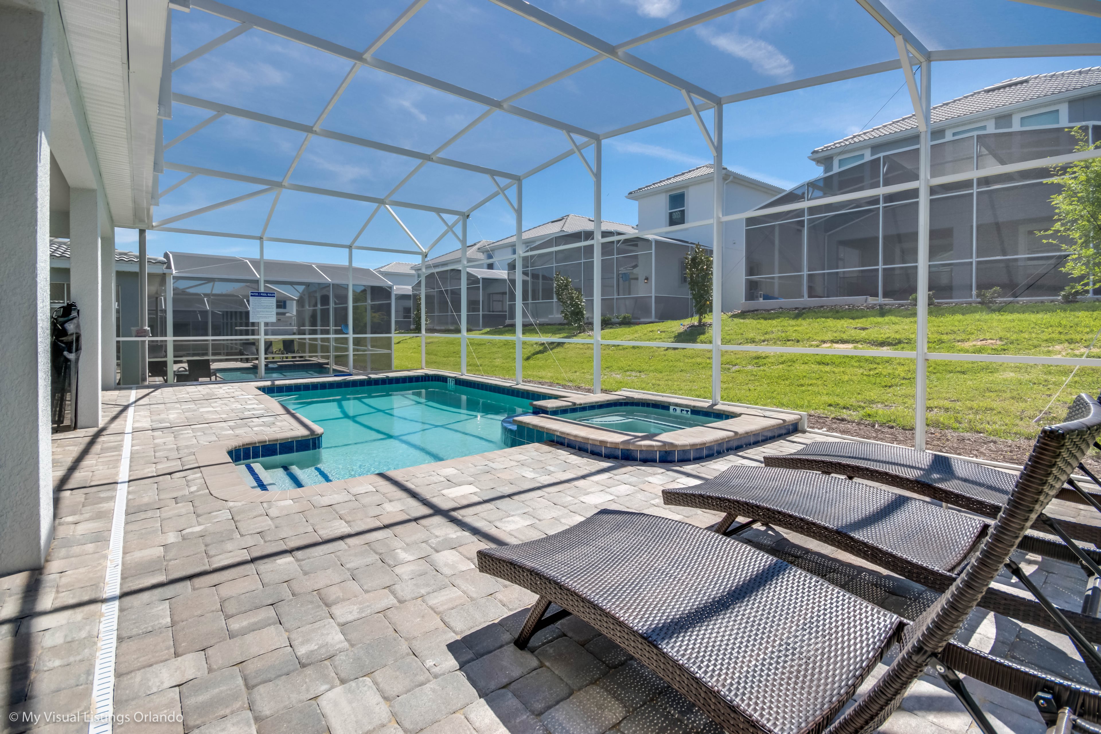 We invite you to enjoy our wonderful home on your next trip to Orlando. Absolutely perfect for multi-family groups, or golf groups, this property features all the comforts of home and more! Book your vacation now at this beautiful home with pool and spa.