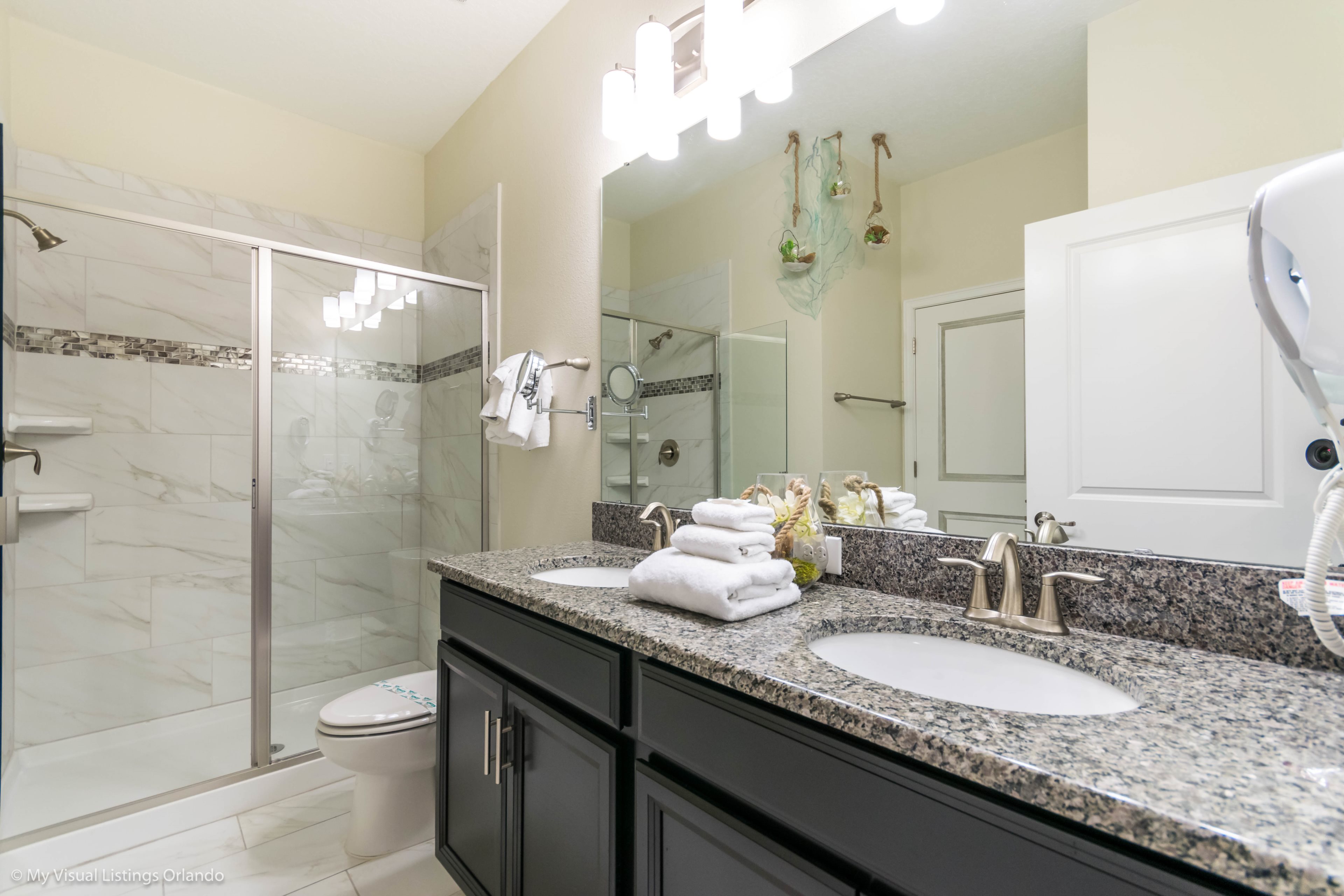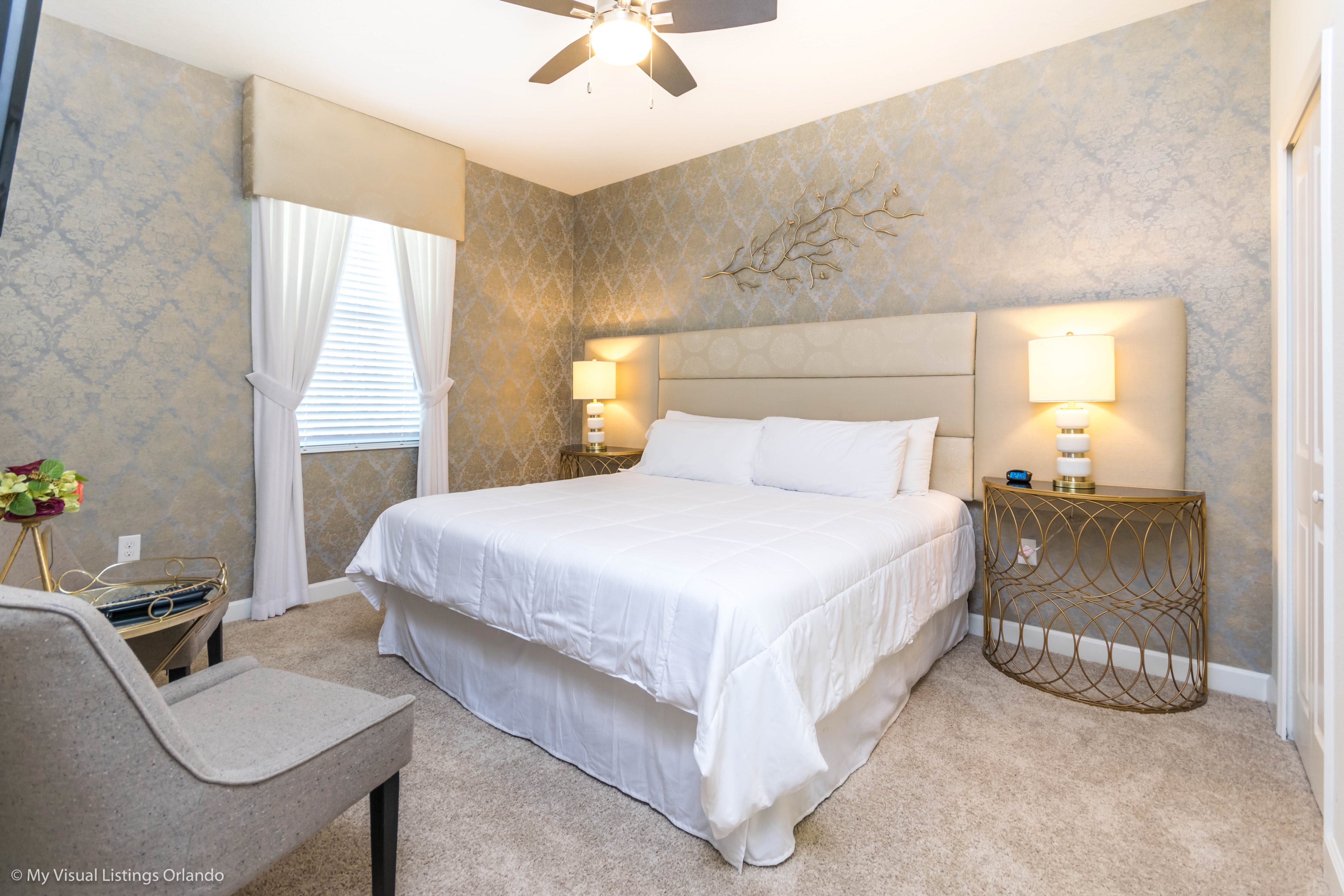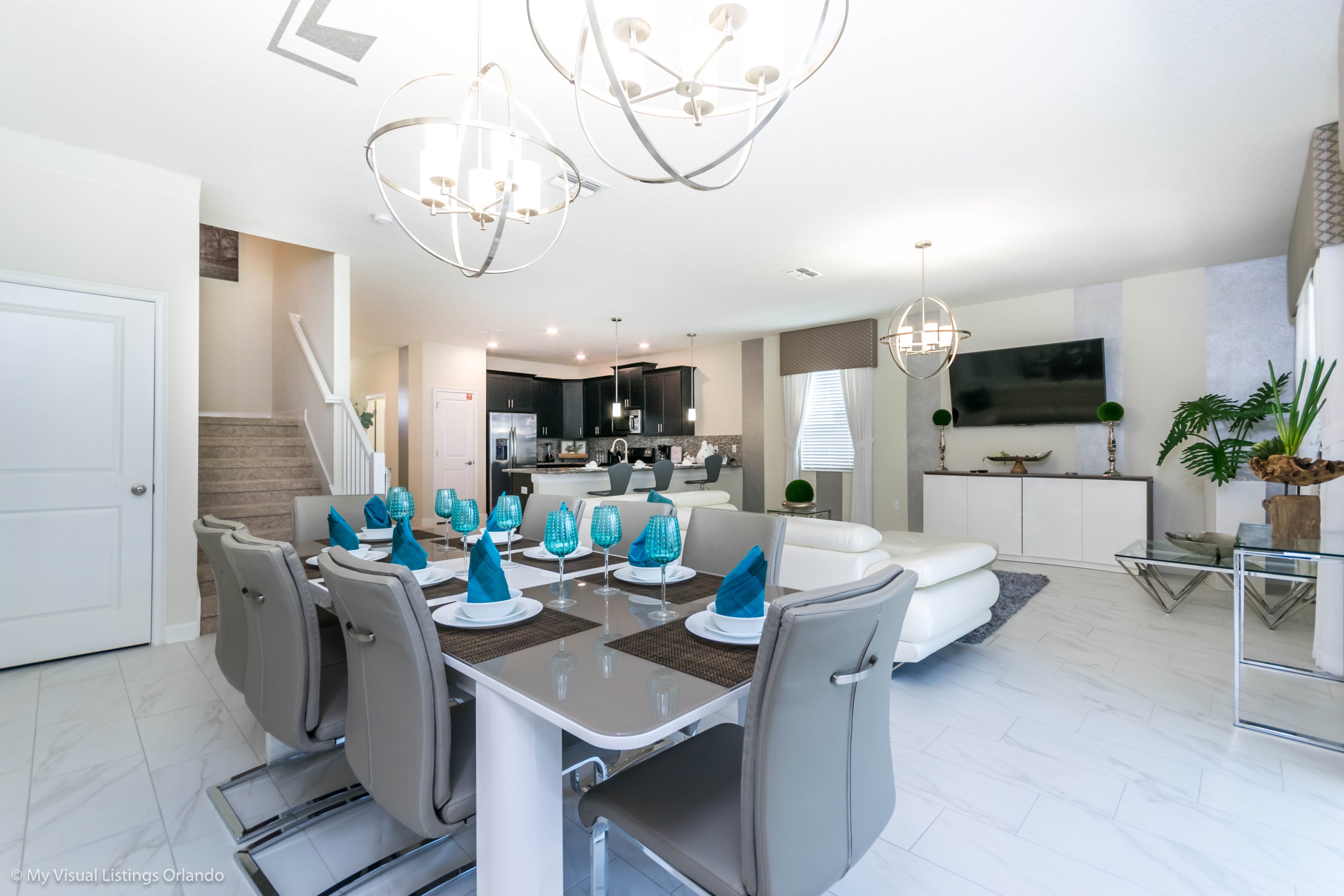 You will feel immediately relaxed as you enter our 8 bedroom, 5 bathroom executive home which sleeps up to 16 in style. We have paid great attention to every detail when we furnished this home and we hope you will enjoy it as much as we do with our own family. With 4 king bedrooms, 2 bedroom with 2 twin rooms , there is plenty of room for everyone to spread out and relax after a day out or just to stay in and take it easy. Each room has a different feel so all guests should be equally happy with their room, and all have wall mounted flat screen LED Tv’s. The dining room and living area offers plenty of space to congregate and enjoy meals together, and the bright and airy kitchen has all the appliances that you would expect in your own home. (There is also a full-size washer and dryer). This home will bring all the excitement of Orlando to you, and have the entire group talking about your trip for months to come.