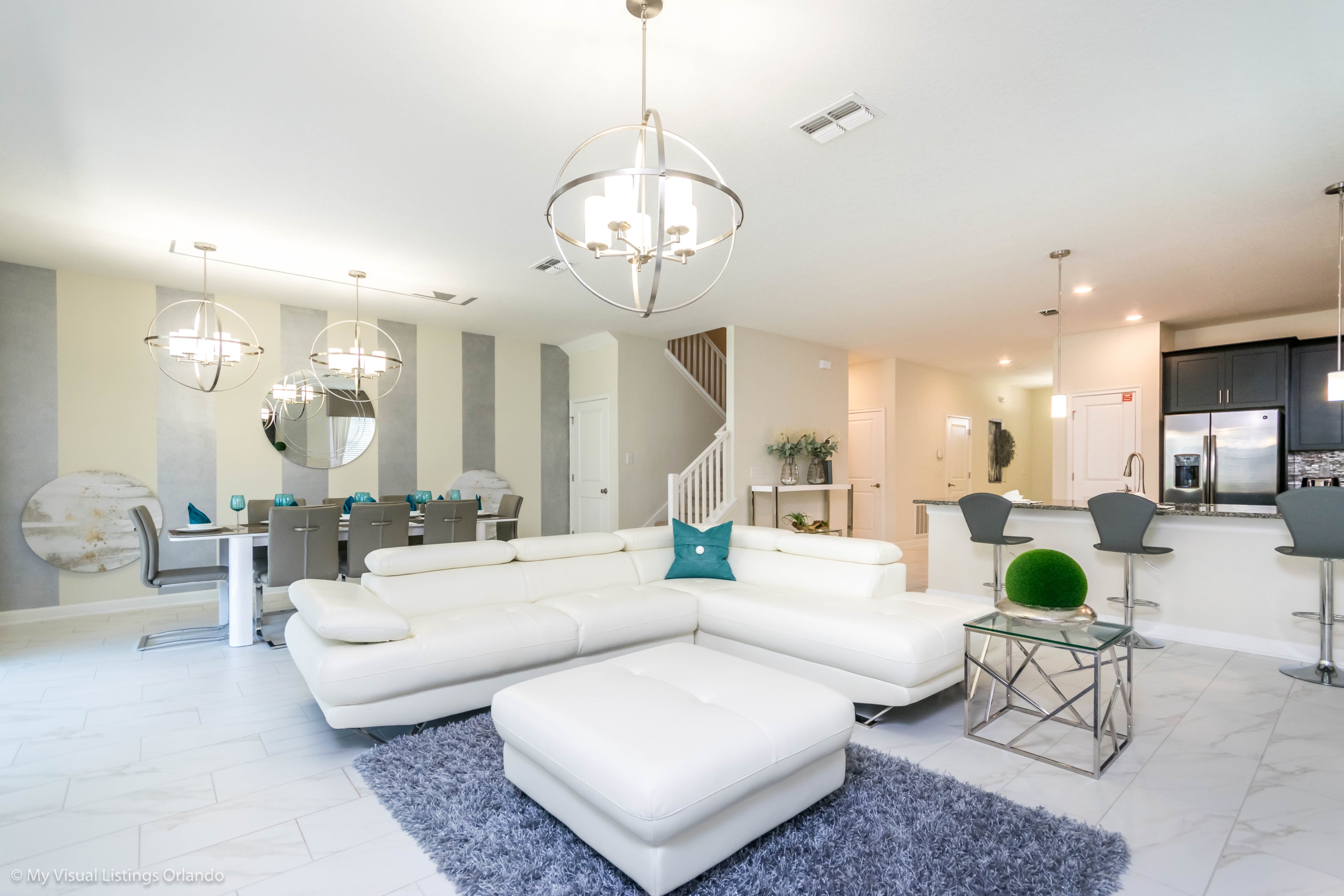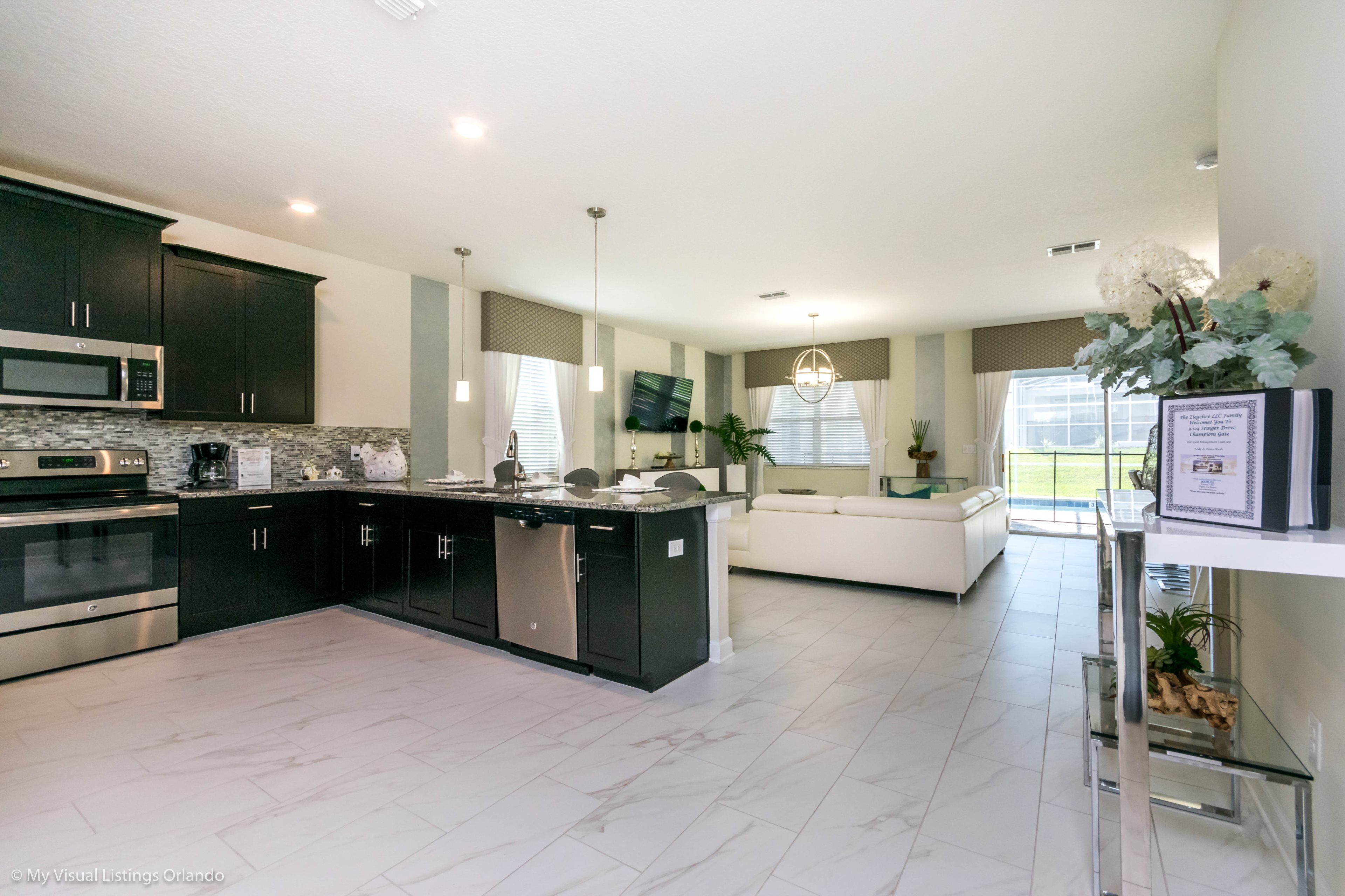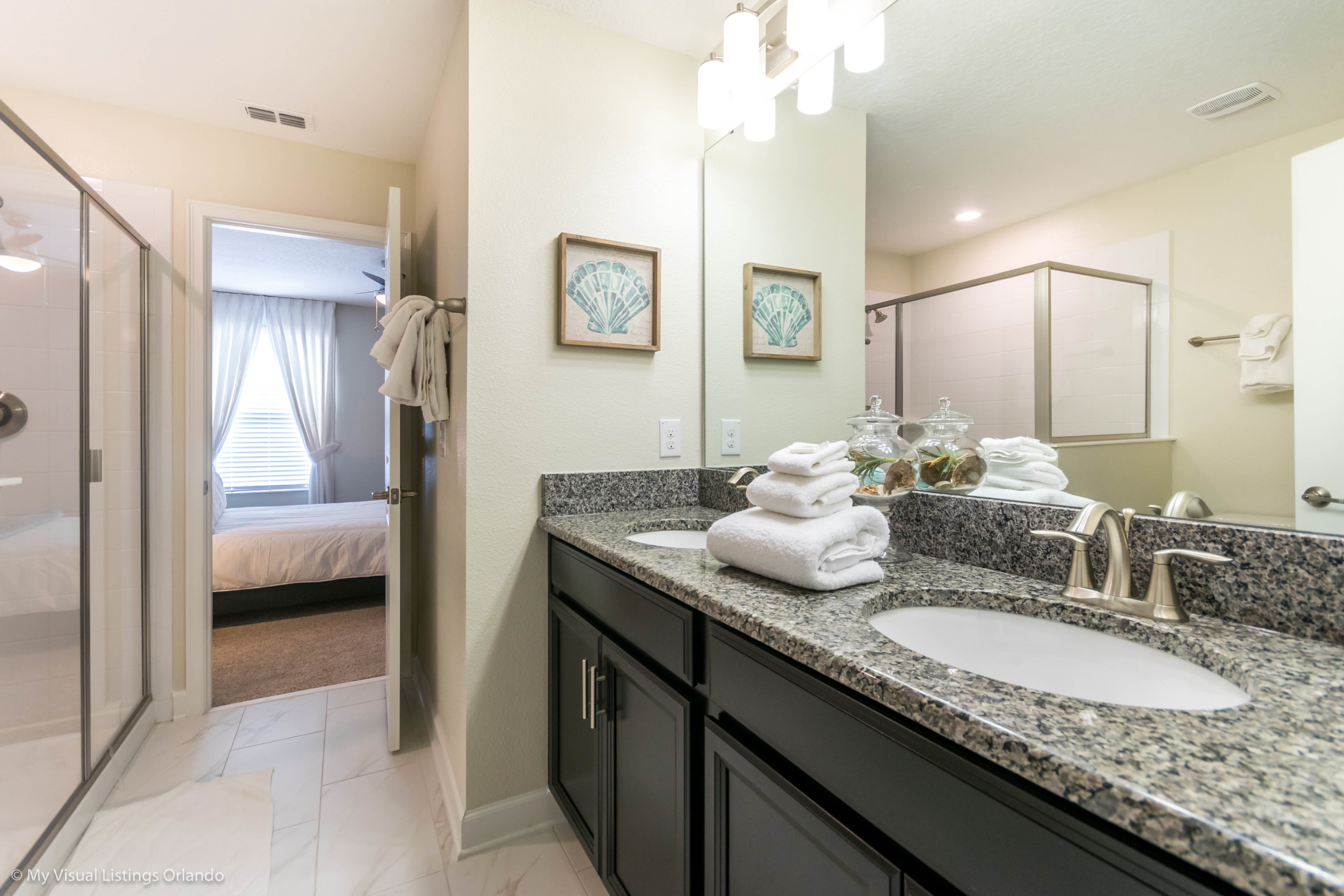 You will feel immediately relaxed as you enter our 8 bedroom, 5 bathroom executive home which sleeps up to 16 in style. We have paid great attention to every detail when we furnished this home and we hope you will enjoy it as much as we do with our own family. With 4 king bedrooms, 2 bedroom with 2 twin rooms , there is plenty of room for everyone to spread out and relax after a day out or just to stay in and take it easy. Each room has a different feel so all guests should be equally happy with their room, and all have wall mounted flat screen LED Tv’s. The dining room and living area offers plenty of space to congregate and enjoy meals together, and the bright and airy kitchen has all the appliances that you would expect in your own home. (There is also a full-size washer and dryer). This home will bring all the excitement of Orlando to you, and have the entire group talking about your trip for months to come.