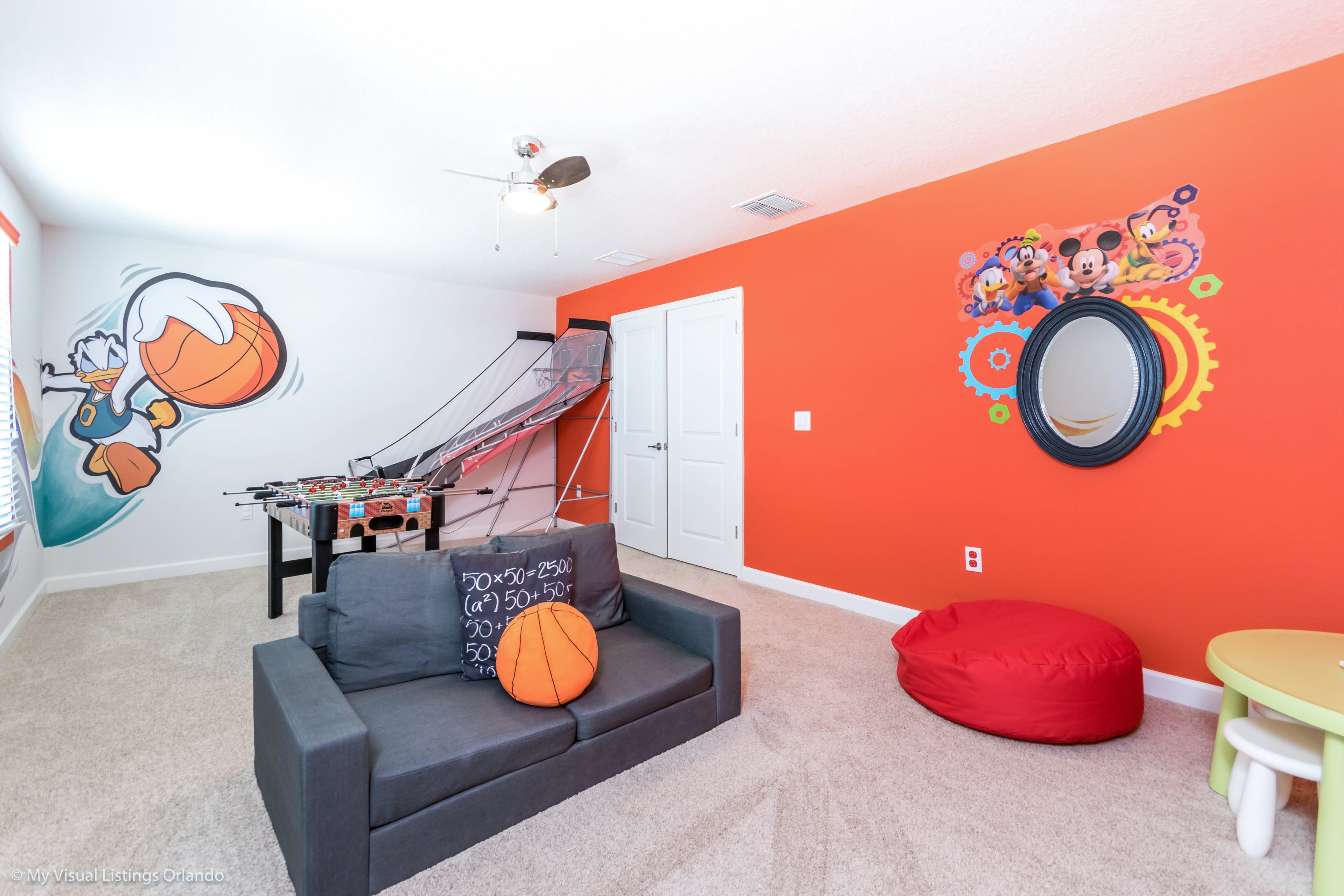 If you're looking for a vacation that will create life-long memories, look no further than Champions Gate. The 20,000 sq. ft. Oasis clubhouse is simply stunning and world-class. It features a huge resort-style pool with water slides, lazy river, splash park, state-of-the-art fitness center, tiki bar and movie theatre along with a playground and volleyball courts. The luxurious cabanas are air-conditioned and are perfect for spending the entire day at the pool.