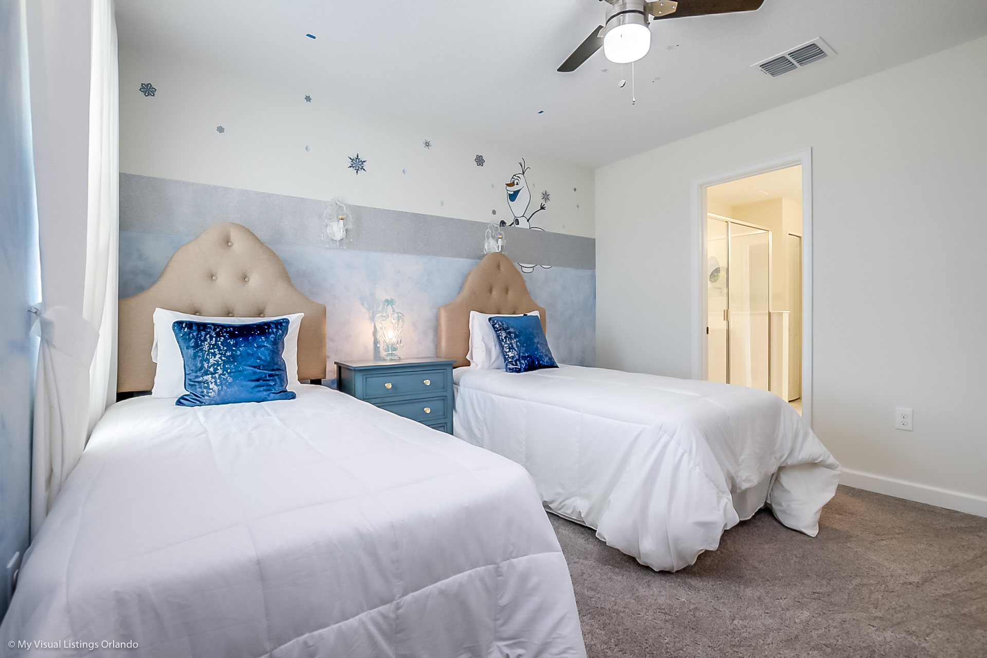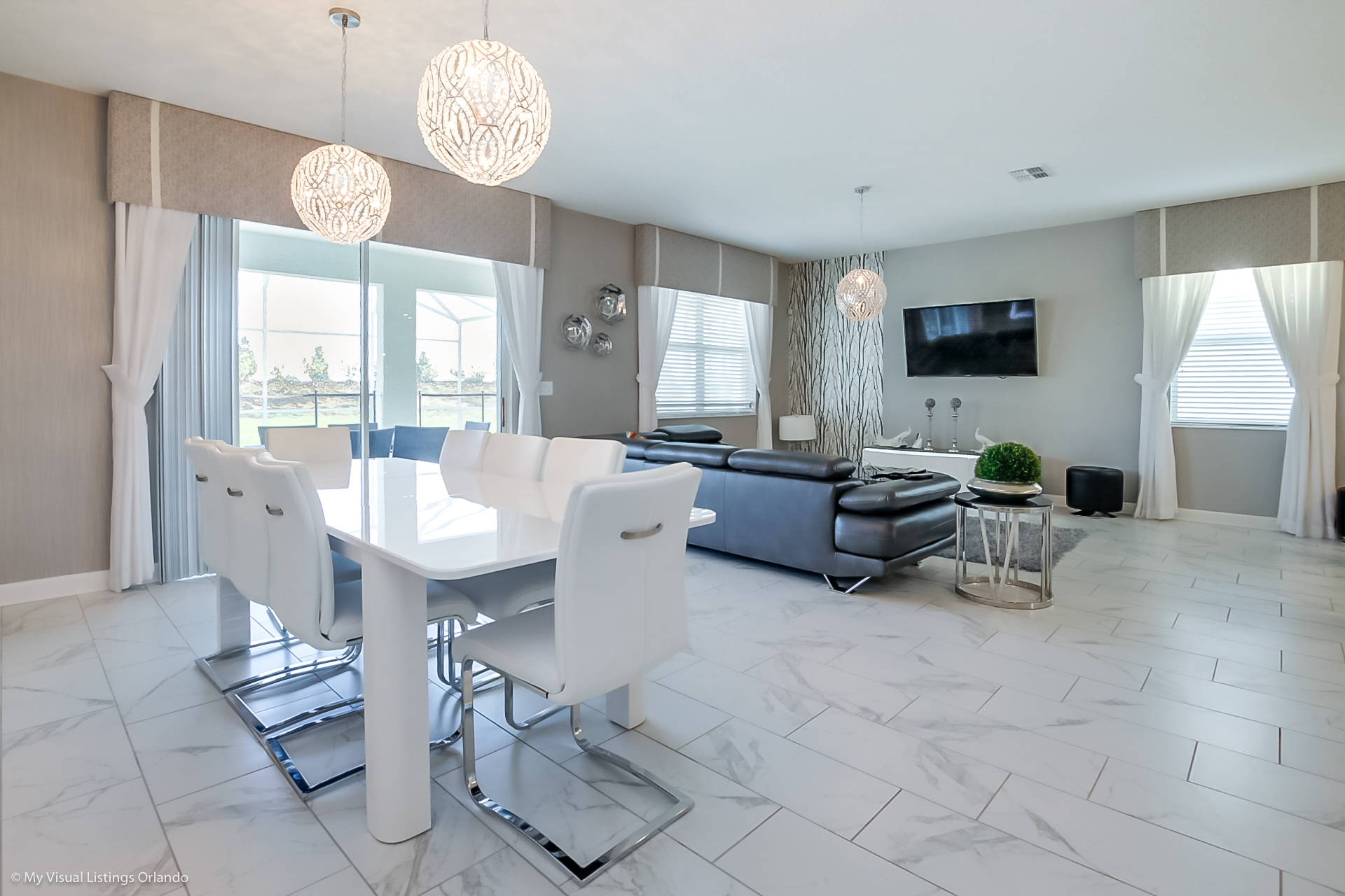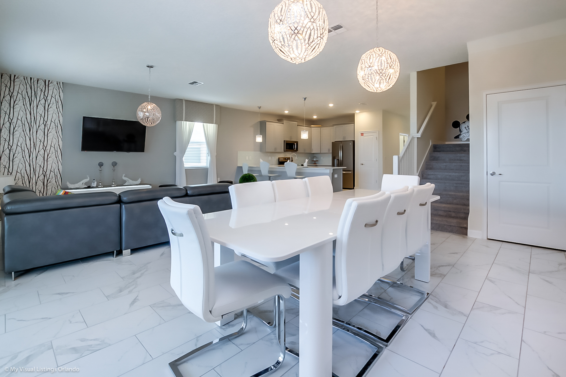You will feel immediately relaxed as you enter our 8 bedroom, 5 bathroom executive home which sleeps up to 16 in style. We have paid great attention to every detail when we furnished this home and we hope you will enjoy it as much as we do with our own family. With 4 king bedrooms, 2 bedroom with 2 twin rooms , there is plenty of room for everyone to spread out and relax after a day out or just to stay in and take it easy. Each room has a different feel so all guests should be equally happy with their room, and all have wall mounted flat screen LED Tv’s. The dining room and living area offers plenty of space to congregate and enjoy meals together, and the bright and airy kitchen has all the appliances that you would expect in your own home. (There is also a full-size washer and dryer). This home will bring all the excitement of Orlando to you, and have the entire group talking about your trip for months to come.