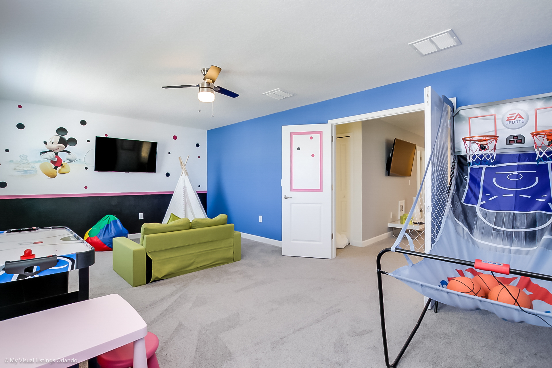 If you're looking for a vacation that will create life-long memories, look no further than Champions Gate. The 20,000 sq. ft. Oasis clubhouse is simply stunning and world-class. It features a huge resort-style pool with water slides, lazy river, splash park, state-of-the-art fitness center, tiki bar and movie theatre along with a playground and volleyball courts. The luxurious cabanas are air-conditioned and are perfect for spending the entire day at the pool.