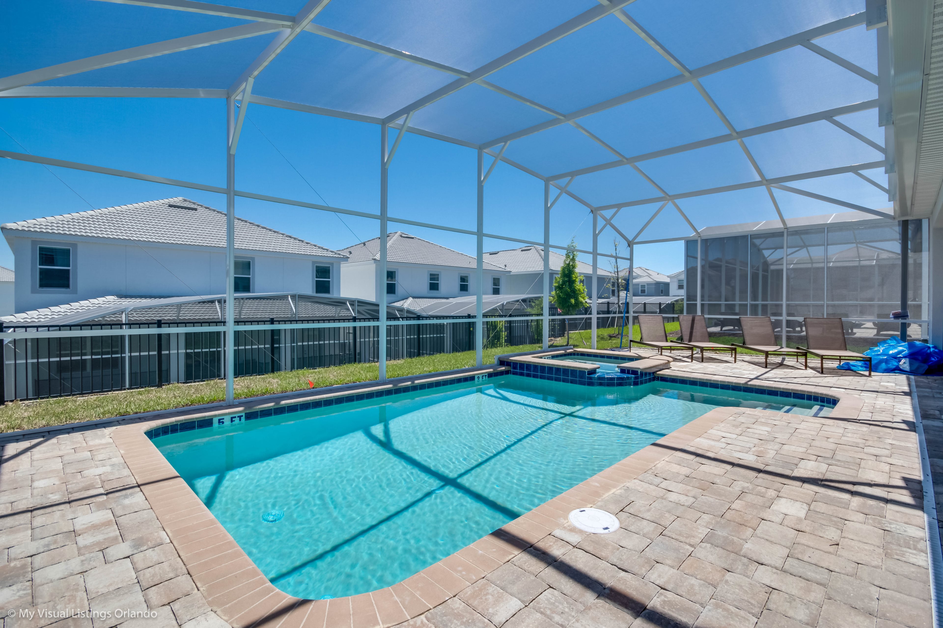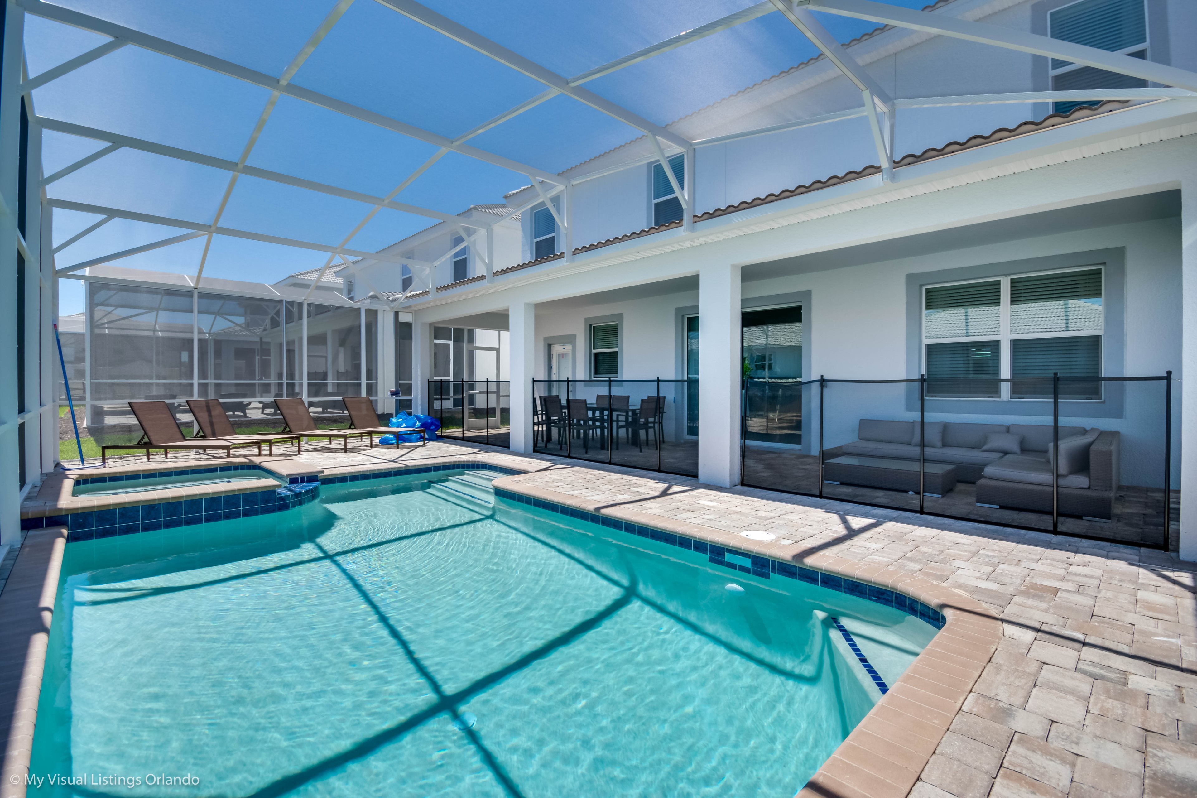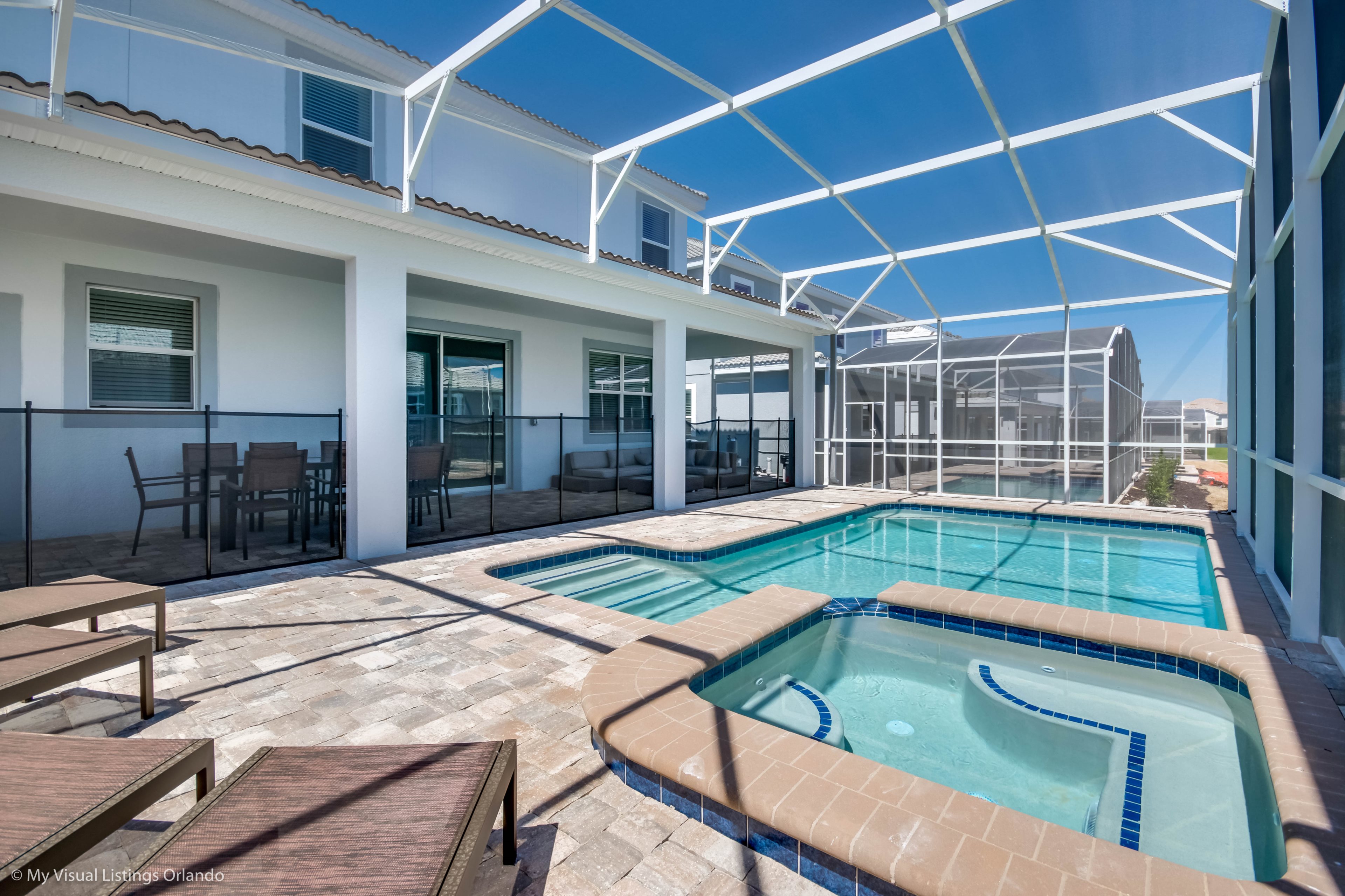 We invite you to enjoy our wonderful home on your next trip to Orlando. Absolutely perfect for multi-family groups, or golf groups, this property features all the comforts of home and more! Book your vacation now at this beautiful home with pool and spa.