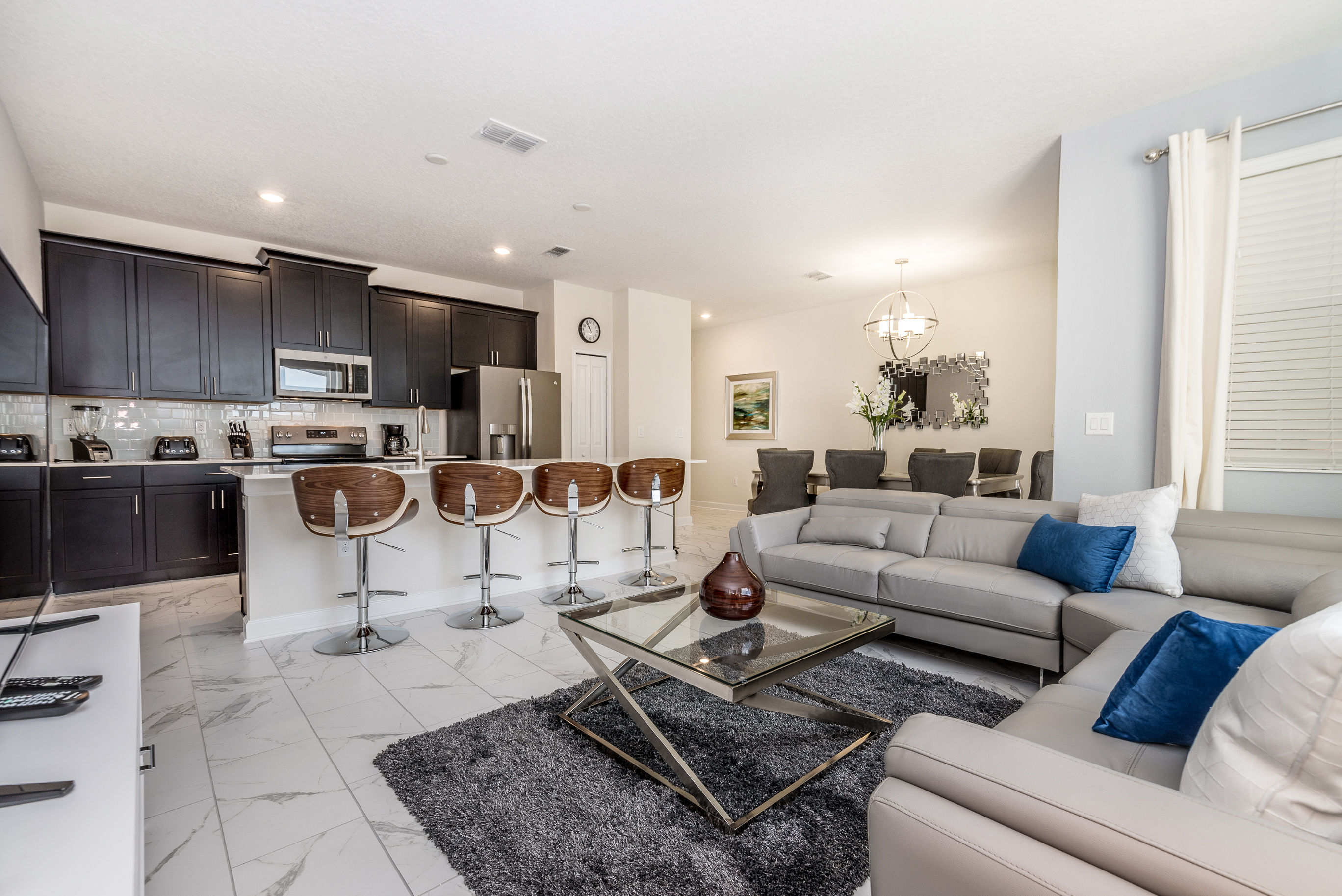 This stylish 4 bedroom townhome is a great choice for your family vacation base. With 4 bedrooms and 3 bathrooms, open floorplan, modern kitchen and plunge pool area this home offers just what you need for that at home feeling while on vacation. After a long day enjoying the theme parks and all Orlando has to offer you will be able to escape the city and truly relax at Festival of Champions townhome!