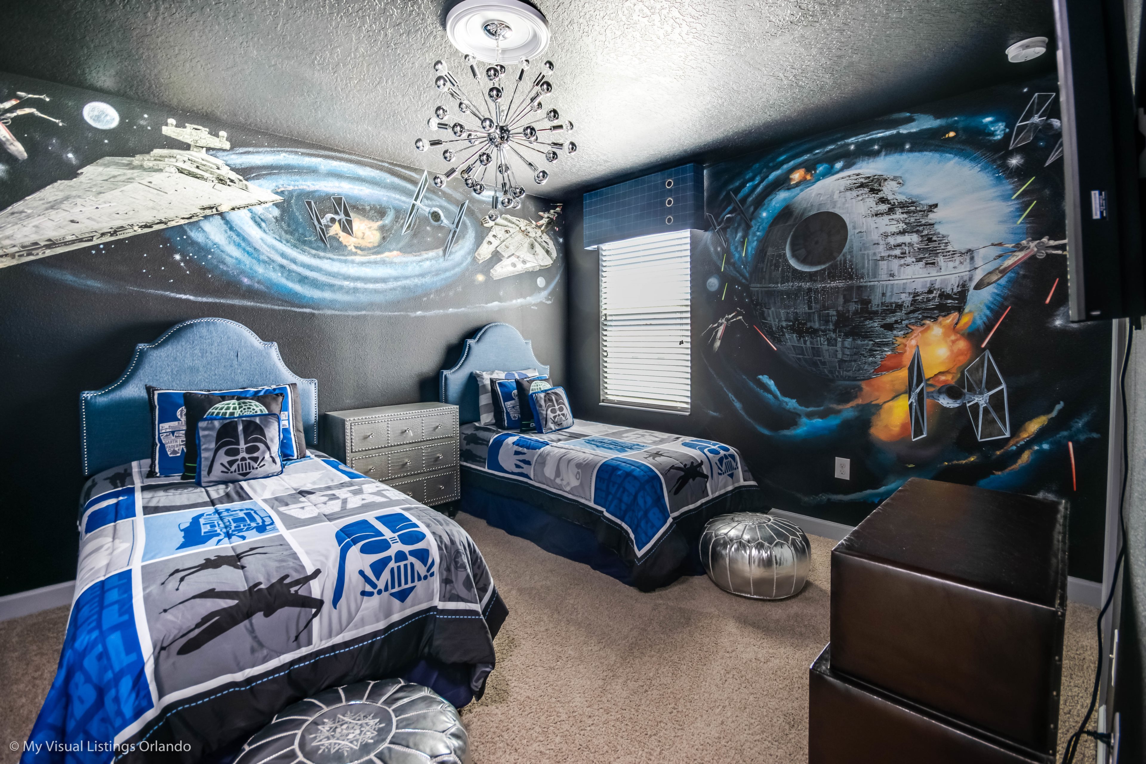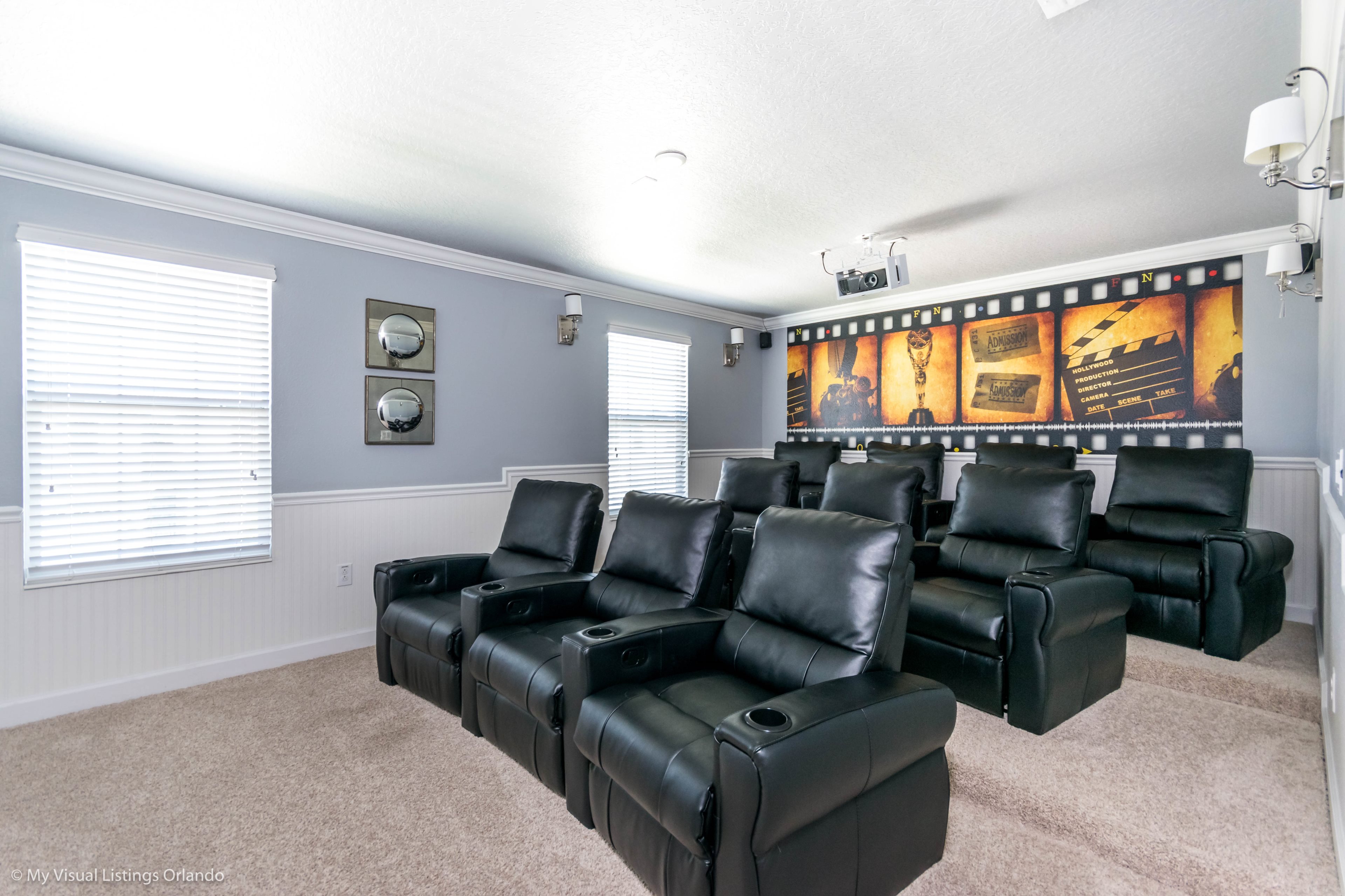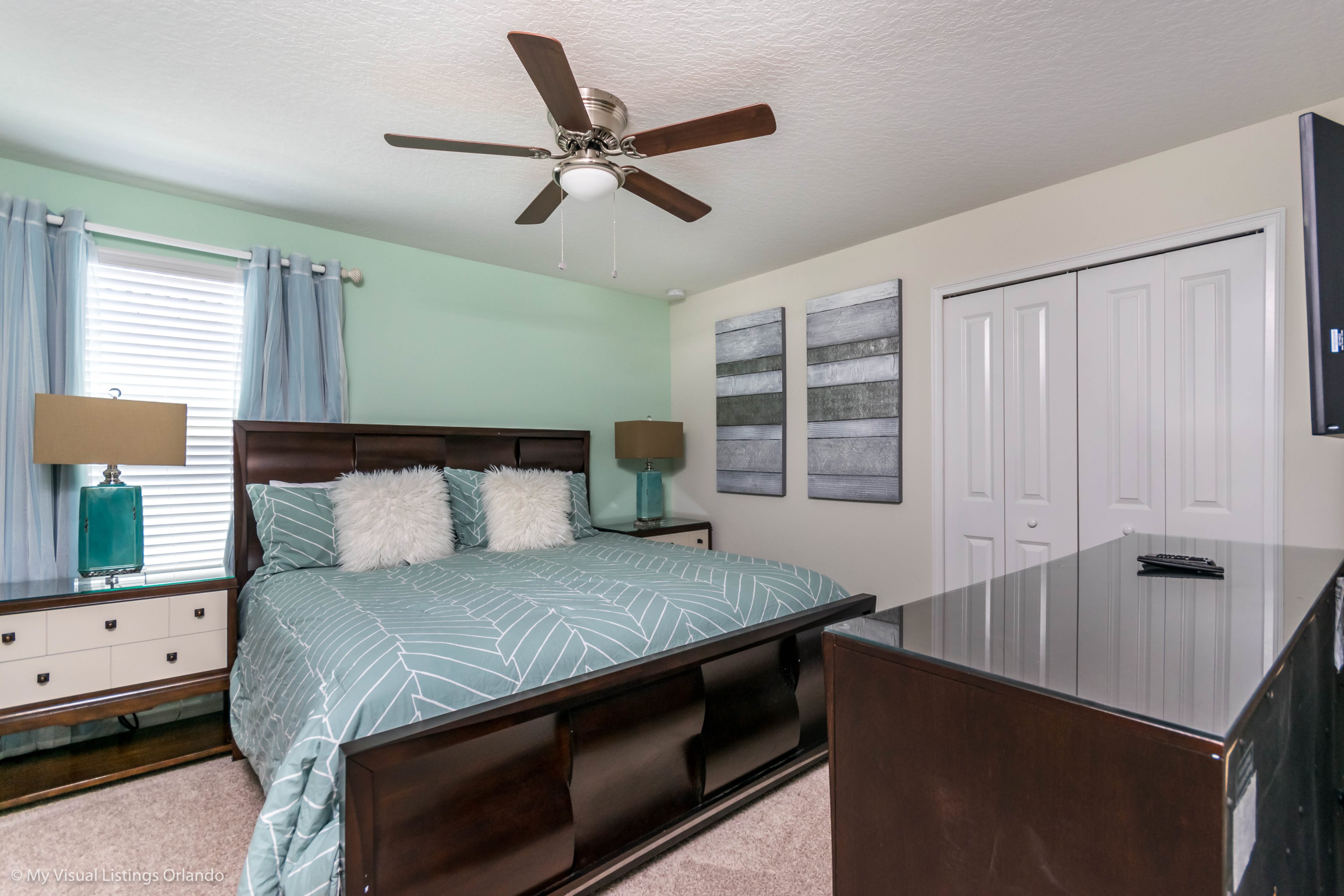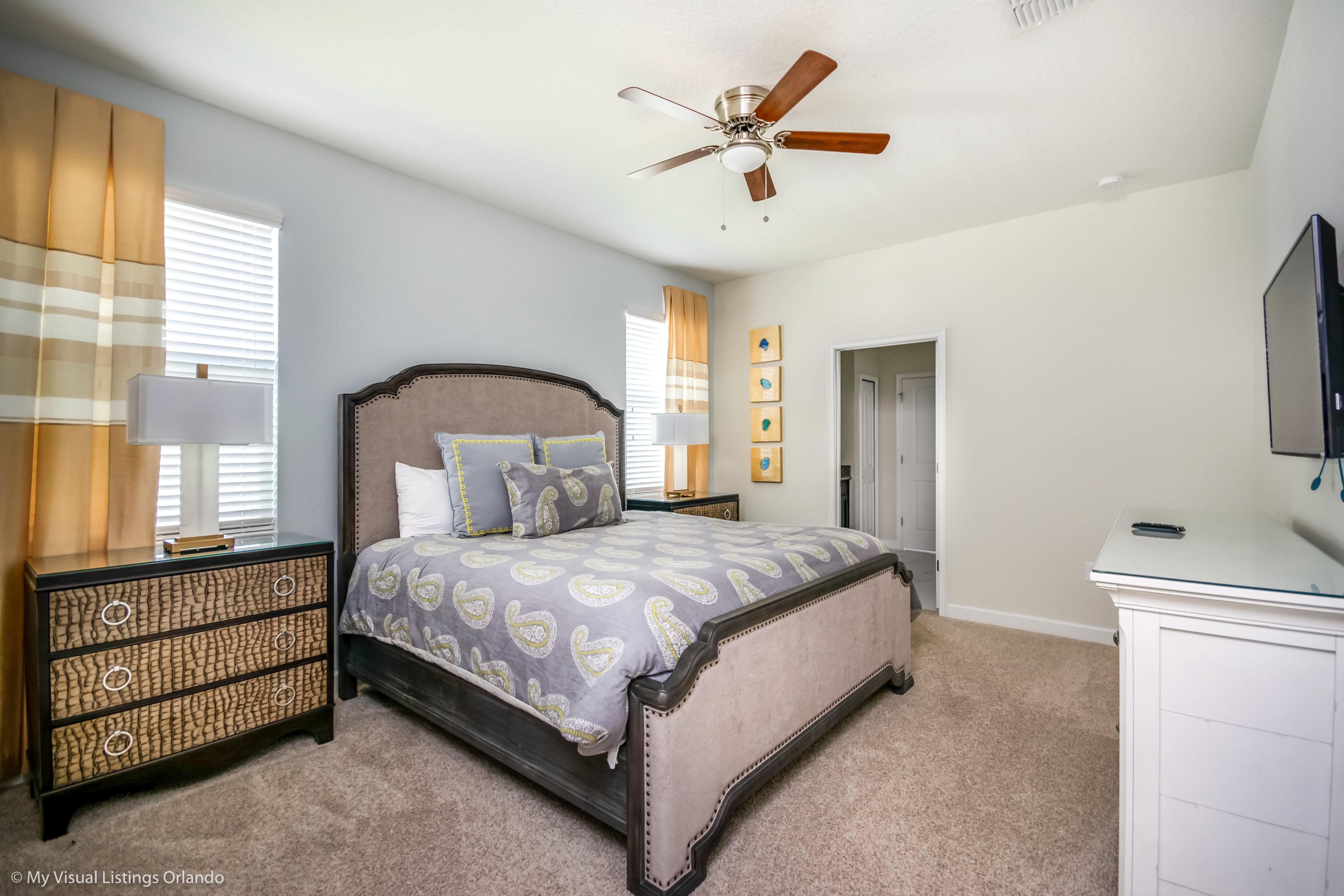 You will feel immediately relaxed as you enter our 7 bedroom, 5 bathroom executive home which sleeps up to 14 in style. We have paid great attention to every detail when we furnished this home and we hope you will enjoy it as much as we do with our own family. . Each room has a different feel so all guests should be equally happy with their room, and all have wall mounted flat screen LED Tv’s. The dining room and living area offers plenty of space to congregate and enjoy meals together, and the bright and airy kitchen has all the appliances that you would expect in your own home. (There is also a full-size washer and dryer). Or why not take a dip in the large pool or relax in the spa, even in the evening as the pool area is south facing? This home will bring all the excitement of Orlando to you, and have the entire group talking about your trip for months to come.