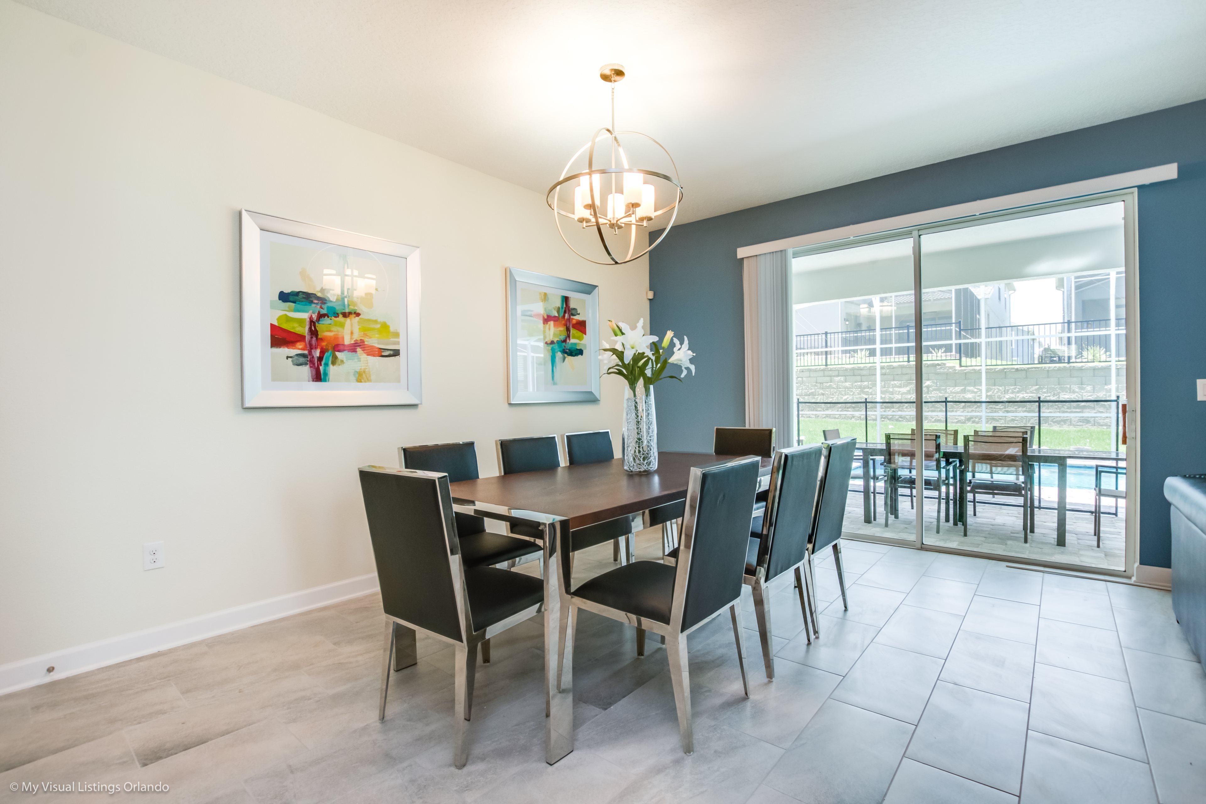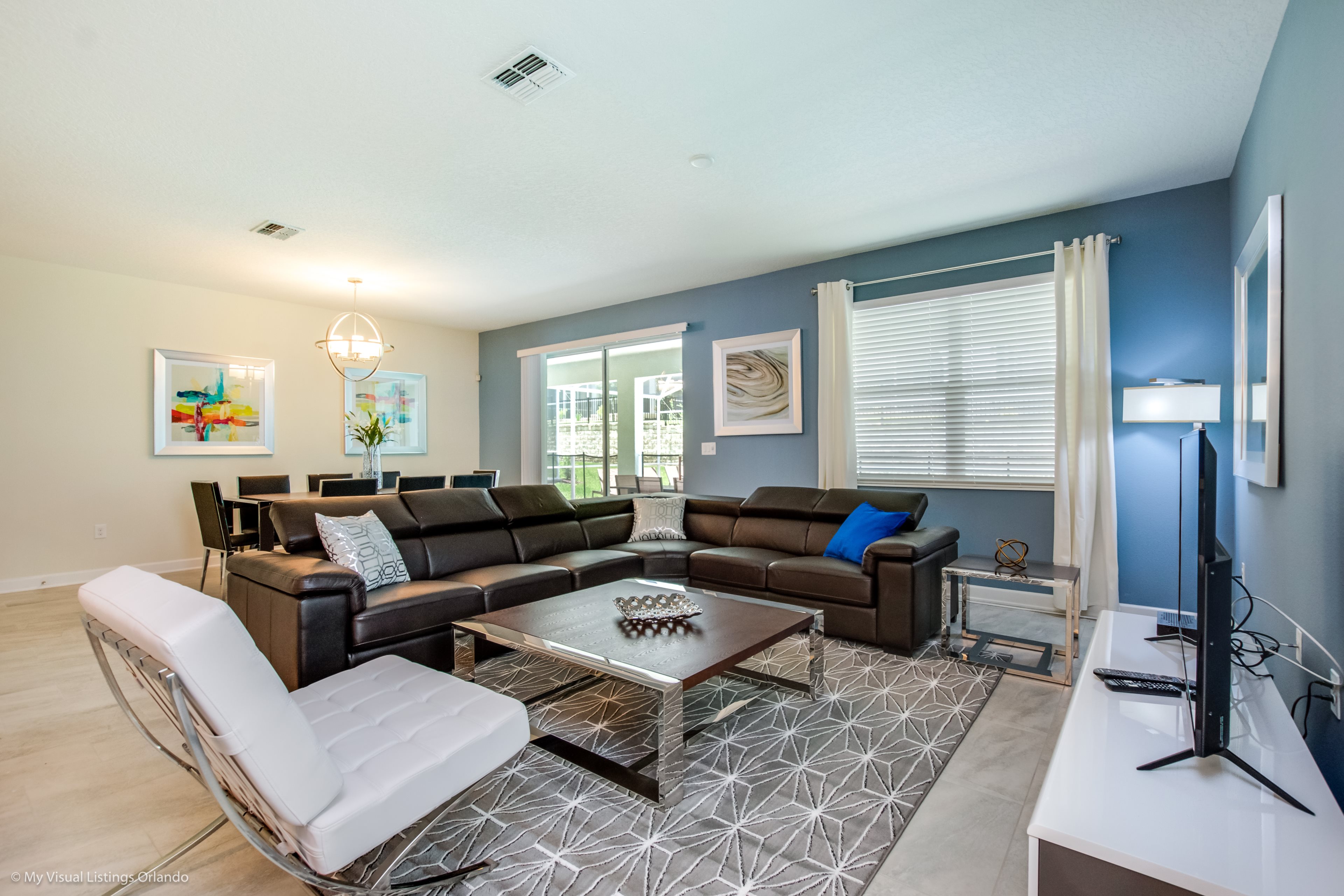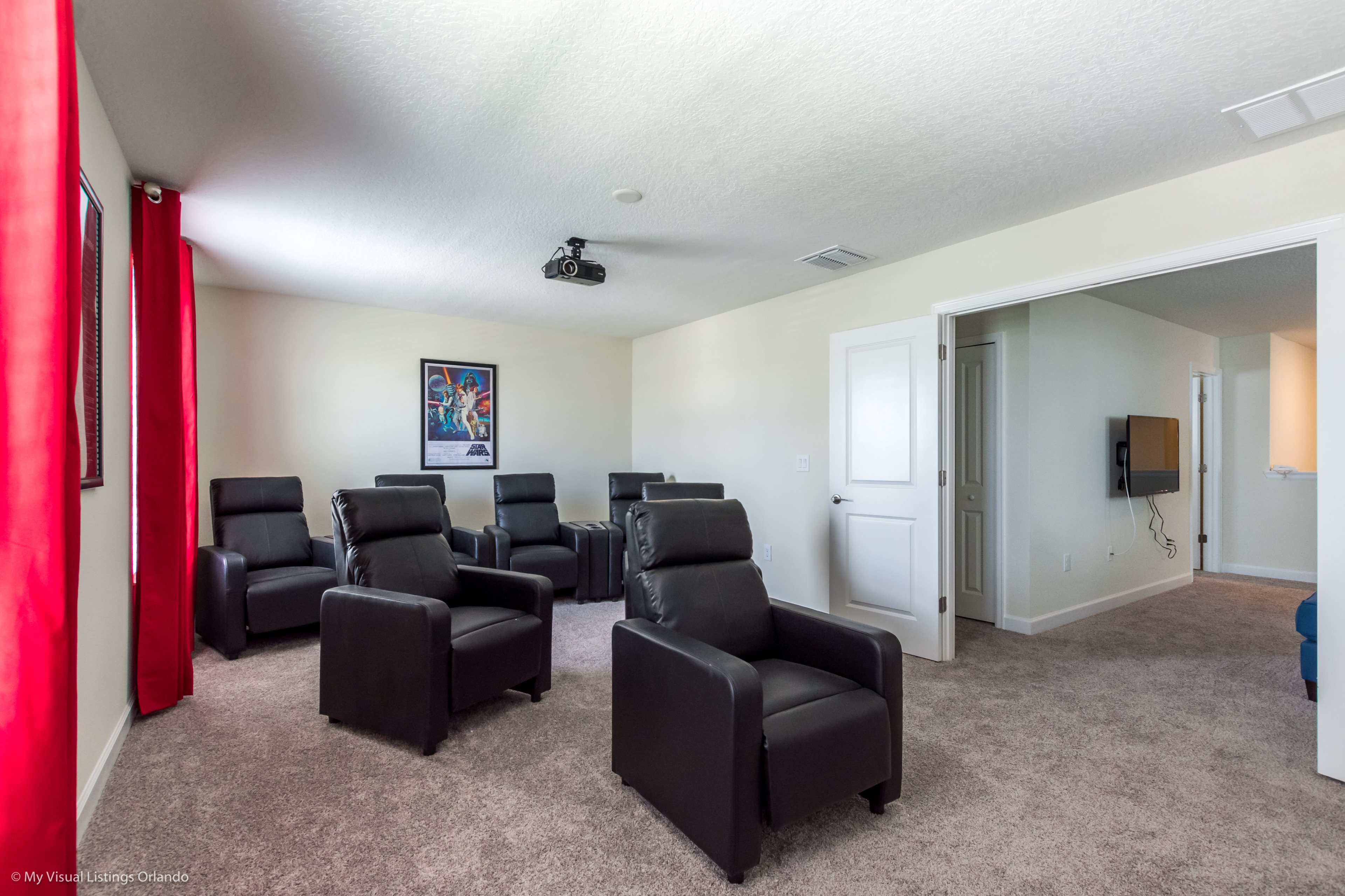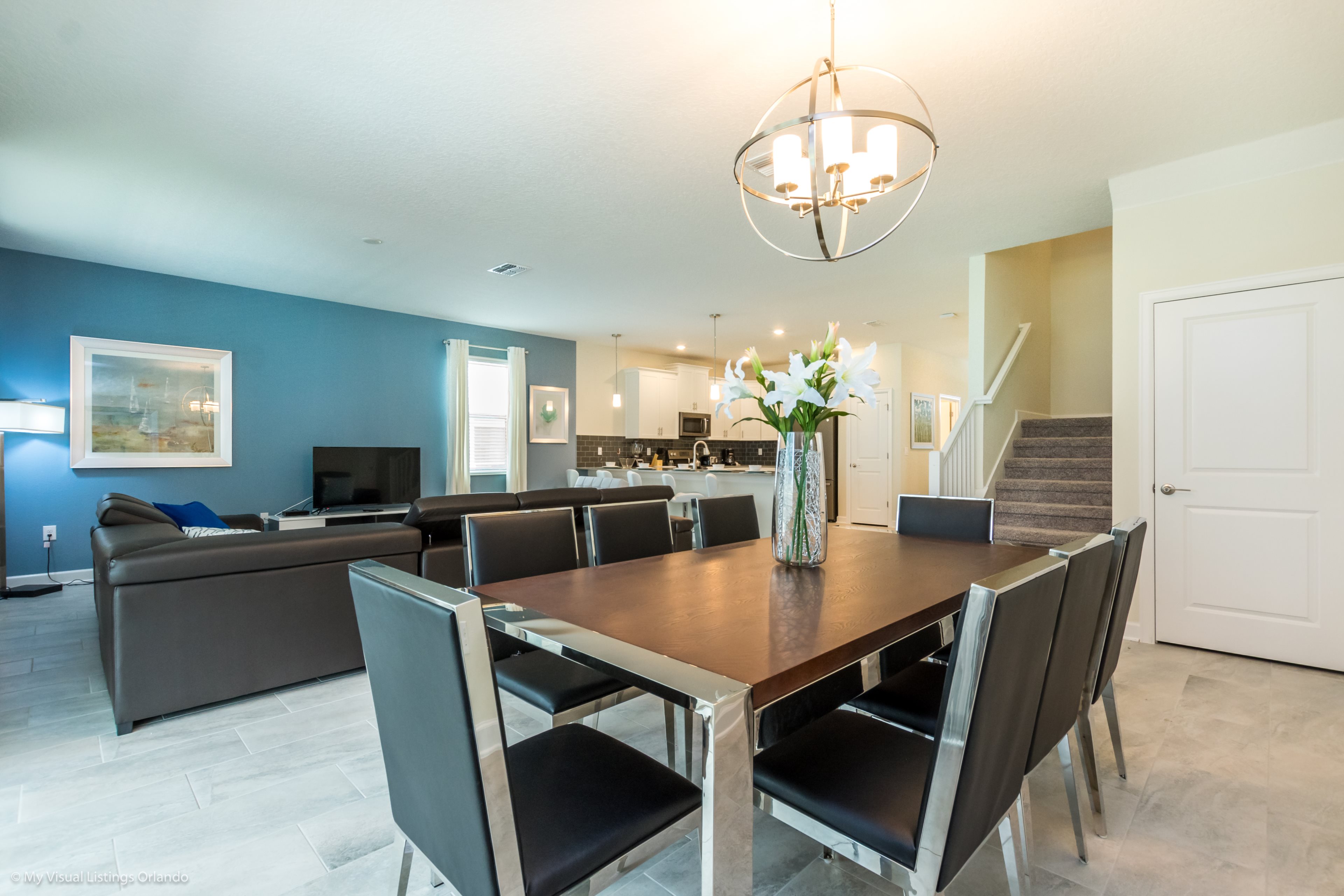 You will feel immediately relaxed as you enter our 8 bedroom, 5 bathroom executive home which sleeps up to 16 in style. We have paid great attention to every detail when we furnished this home and we hope you will enjoy it as much as we do with our own family. With 4 king bedrooms, 2 queen bedroom 2 twins rooms , there is plenty of room for everyone to spread out and relax after a day out or just to stay in and take it easy. Each room has a different feel so all guests should be equally happy with their room, and all have wall mounted flat screen LED Tv’s. The dining room and living area offers plenty of space to congregate and enjoy meals together, and the bright and airy kitchen has all the appliances that you would expect in your own home. (There is also a full-size washer and dryer). You can also enjoy a game of pool in the game room, or watch a movie in the huge loft area, or leave the kids to play on the PlayStation. Or why not take a dip in the large pool or relax in the spa, even in the evening as the pool area is south facing? This home will bring all the excitement of Orlando to you, and have the entire group talking about your trip for months to come.