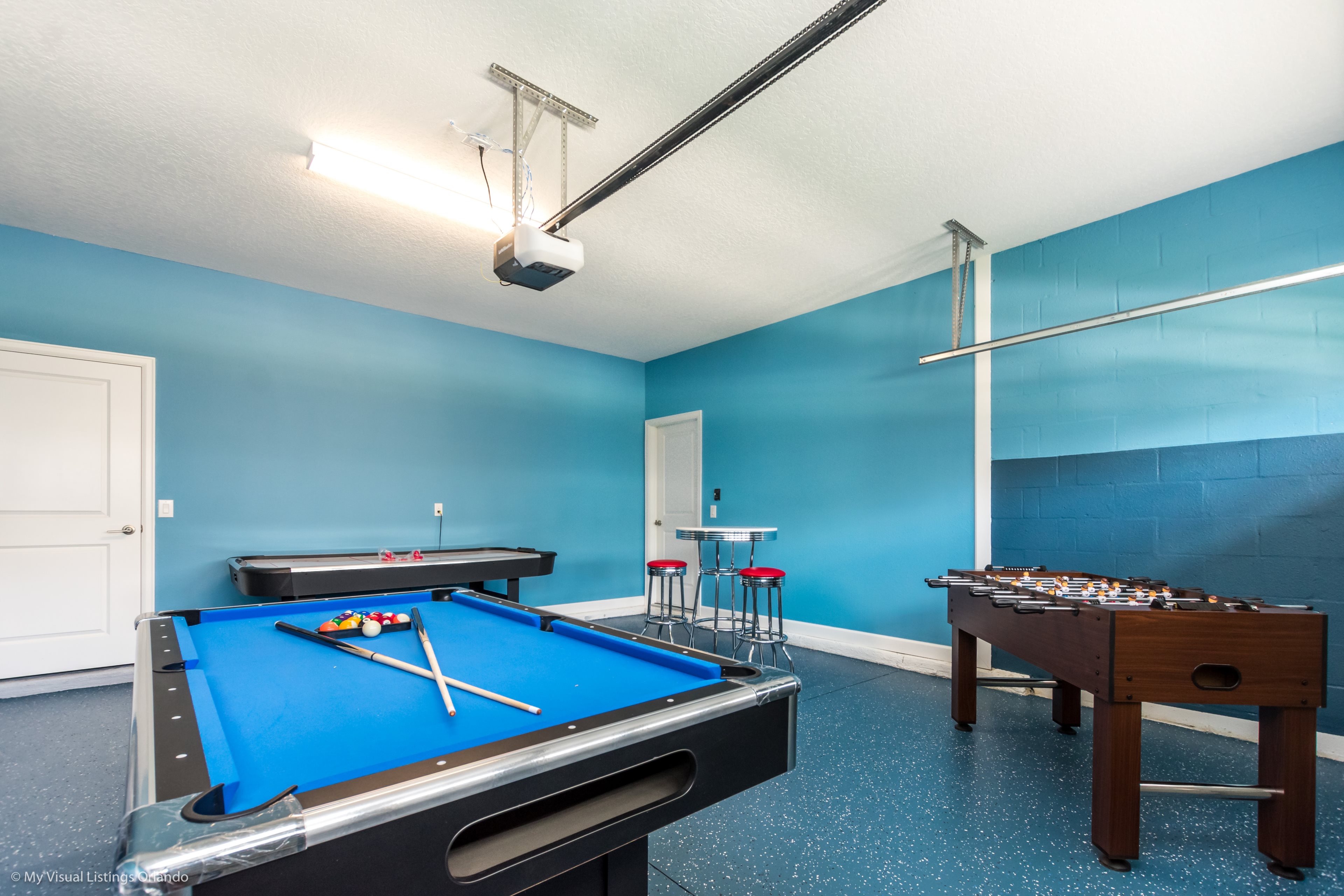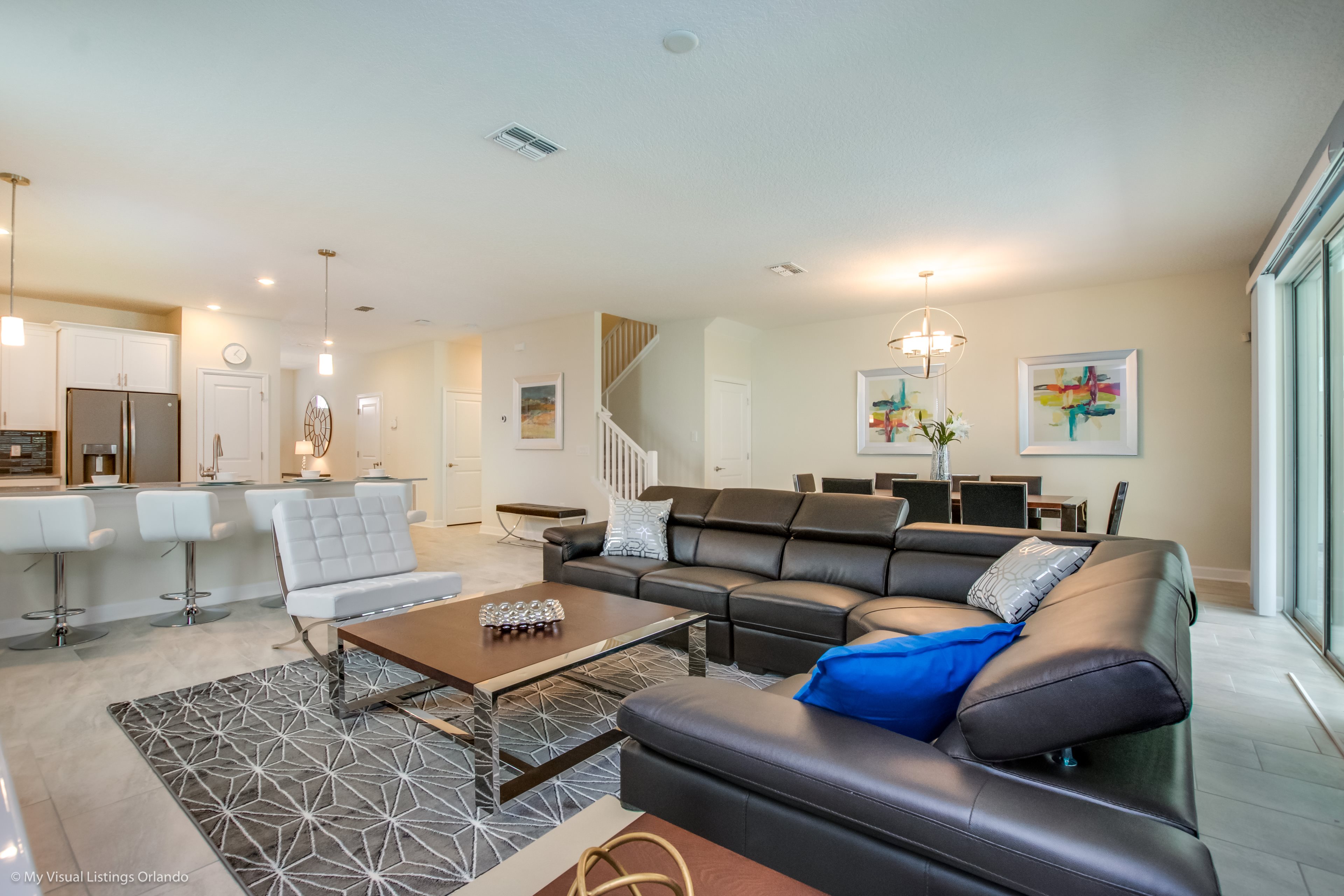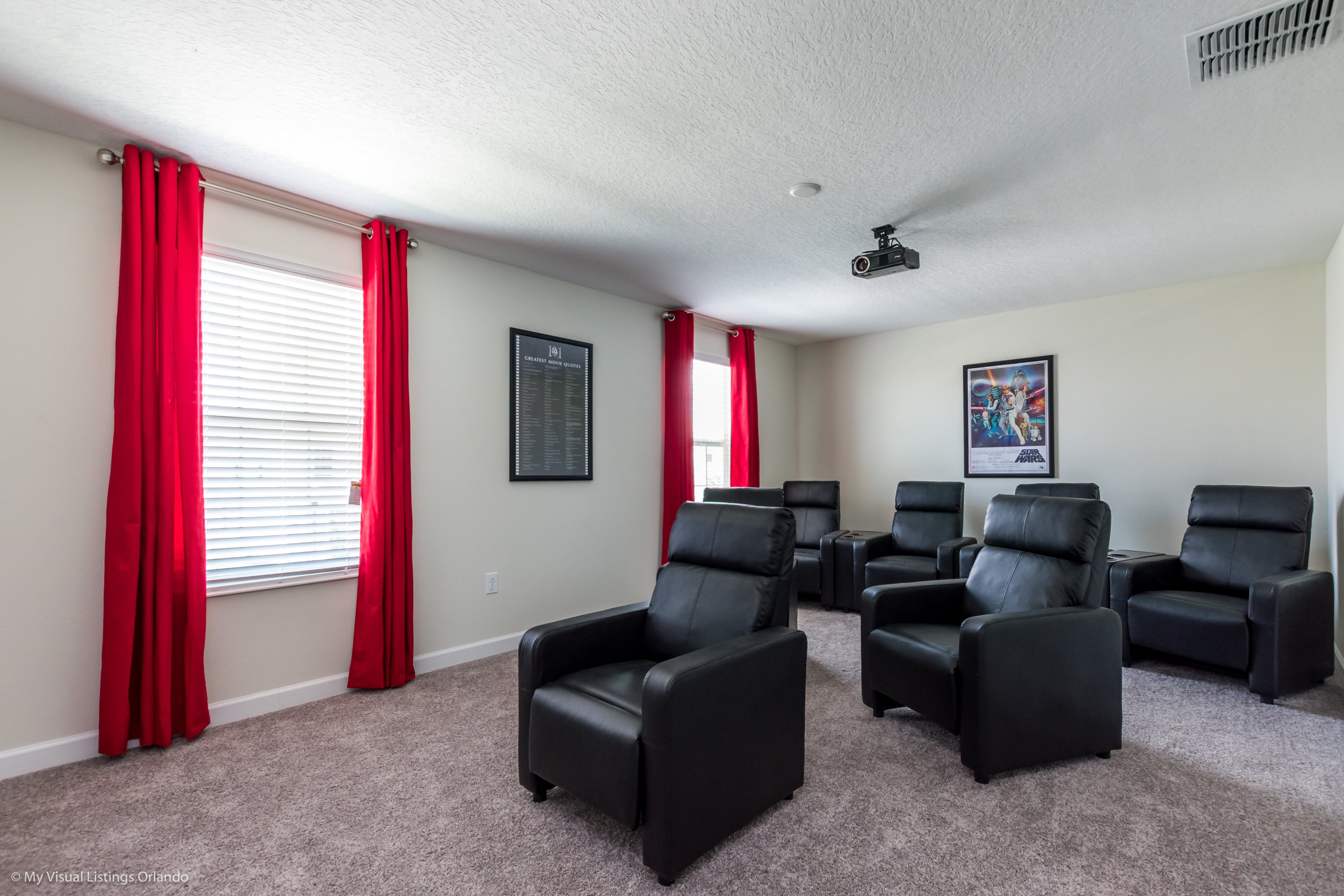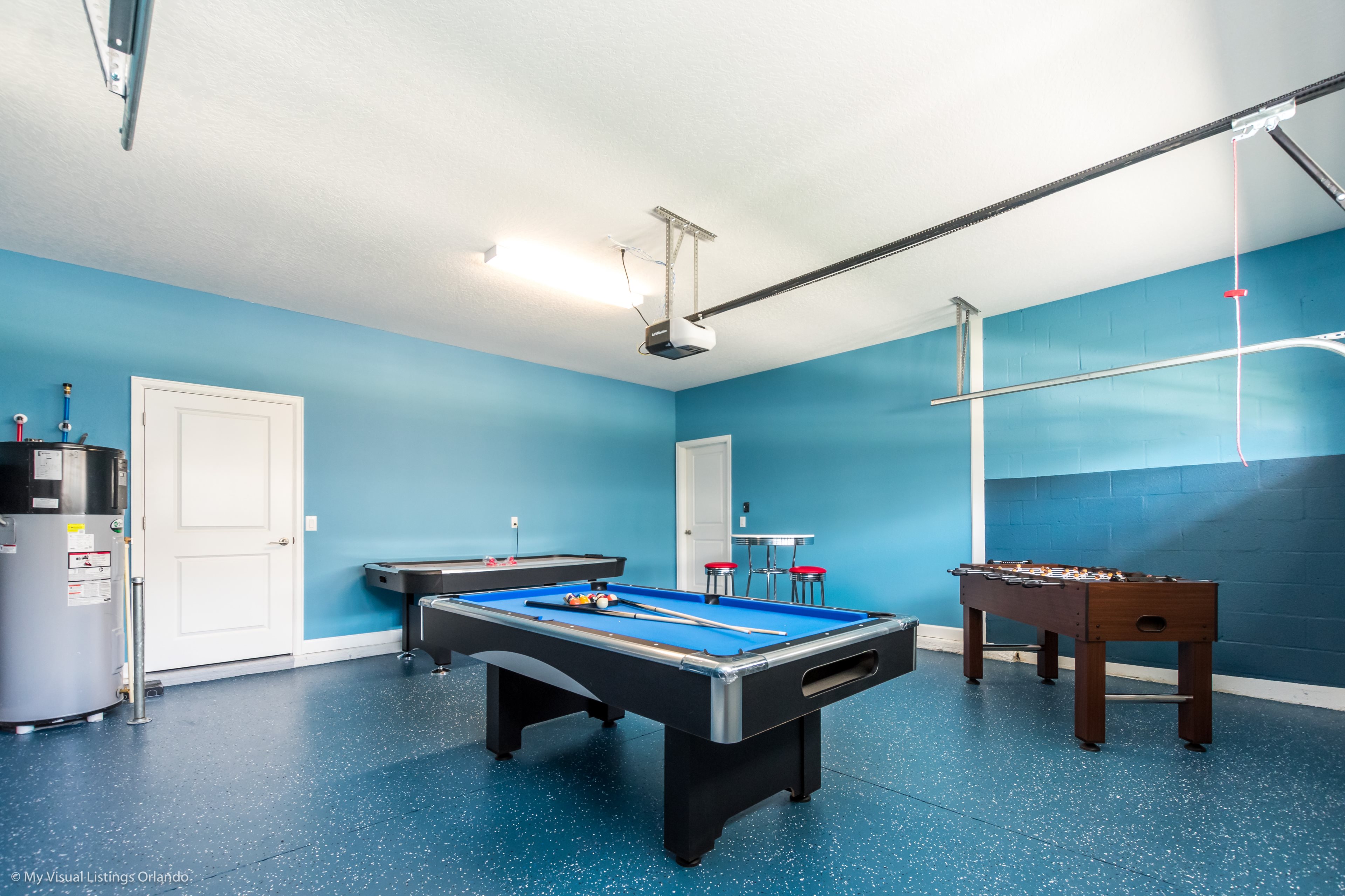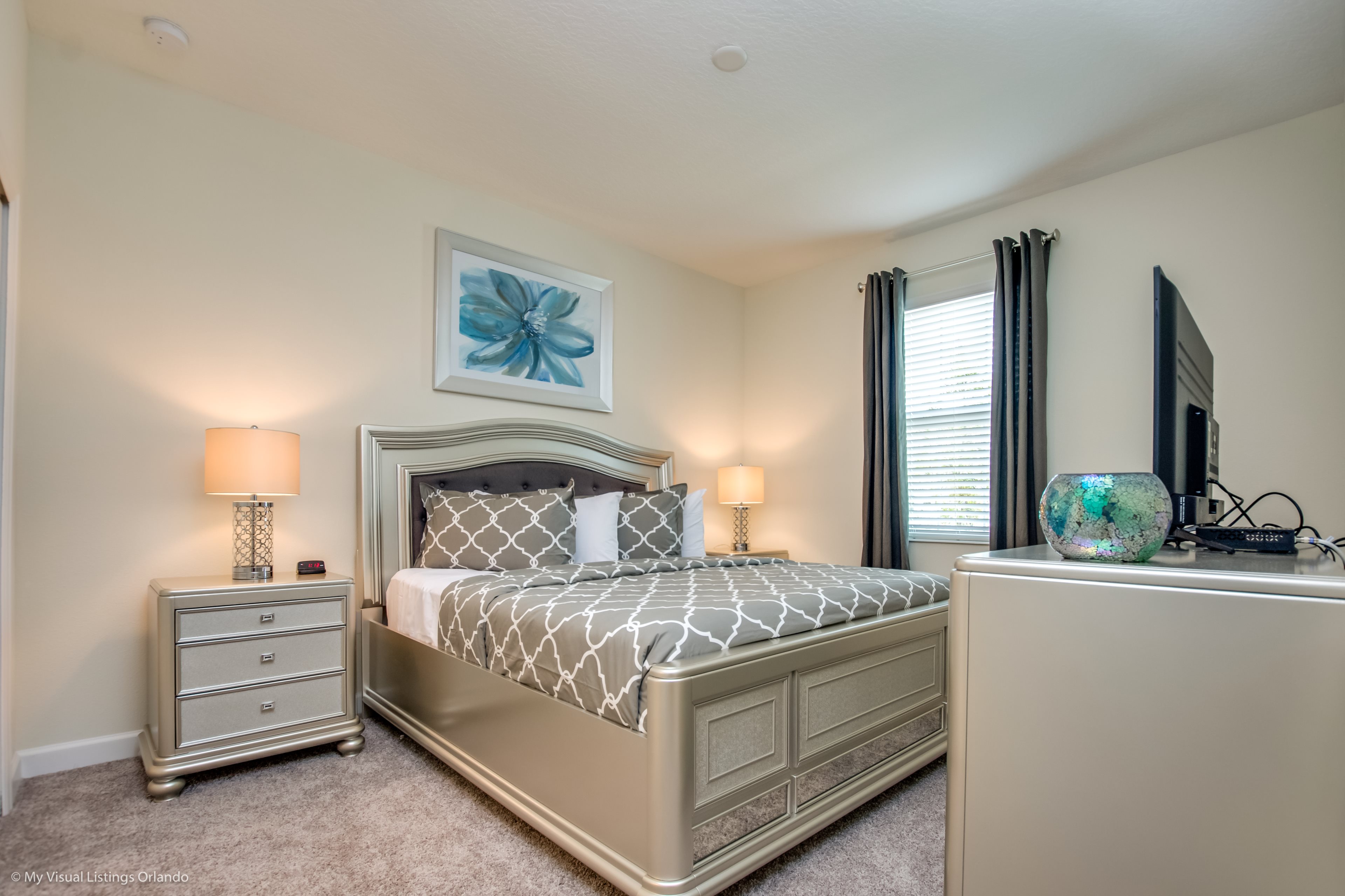 You will feel immediately relaxed as you enter our 8 bedroom, 5 bathroom executive home which sleeps up to 16 in style. We have paid great attention to every detail when we furnished this home and we hope you will enjoy it as much as we do with our own family. With 4 king bedrooms, 2 queen bedroom 2 twins rooms , there is plenty of room for everyone to spread out and relax after a day out or just to stay in and take it easy. Each room has a different feel so all guests should be equally happy with their room, and all have wall mounted flat screen LED Tv’s. The dining room and living area offers plenty of space to congregate and enjoy meals together, and the bright and airy kitchen has all the appliances that you would expect in your own home. (There is also a full-size washer and dryer). You can also enjoy a game of pool in the game room, or watch a movie in the huge loft area, or leave the kids to play on the PlayStation. Or why not take a dip in the large pool or relax in the spa, even in the evening as the pool area is south facing? This home will bring all the excitement of Orlando to you, and have the entire group talking about your trip for months to come.