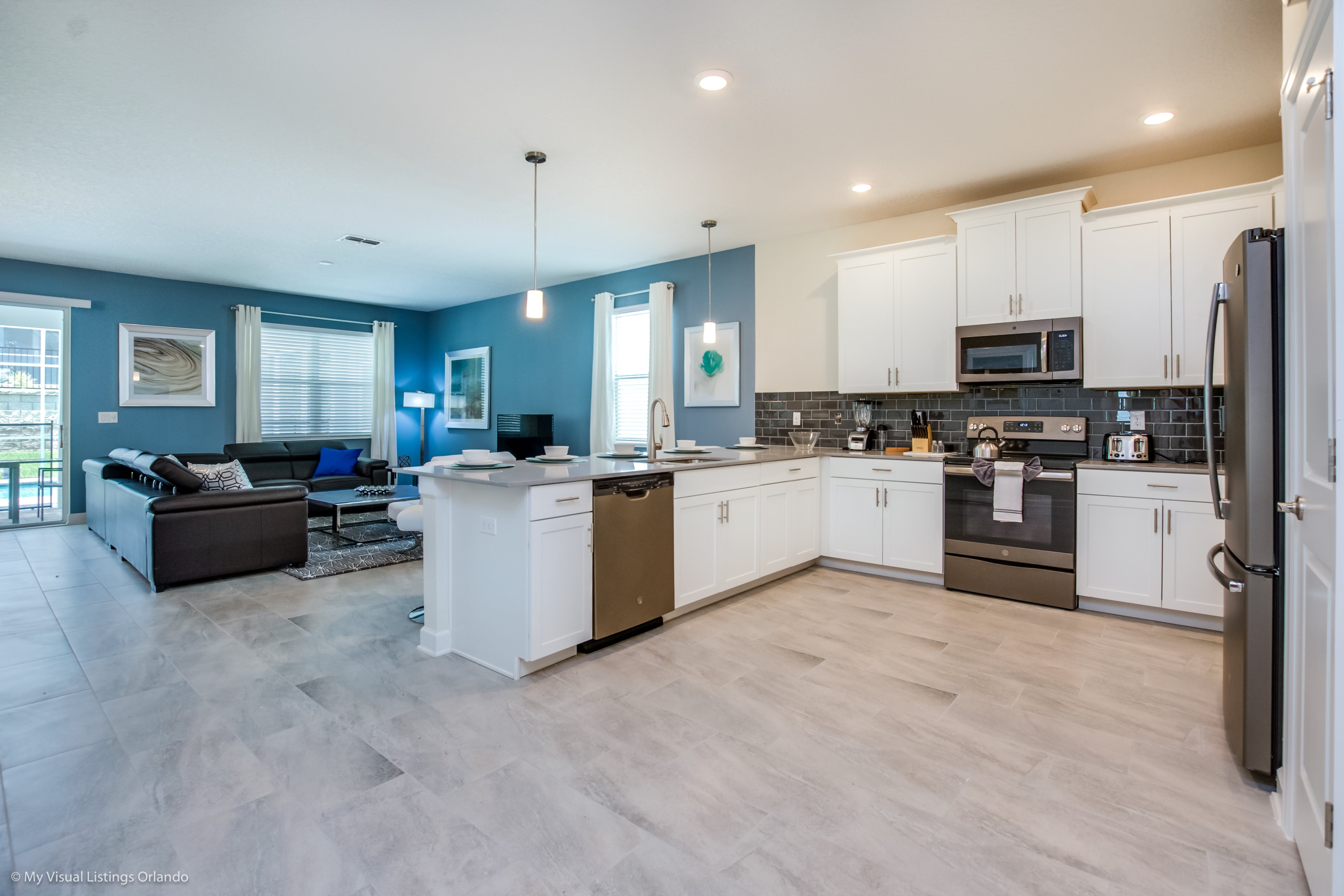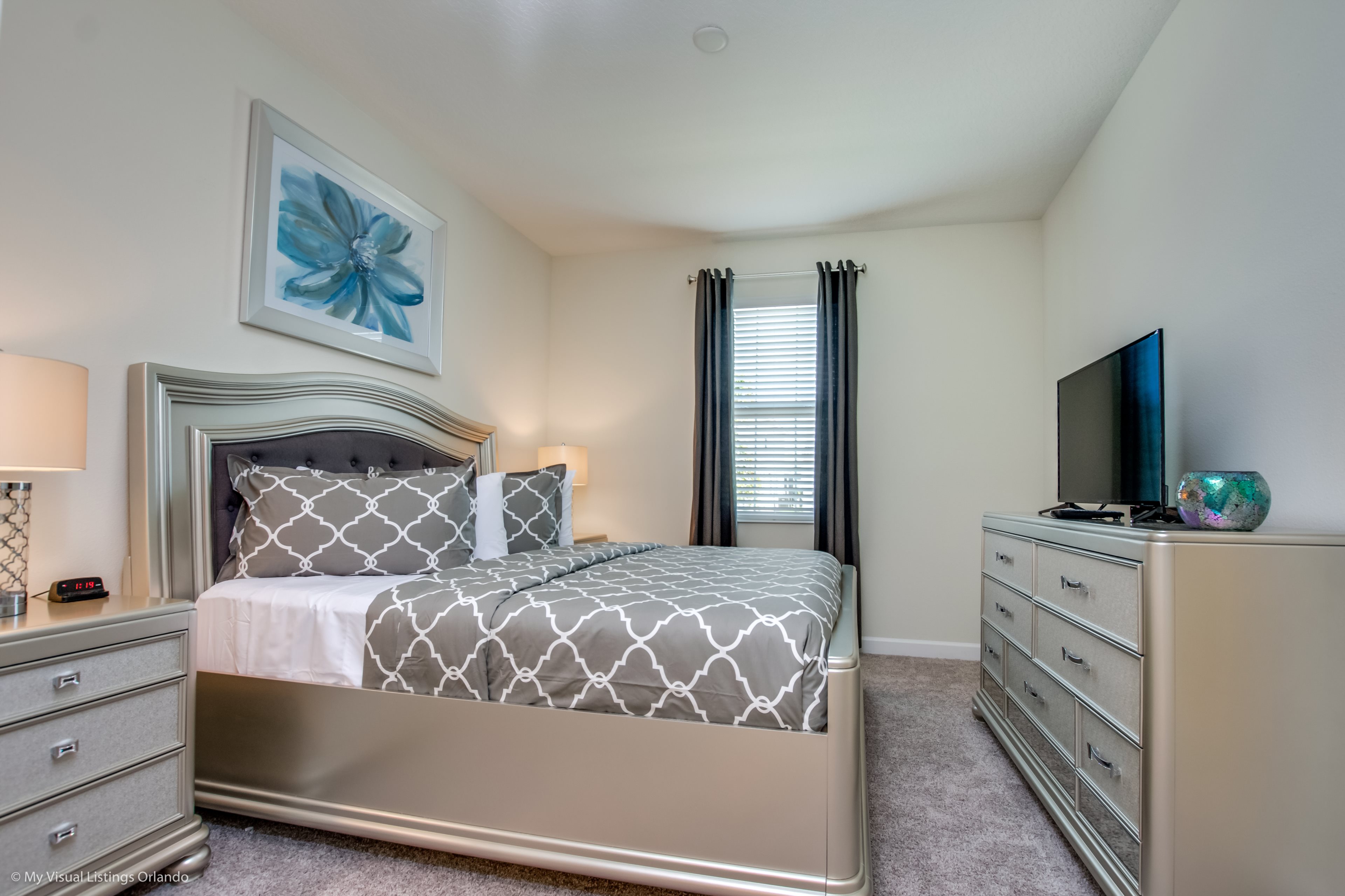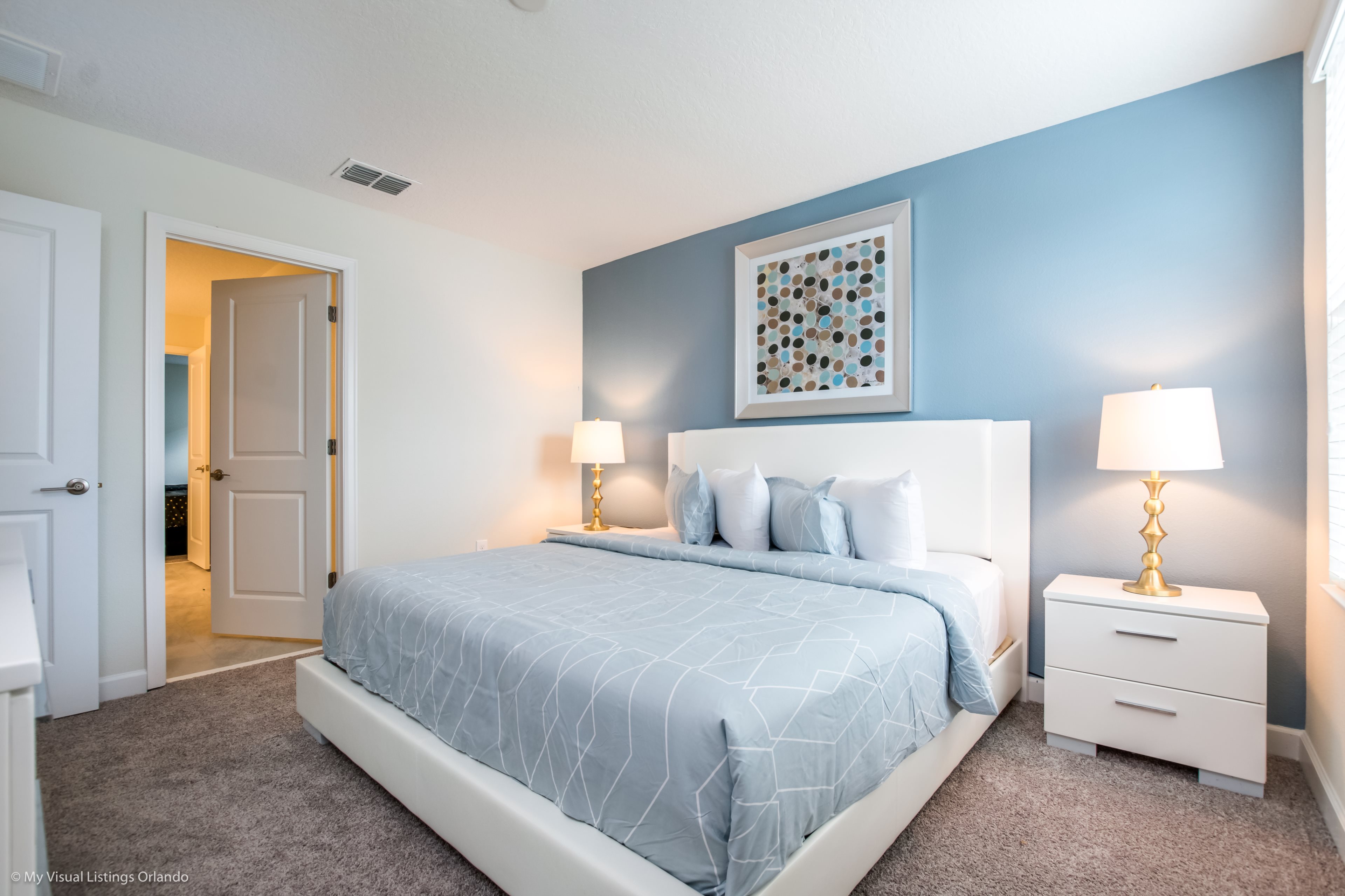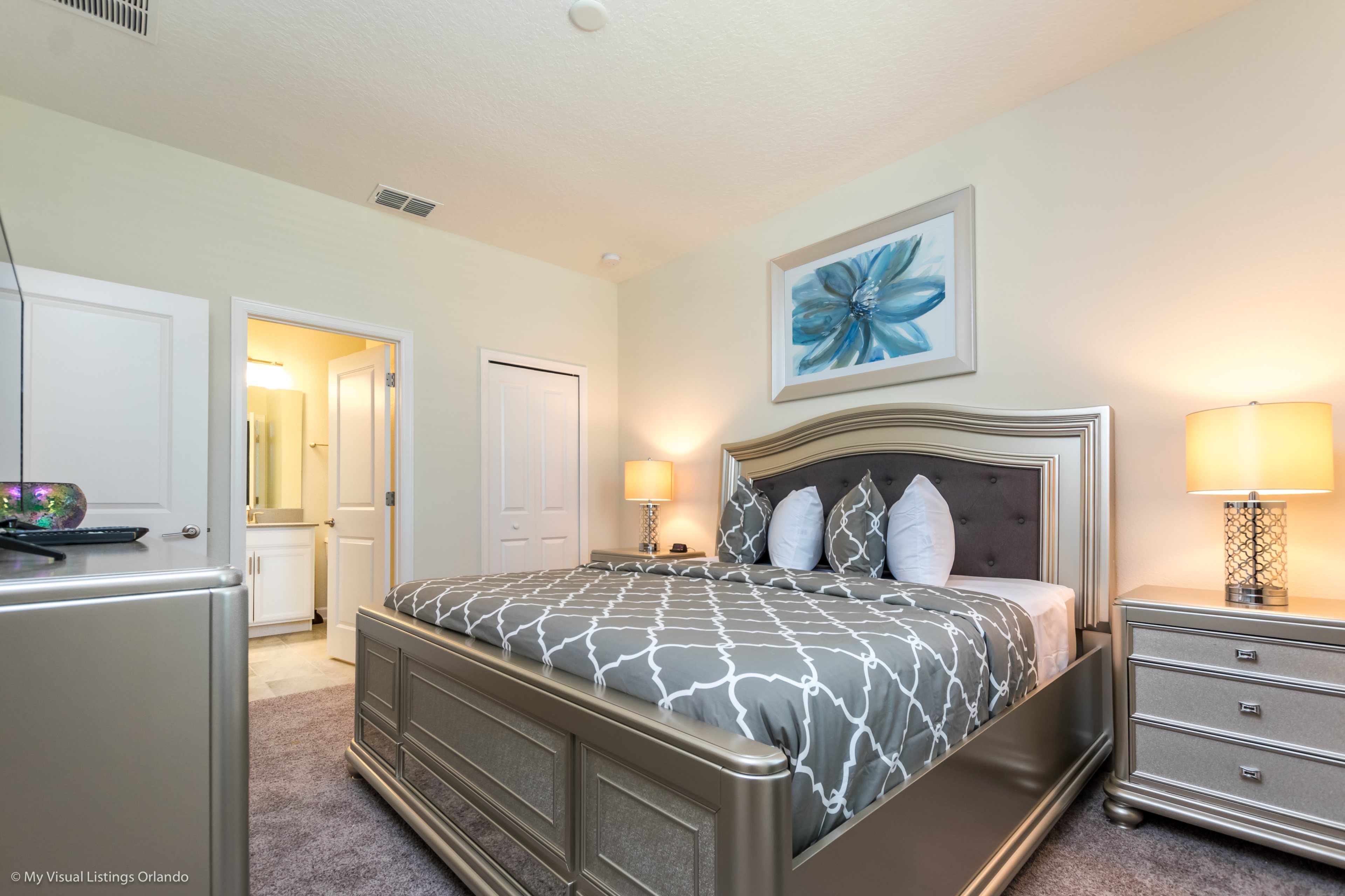 You will feel immediately relaxed as you enter our 8 bedroom, 5 bathroom executive home which sleeps up to 16 in style. We have paid great attention to every detail when we furnished this home and we hope you will enjoy it as much as we do with our own family. With 4 king bedrooms, 2 queen bedroom 2 twins rooms , there is plenty of room for everyone to spread out and relax after a day out or just to stay in and take it easy. Each room has a different feel so all guests should be equally happy with their room, and all have wall mounted flat screen LED Tv’s. The dining room and living area offers plenty of space to congregate and enjoy meals together, and the bright and airy kitchen has all the appliances that you would expect in your own home. (There is also a full-size washer and dryer). You can also enjoy a game of pool in the game room, or watch a movie in the huge loft area, or leave the kids to play on the PlayStation. Or why not take a dip in the large pool or relax in the spa, even in the evening as the pool area is south facing? This home will bring all the excitement of Orlando to you, and have the entire group talking about your trip for months to come.