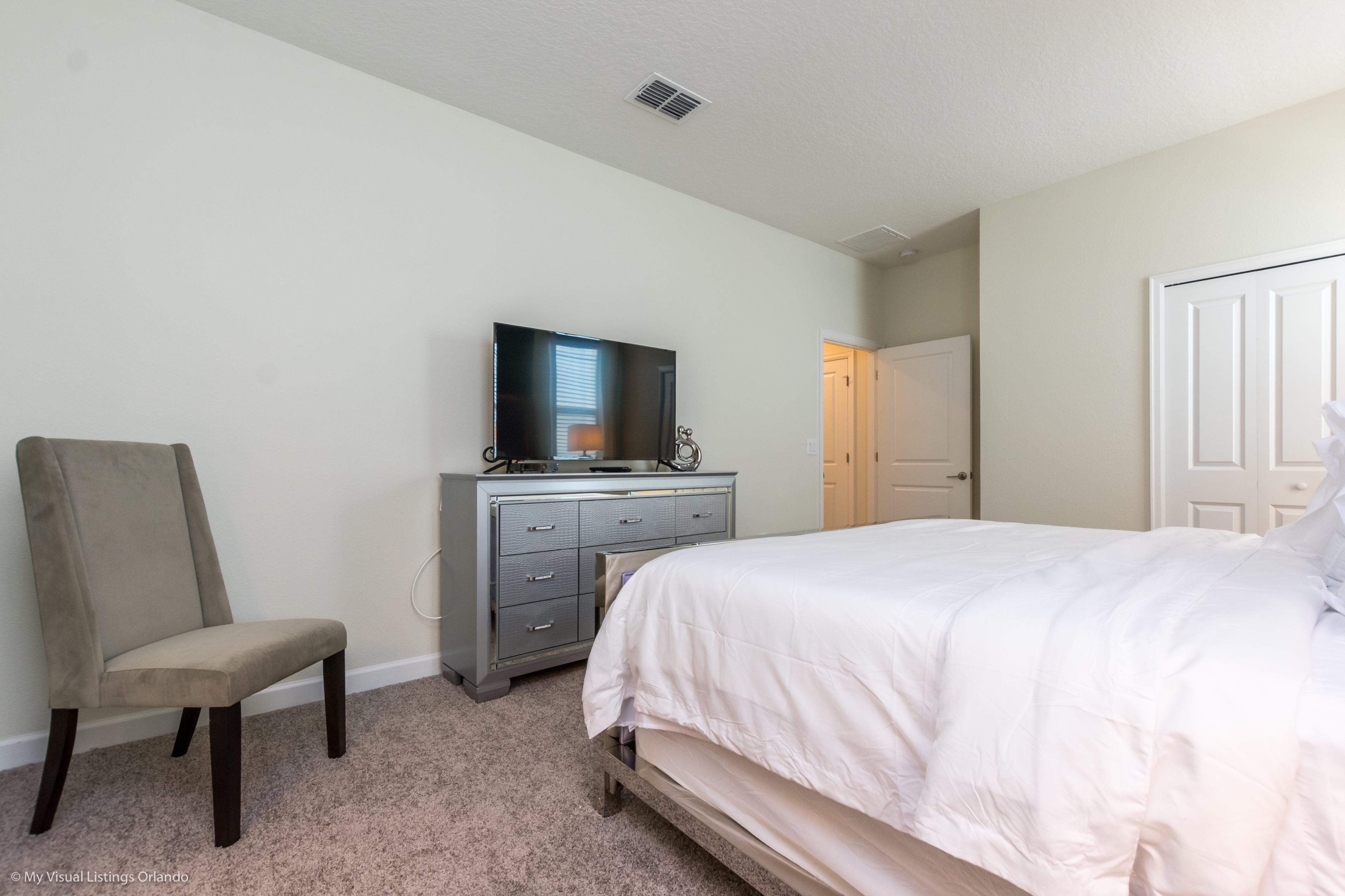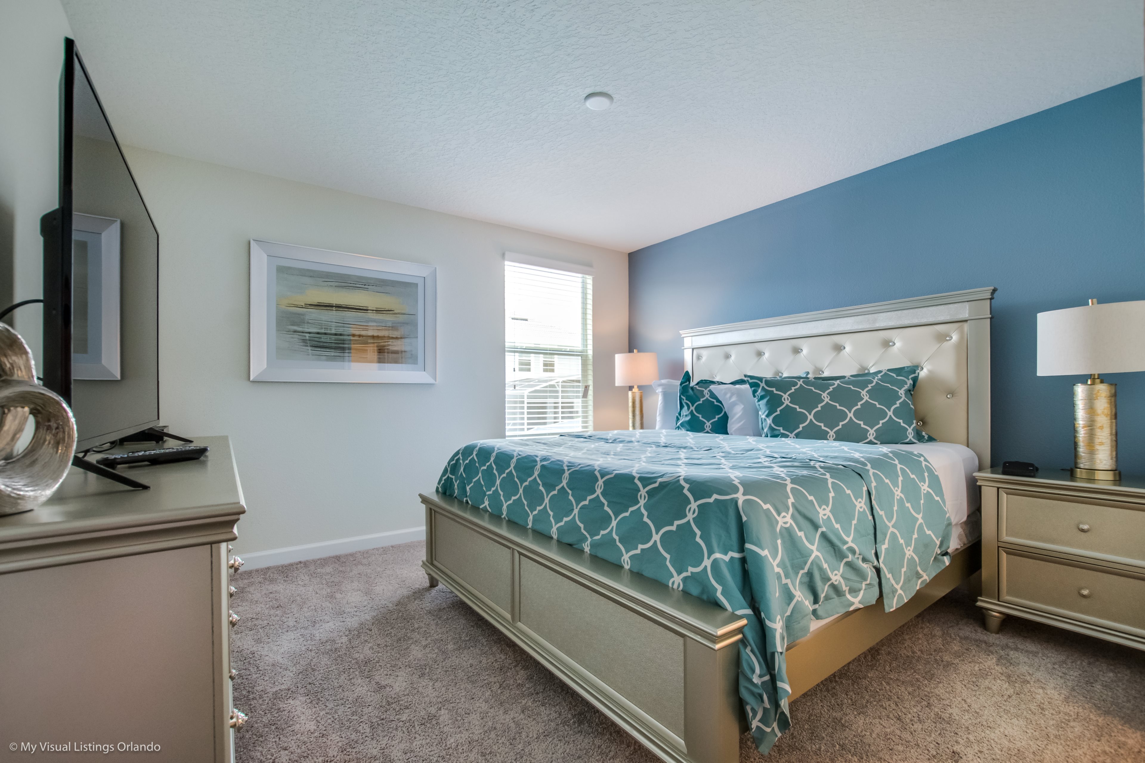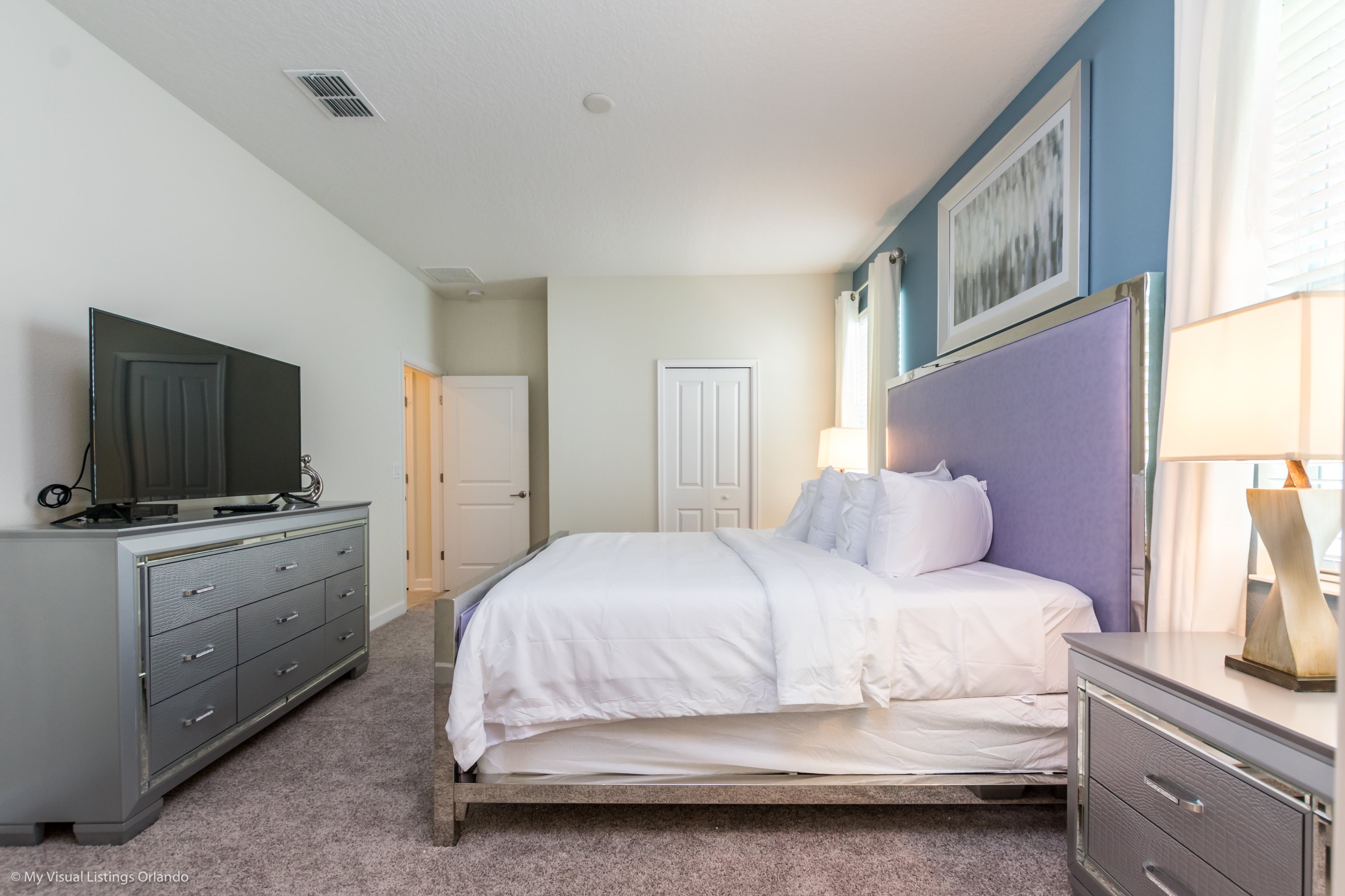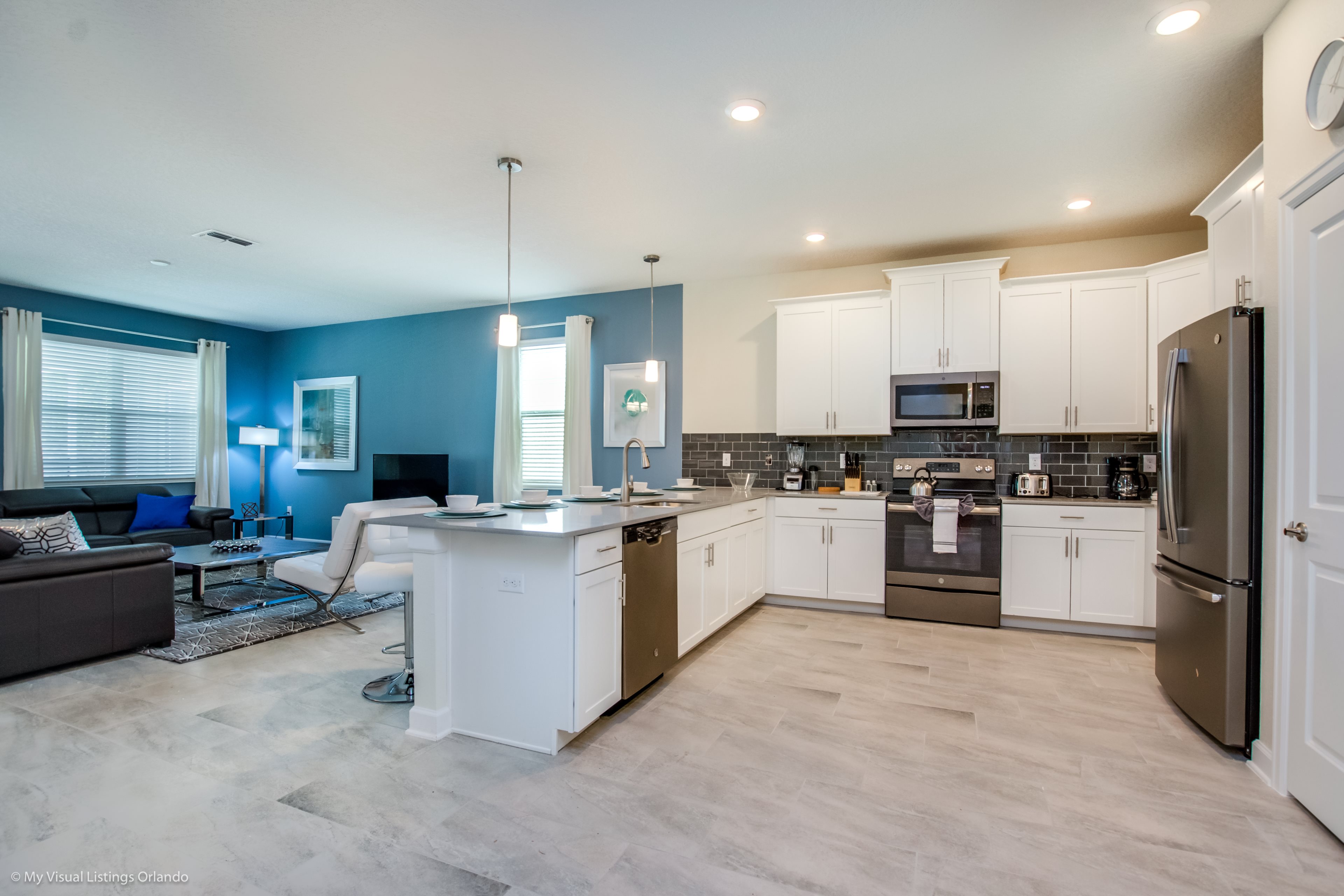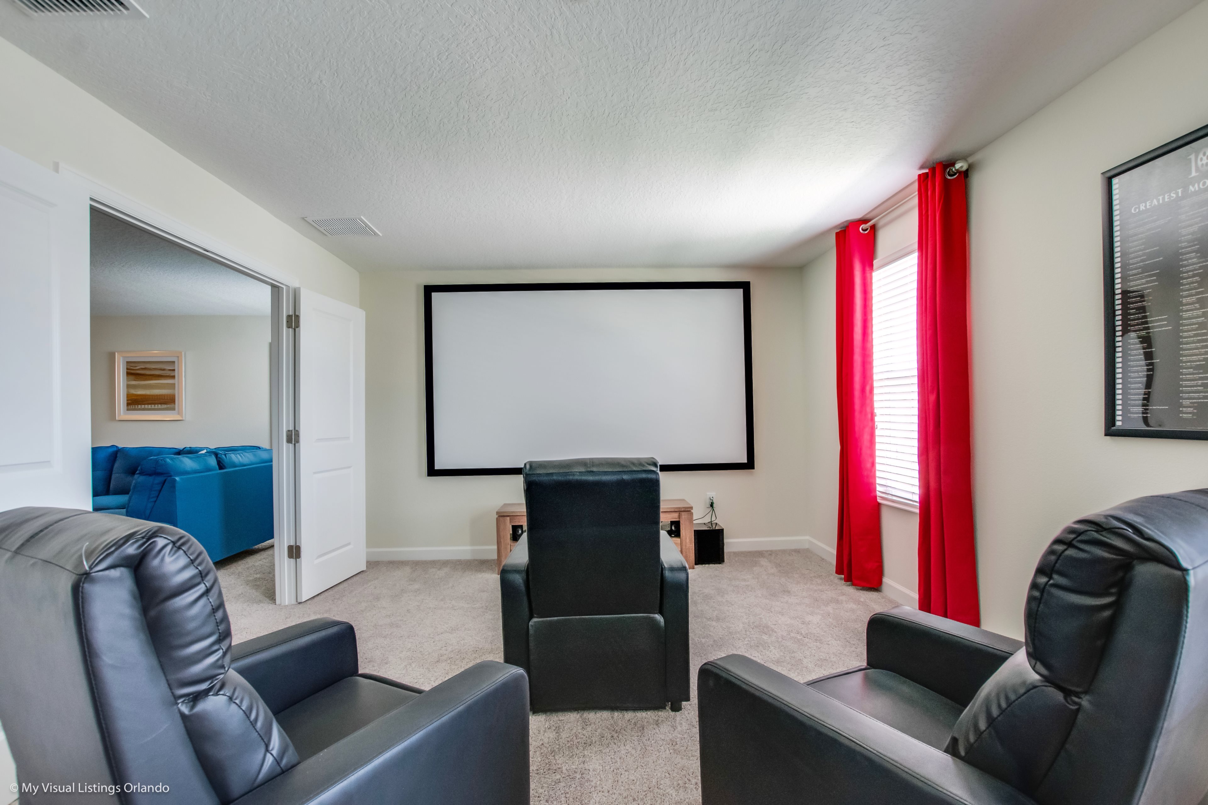 You will feel immediately relaxed as you enter our 8 bedroom, 5 bathroom executive home which sleeps up to 16 in style. We have paid great attention to every detail when we furnished this home and we hope you will enjoy it as much as we do with our own family. With 4 king bedrooms, 2 queen bedroom 2 twins rooms , there is plenty of room for everyone to spread out and relax after a day out or just to stay in and take it easy. Each room has a different feel so all guests should be equally happy with their room, and all have wall mounted flat screen LED Tv’s. The dining room and living area offers plenty of space to congregate and enjoy meals together, and the bright and airy kitchen has all the appliances that you would expect in your own home. (There is also a full-size washer and dryer). You can also enjoy a game of pool in the game room, or watch a movie in the huge loft area, or leave the kids to play on the PlayStation. Or why not take a dip in the large pool or relax in the spa, even in the evening as the pool area is south facing? This home will bring all the excitement of Orlando to you, and have the entire group talking about your trip for months to come.