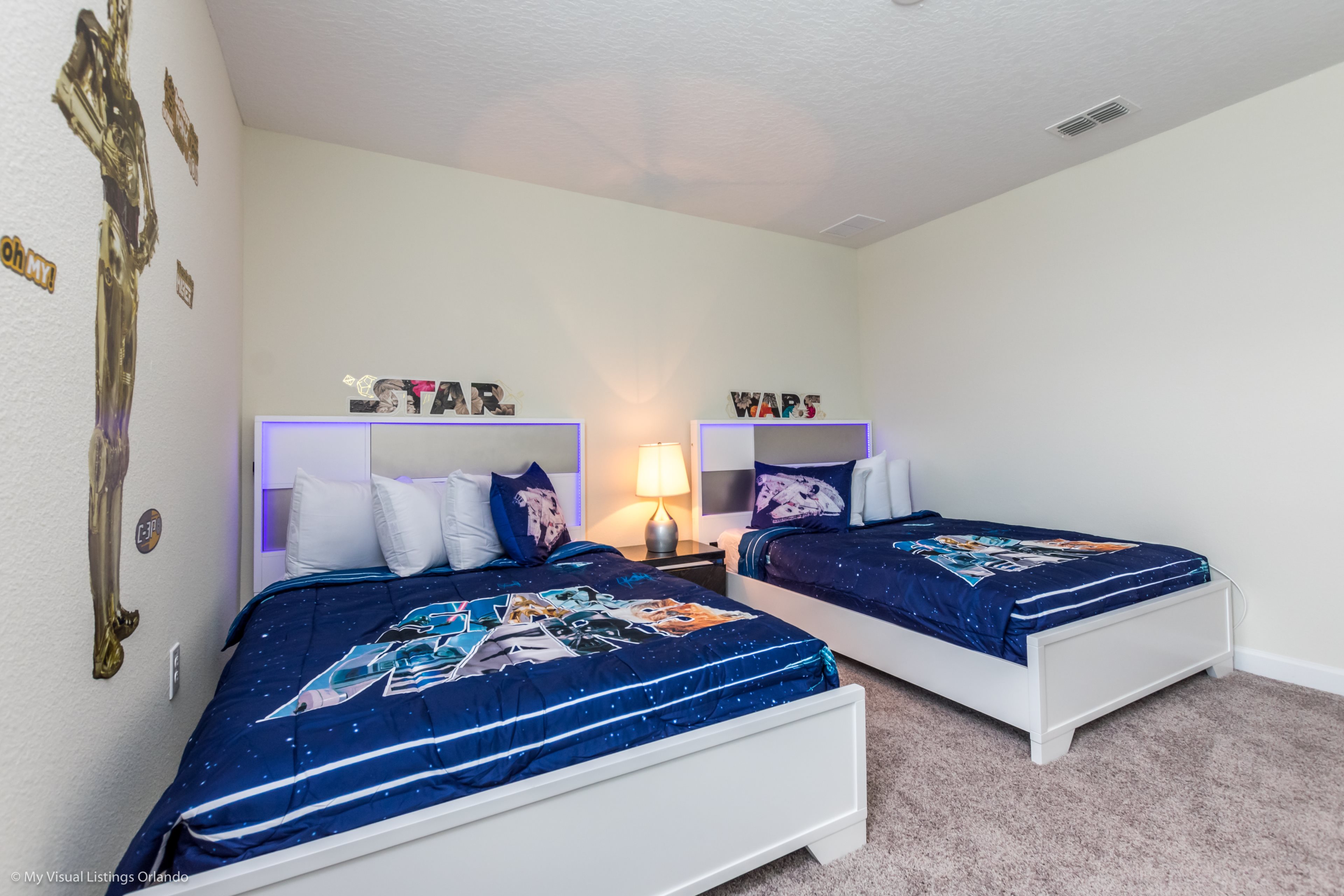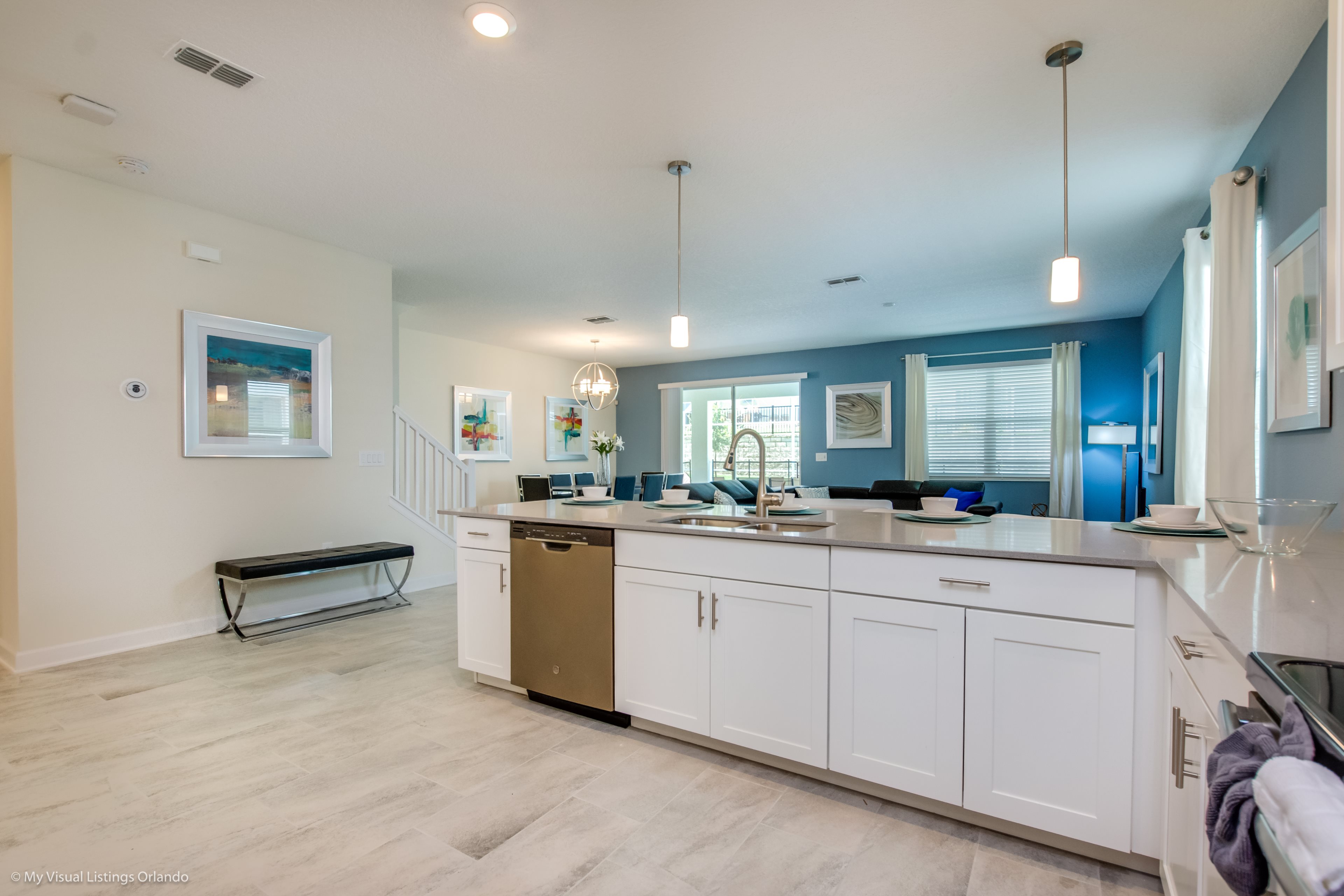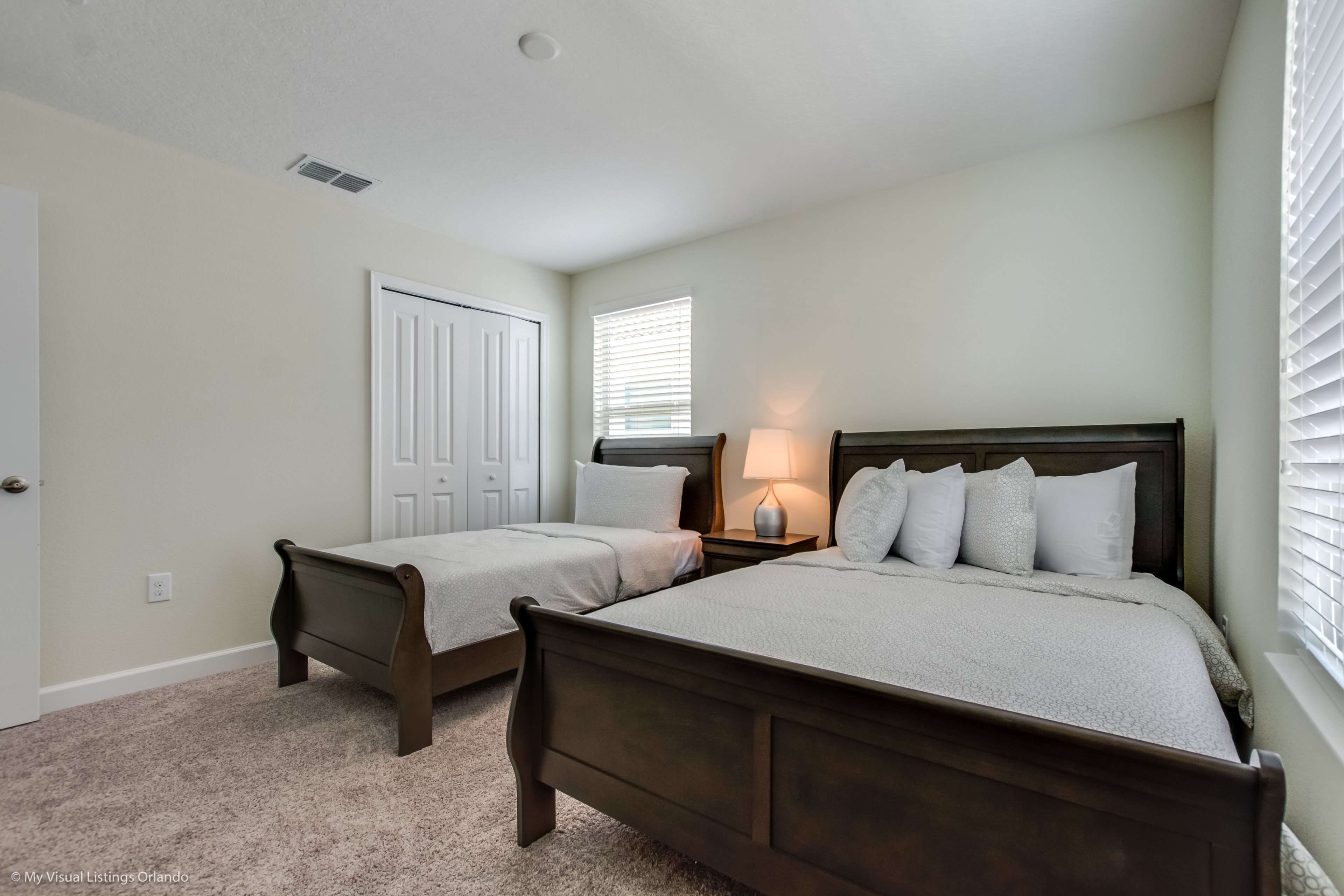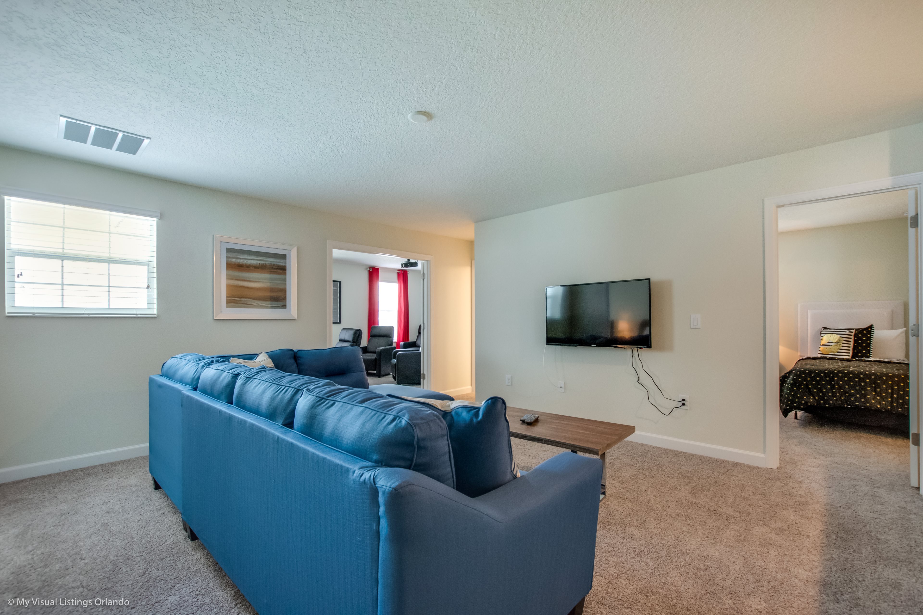 You will feel immediately relaxed as you enter our 8 bedroom, 5 bathroom executive home which sleeps up to 16 in style. We have paid great attention to every detail when we furnished this home and we hope you will enjoy it as much as we do with our own family. With 4 king bedrooms, 2 queen bedroom 2 twins rooms , there is plenty of room for everyone to spread out and relax after a day out or just to stay in and take it easy. Each room has a different feel so all guests should be equally happy with their room, and all have wall mounted flat screen LED Tv’s. The dining room and living area offers plenty of space to congregate and enjoy meals together, and the bright and airy kitchen has all the appliances that you would expect in your own home. (There is also a full-size washer and dryer). You can also enjoy a game of pool in the game room, or watch a movie in the huge loft area, or leave the kids to play on the PlayStation. Or why not take a dip in the large pool or relax in the spa, even in the evening as the pool area is south facing? This home will bring all the excitement of Orlando to you, and have the entire group talking about your trip for months to come.