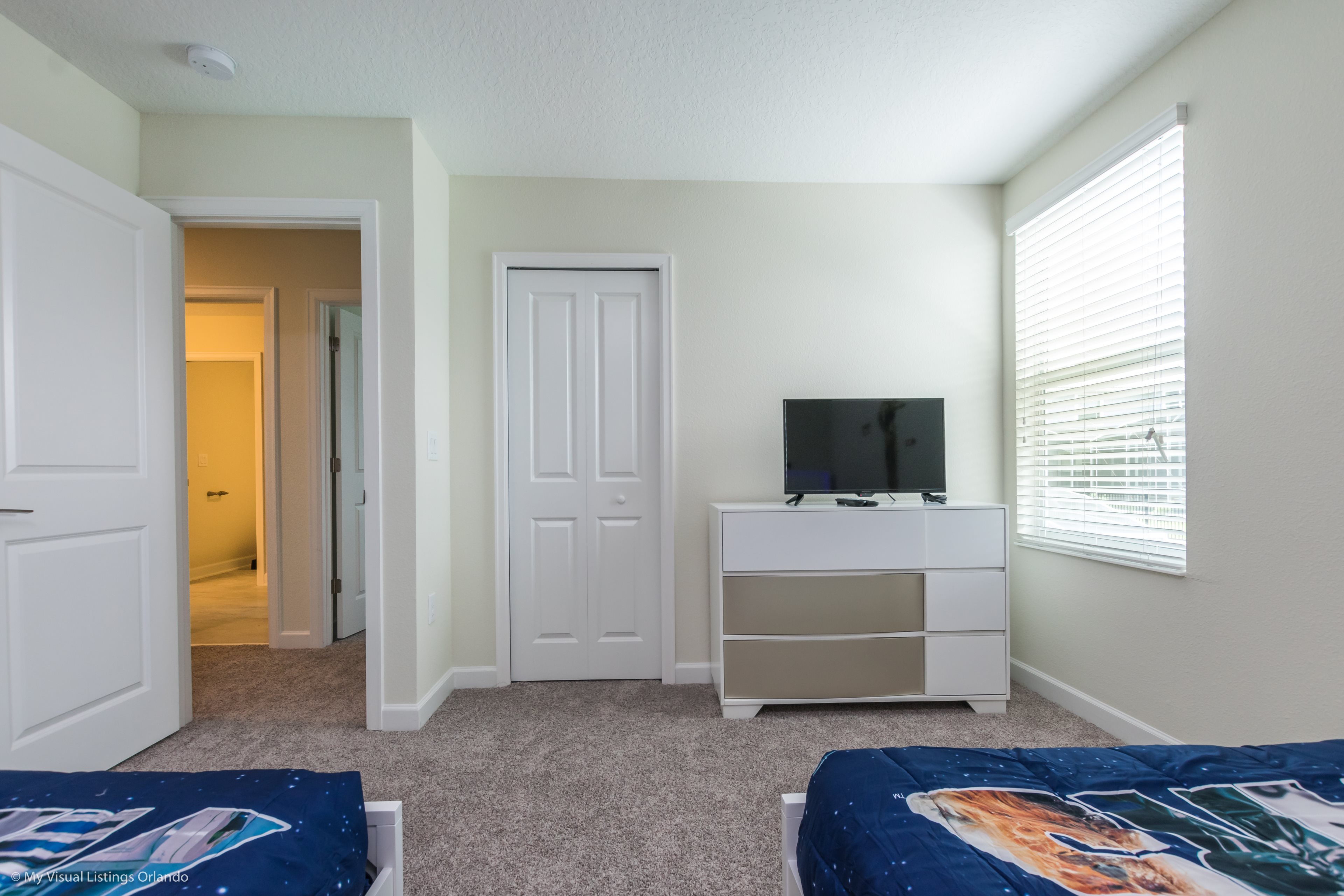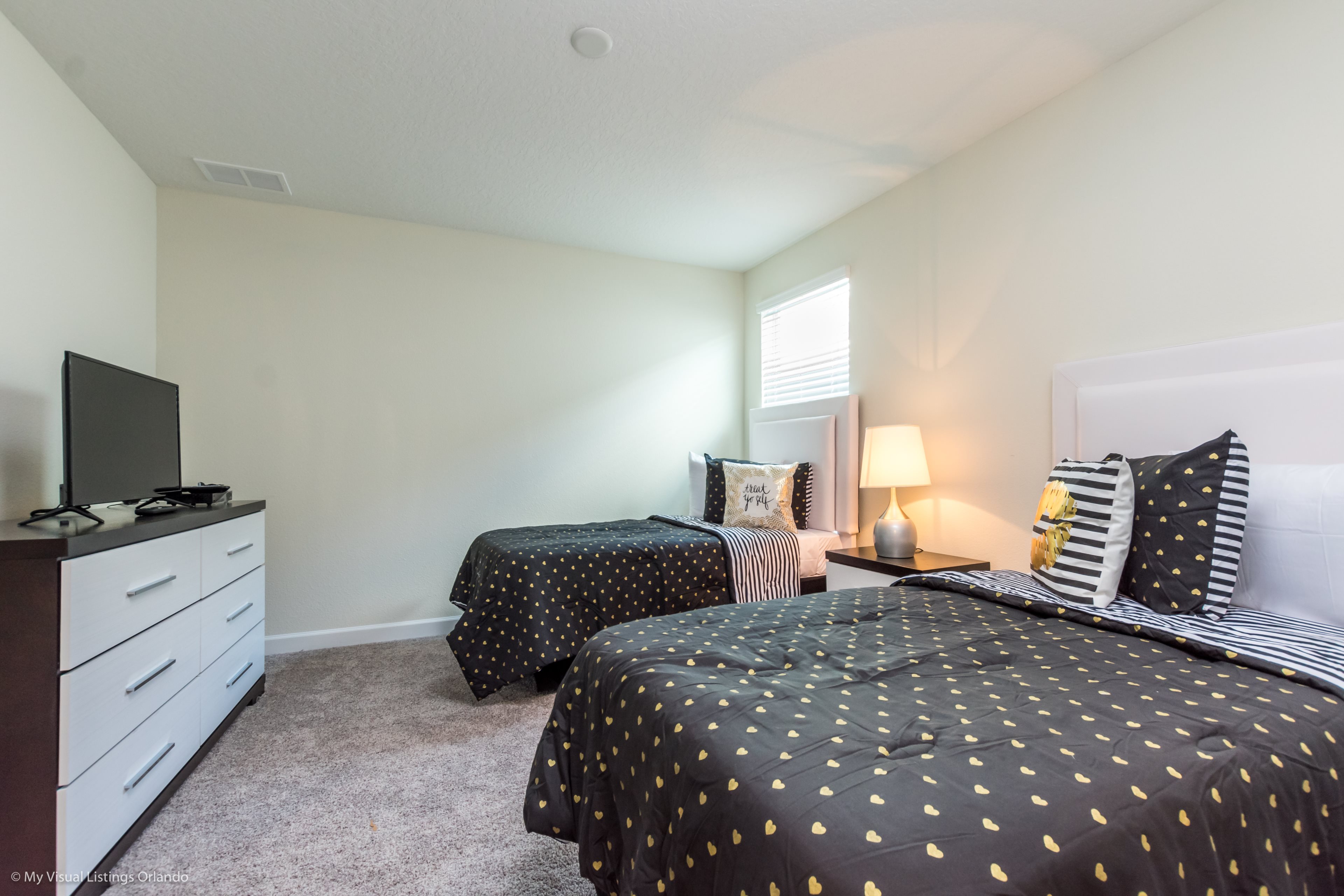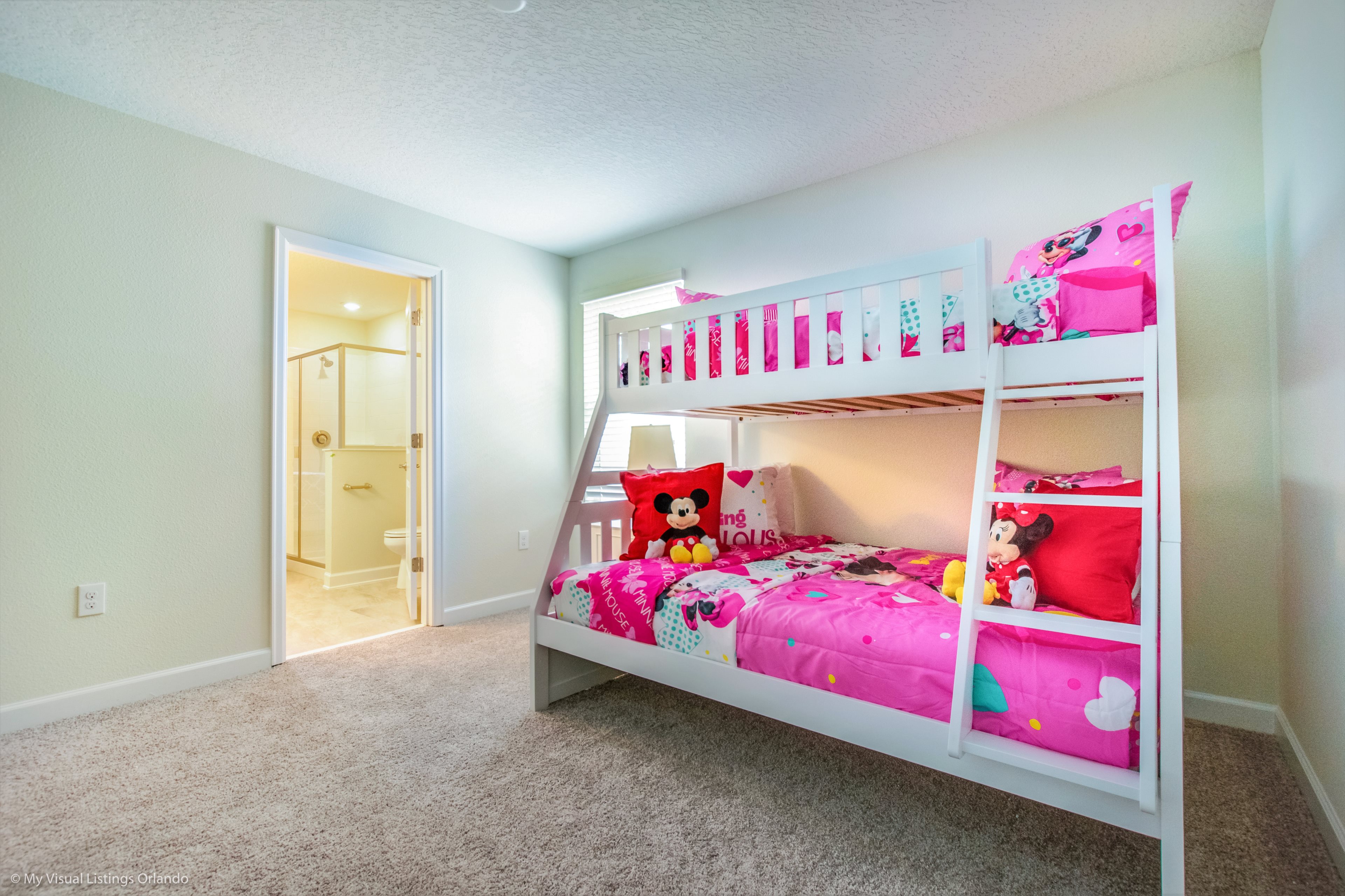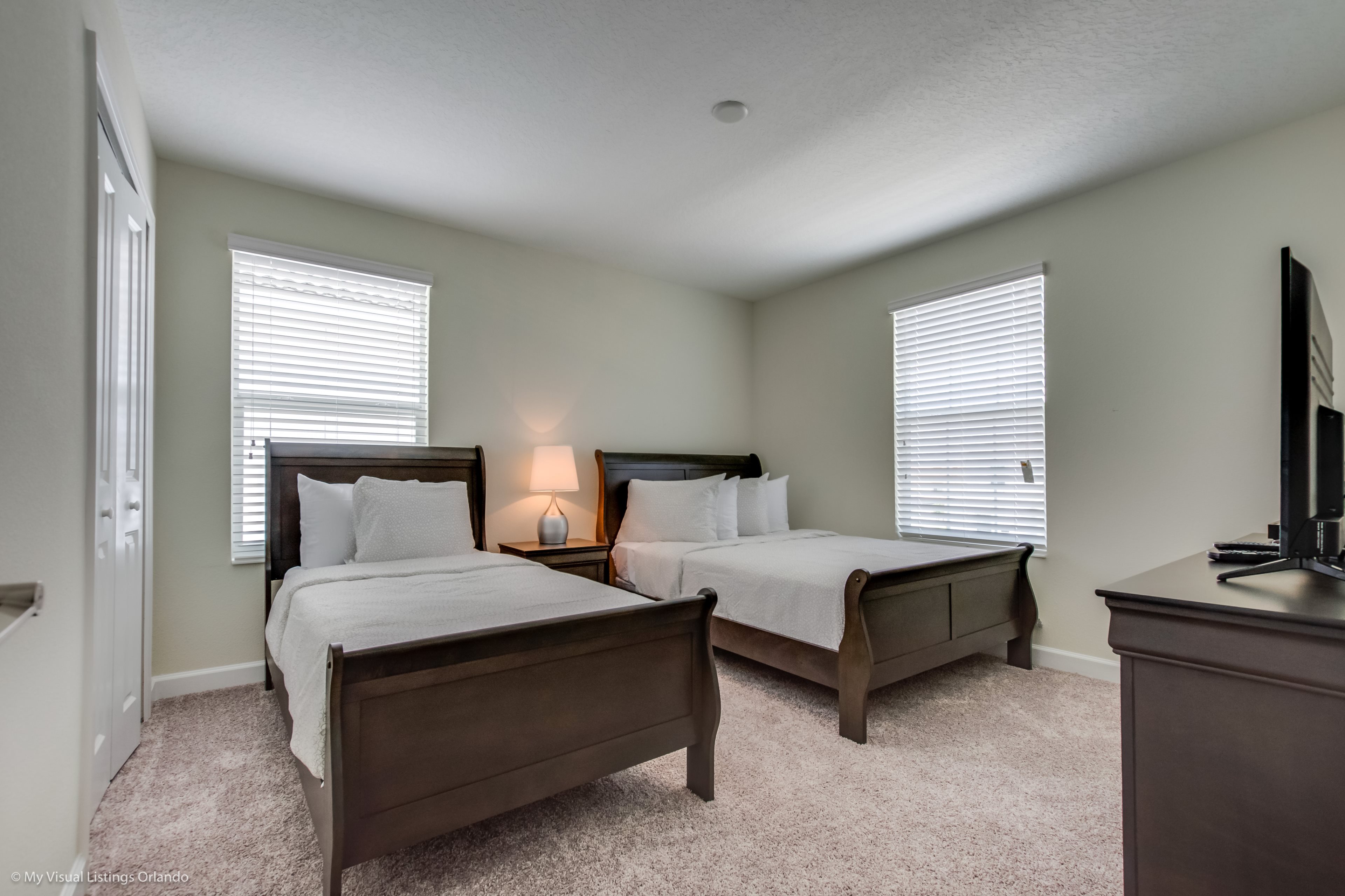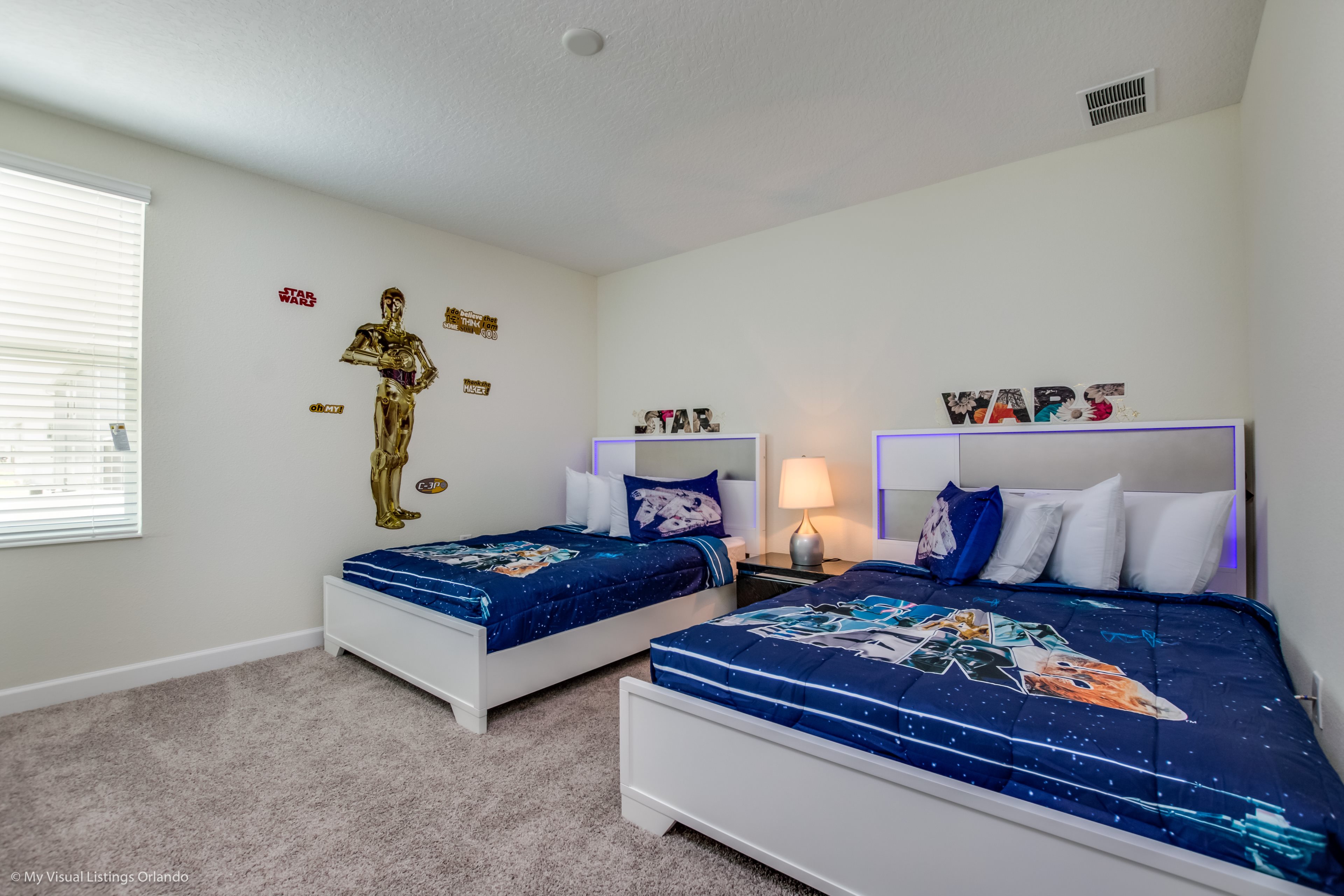 You will feel immediately relaxed as you enter our 8 bedroom, 5 bathroom executive home which sleeps up to 16 in style. We have paid great attention to every detail when we furnished this home and we hope you will enjoy it as much as we do with our own family. With 4 king bedrooms, 2 queen bedroom 2 twins rooms , there is plenty of room for everyone to spread out and relax after a day out or just to stay in and take it easy. Each room has a different feel so all guests should be equally happy with their room, and all have wall mounted flat screen LED Tv’s. The dining room and living area offers plenty of space to congregate and enjoy meals together, and the bright and airy kitchen has all the appliances that you would expect in your own home. (There is also a full-size washer and dryer). You can also enjoy a game of pool in the game room, or watch a movie in the huge loft area, or leave the kids to play on the PlayStation. Or why not take a dip in the large pool or relax in the spa, even in the evening as the pool area is south facing? This home will bring all the excitement of Orlando to you, and have the entire group talking about your trip for months to come.
