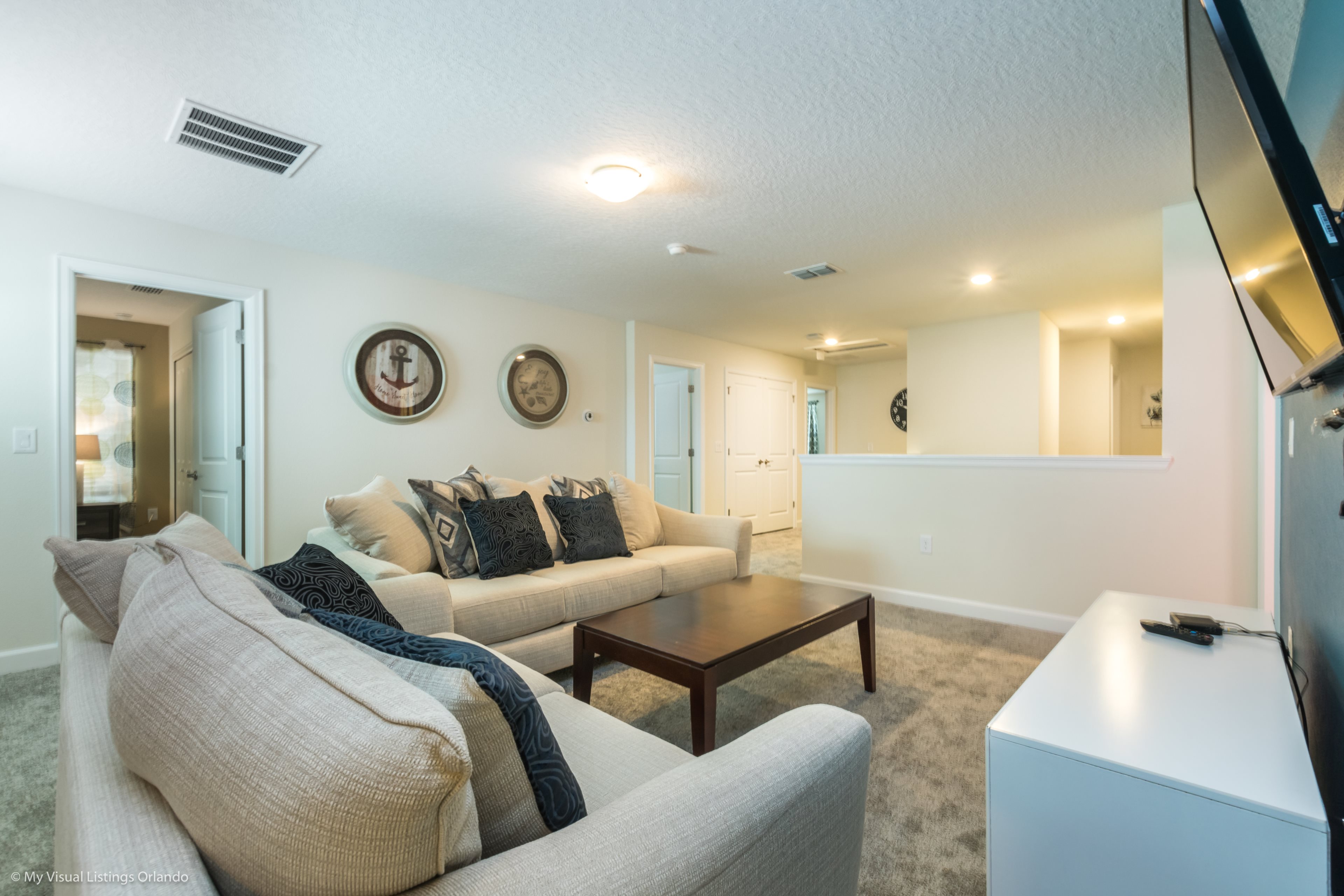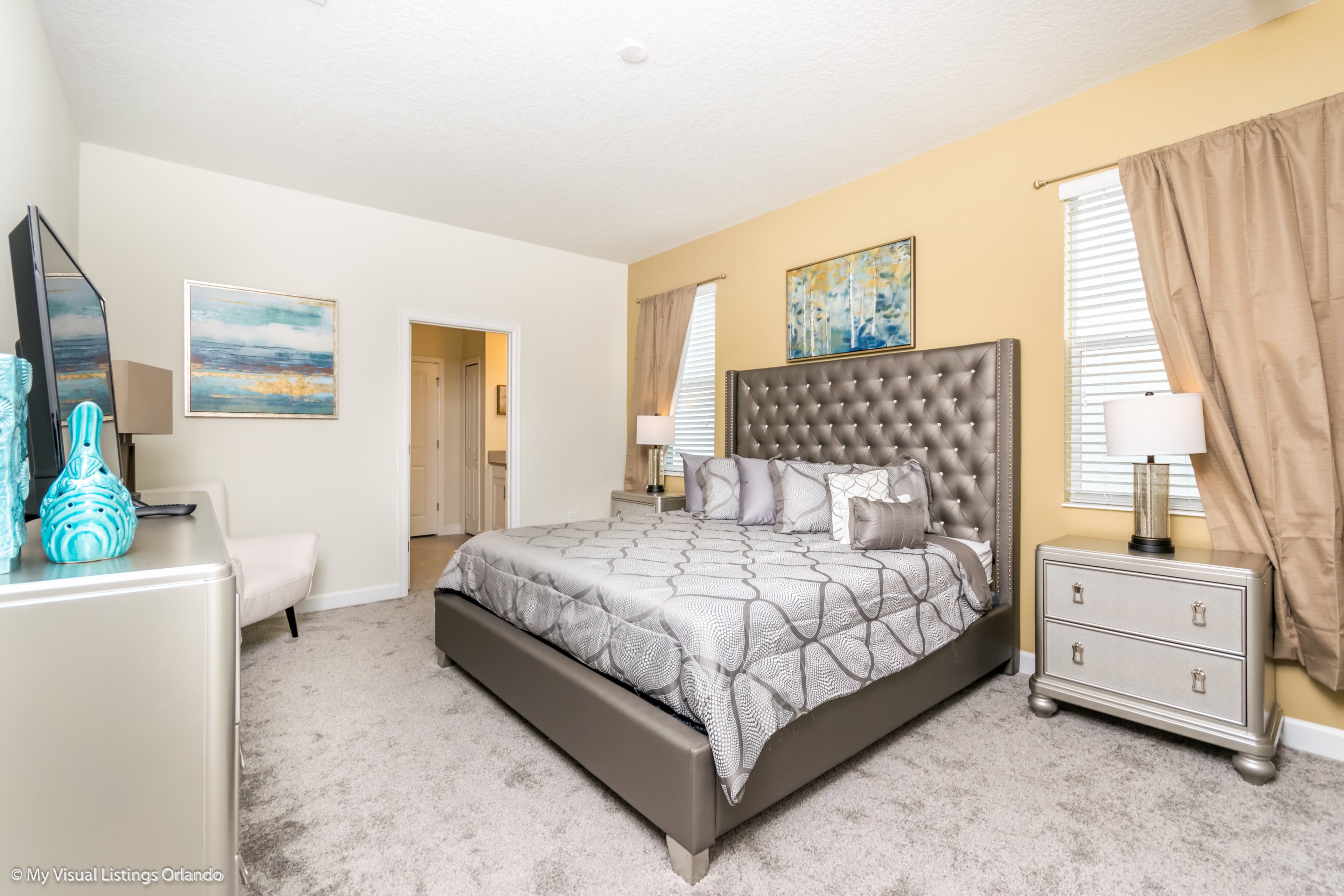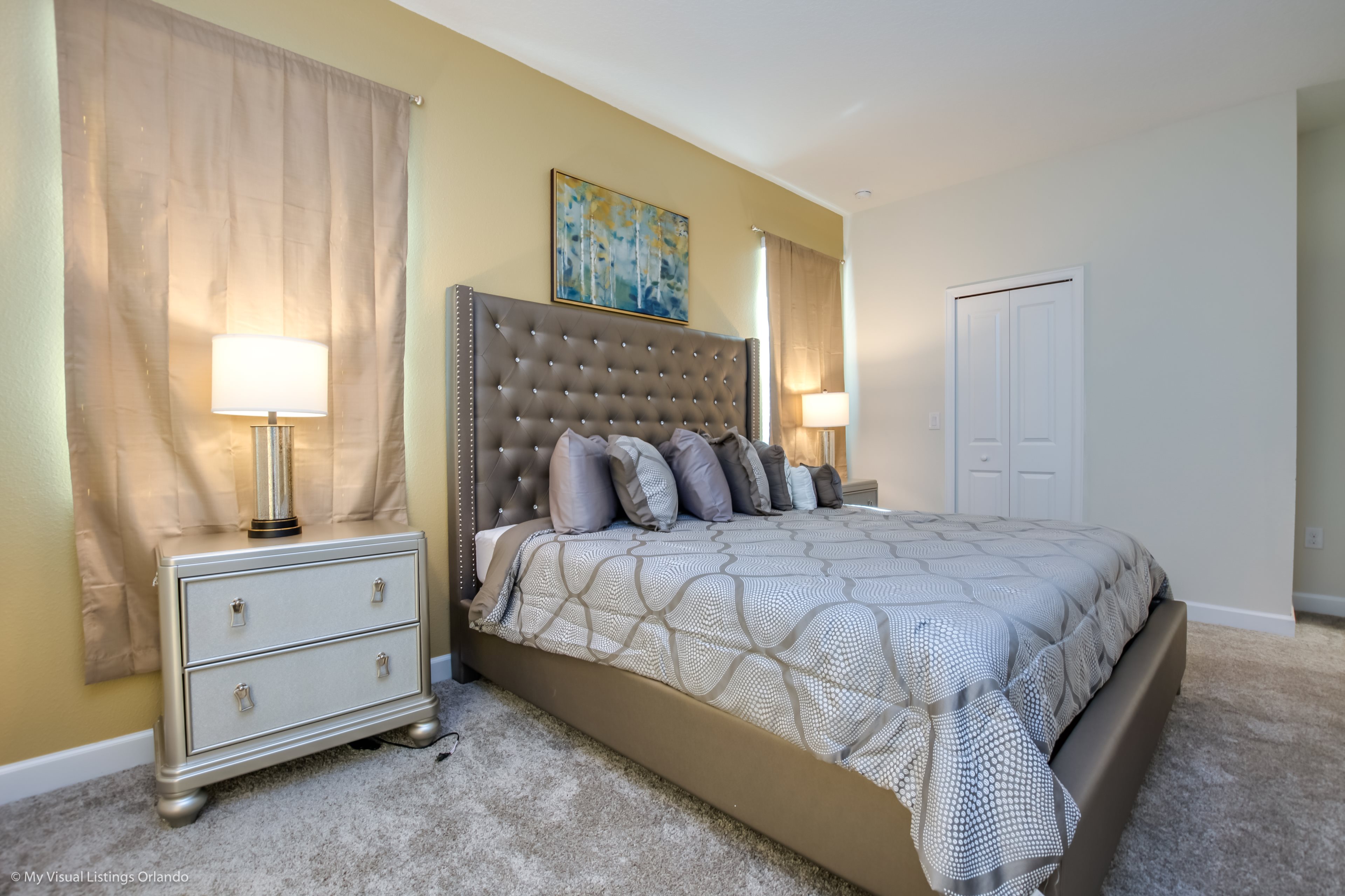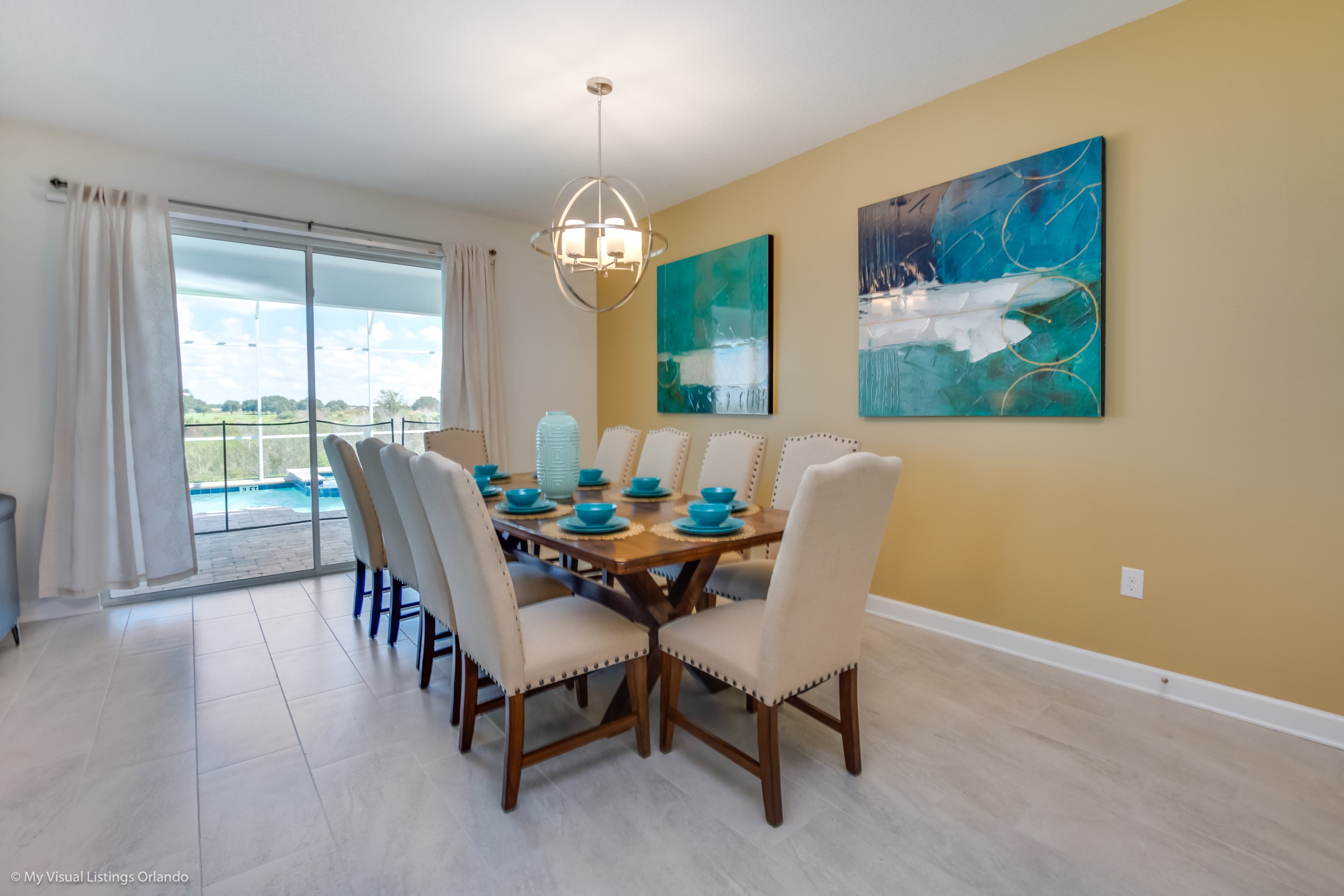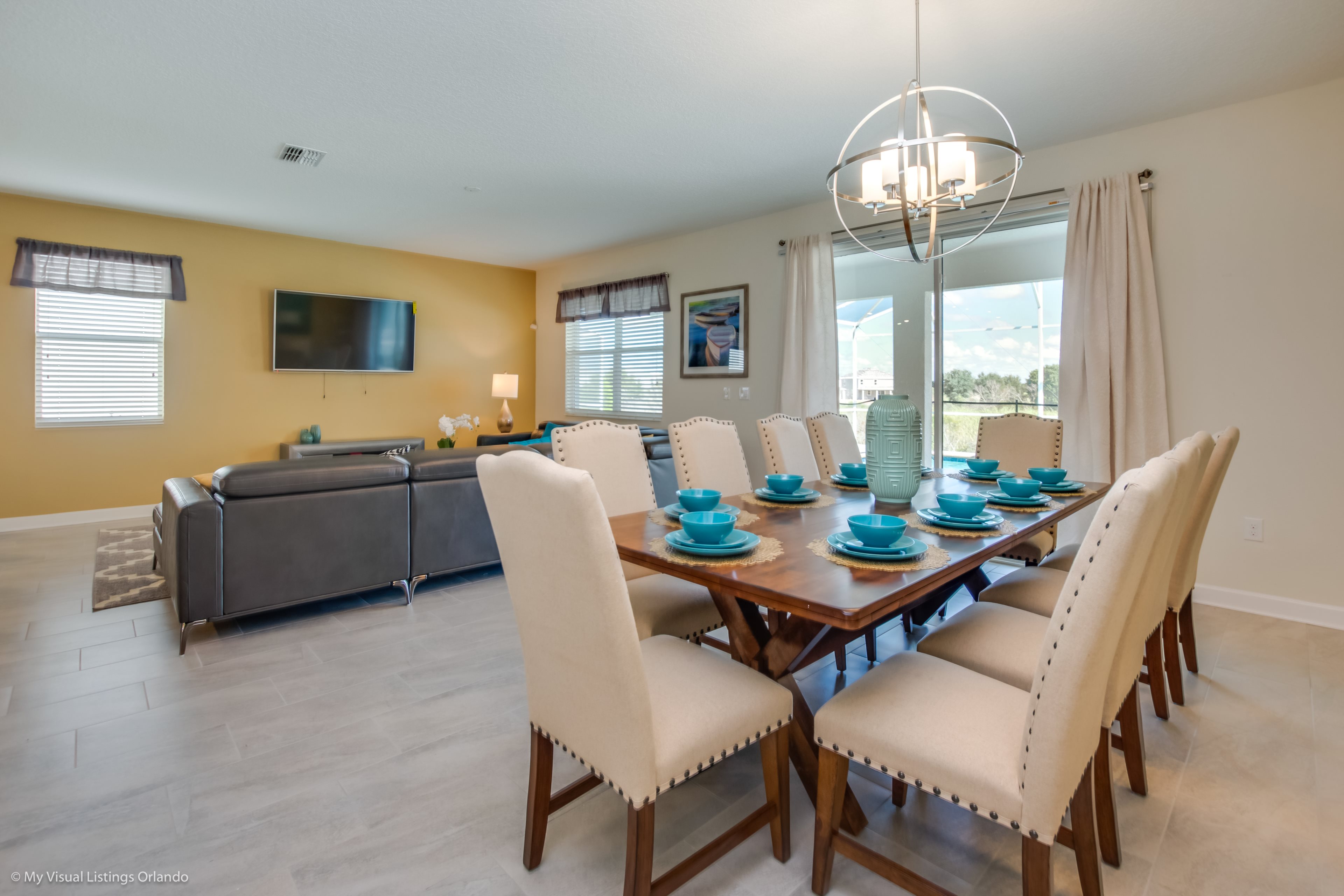 You will feel immediately relaxed as you enter our 8 bedroom, 5 bathroom executive home which sleeps up to 16 in style. We have paid great attention to every detail when we furnished this home and we hope you will enjoy it as much as we do with our own family. With 4 king bedrooms, 2 queen bedroom 2 twins rooms , there is plenty of room for everyone to spread out and relax after a day out or just to stay in and take it easy. Each room has a different feel so all guests should be equally happy with their room, and all have wall mounted flat screen LED Tv’s. The dining room and living area offers plenty of space to congregate and enjoy meals together, and the bright and airy kitchen has all the appliances that you would expect in your own home. (There is also a full-size washer and dryer). You can also enjoy a game of pool in the game room, or watch a movie in the huge loft area, or leave the kids to play on the PlayStation. Or why not take a dip in the large pool or relax in the spa, even in the evening as the pool area is south facing? This home will bring all the excitement of Orlando to you, and have the entire group talking about your trip for months to come.