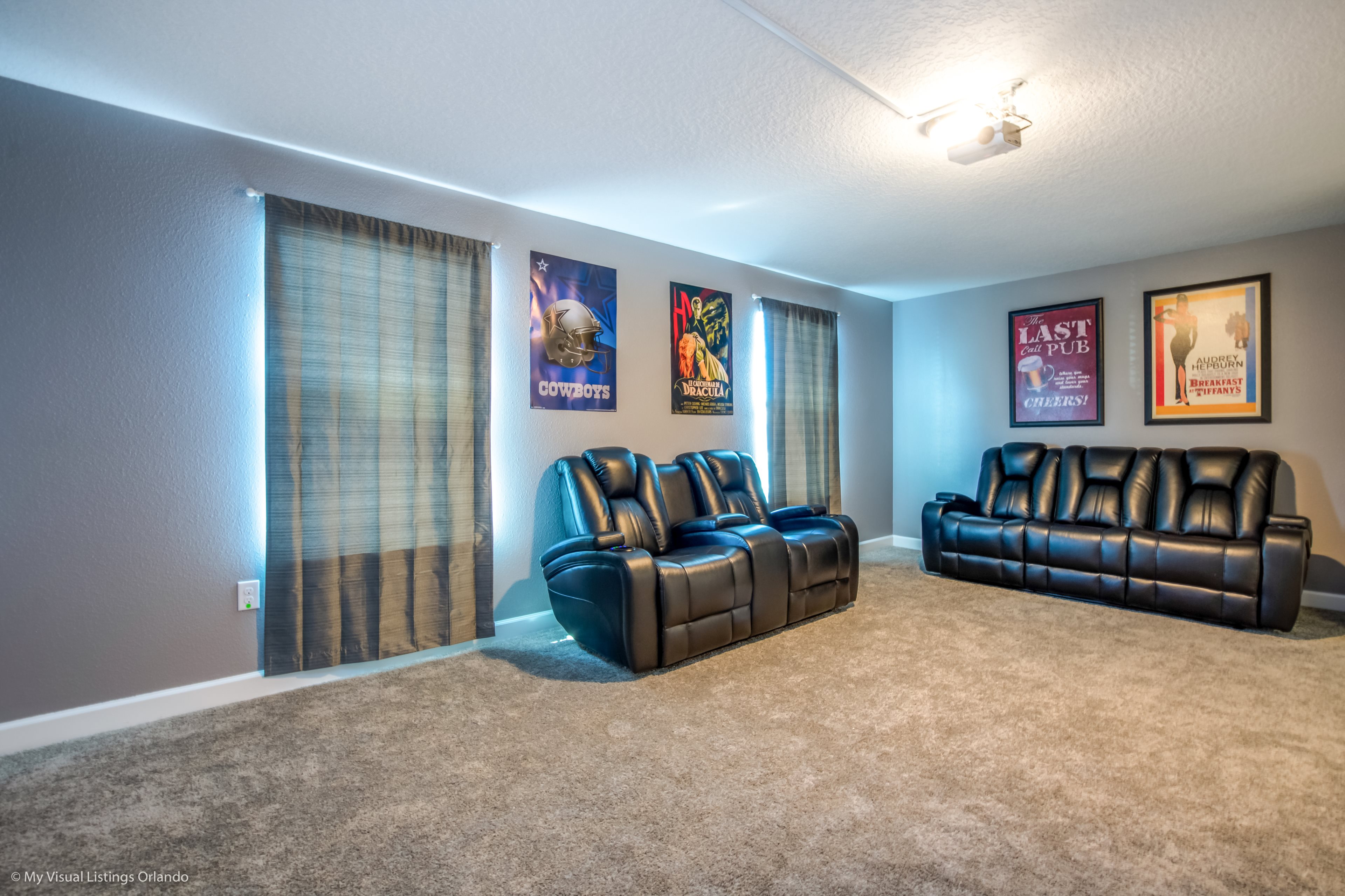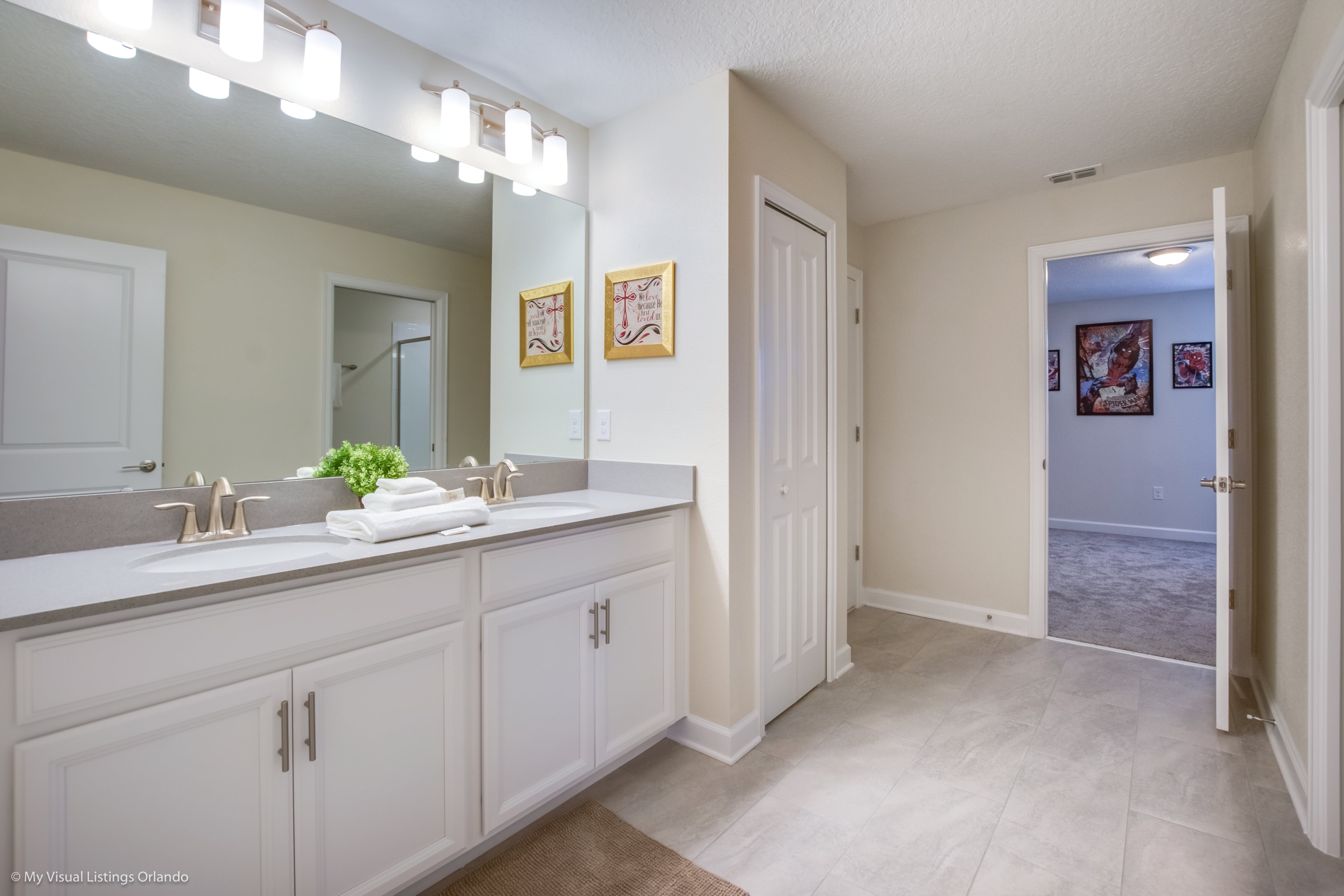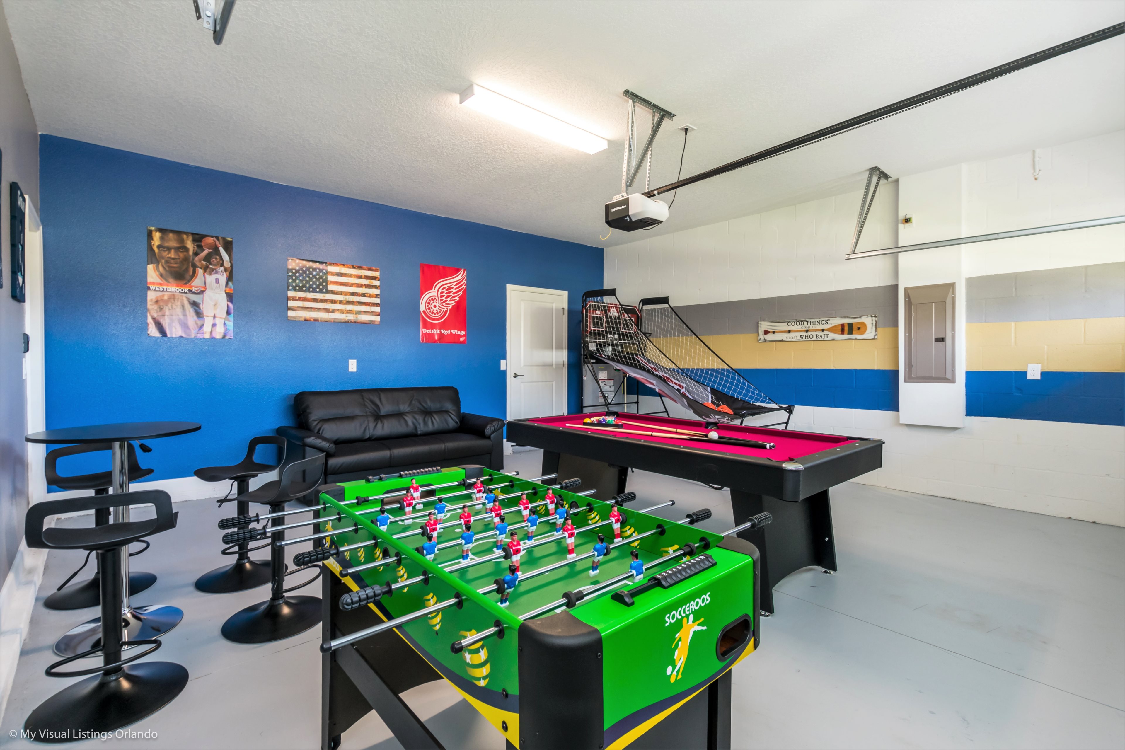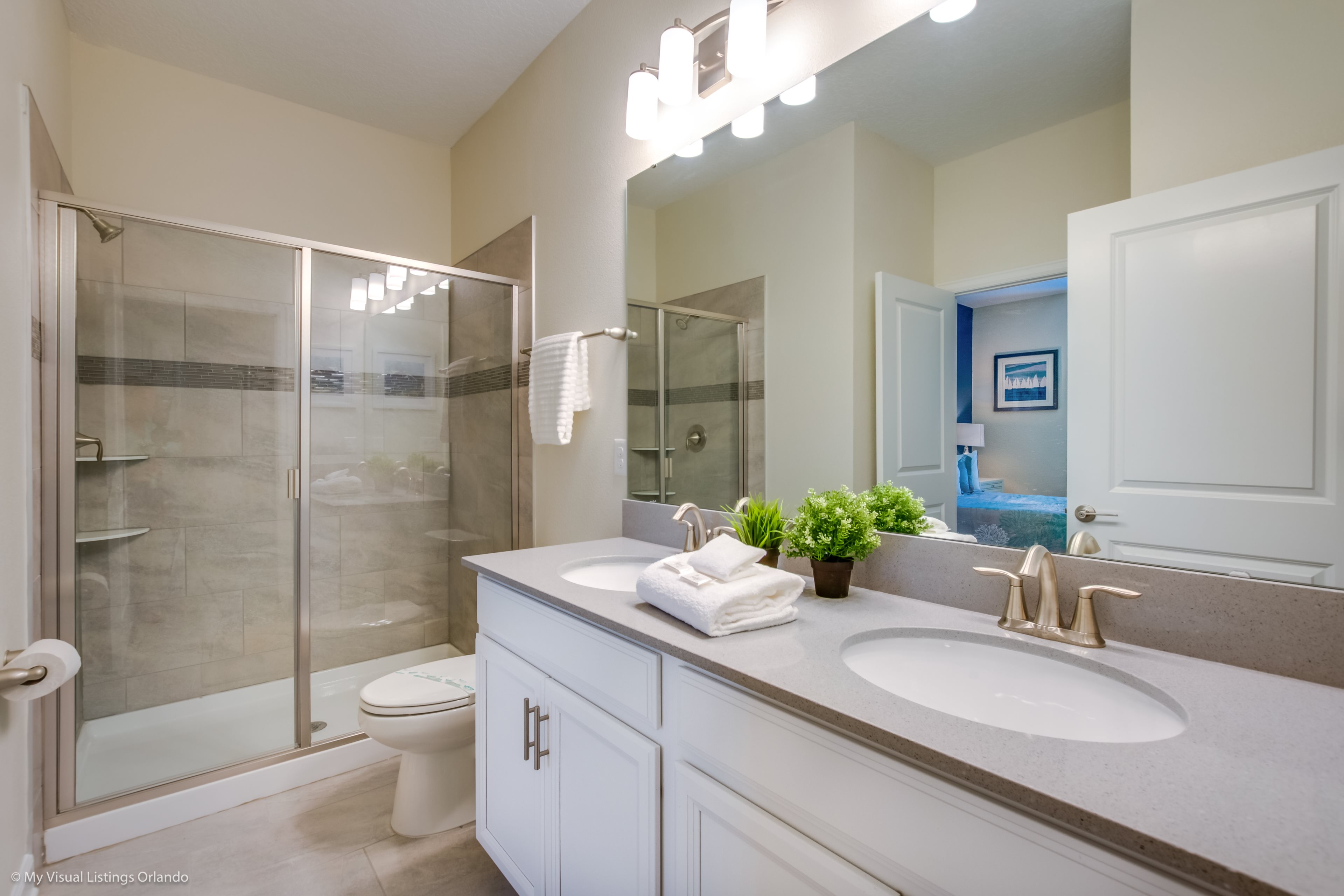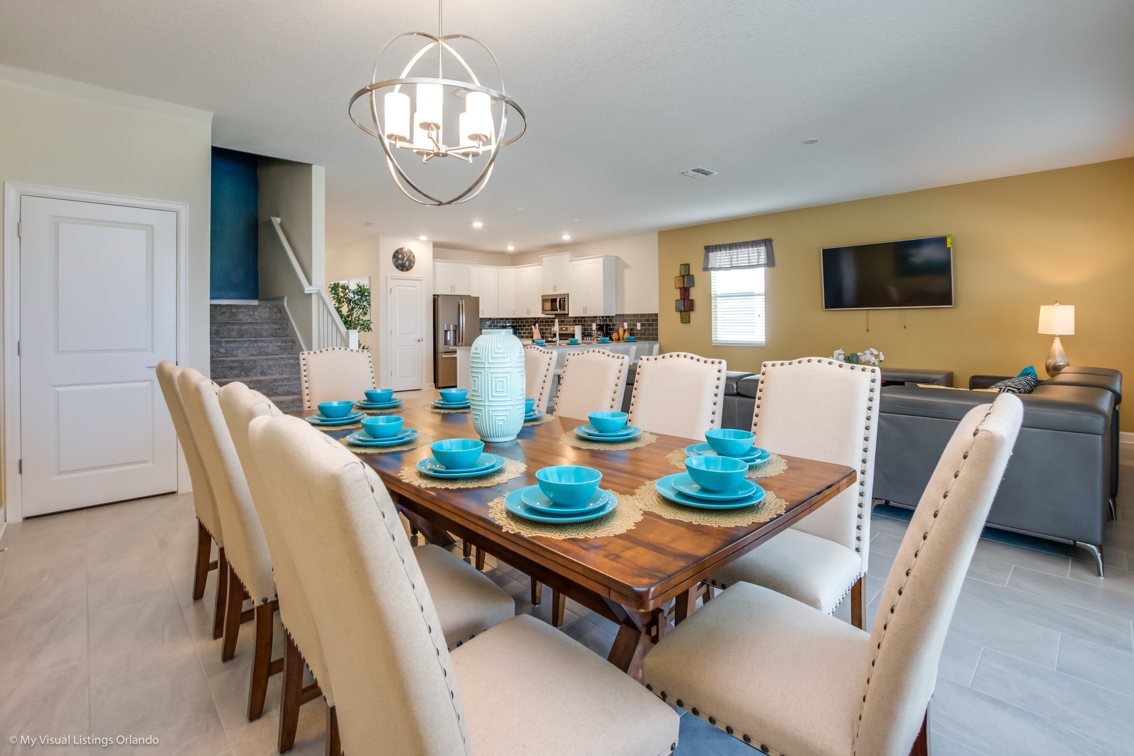You will feel immediately relaxed as you enter our 8 bedroom, 5 bathroom executive home which sleeps up to 16 in style. We have paid great attention to every detail when we furnished this home and we hope you will enjoy it as much as we do with our own family. With 4 king bedrooms, 2 queen bedroom 2 twins rooms , there is plenty of room for everyone to spread out and relax after a day out or just to stay in and take it easy. Each room has a different feel so all guests should be equally happy with their room, and all have wall mounted flat screen LED Tv’s. The dining room and living area offers plenty of space to congregate and enjoy meals together, and the bright and airy kitchen has all the appliances that you would expect in your own home. (There is also a full-size washer and dryer). You can also enjoy a game of pool in the game room, or watch a movie in the huge loft area, or leave the kids to play on the PlayStation. Or why not take a dip in the large pool or relax in the spa, even in the evening as the pool area is south facing? This home will bring all the excitement of Orlando to you, and have the entire group talking about your trip for months to come.