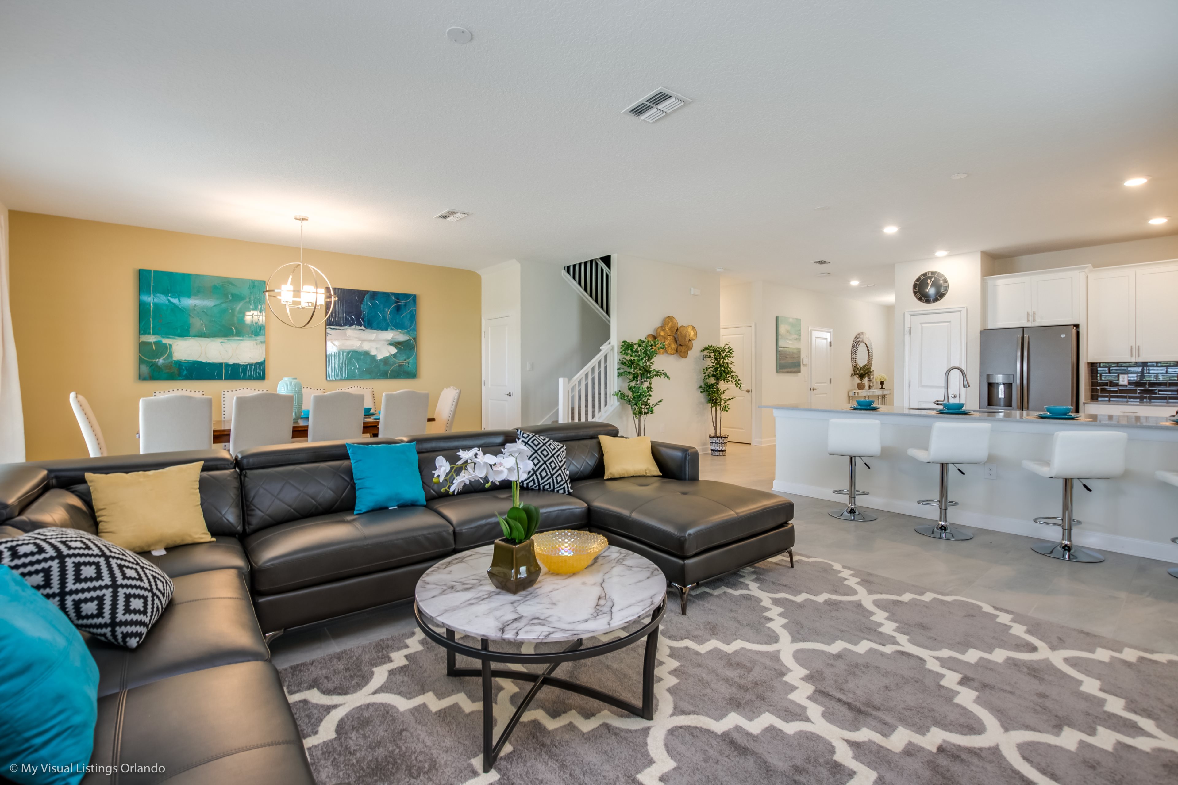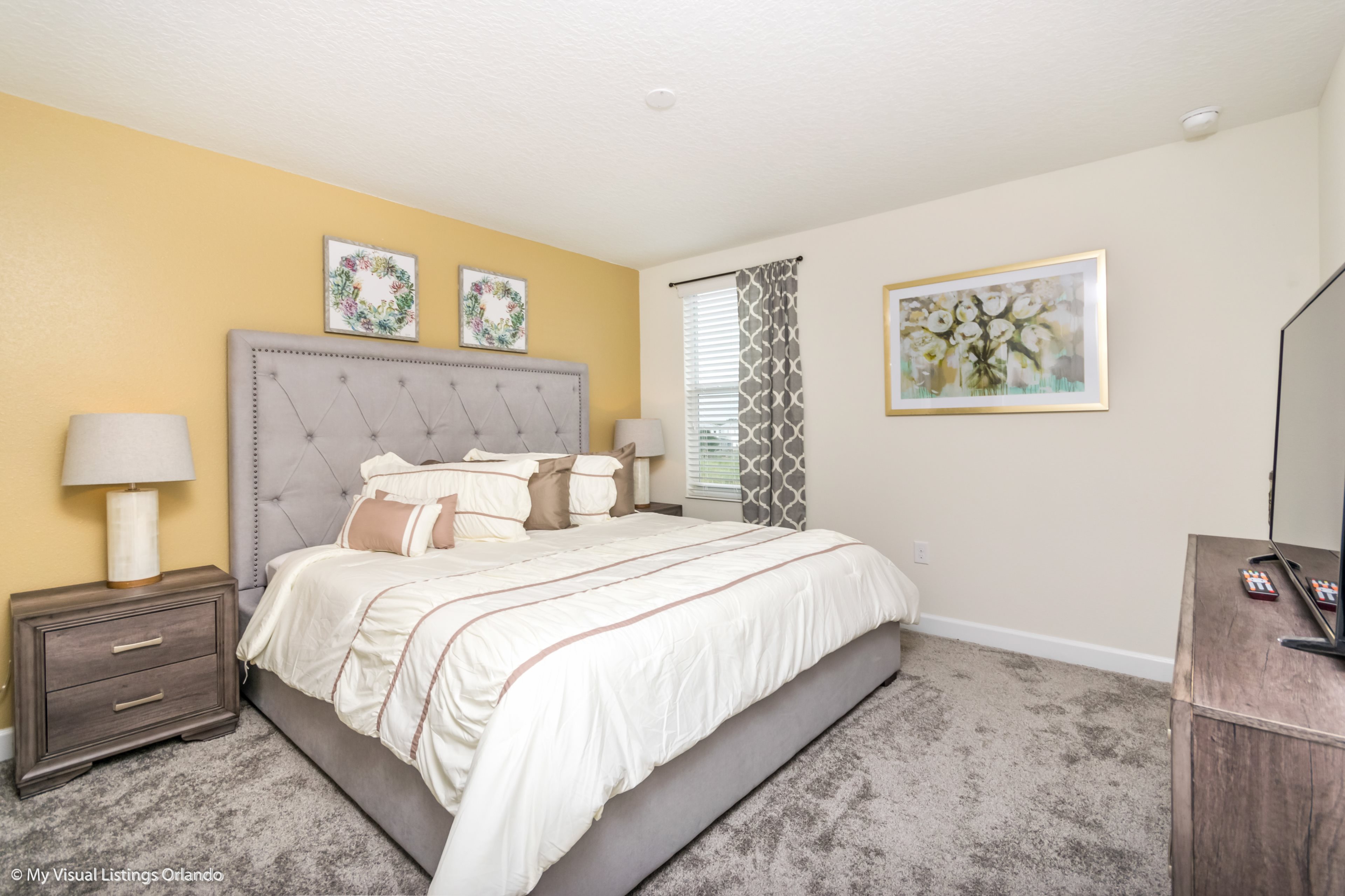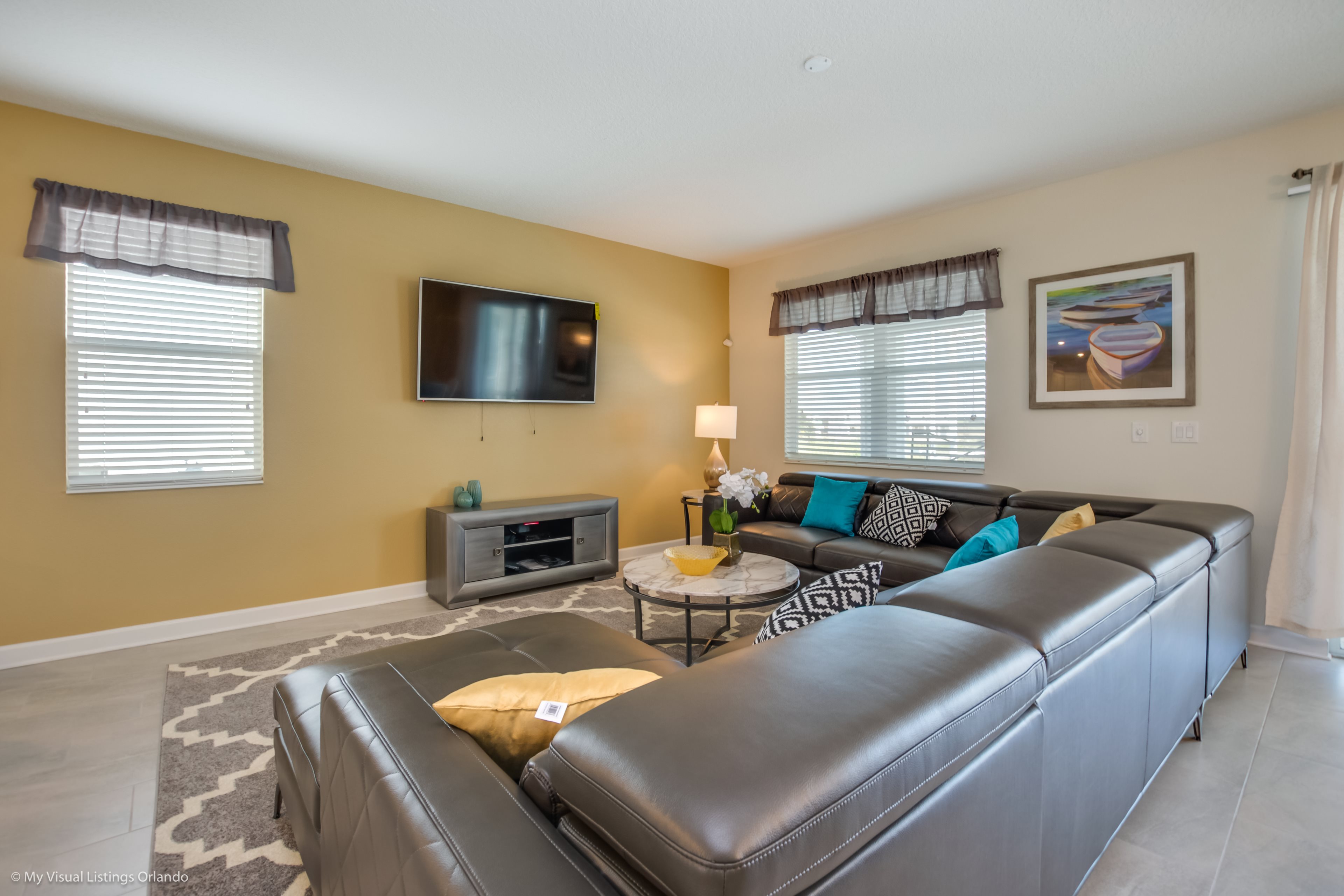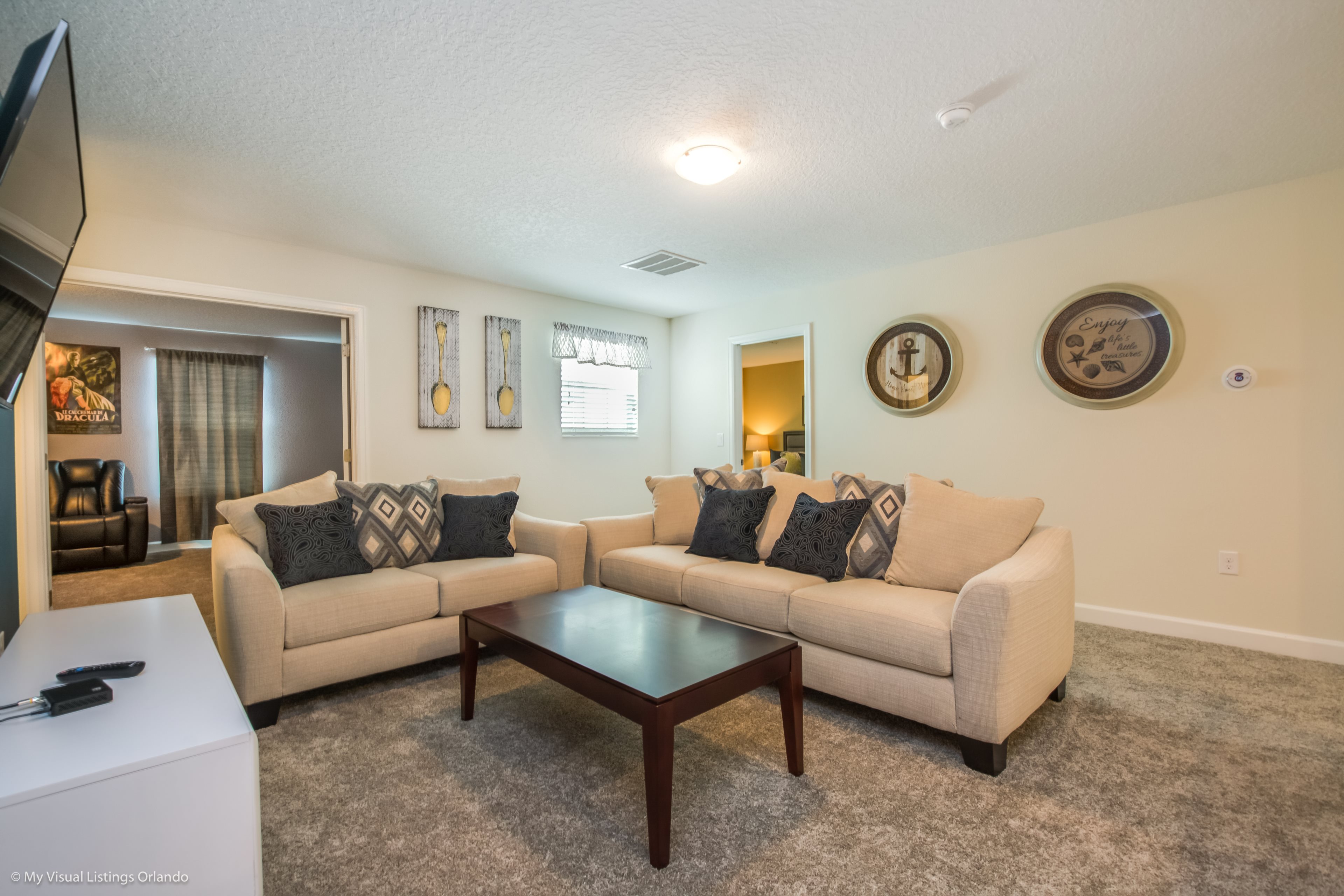 You will feel immediately relaxed as you enter our 8 bedroom, 5 bathroom executive home which sleeps up to 16 in style. We have paid great attention to every detail when we furnished this home and we hope you will enjoy it as much as we do with our own family. With 4 king bedrooms, 2 queen bedroom 2 twins rooms , there is plenty of room for everyone to spread out and relax after a day out or just to stay in and take it easy. Each room has a different feel so all guests should be equally happy with their room, and all have wall mounted flat screen LED Tv’s. The dining room and living area offers plenty of space to congregate and enjoy meals together, and the bright and airy kitchen has all the appliances that you would expect in your own home. (There is also a full-size washer and dryer). You can also enjoy a game of pool in the game room, or watch a movie in the huge loft area, or leave the kids to play on the PlayStation. Or why not take a dip in the large pool or relax in the spa, even in the evening as the pool area is south facing? This home will bring all the excitement of Orlando to you, and have the entire group talking about your trip for months to come.