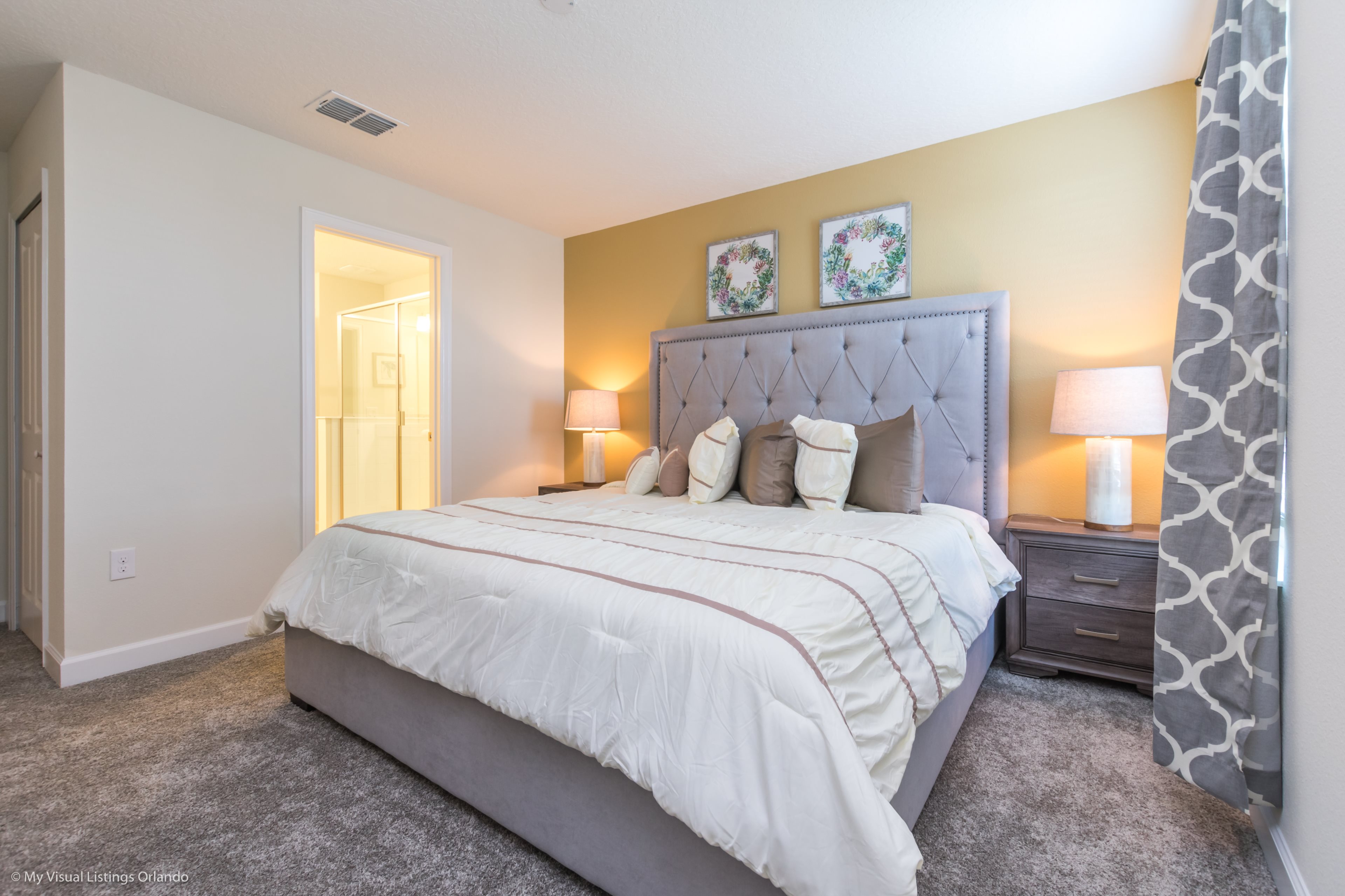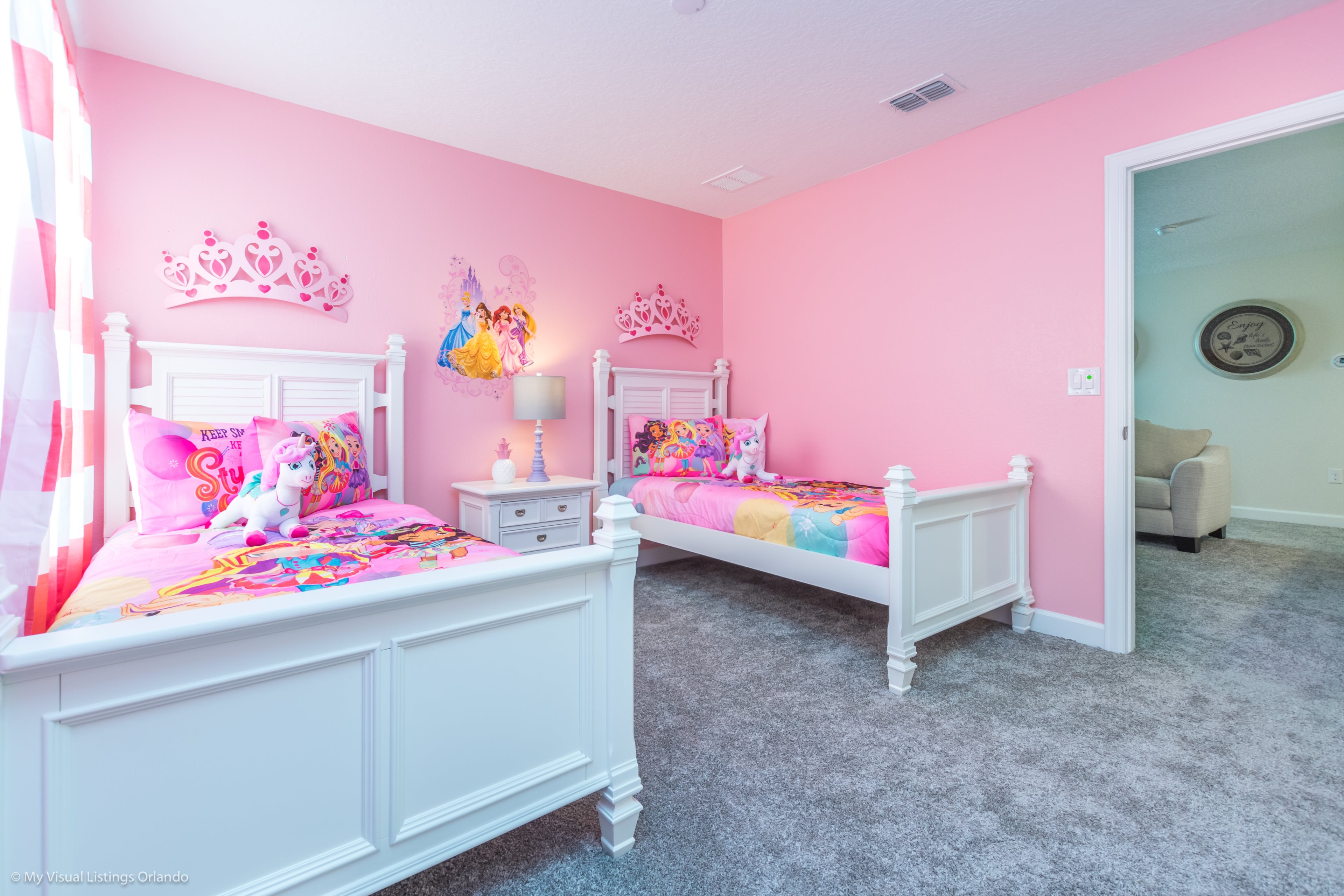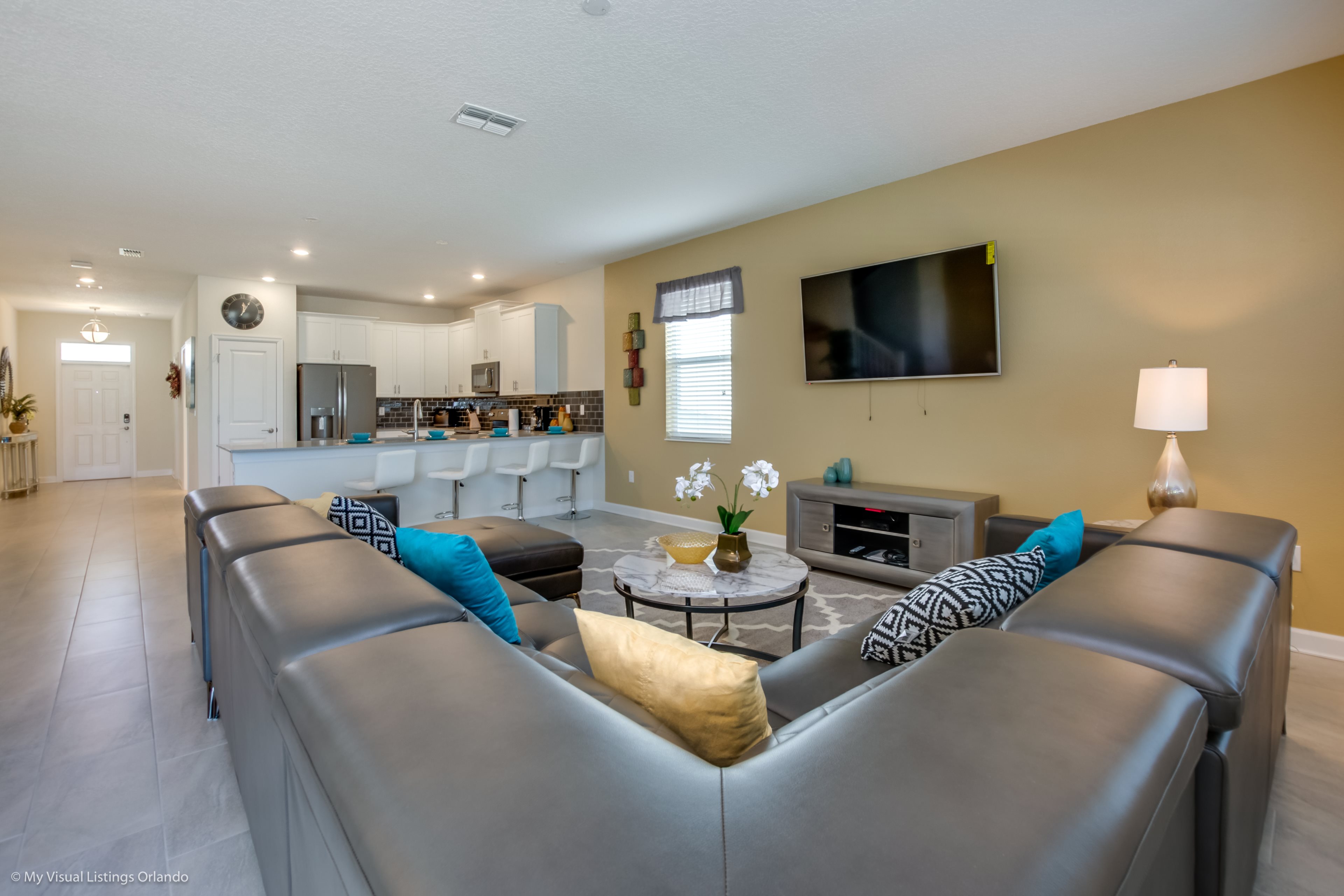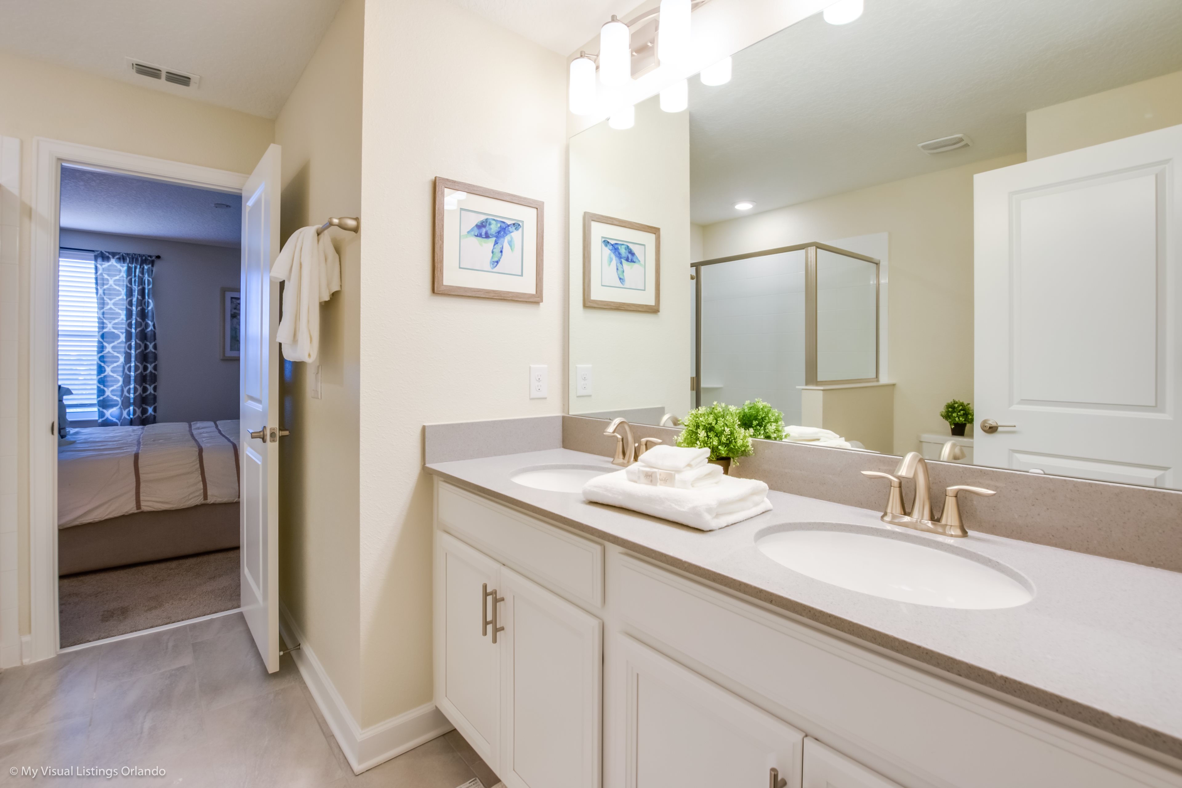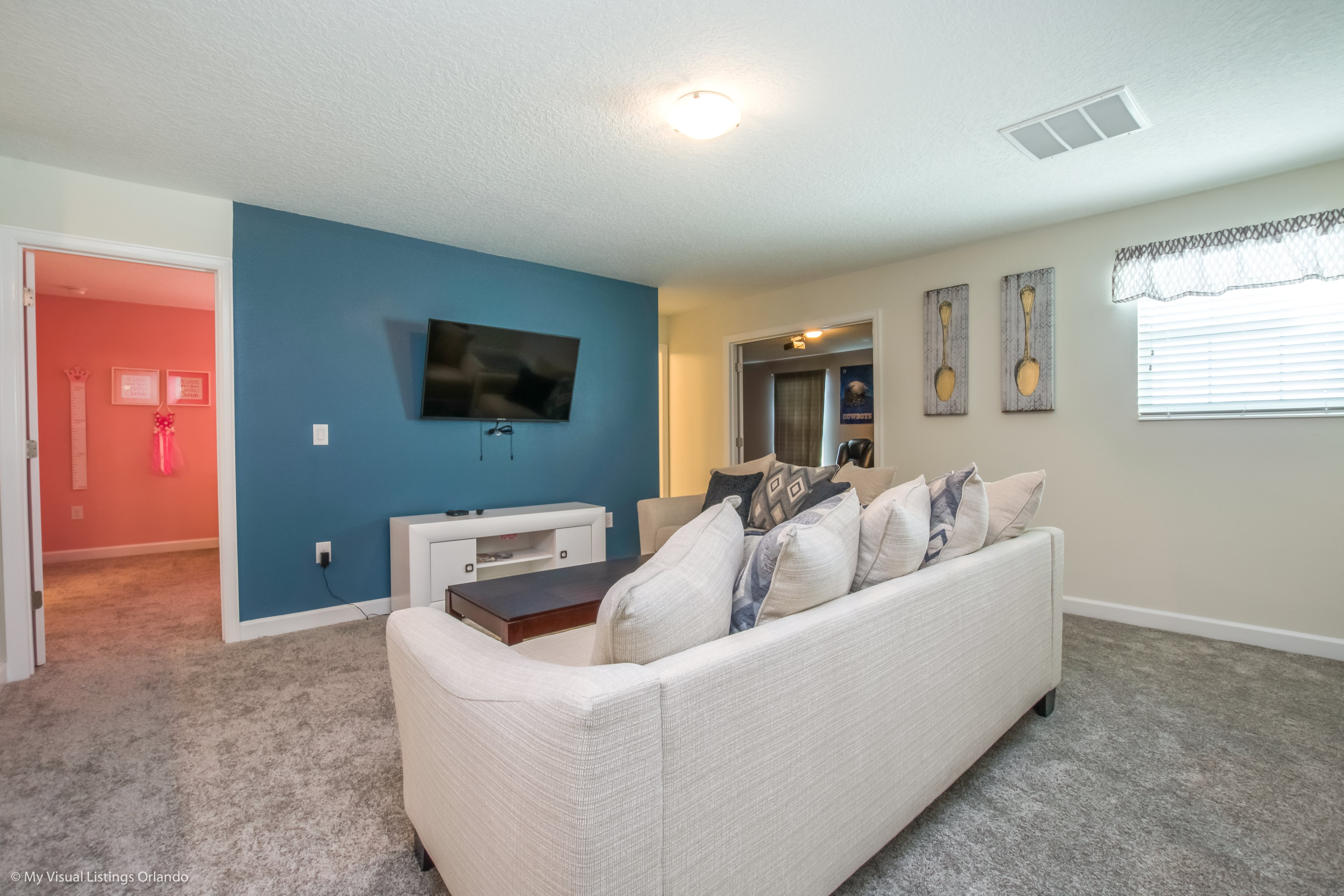 You will feel immediately relaxed as you enter our 8 bedroom, 5 bathroom executive home which sleeps up to 16 in style. We have paid great attention to every detail when we furnished this home and we hope you will enjoy it as much as we do with our own family. With 4 king bedrooms, 2 queen bedroom 2 twins rooms , there is plenty of room for everyone to spread out and relax after a day out or just to stay in and take it easy. Each room has a different feel so all guests should be equally happy with their room, and all have wall mounted flat screen LED Tv’s. The dining room and living area offers plenty of space to congregate and enjoy meals together, and the bright and airy kitchen has all the appliances that you would expect in your own home. (There is also a full-size washer and dryer). You can also enjoy a game of pool in the game room, or watch a movie in the huge loft area, or leave the kids to play on the PlayStation. Or why not take a dip in the large pool or relax in the spa, even in the evening as the pool area is south facing? This home will bring all the excitement of Orlando to you, and have the entire group talking about your trip for months to come.
