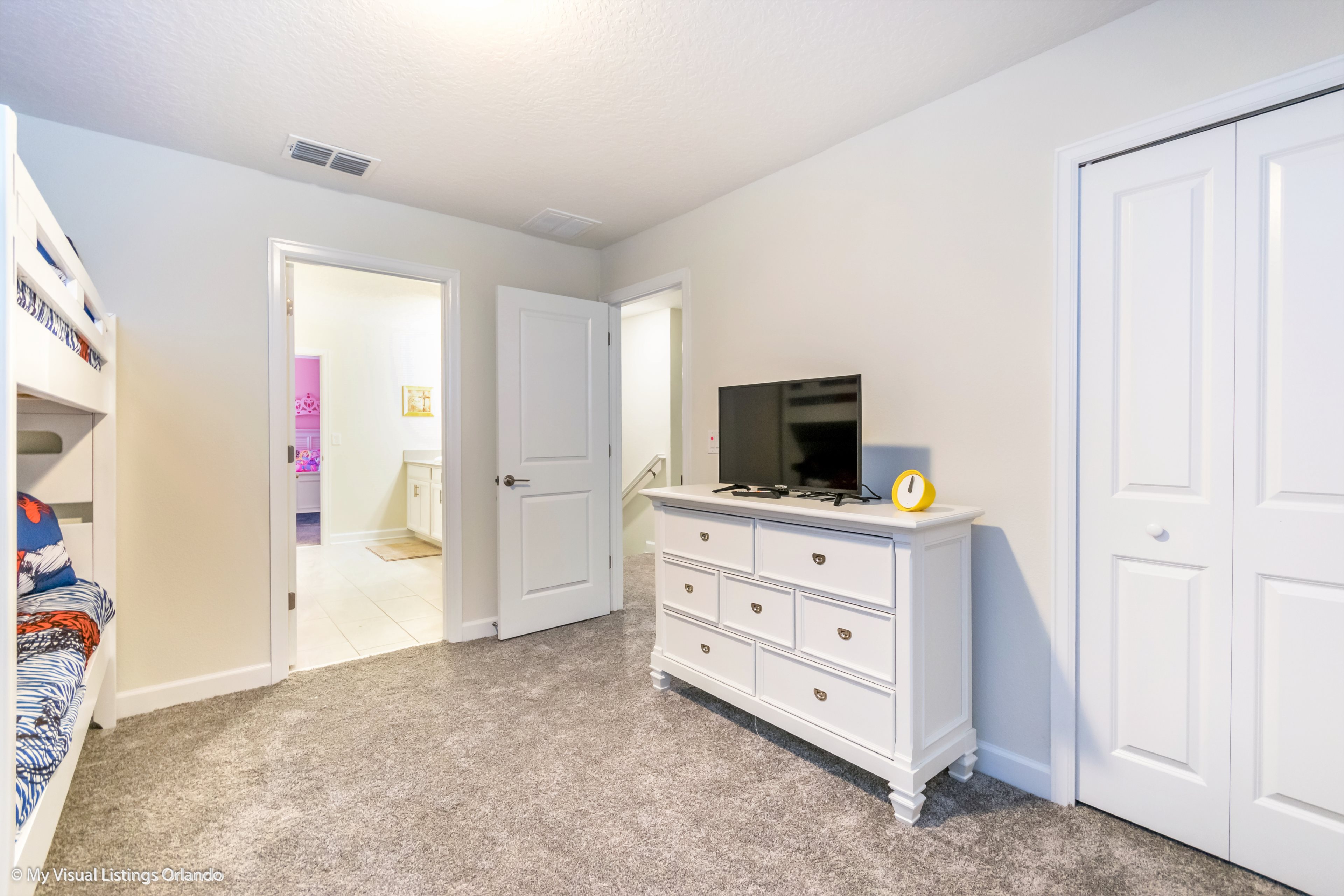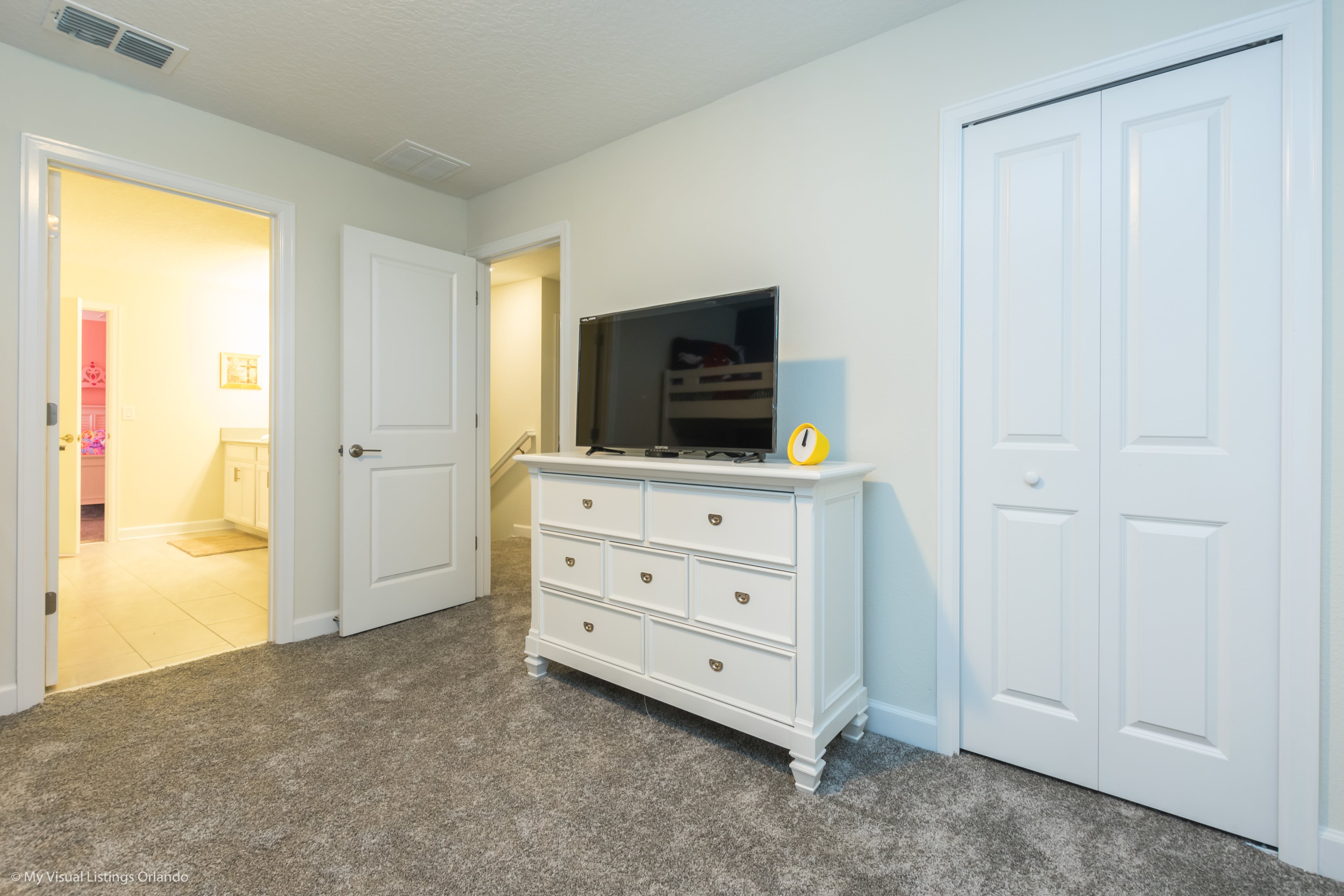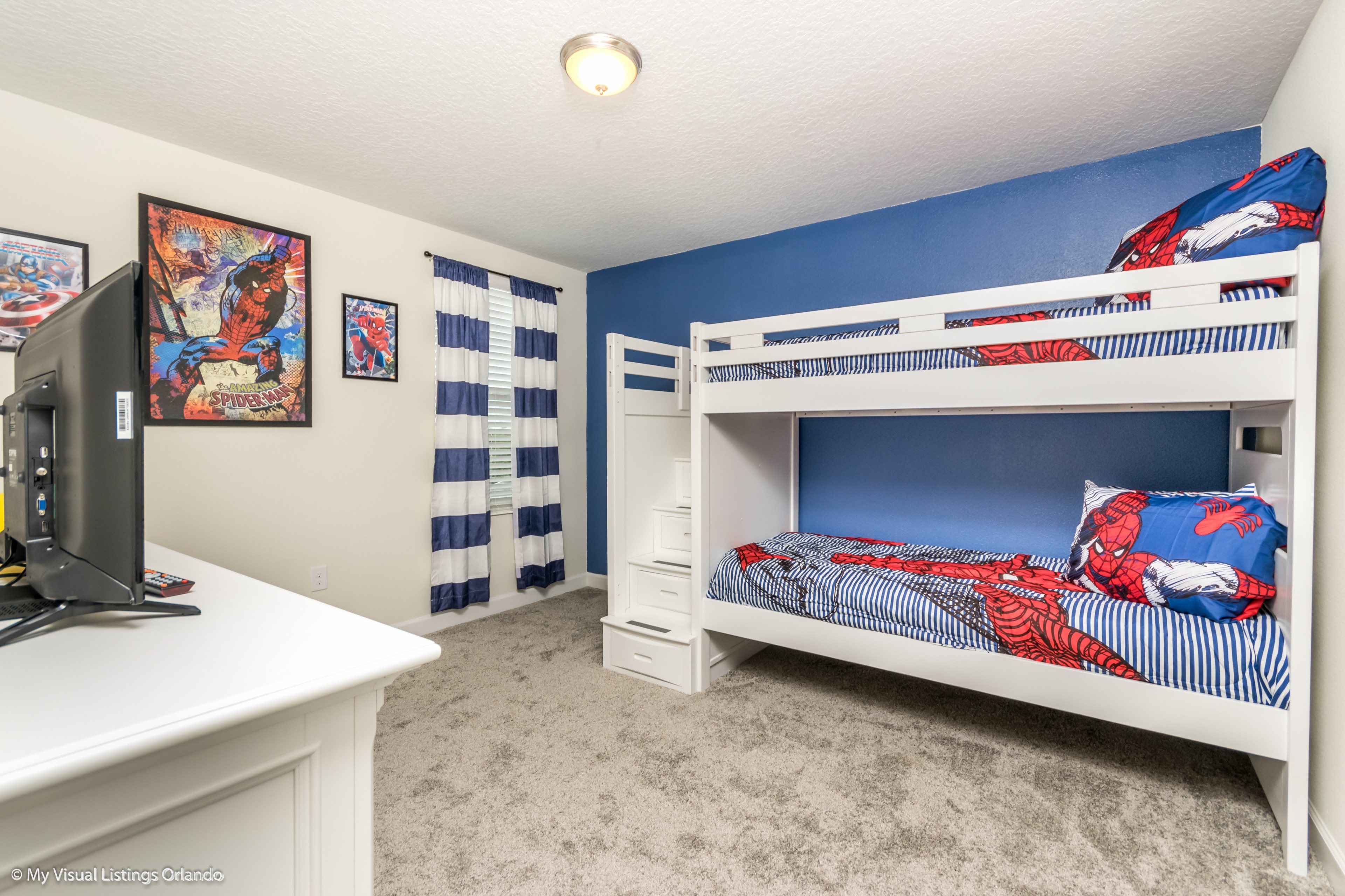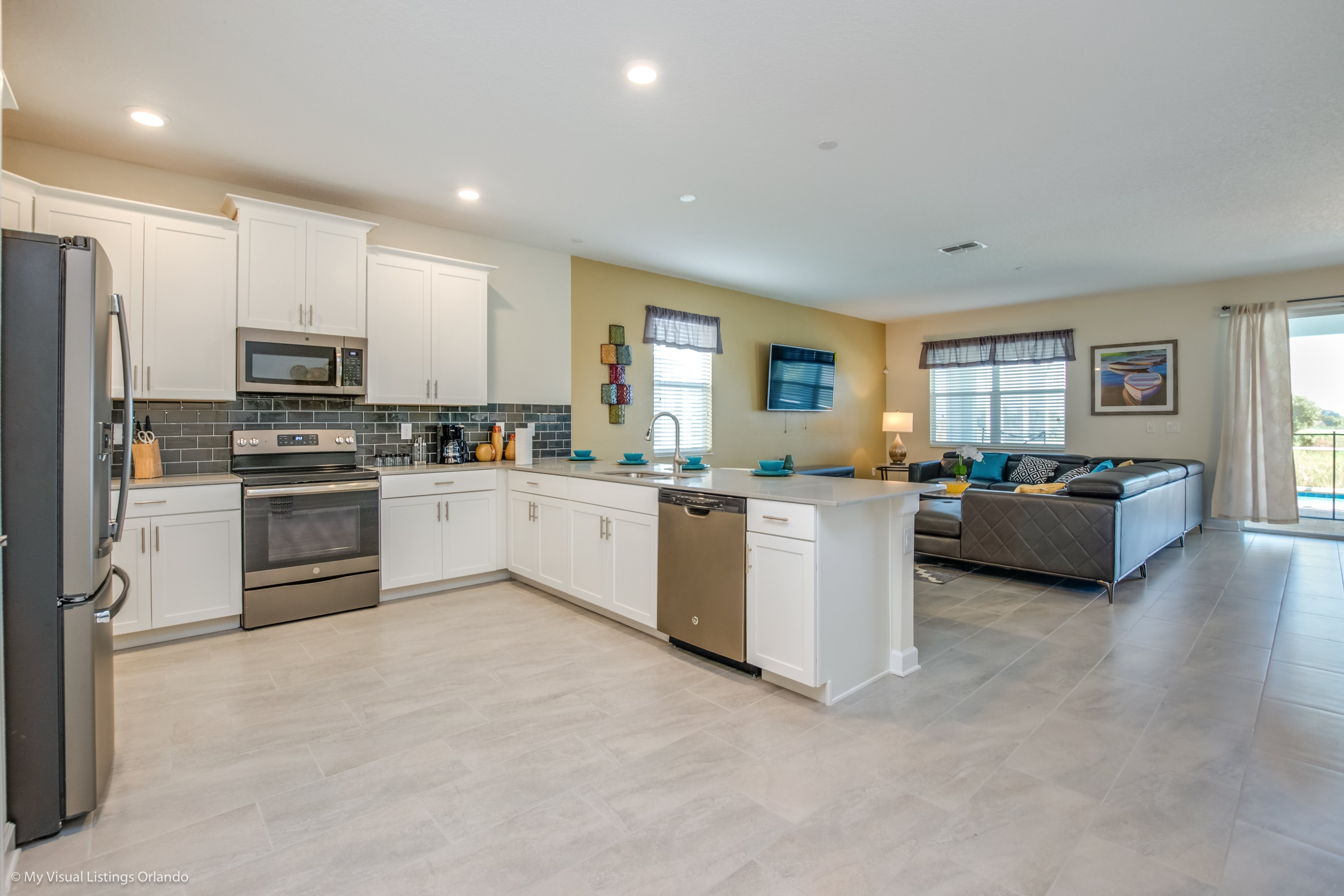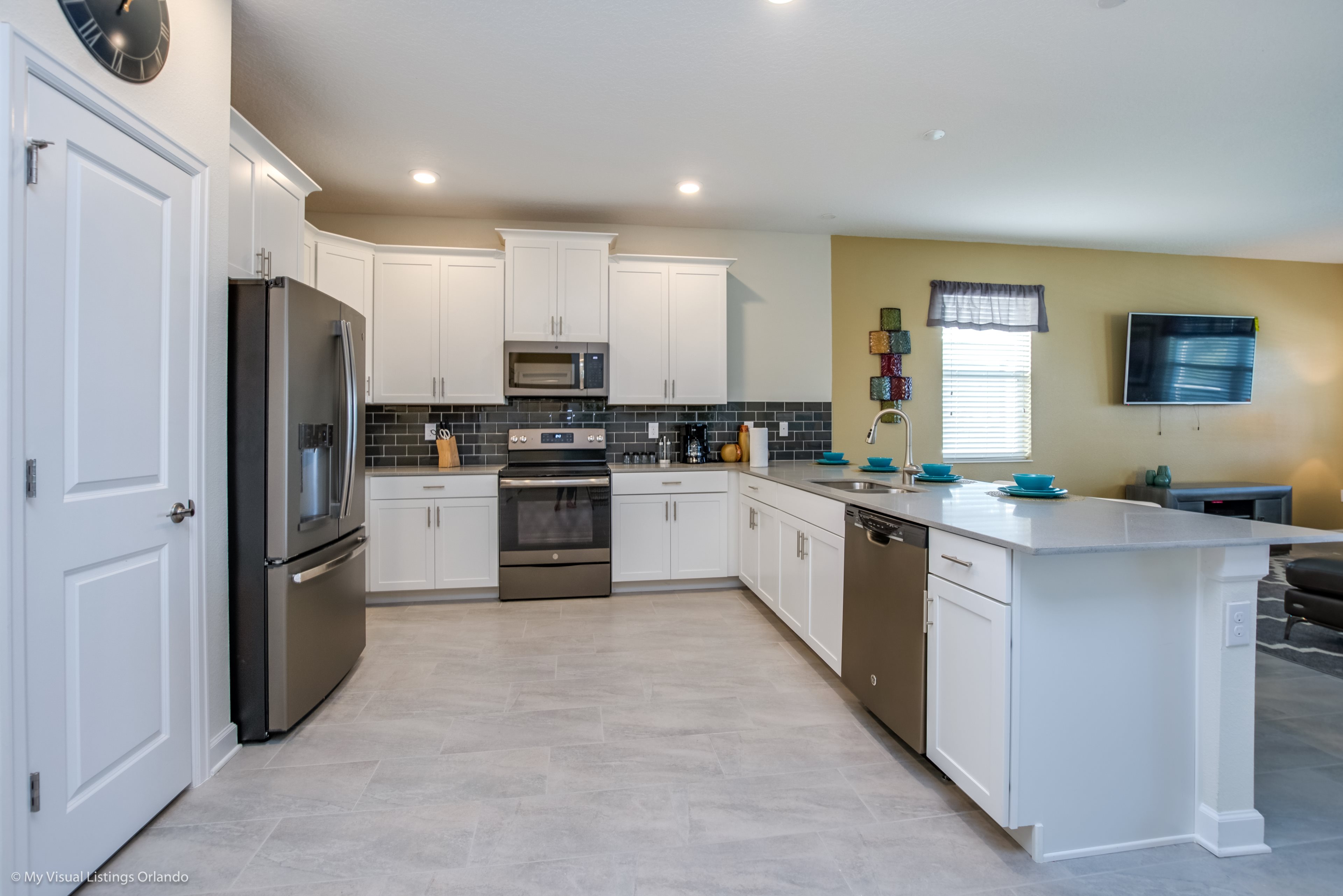 You will feel immediately relaxed as you enter our 8 bedroom, 5 bathroom executive home which sleeps up to 16 in style. We have paid great attention to every detail when we furnished this home and we hope you will enjoy it as much as we do with our own family. With 4 king bedrooms, 2 queen bedroom 2 twins rooms , there is plenty of room for everyone to spread out and relax after a day out or just to stay in and take it easy. Each room has a different feel so all guests should be equally happy with their room, and all have wall mounted flat screen LED Tv’s. The dining room and living area offers plenty of space to congregate and enjoy meals together, and the bright and airy kitchen has all the appliances that you would expect in your own home. (There is also a full-size washer and dryer). You can also enjoy a game of pool in the game room, or watch a movie in the huge loft area, or leave the kids to play on the PlayStation. Or why not take a dip in the large pool or relax in the spa, even in the evening as the pool area is south facing? This home will bring all the excitement of Orlando to you, and have the entire group talking about your trip for months to come.