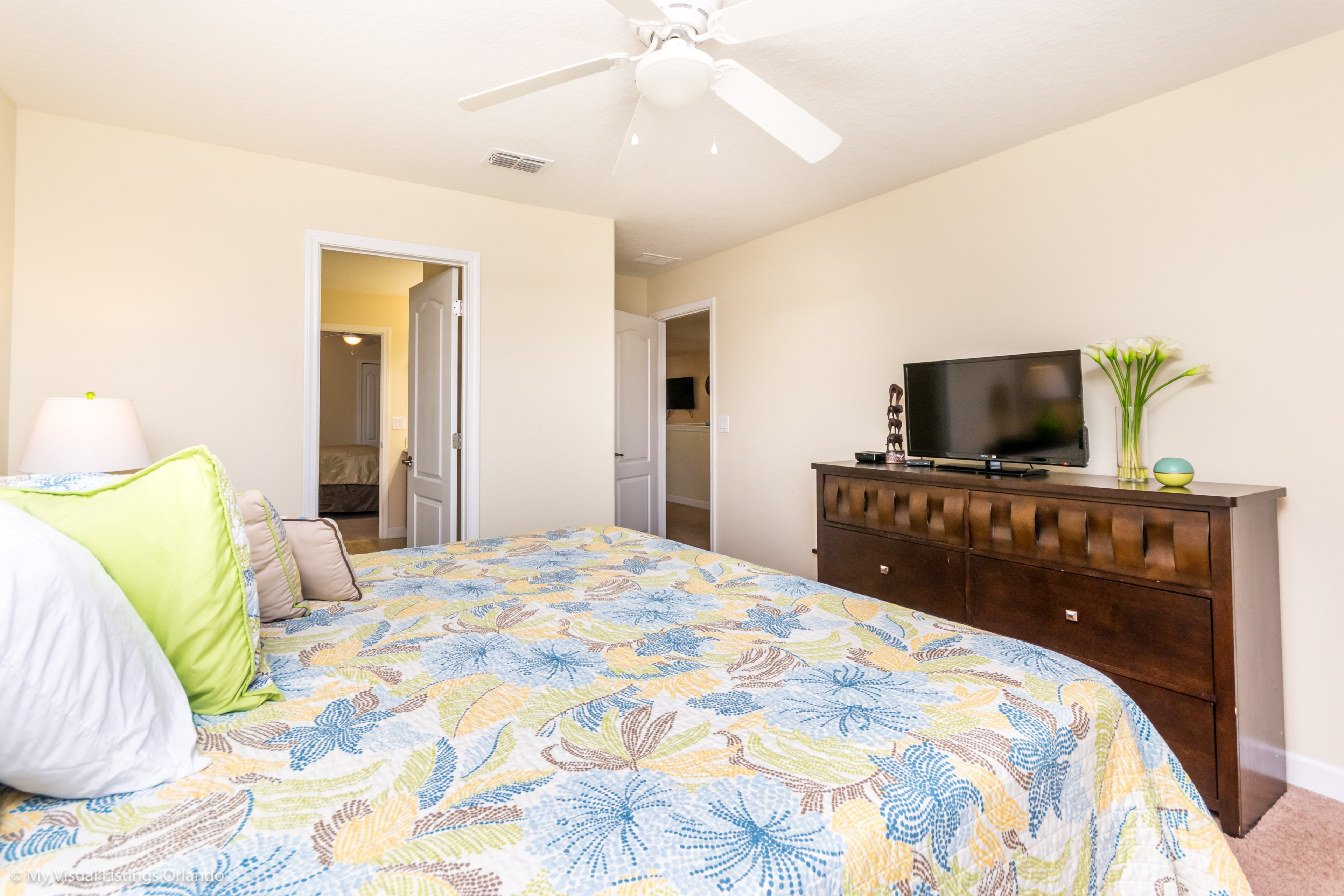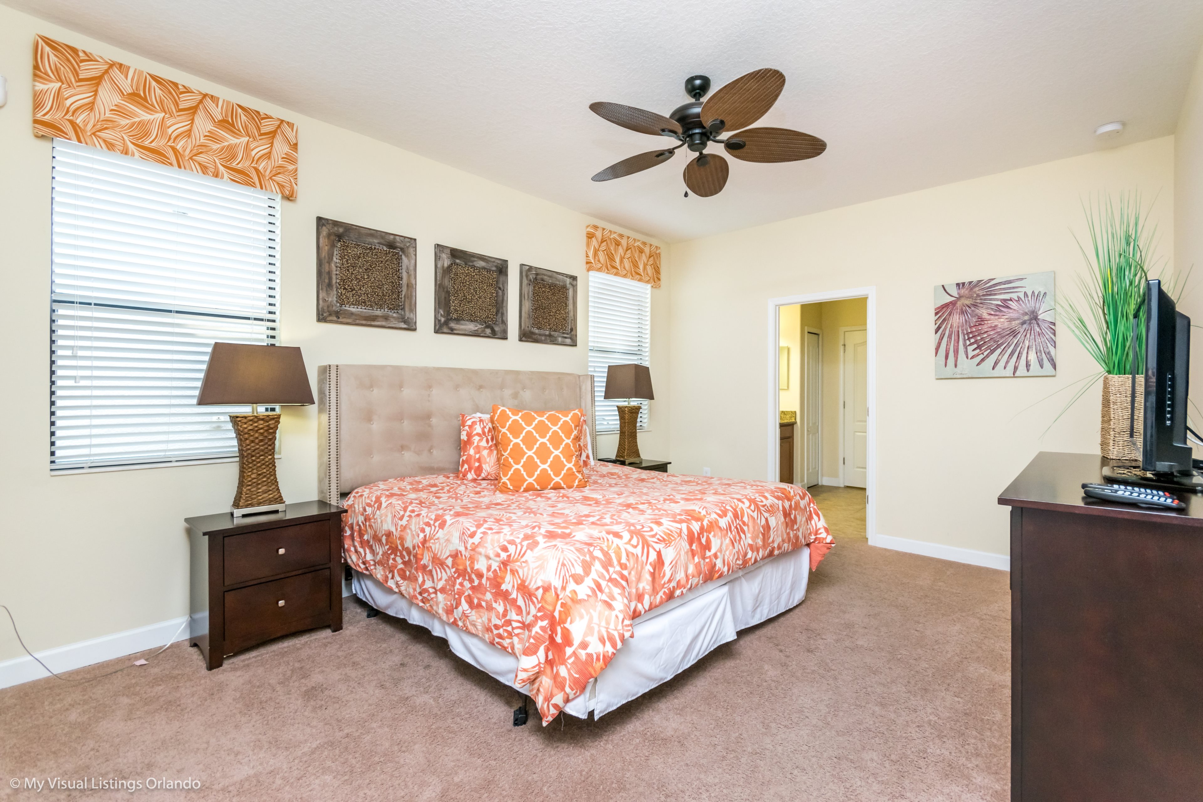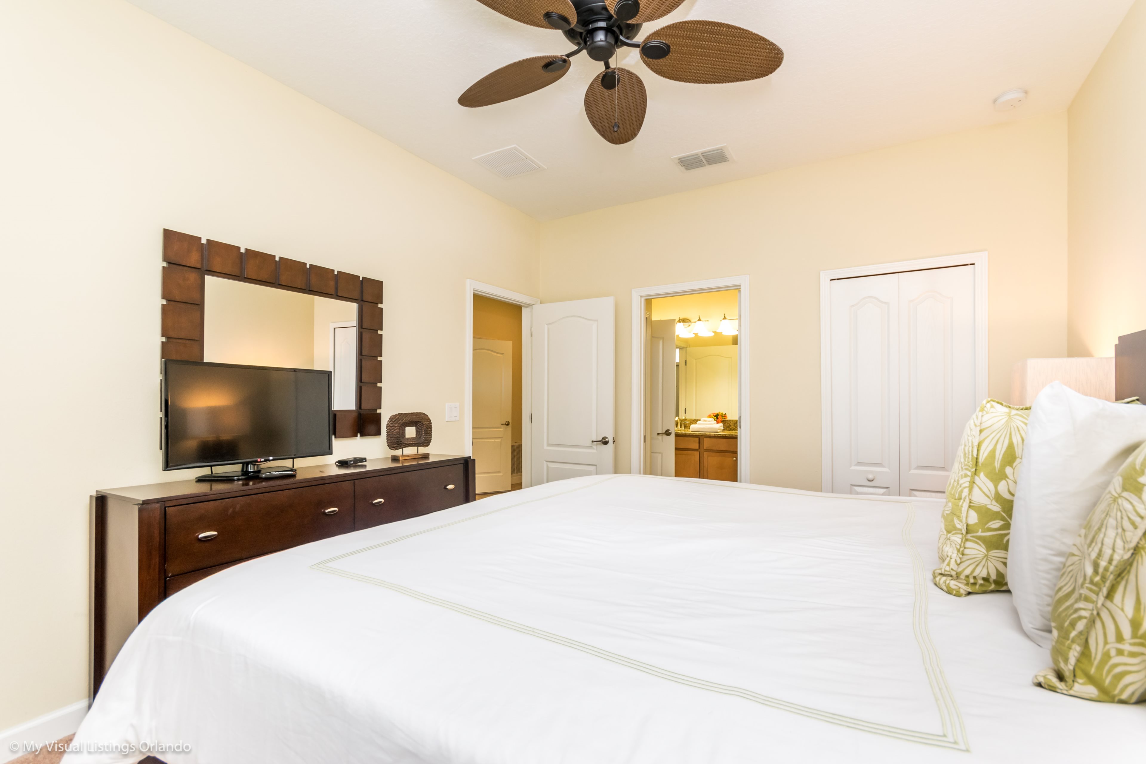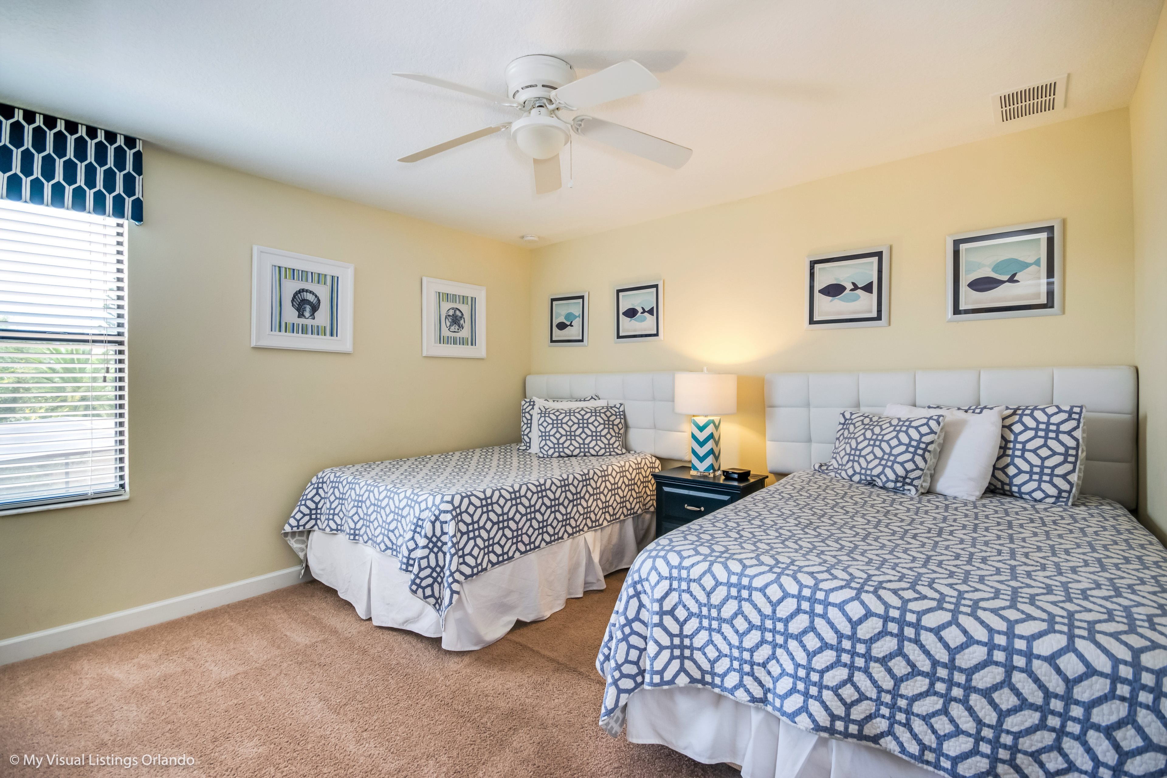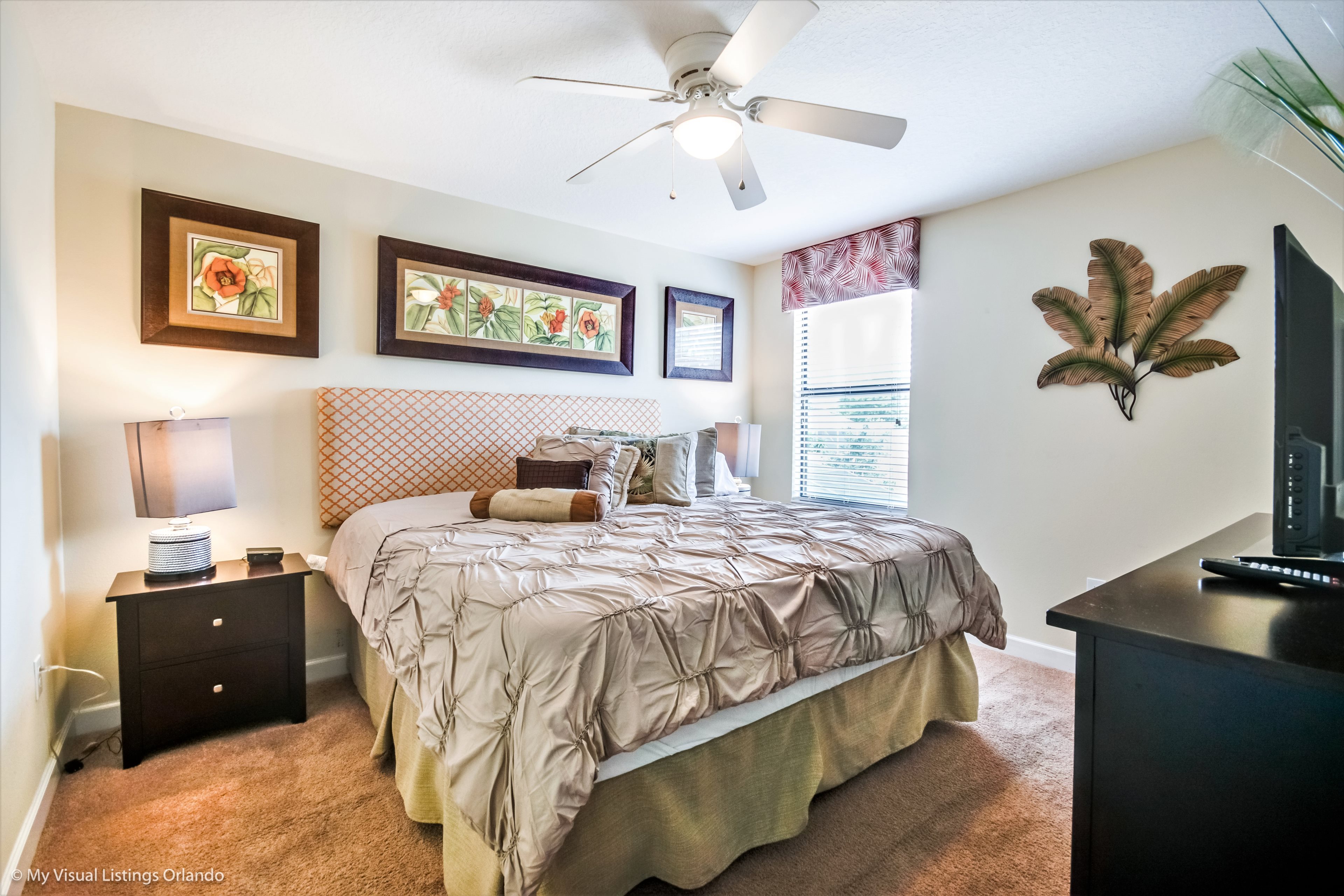 You will feel immediately relaxed as you enter our 8 bedroom, 5 bathroom executive home which sleeps up to 18 in style. We have paid great attention to every detail when we furnished this home and we hope you will enjoy it as much as we do with our own family. With 2 king bedrooms, 3 queen bedroom, 1 Room with two full beds and 2 room with 2 twins , there is plenty of room for everyone to spread out and relax after a day out or just to stay in and take it easy. Each room has a different feel so all guests should be equally happy with their room, and all have wall mounted flat screen LED Tv’s. The dining room and living area offers plenty of space to congregate and enjoy meals together, and the bright and airy kitchen has all the appliances that you would expect in your own home. (There is also a full-size washer and dryer). You can also enjoy a game of pool in the game room, or watch a movie in the huge loft area, or leave the kids to play on the PlayStation. Or why not take a dip in the large pool or relax in the spa, even in the evening as the pool area is south facing? This home will bring all the excitement of Orlando to you, and have the entire group talking about your trip for months to come.