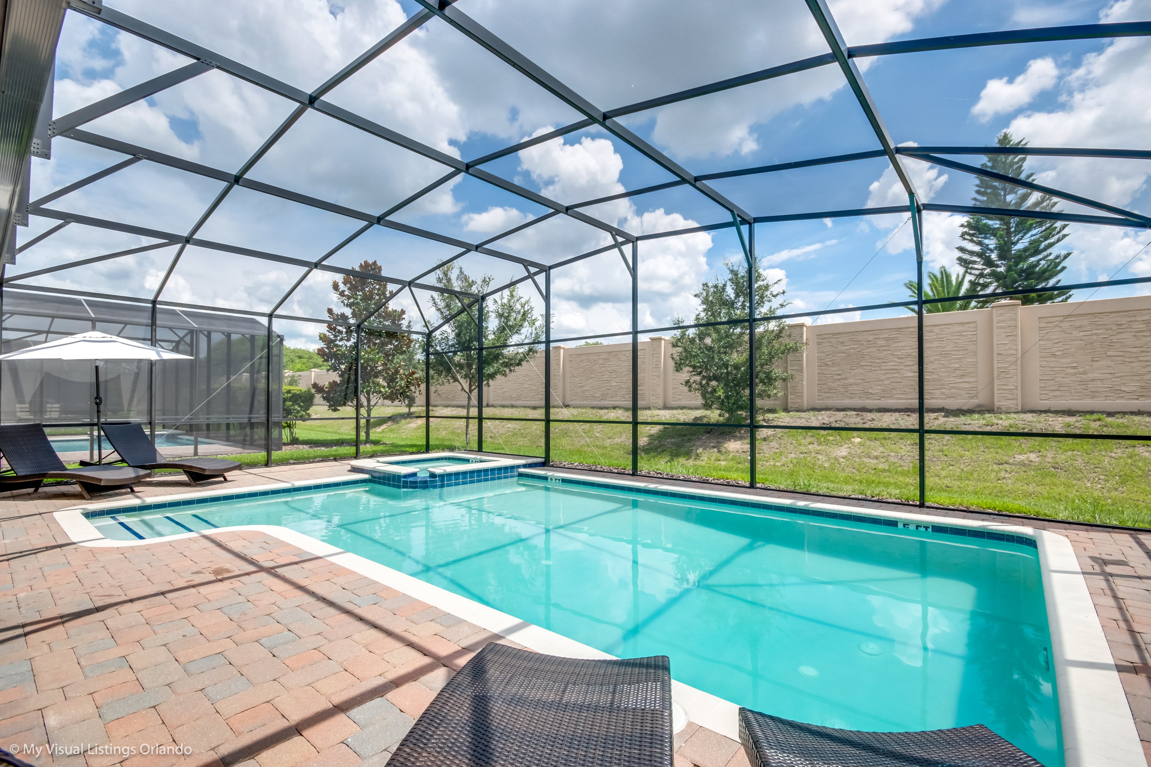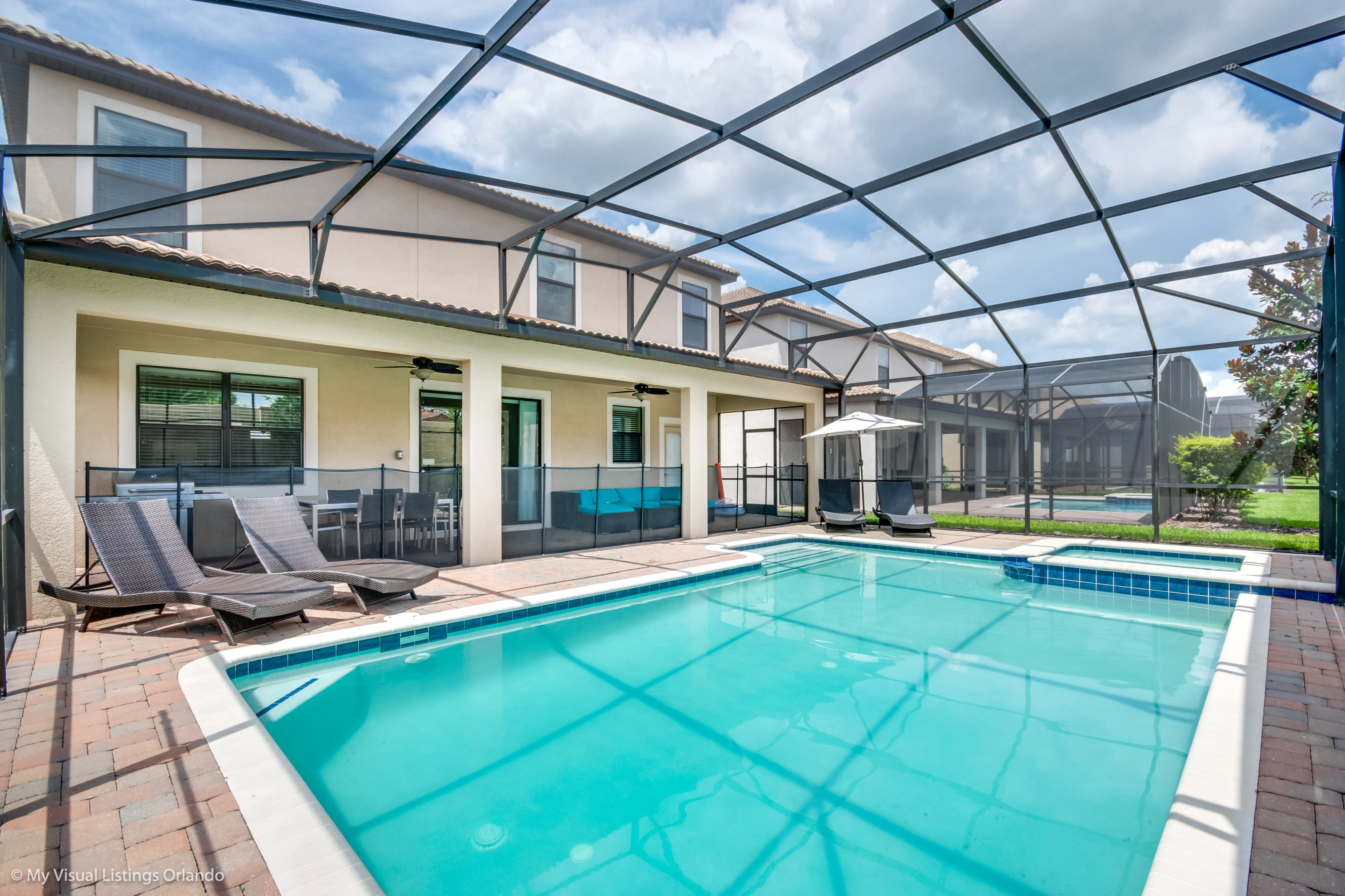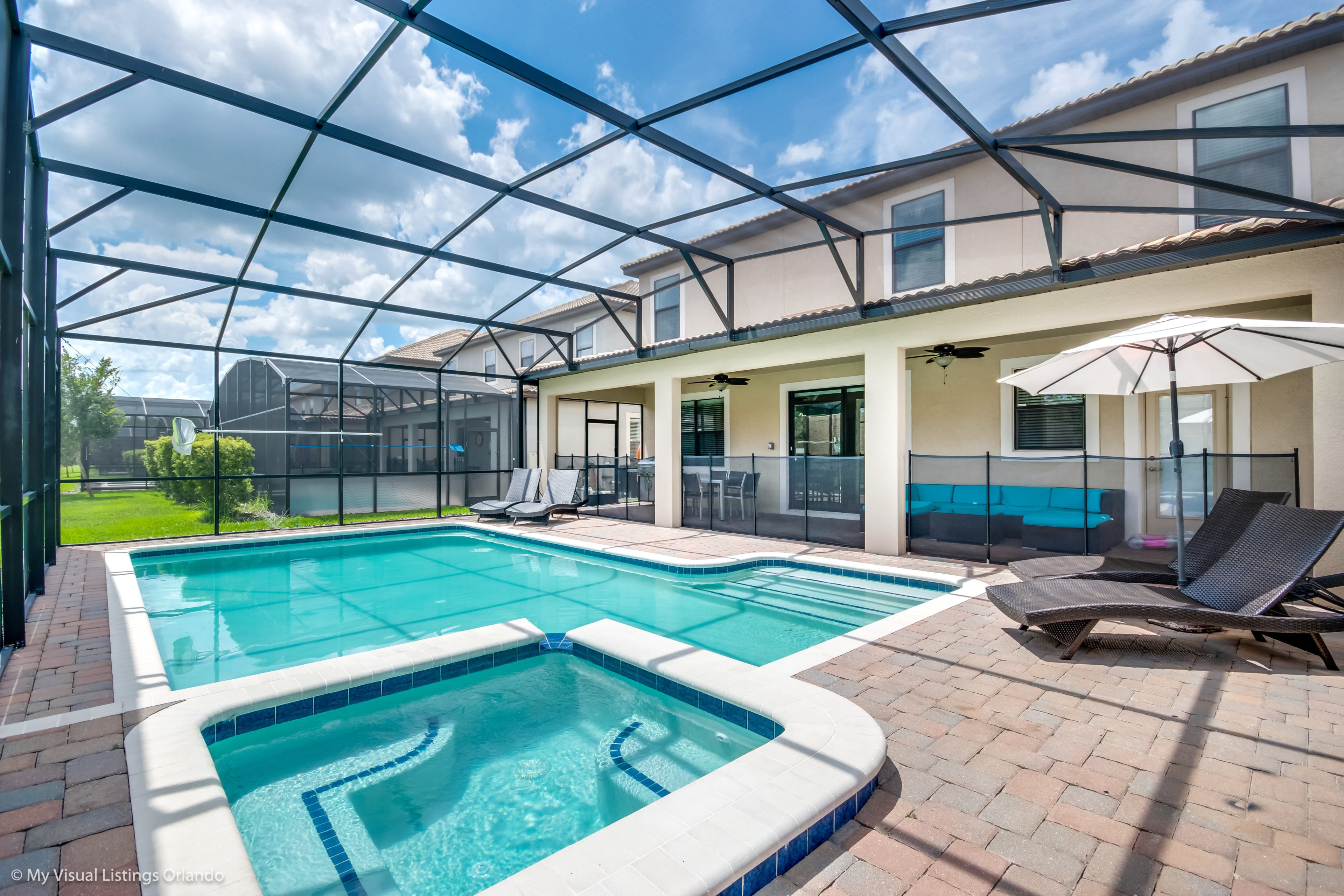 We invite you to enjoy our wonderful home on your next trip to Orlando. Absolutely perfect for multi-family groups, or golf groups, this property features all the comforts of home and more! Book your vacation now at this beautiful home with pool and spa.