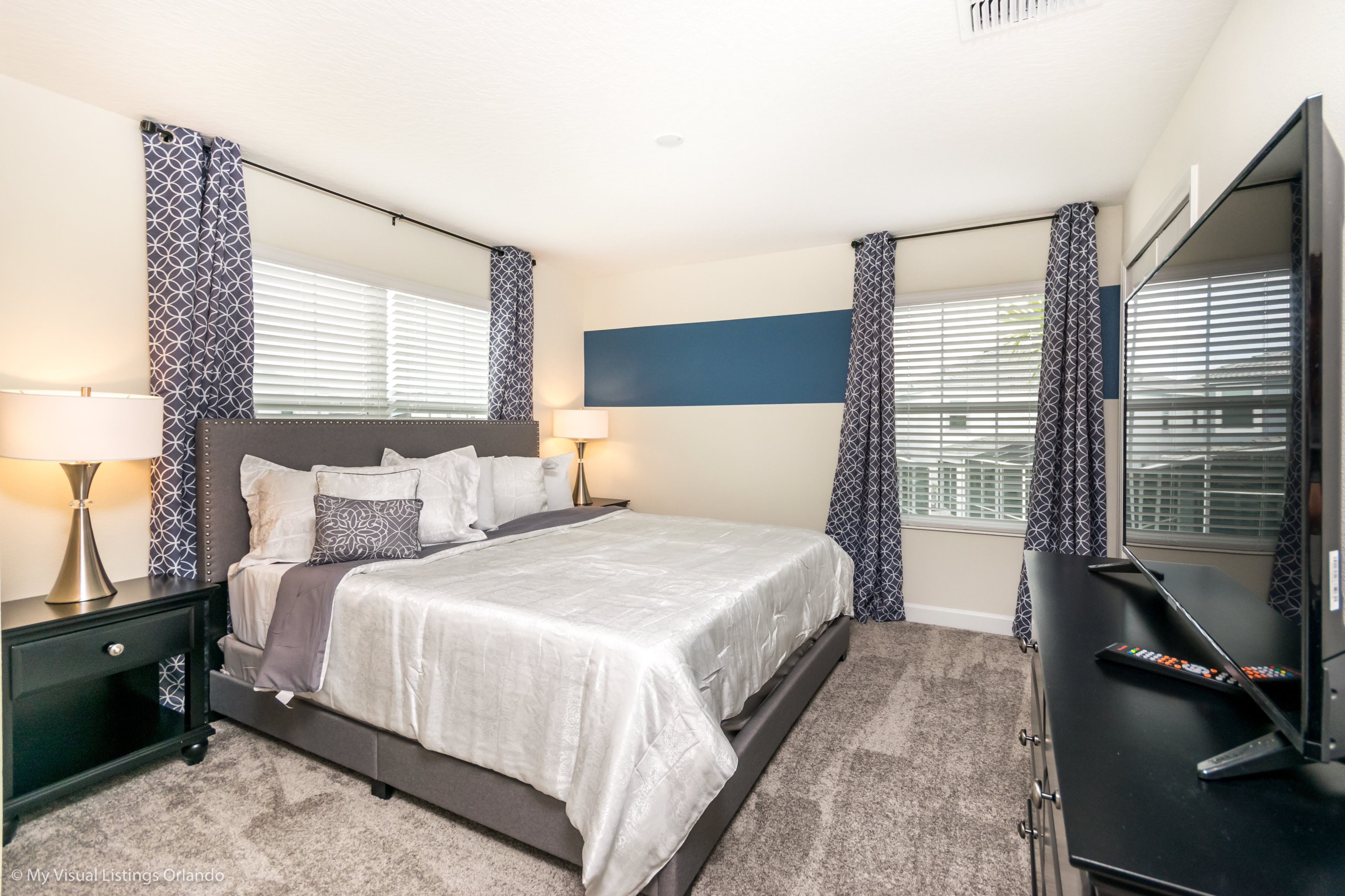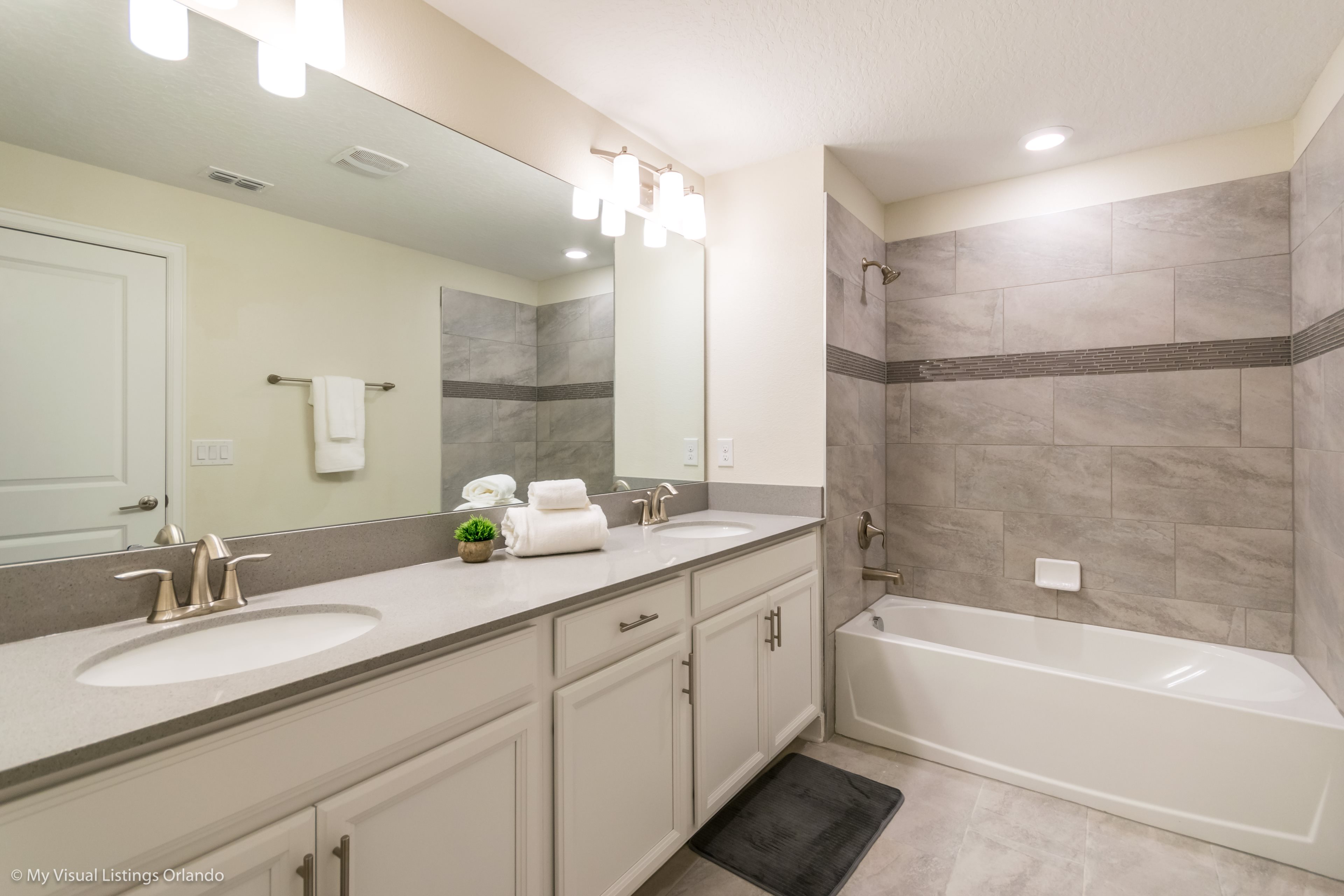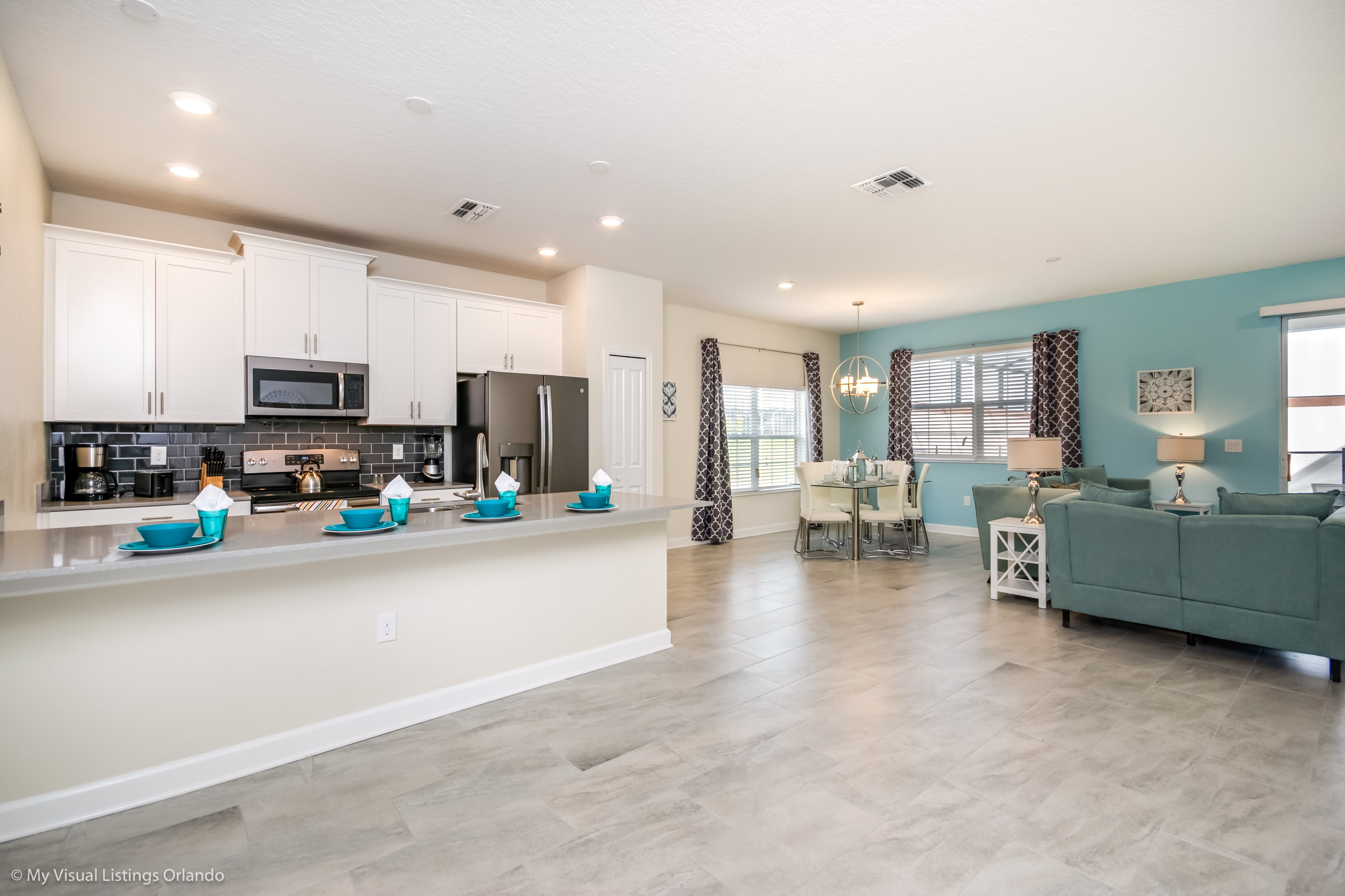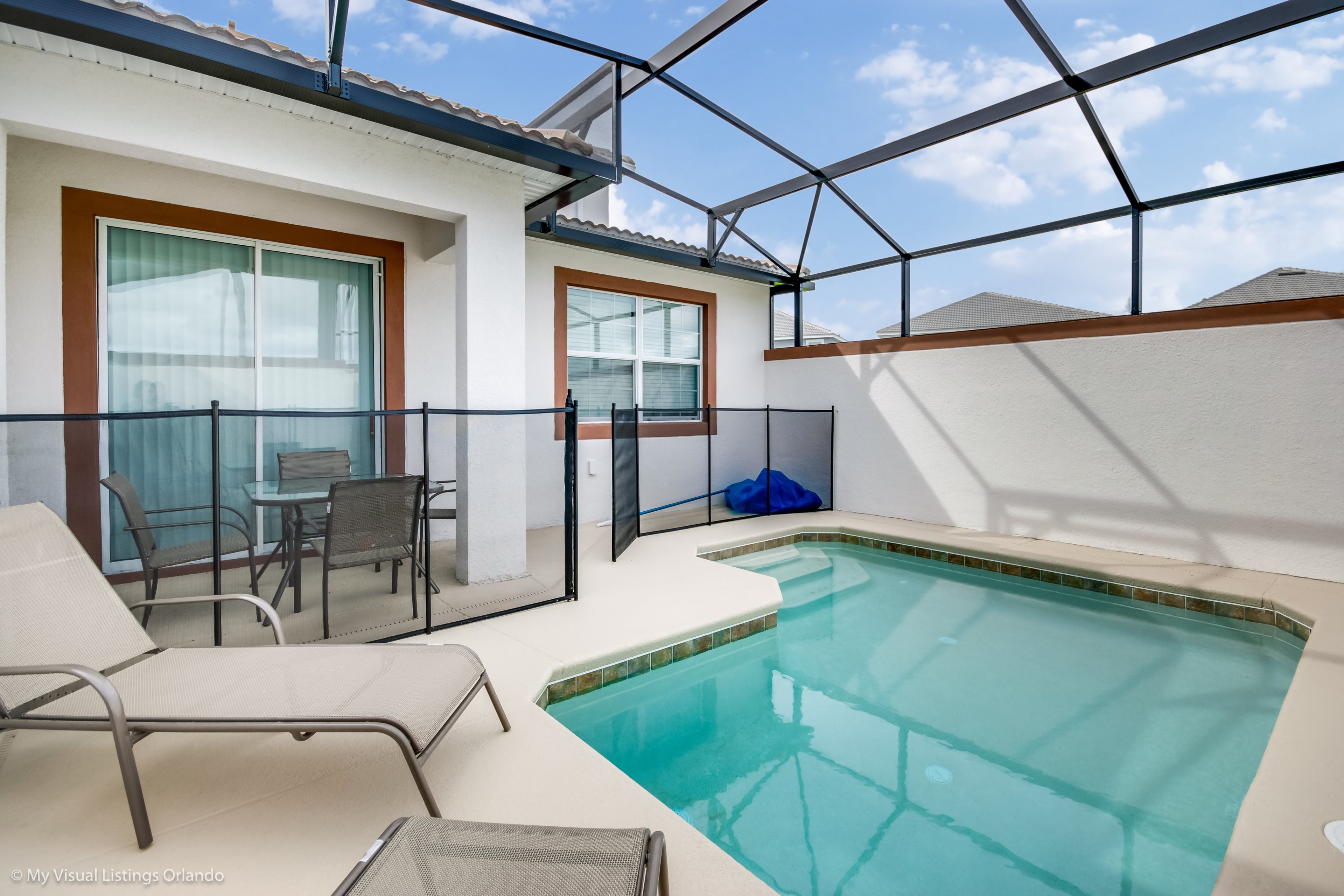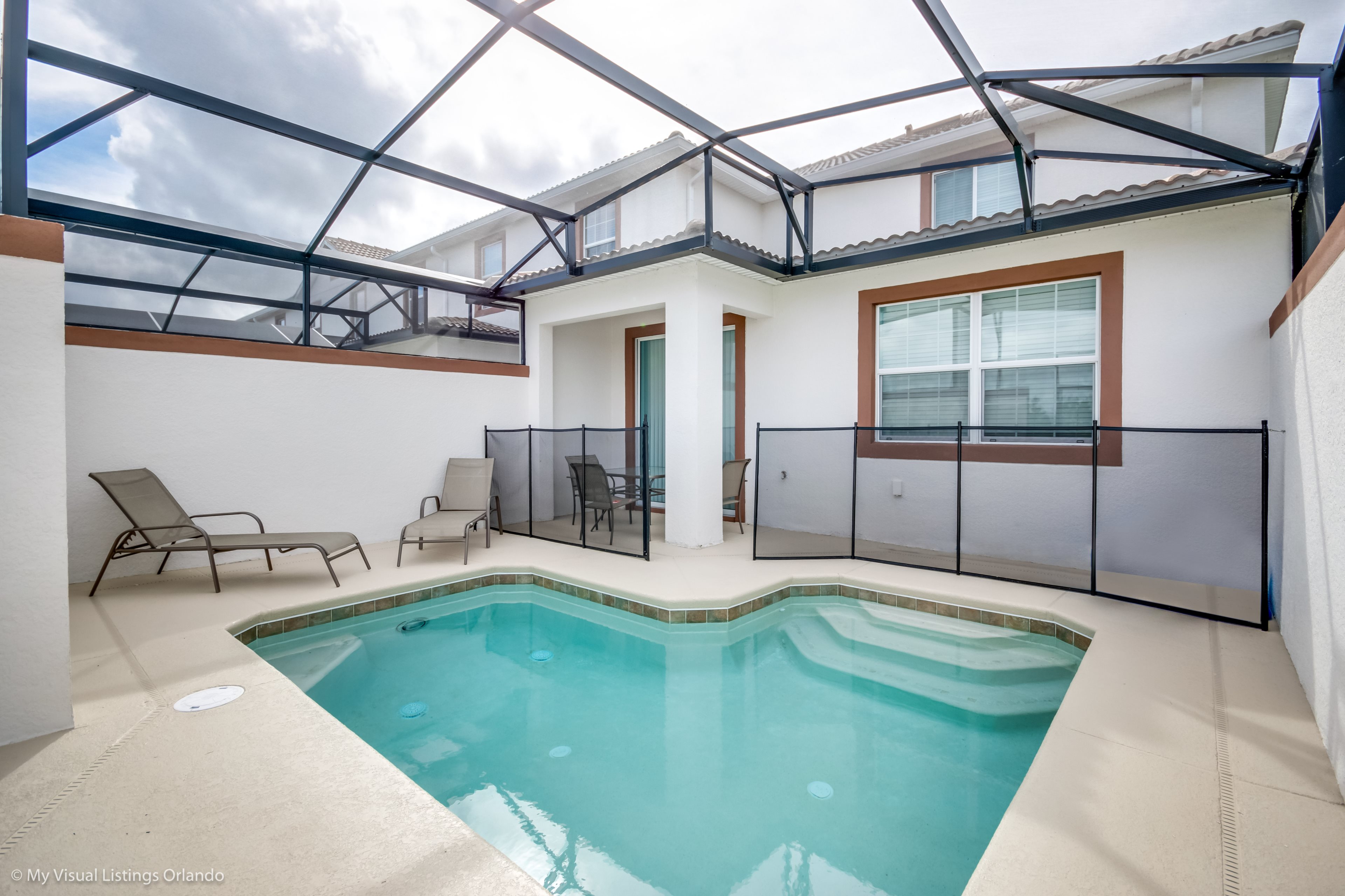 This stylish 5 bedroom townhome is a great choice for your family vacation base. With 5 bedrooms and 4 bathrooms, open floorplan, modern kitchen and plunge pool area this home offers just what you need for that at home feeling while on vacation. After a long day enjoying the theme parks and all Orlando has to offer you will be able to escape the city and truly relax at Festival of Champions townhome!