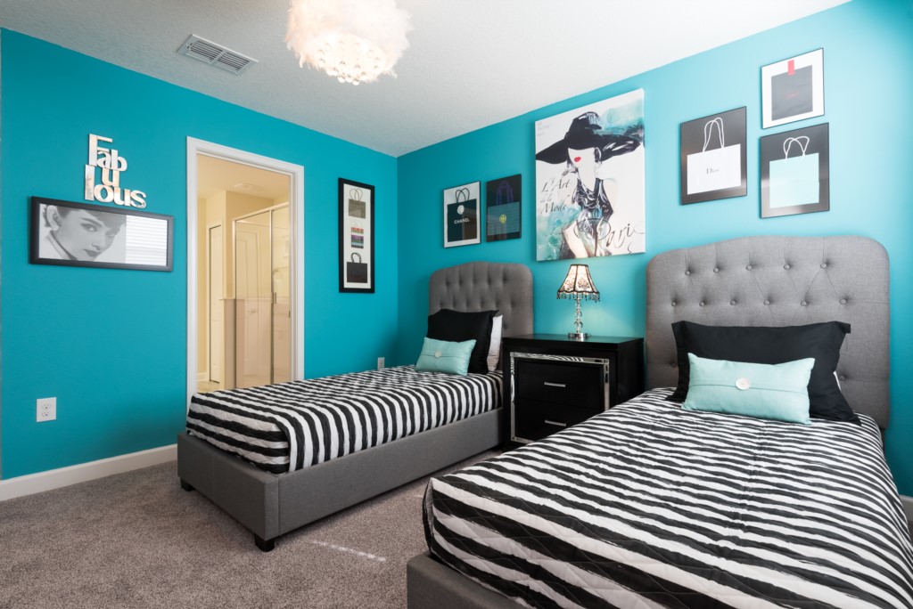 "The Audrey Room"- 2x Twin sized beds with an Audrey Hepburn theme; jack and jill style bathroom