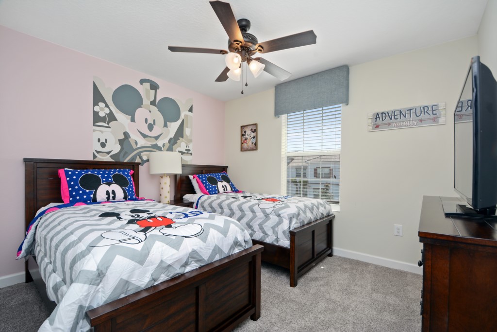 'Mickey Mouse' themed bedroom with 2x Twin sized beds