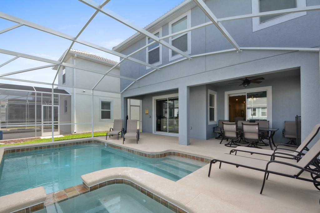 The screened in private swimming pool and spillover spa is the perfect way to enjoy Florida's warm weather and sunshine while on vacation here in Orlando! The games room with a foosball table and PS4 video game console as well as the upstairs loft area with a large flat screen TV and plenty of comfortable seating provides endless hours of entertainment for the whole family!