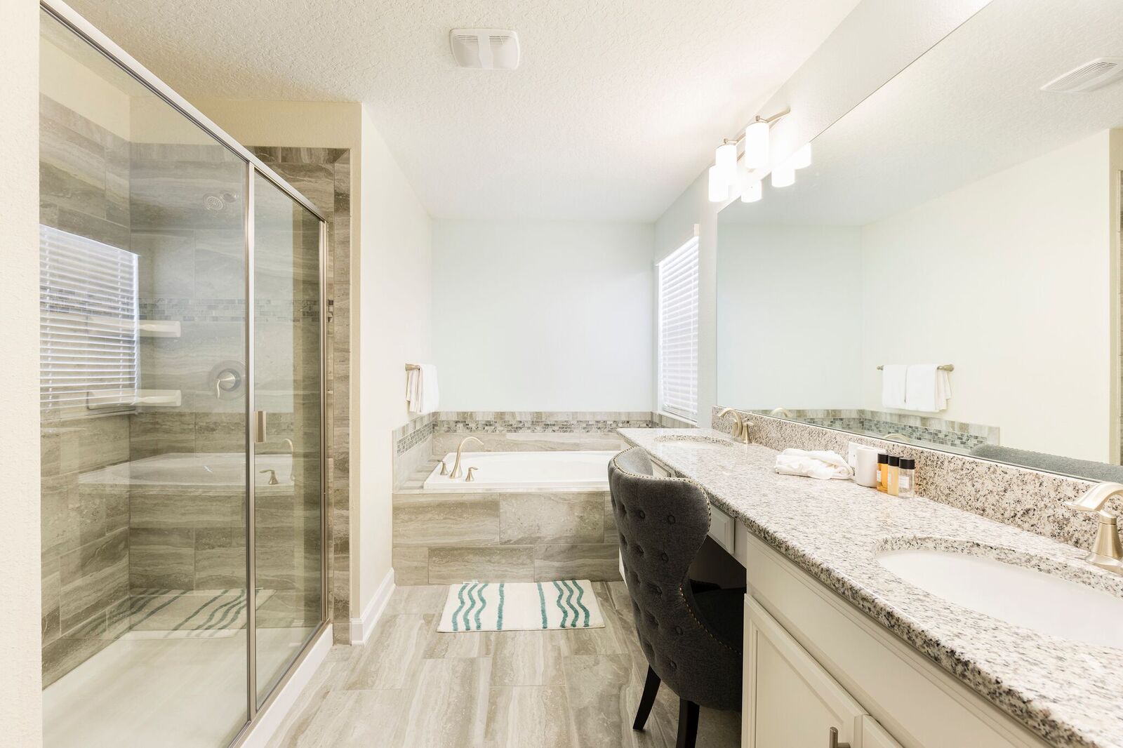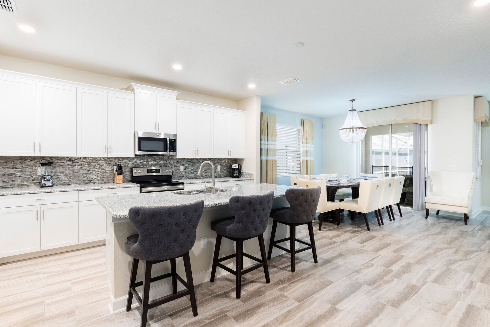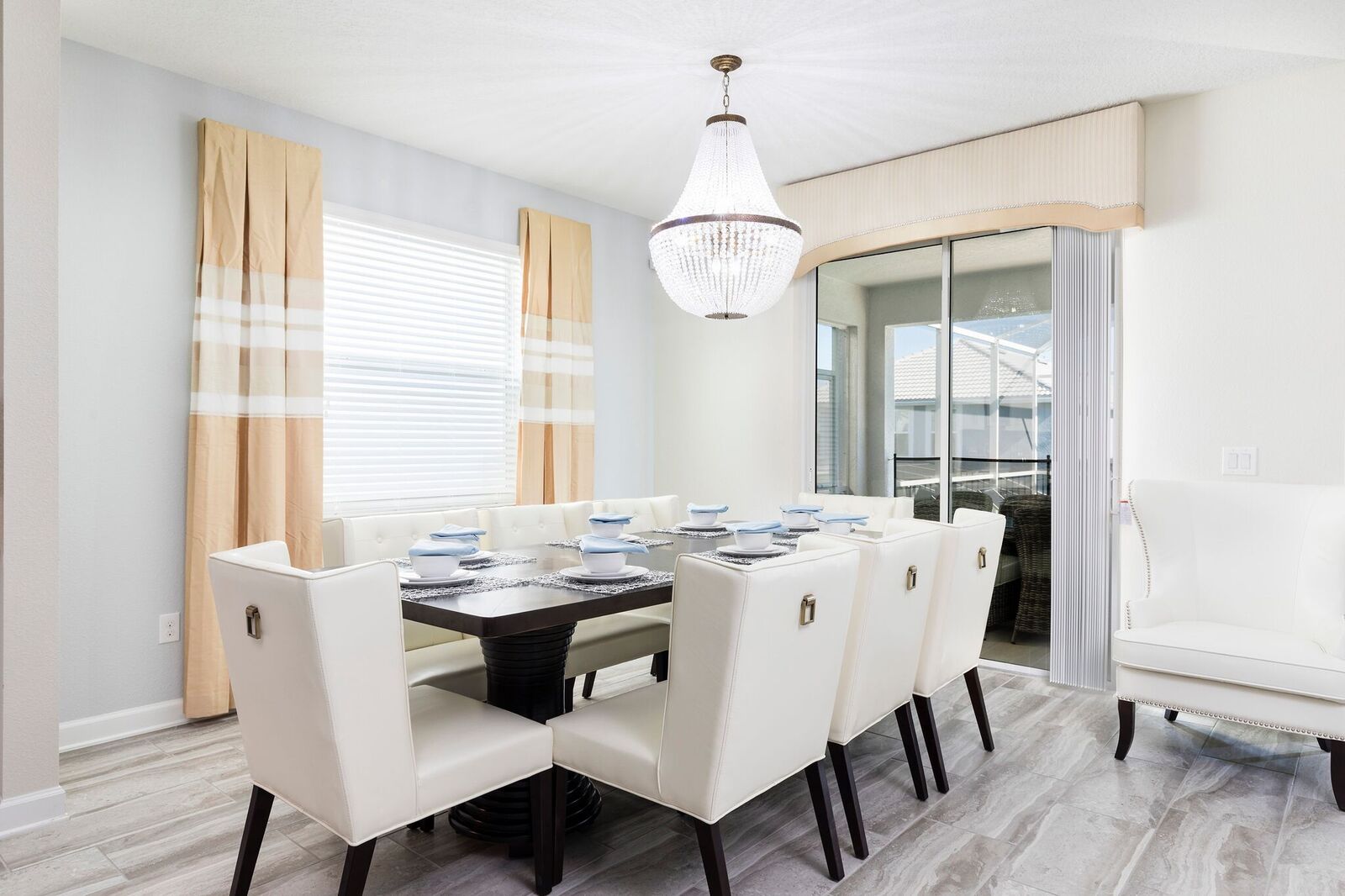 This 5 bedroom villa, located at Champions Gate, is in a prime Central Florida location, offering a short distance (less than 15 minutes) to Walt Disney World and Champions Gate on property Oasis water park!