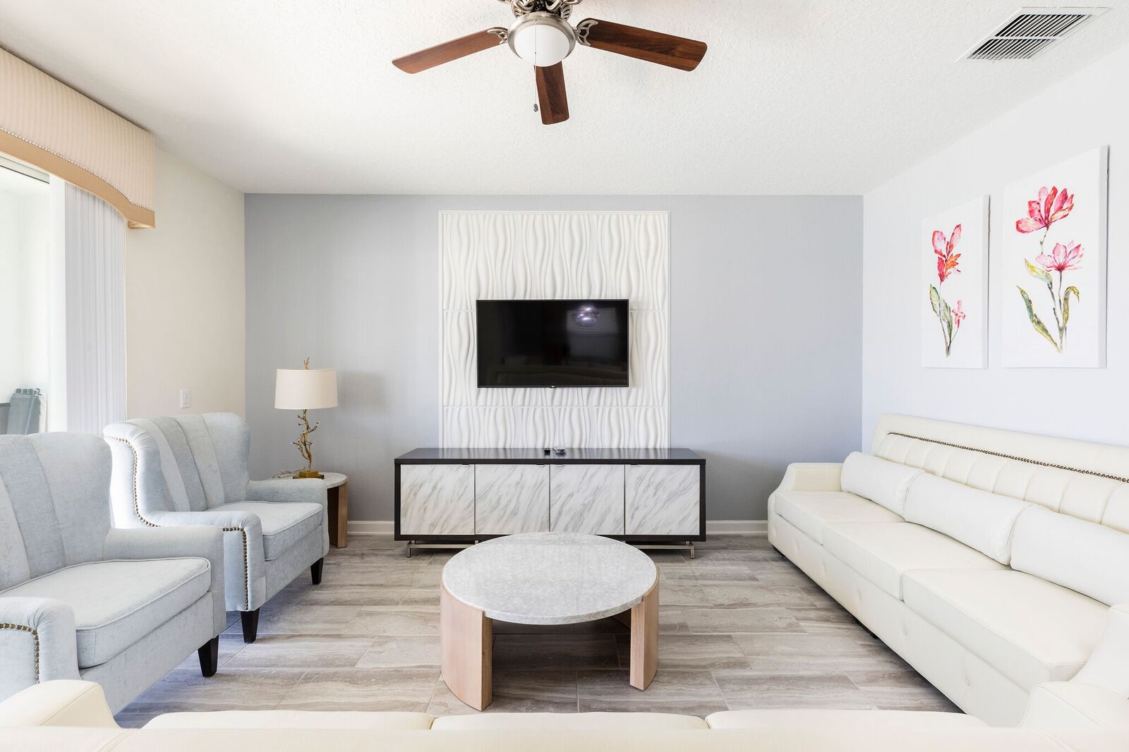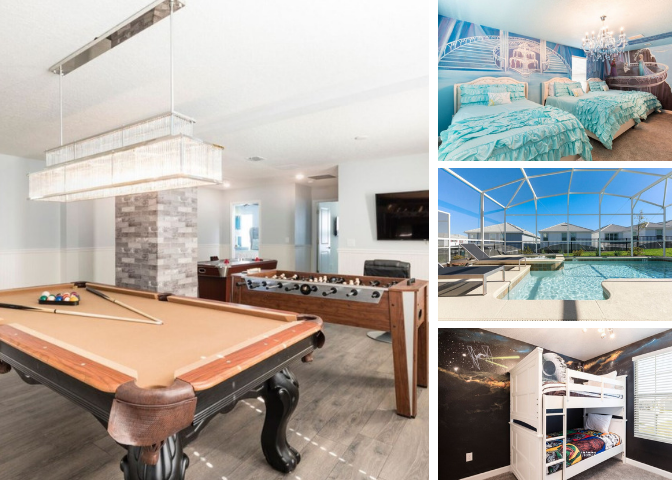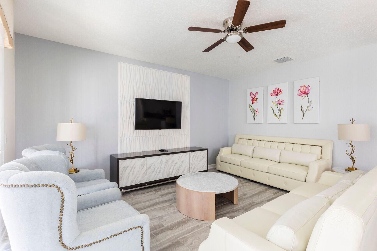 This 5 bedroom villa, located at Champions Gate, is in a prime Central Florida location, offering a short distance (less than 15 minutes) to Walt Disney World and Champions Gate on property Oasis water park!