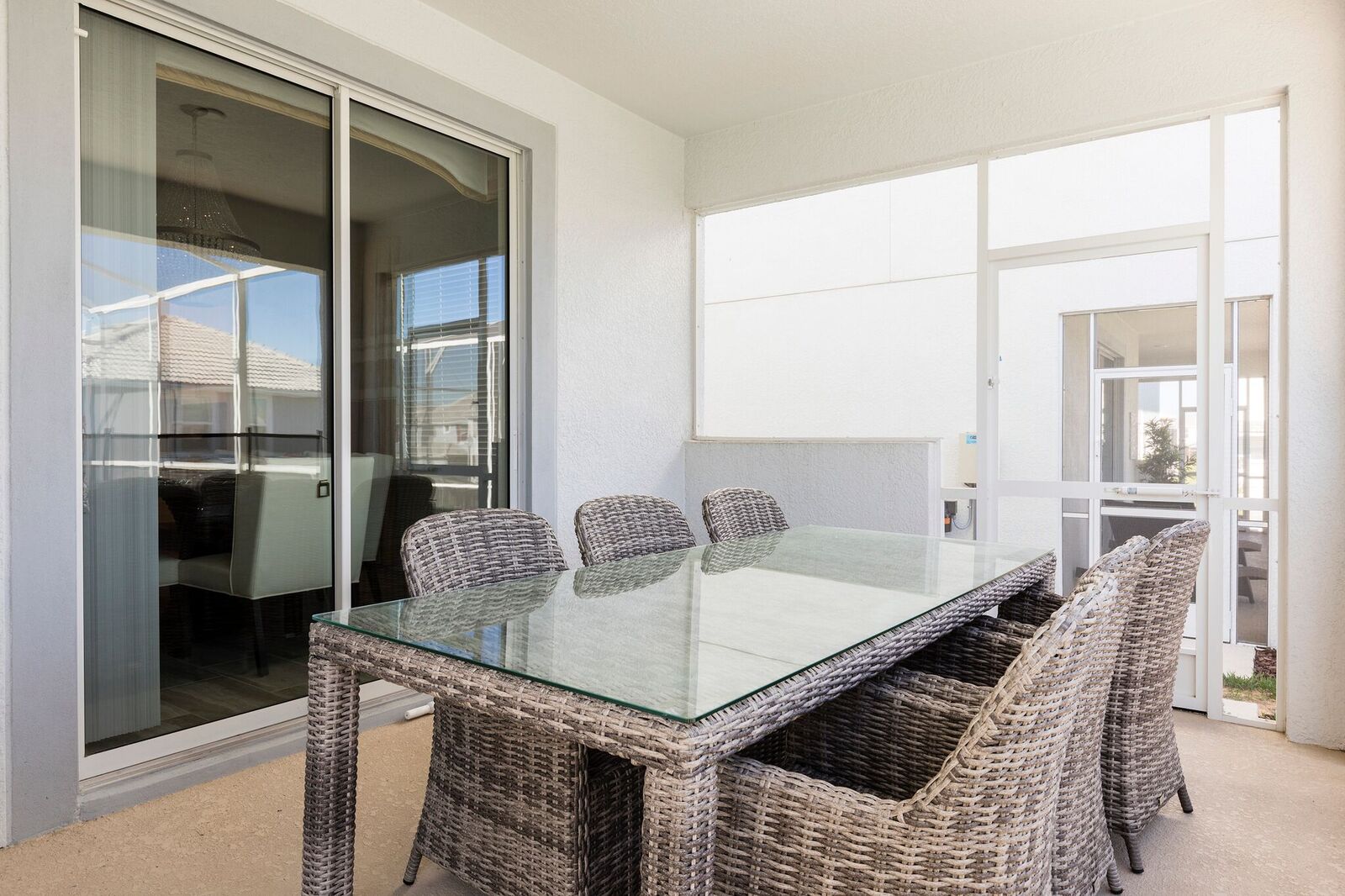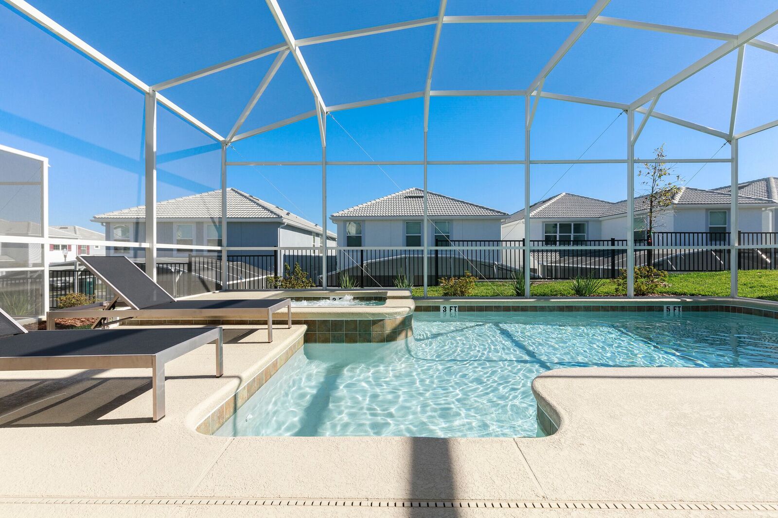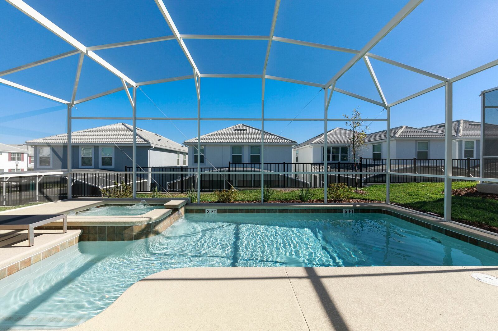 The screened in private swimming pool and spa is the perfect way to enjoy the warm Florida weather and have a relaxing day in the sunshine after long days at the theme parks.