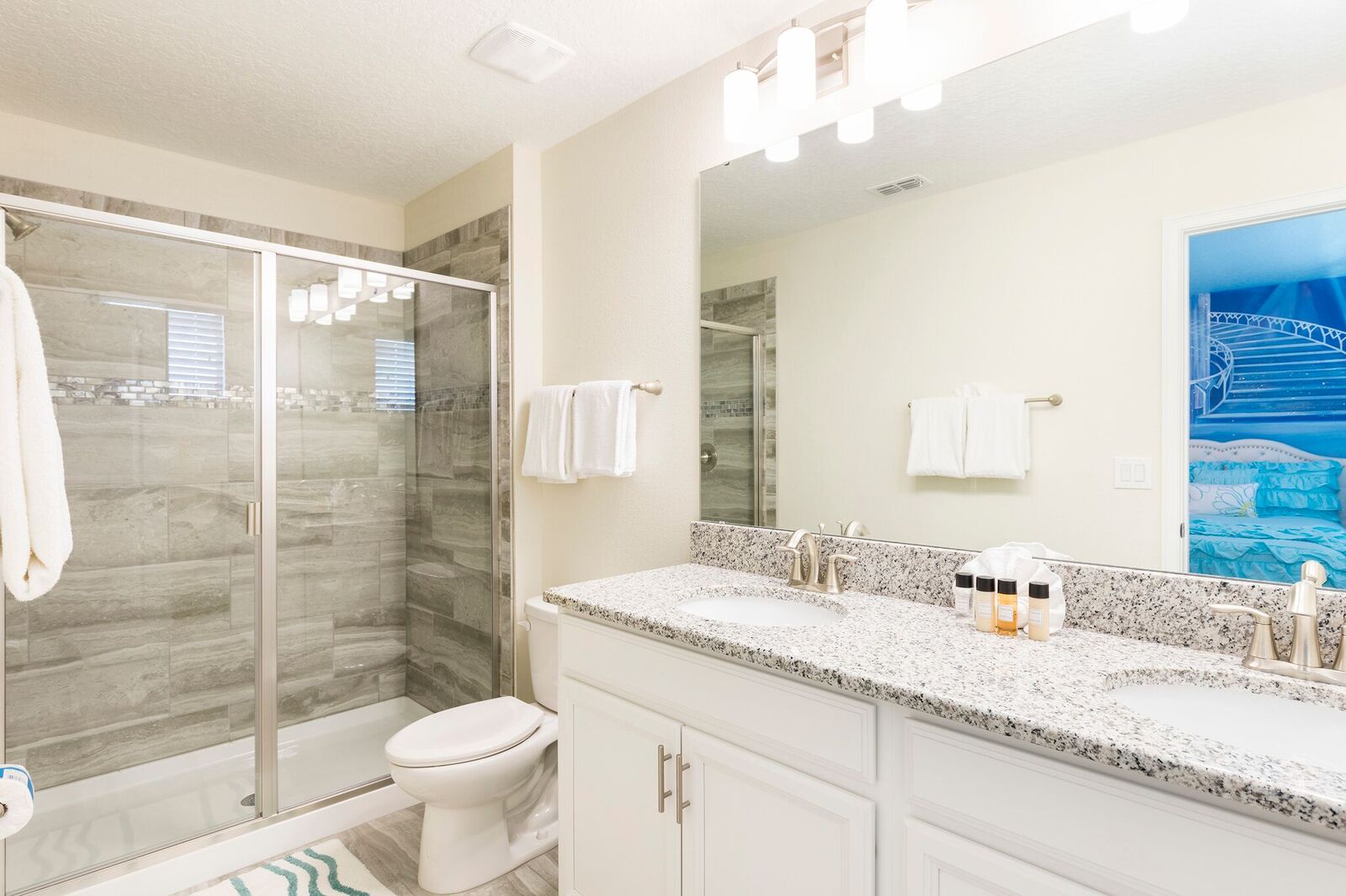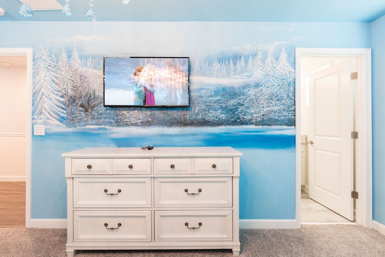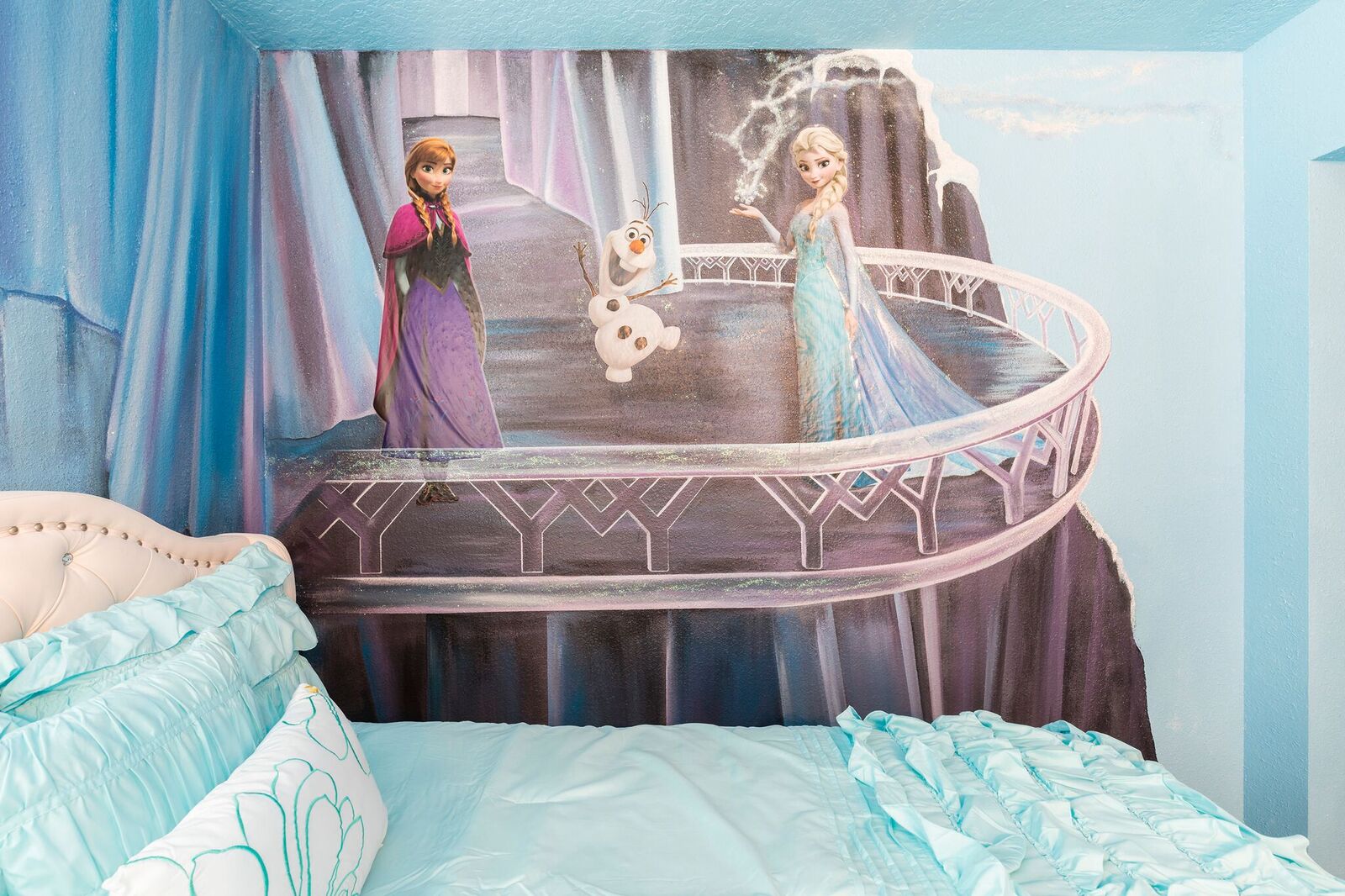 'Frozen' themed bedroom with 3x Full sized beds and an en suite (shower, twin vanities)