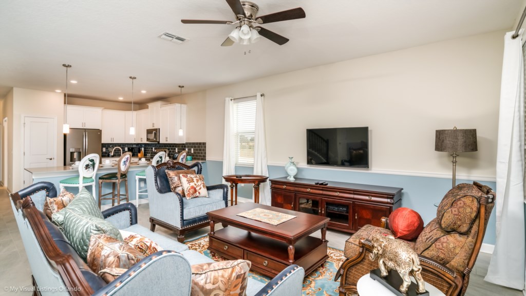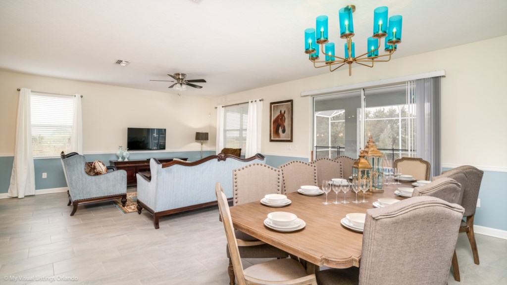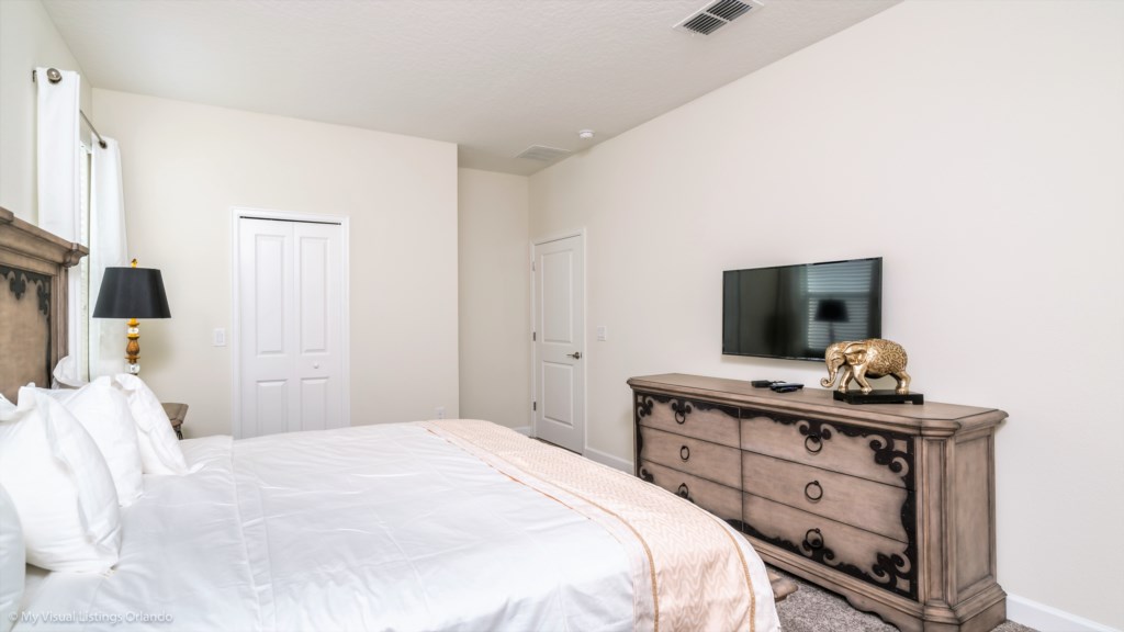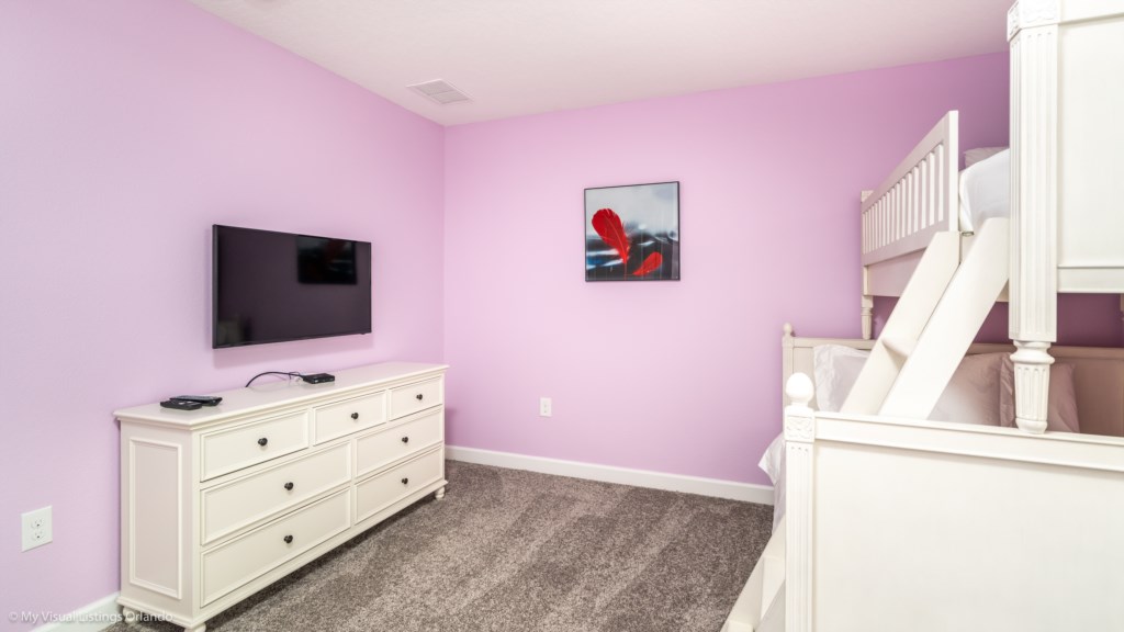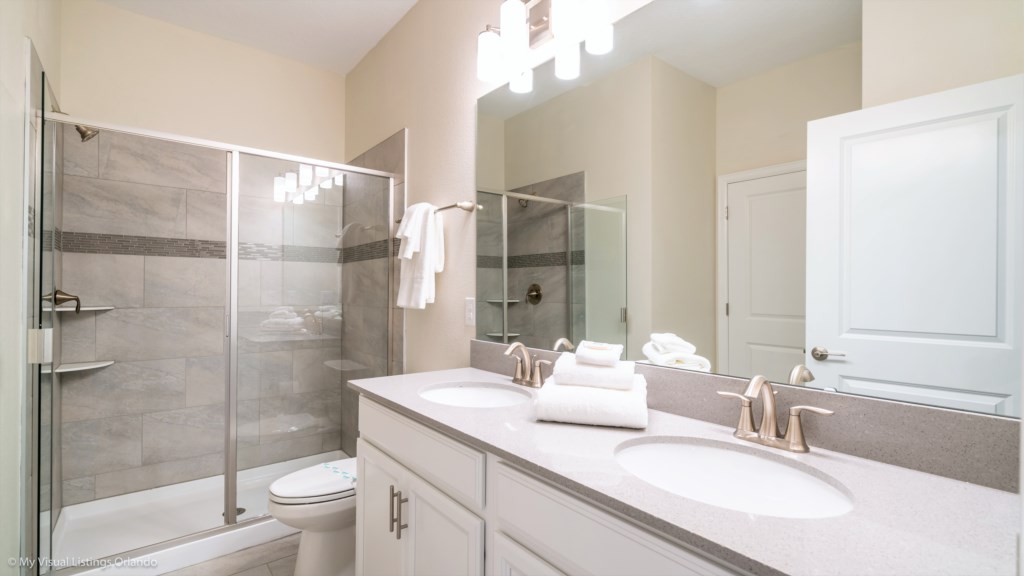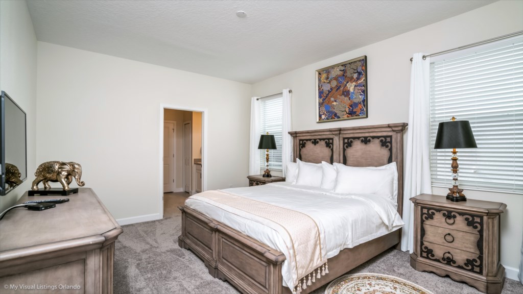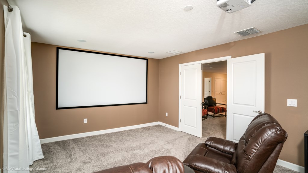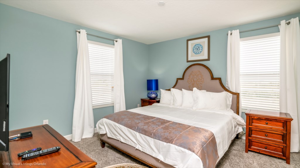 You will feel immediately relaxed as you enter our 8 bedroom, 5 bathroom executive home which sleeps up to 16 in style. We have paid great attention to every detail when we furnished this home and we hope you will enjoy it as much as we do with our own family. With 5 king bedrooms, 1 queen bedroom, 1 full bunk with twin below and 1 room with 2 twins , there is plenty of room for everyone to spread out and relax after a day out or just to stay in and take it easy. Each room has a different feel so all guests should be equally happy with their room, and all have wall mounted flat screen LED Tv’s. The dining room and living area offers plenty of space to congregate and enjoy meals together, and the bright and airy kitchen has all the appliances that you would expect in your own home. (There is also a full-size washer and dryer). You can also enjoy a game of pool in the game room, or watch a movie in the huge loft area, or leave the kids to play on the PlayStation. Or why not take a dip in the large pool or relax in the spa, even in the evening as the pool area is south facing? This home will bring all the excitement of Orlando to you, and have the entire group talking about your trip for months to come.