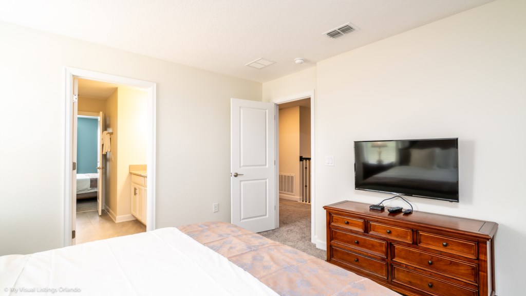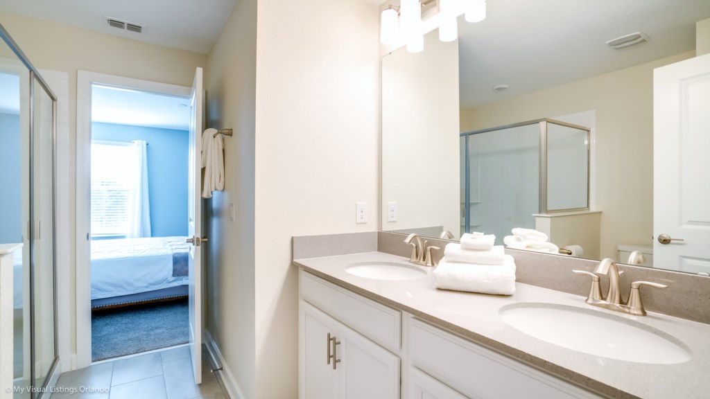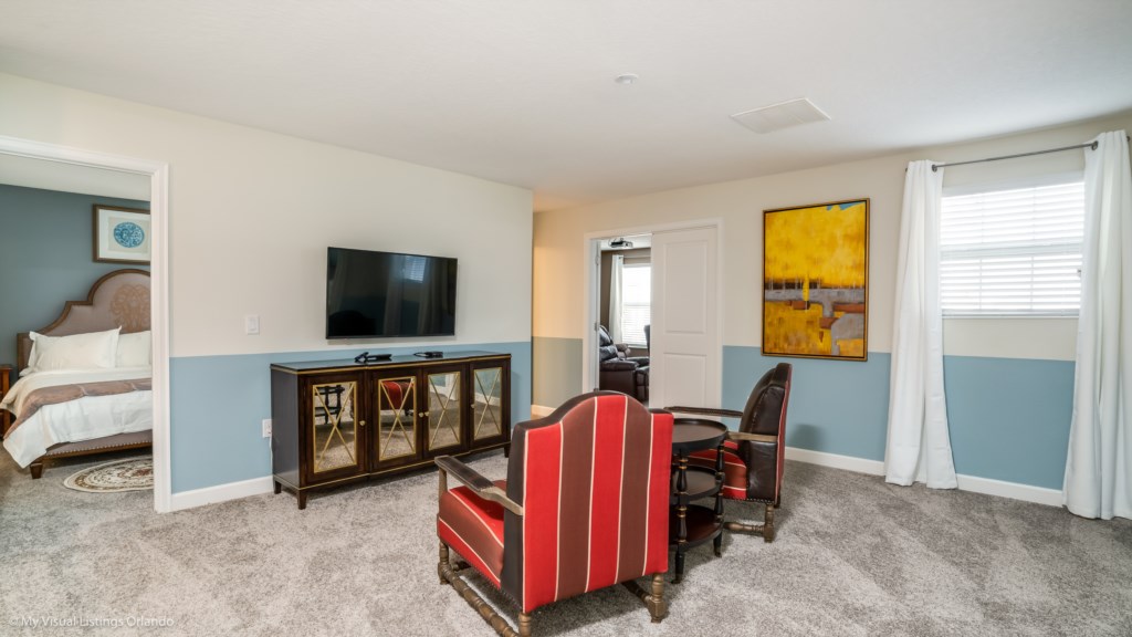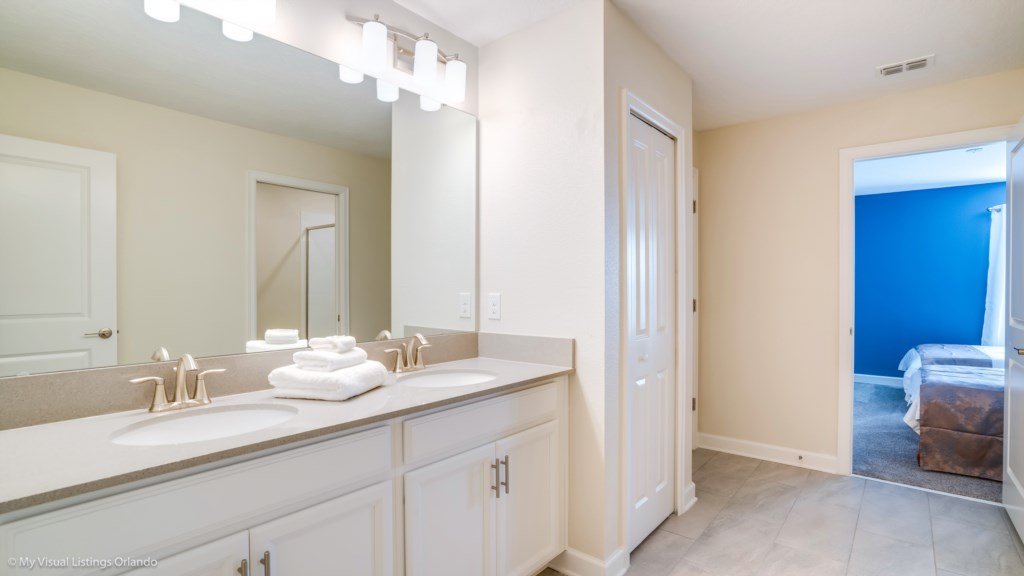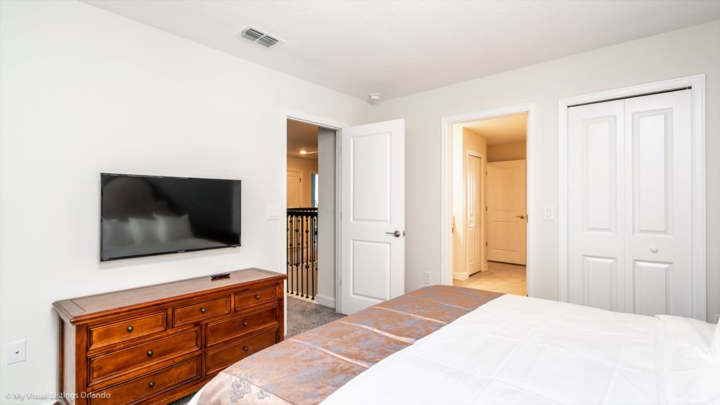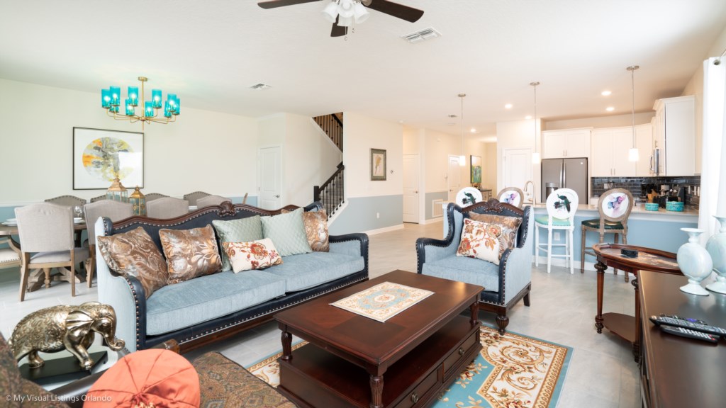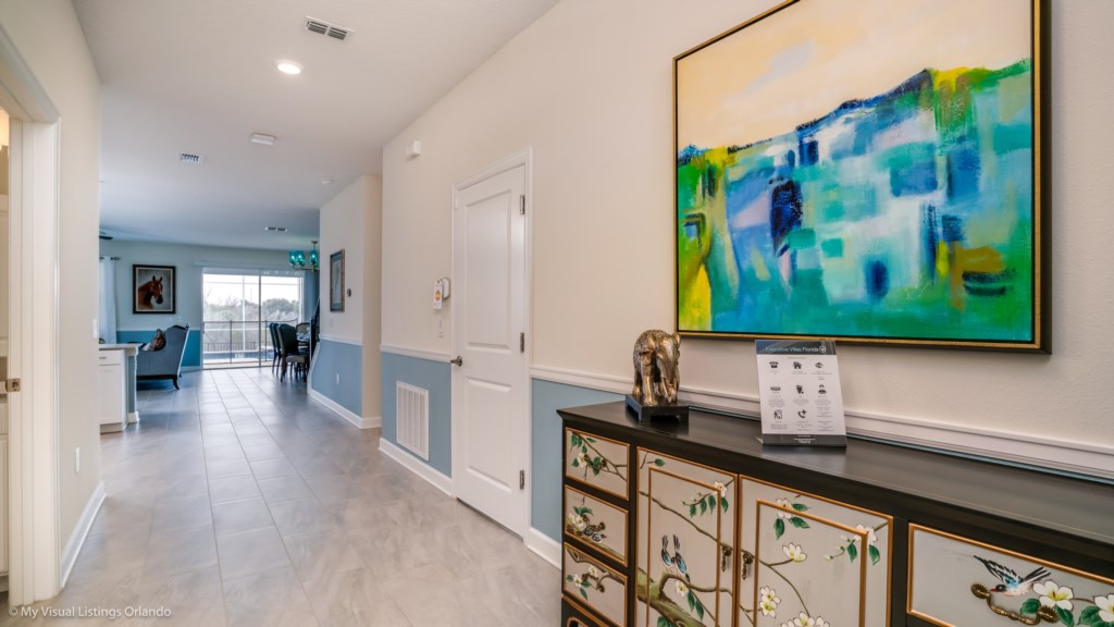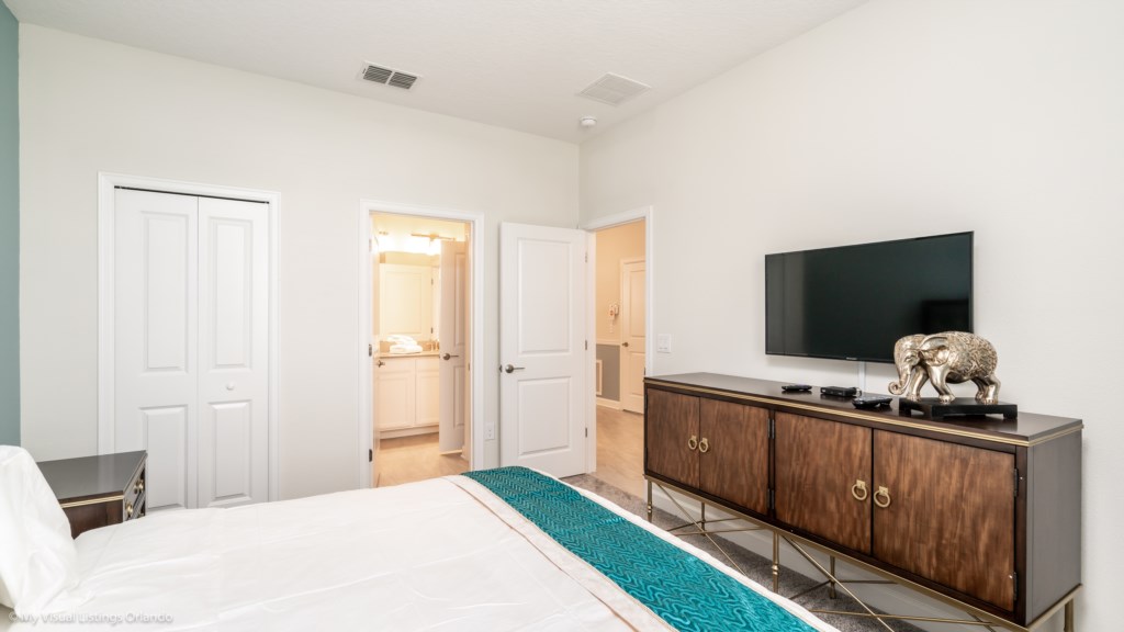 You will feel immediately relaxed as you enter our 8 bedroom, 5 bathroom executive home which sleeps up to 16 in style. We have paid great attention to every detail when we furnished this home and we hope you will enjoy it as much as we do with our own family. With 5 king bedrooms, 1 queen bedroom, 1 full bunk with twin below and 1 room with 2 twins , there is plenty of room for everyone to spread out and relax after a day out or just to stay in and take it easy. Each room has a different feel so all guests should be equally happy with their room, and all have wall mounted flat screen LED Tv’s. The dining room and living area offers plenty of space to congregate and enjoy meals together, and the bright and airy kitchen has all the appliances that you would expect in your own home. (There is also a full-size washer and dryer). You can also enjoy a game of pool in the game room, or watch a movie in the huge loft area, or leave the kids to play on the PlayStation. Or why not take a dip in the large pool or relax in the spa, even in the evening as the pool area is south facing? This home will bring all the excitement of Orlando to you, and have the entire group talking about your trip for months to come.