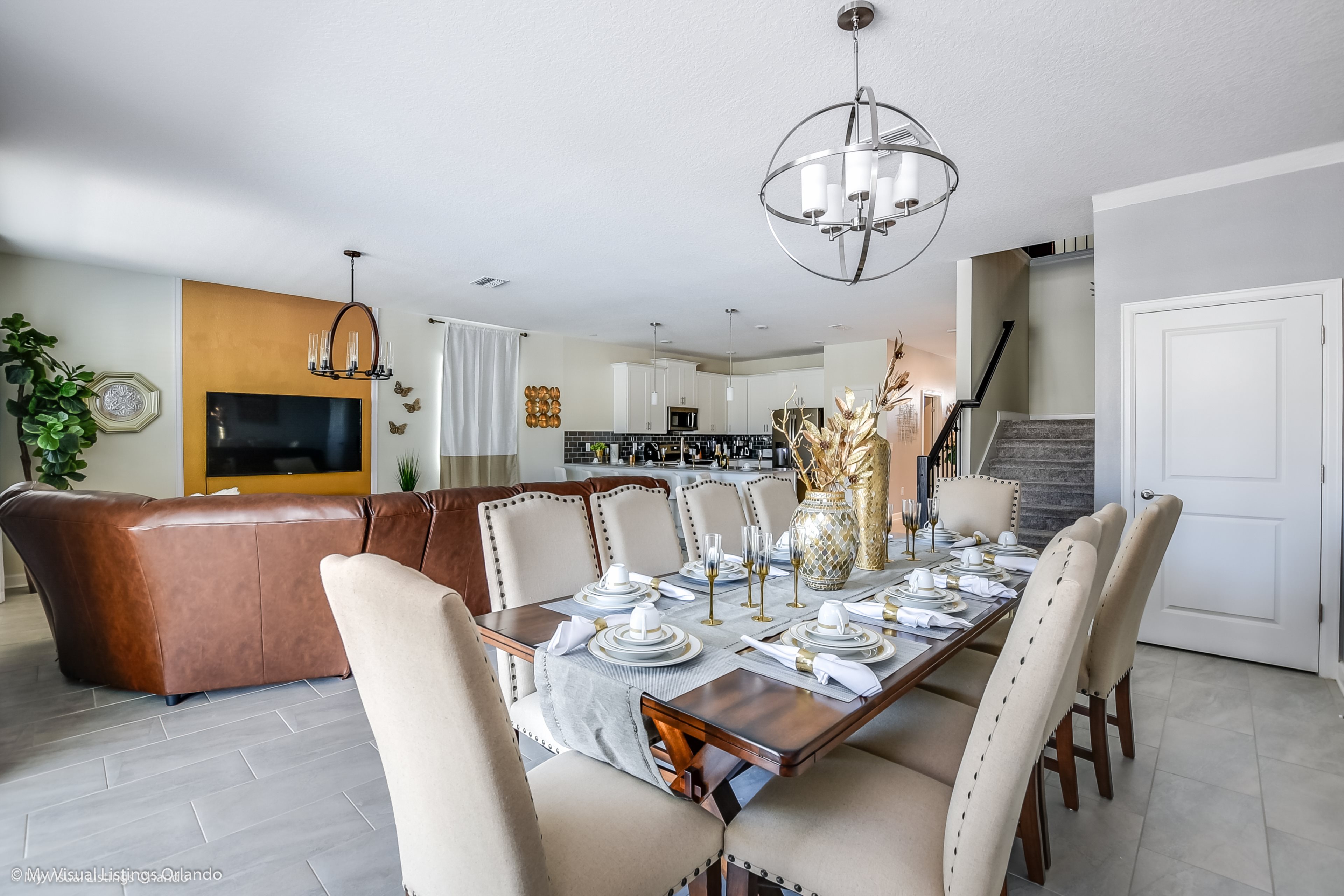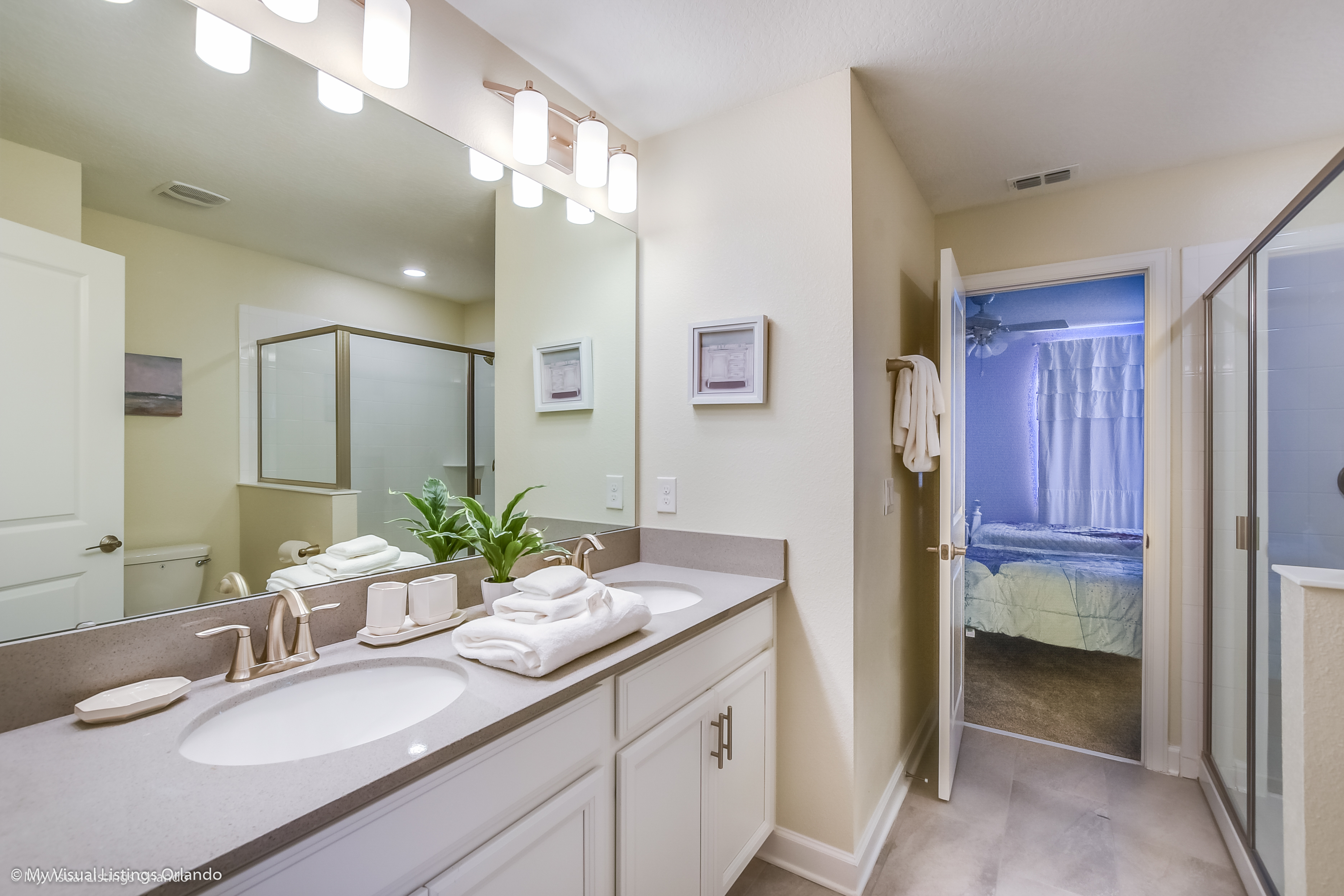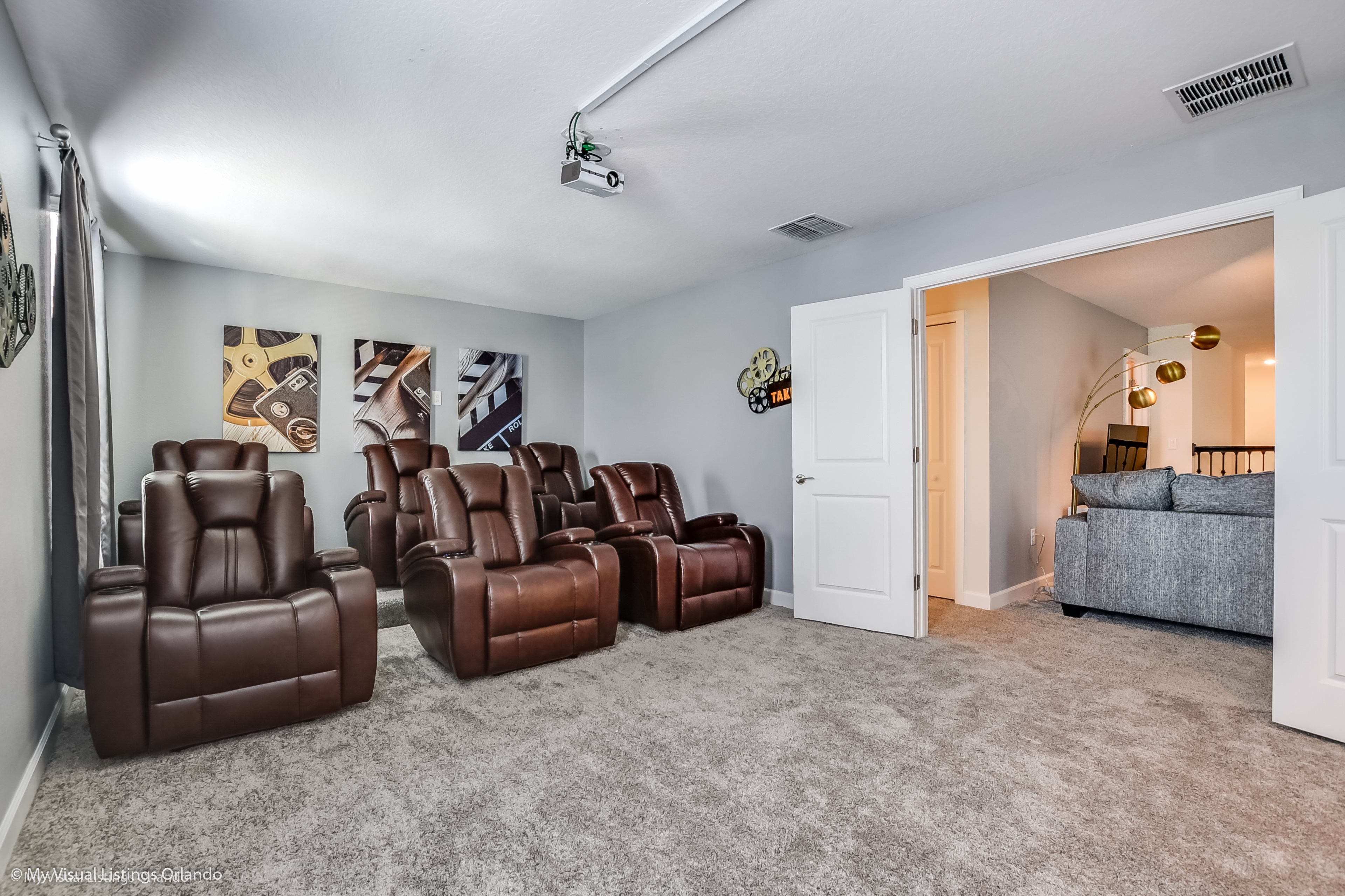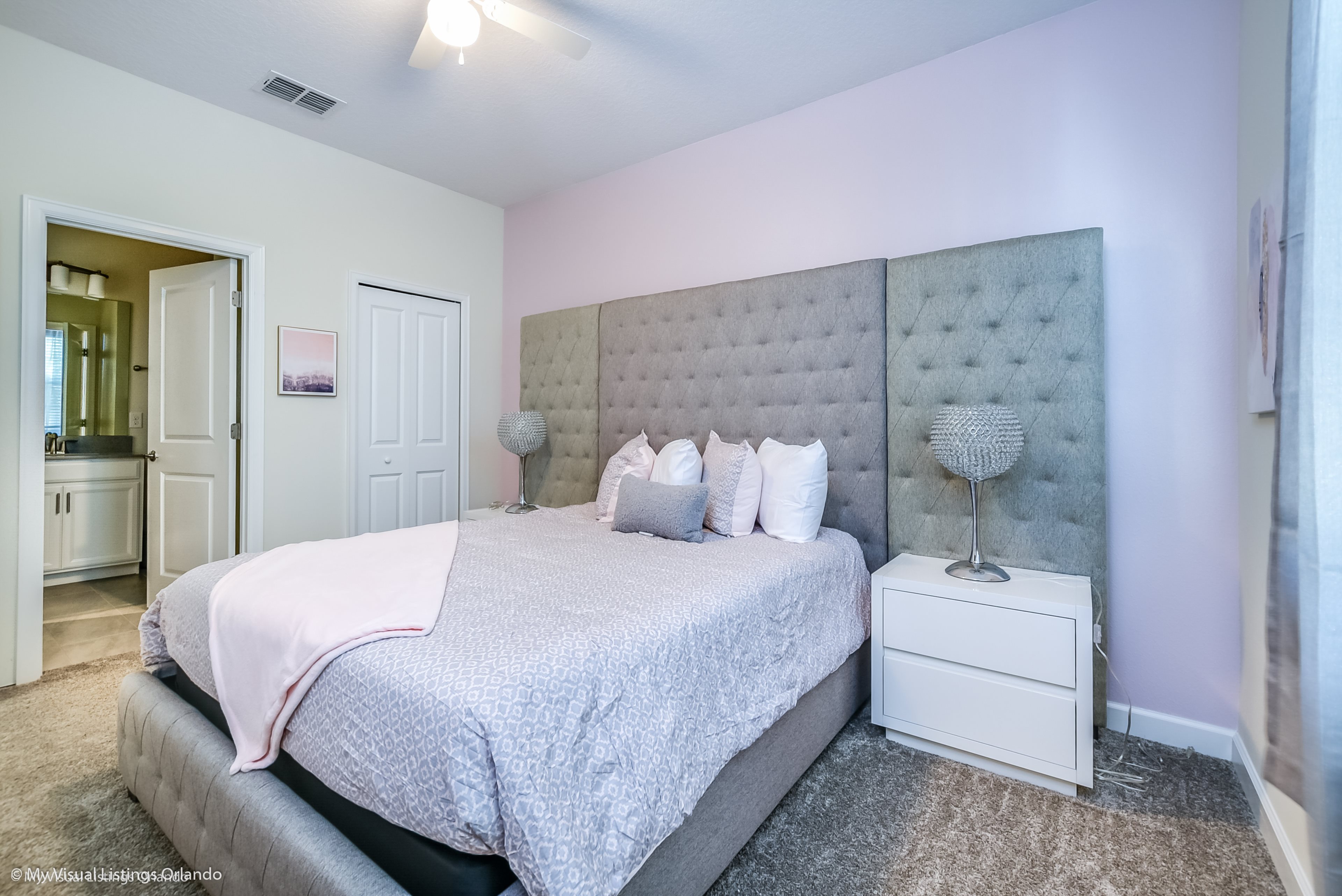 You will feel immediately relaxed as you enter our 8 bedroom, 5 bathroom executive home which sleeps up to 16 in style. We have paid great attention to every detail when we furnished this home and we hope you will enjoy it as much as we do with our own family. With 4 king bedrooms, 2 queen bedroom 2 twins rooms , there is plenty of room for everyone to spread out and relax after a day out or just to stay in and take it easy. Each room has a different feel so all guests should be equally happy with their room, and all have wall mounted flat screen LED Tv’s. The dining room and living area offers plenty of space to congregate and enjoy meals together, and the bright and airy kitchen has all the appliances that you would expect in your own home. (There is also a full-size washer and dryer). You can also enjoy a game of pool in the game room, or watch a movie in the huge loft area, or leave the kids to play on the PlayStation. Or why not take a dip in the large pool or relax in the spa, even in the evening as the pool area is south facing? This home will bring all the excitement of Orlando to you, and have the entire group talking about your trip for months to come.