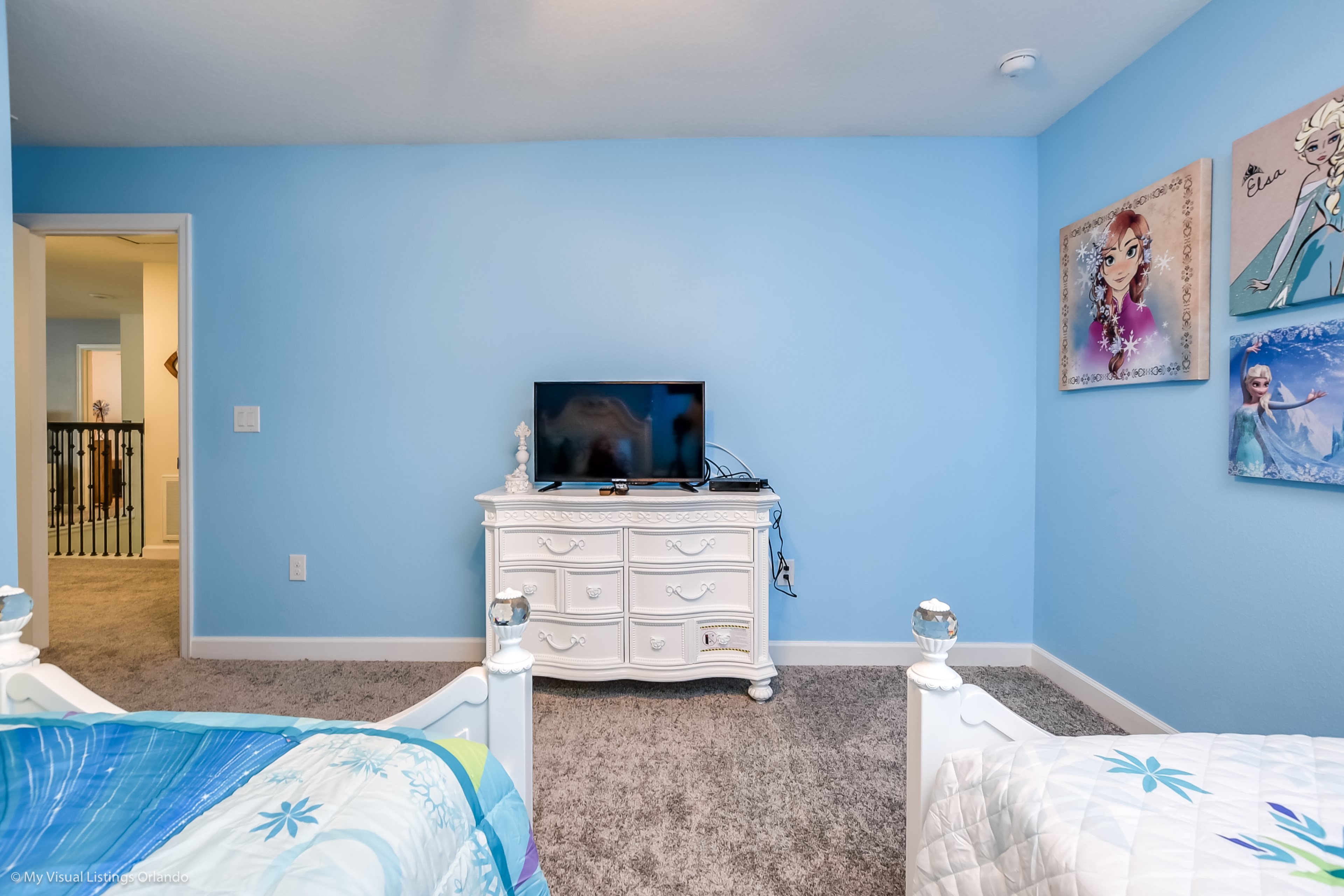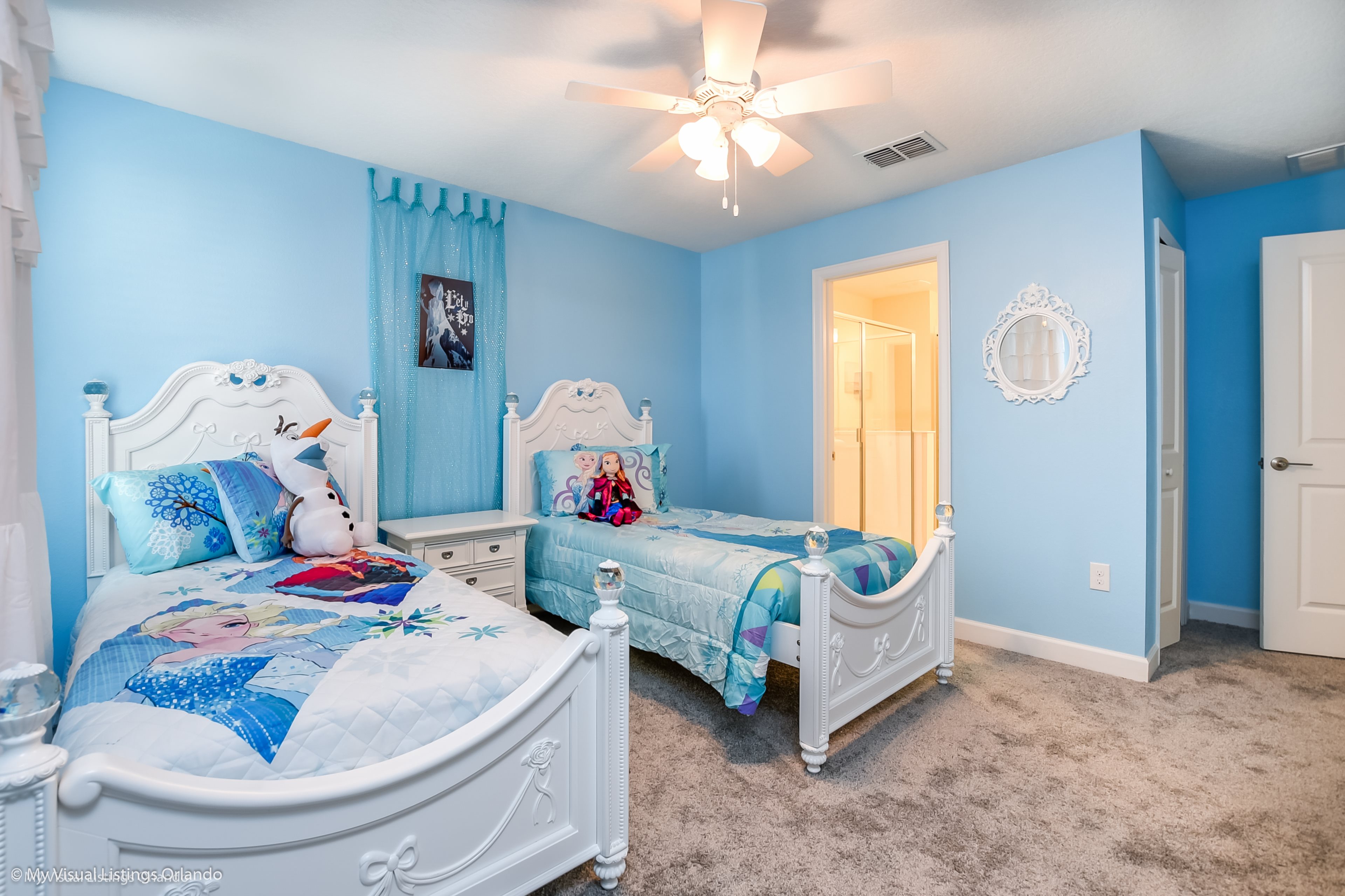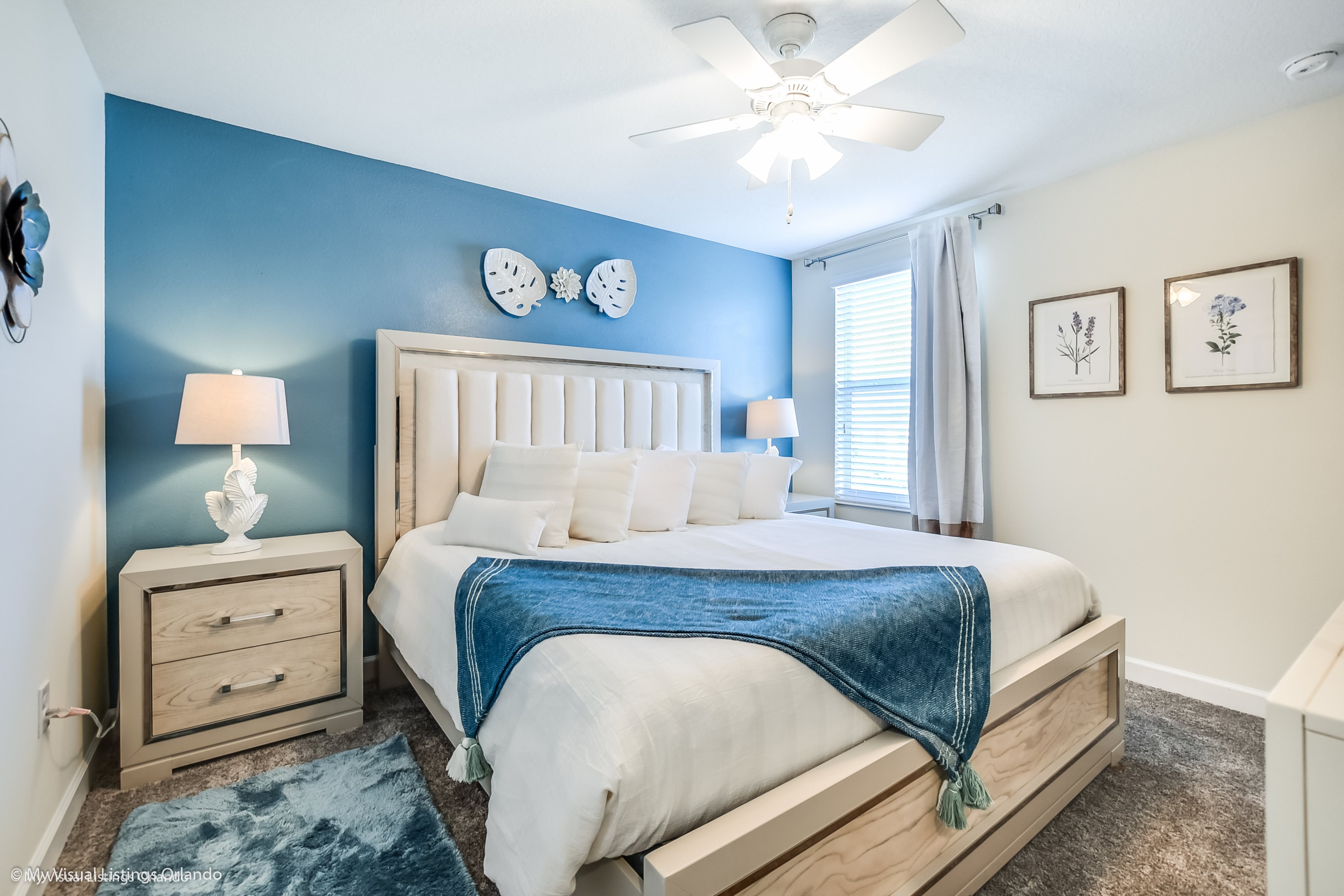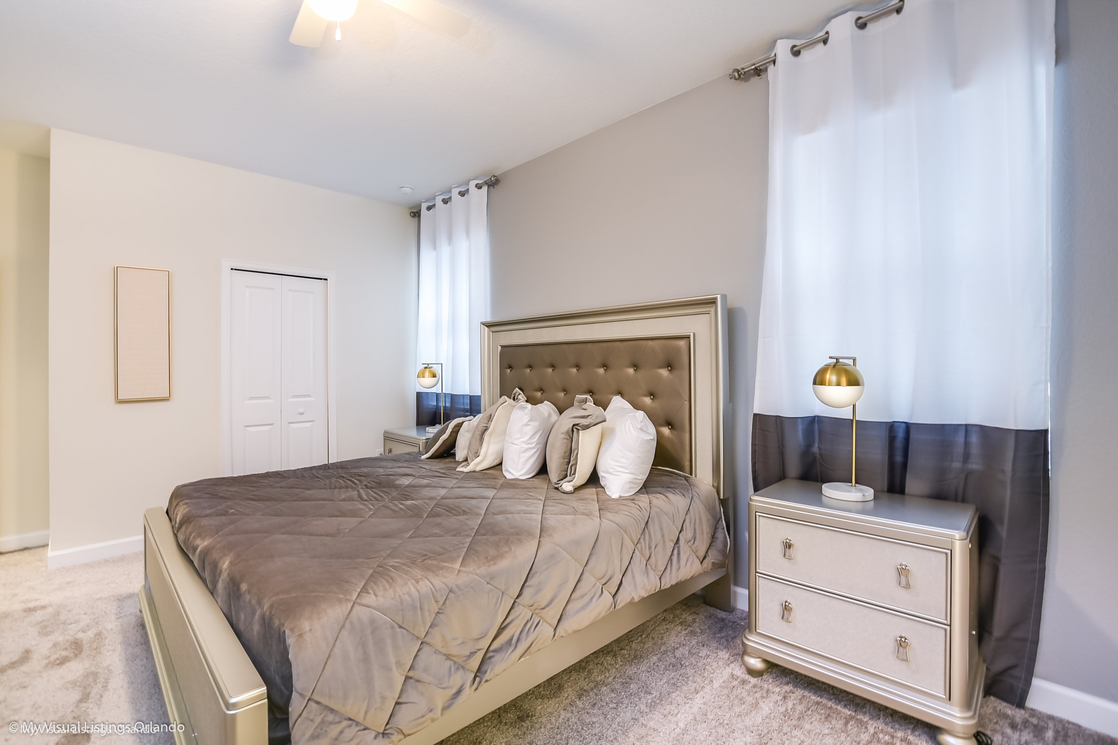 You will feel immediately relaxed as you enter our 8 bedroom, 5 bathroom executive home which sleeps up to 16 in style. We have paid great attention to every detail when we furnished this home and we hope you will enjoy it as much as we do with our own family. With 4 king bedrooms, 2 queen bedroom 2 twins rooms , there is plenty of room for everyone to spread out and relax after a day out or just to stay in and take it easy. Each room has a different feel so all guests should be equally happy with their room, and all have wall mounted flat screen LED Tv’s. The dining room and living area offers plenty of space to congregate and enjoy meals together, and the bright and airy kitchen has all the appliances that you would expect in your own home. (There is also a full-size washer and dryer). You can also enjoy a game of pool in the game room, or watch a movie in the huge loft area, or leave the kids to play on the PlayStation. Or why not take a dip in the large pool or relax in the spa, even in the evening as the pool area is south facing? This home will bring all the excitement of Orlando to you, and have the entire group talking about your trip for months to come.