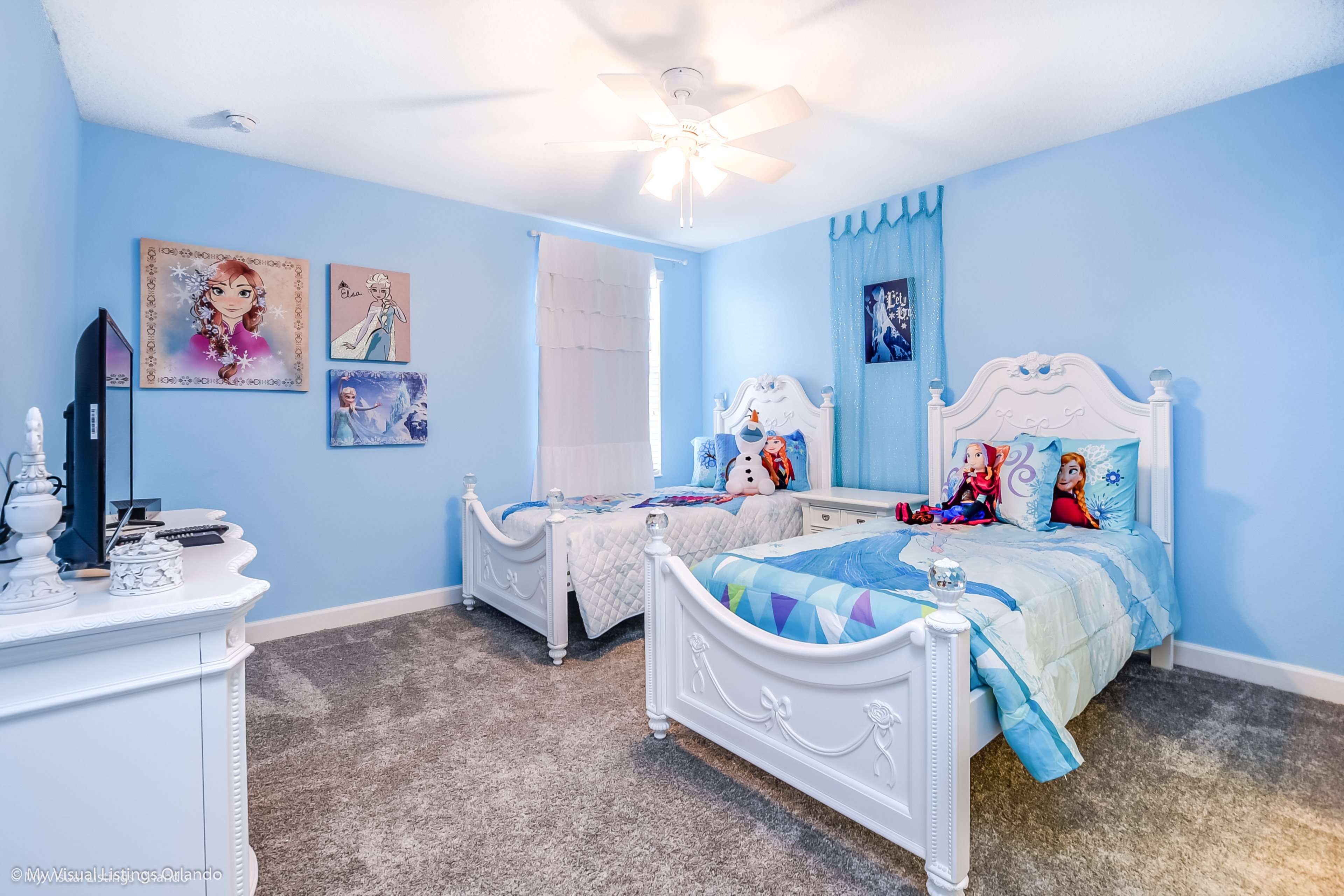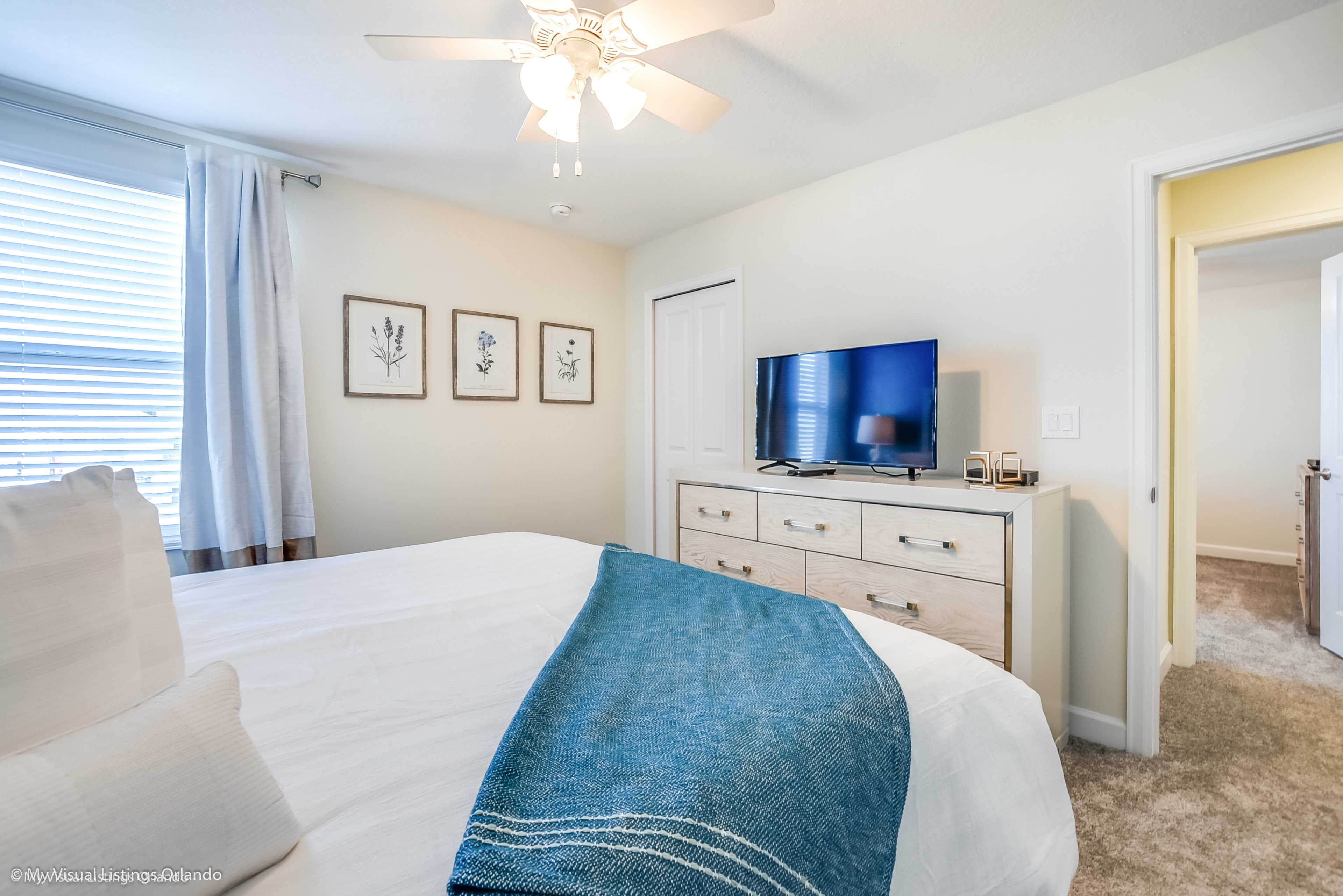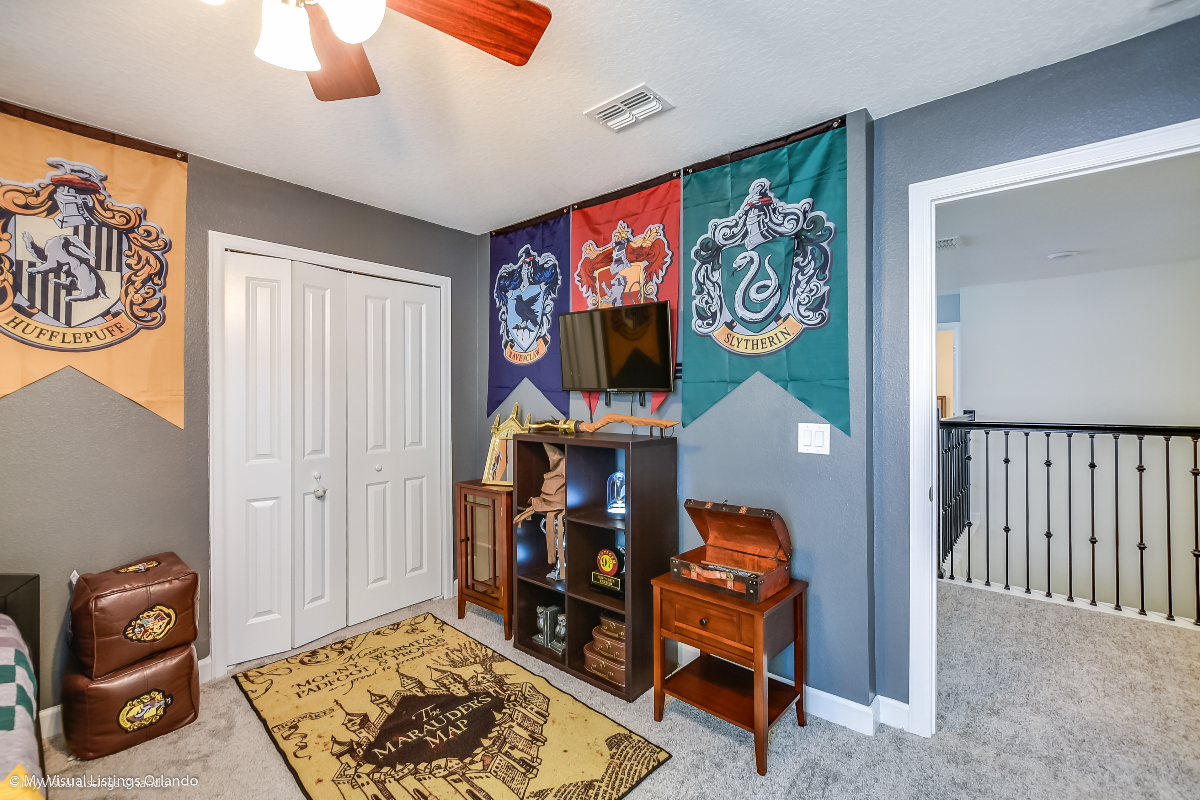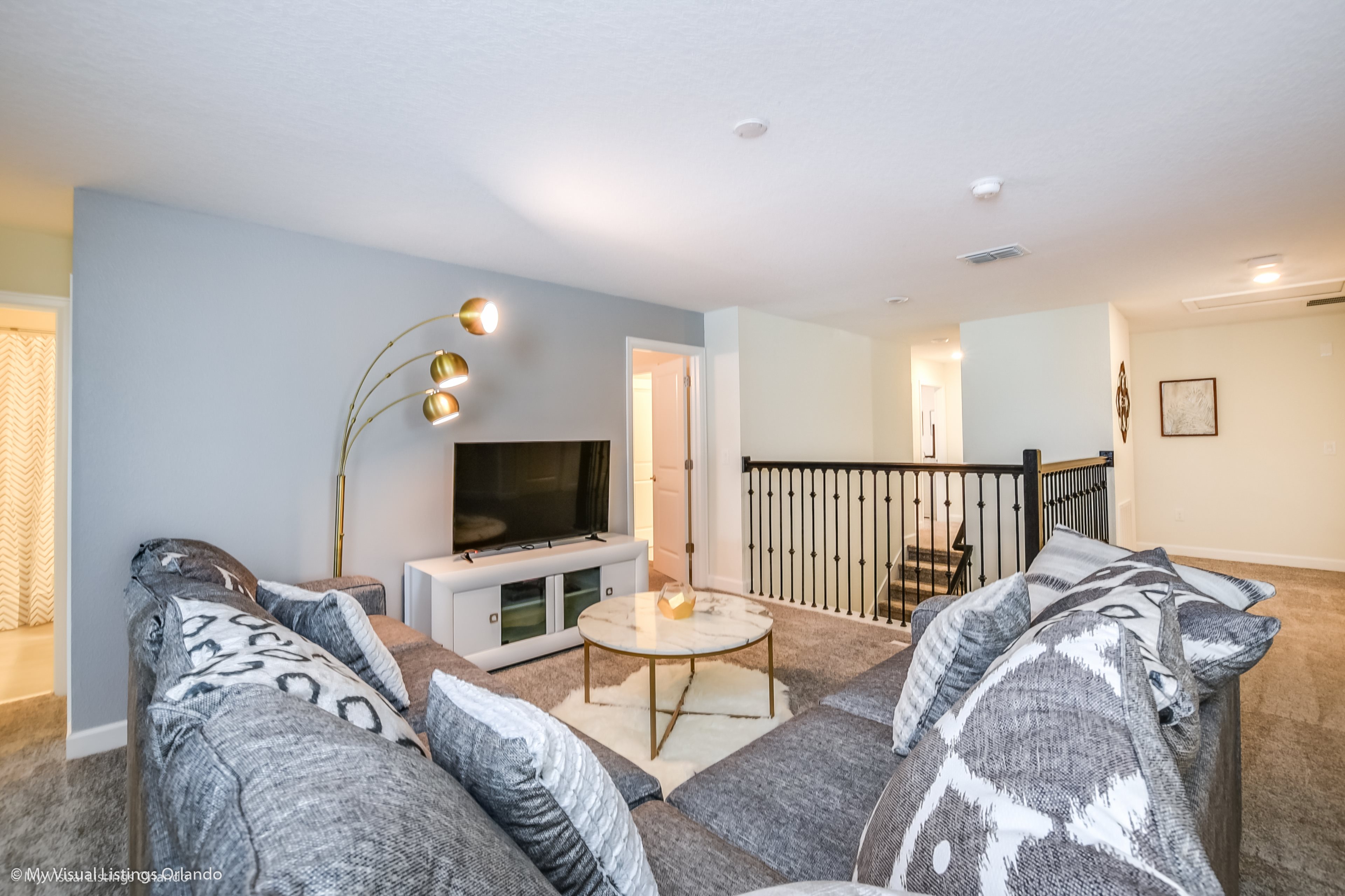 You will feel immediately relaxed as you enter our 8 bedroom, 5 bathroom executive home which sleeps up to 16 in style. We have paid great attention to every detail when we furnished this home and we hope you will enjoy it as much as we do with our own family. With 4 king bedrooms, 2 queen bedroom 2 twins rooms , there is plenty of room for everyone to spread out and relax after a day out or just to stay in and take it easy. Each room has a different feel so all guests should be equally happy with their room, and all have wall mounted flat screen LED Tv’s. The dining room and living area offers plenty of space to congregate and enjoy meals together, and the bright and airy kitchen has all the appliances that you would expect in your own home. (There is also a full-size washer and dryer). You can also enjoy a game of pool in the game room, or watch a movie in the huge loft area, or leave the kids to play on the PlayStation. Or why not take a dip in the large pool or relax in the spa, even in the evening as the pool area is south facing? This home will bring all the excitement of Orlando to you, and have the entire group talking about your trip for months to come.