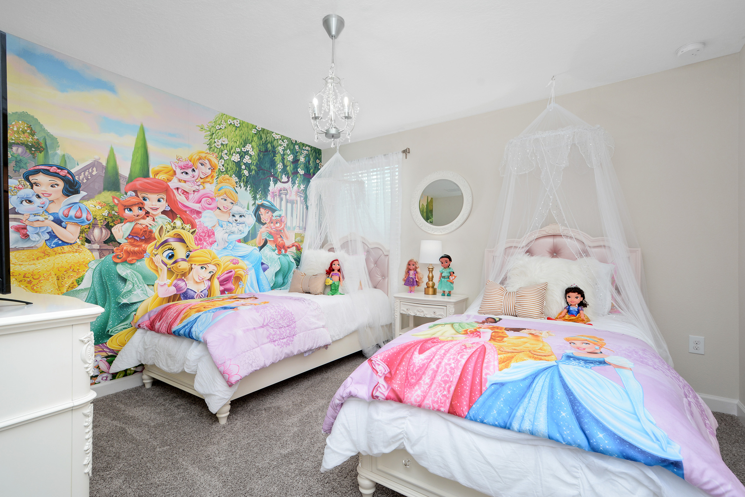 You will feel immediately relaxed as you enter our 8 bedroom, 5 bathroom executive home which sleeps up to 18 in style. We have paid great attention to every detail when we furnished this home and we hope you will enjoy it as much as we do with our own family. With 2 king bedrooms, 3 queen bedroom, 1 full with twin below and 2 room with 2 twins , there is plenty of room for everyone to spread out and relax after a day out or just to stay in and take it easy. Each room has a different feel so all guests should be equally happy with their room, and all have wall mounted flat screen LED Tv’s. The dining room and living area offers plenty of space to congregate and enjoy meals together, and the bright and airy kitchen has all the appliances that you would expect in your own home. (There is also a full-size washer and dryer). You can also enjoy a game of pool in the game room, or watch a movie in the huge loft area, or leave the kids to play on the PlayStation. Or why not take a dip in the large pool or relax in the spa, even in the evening as the pool area is south facing? This home will bring all the excitement of Orlando to you, and have the entire group talking about your trip for months to come.